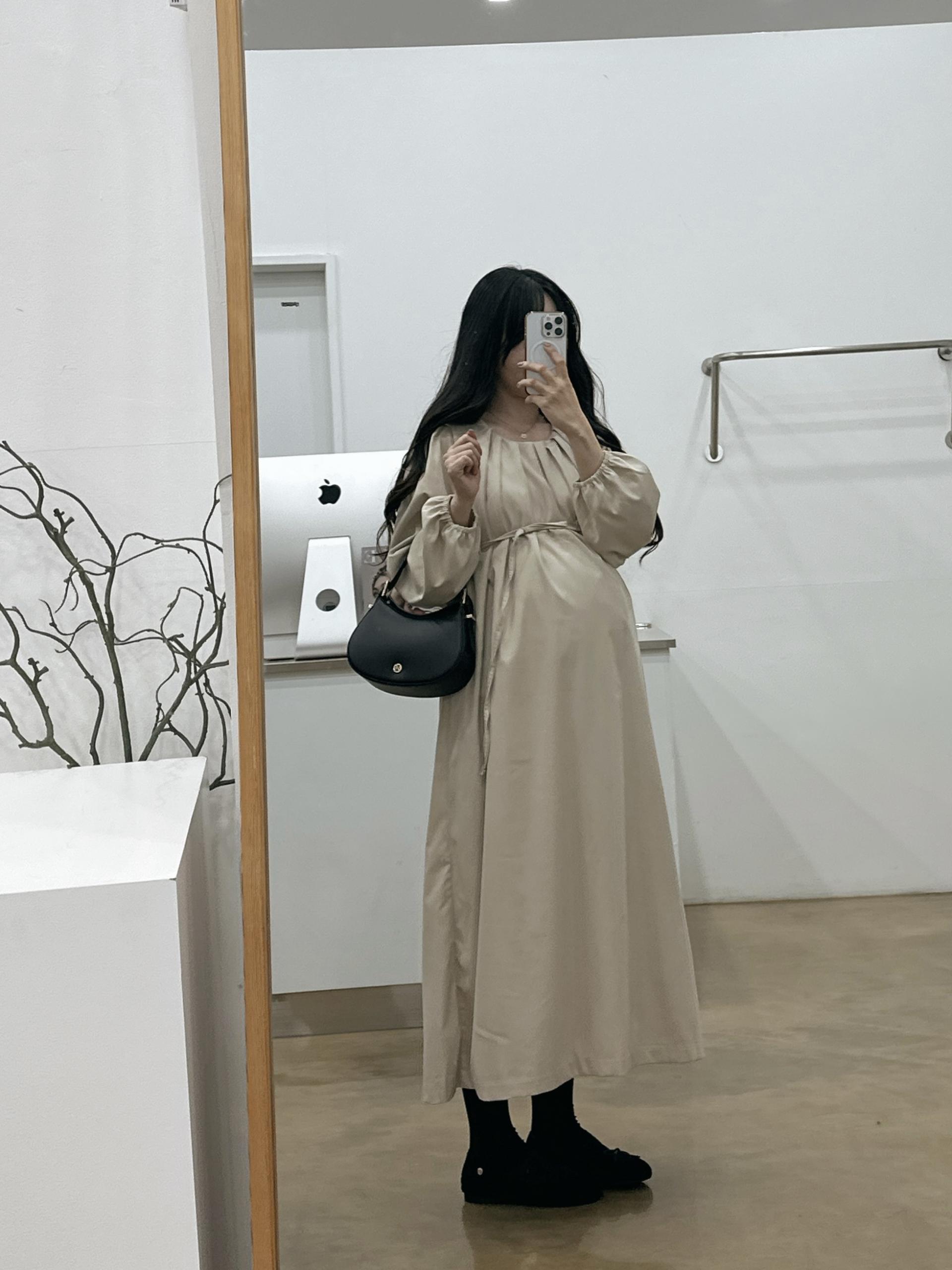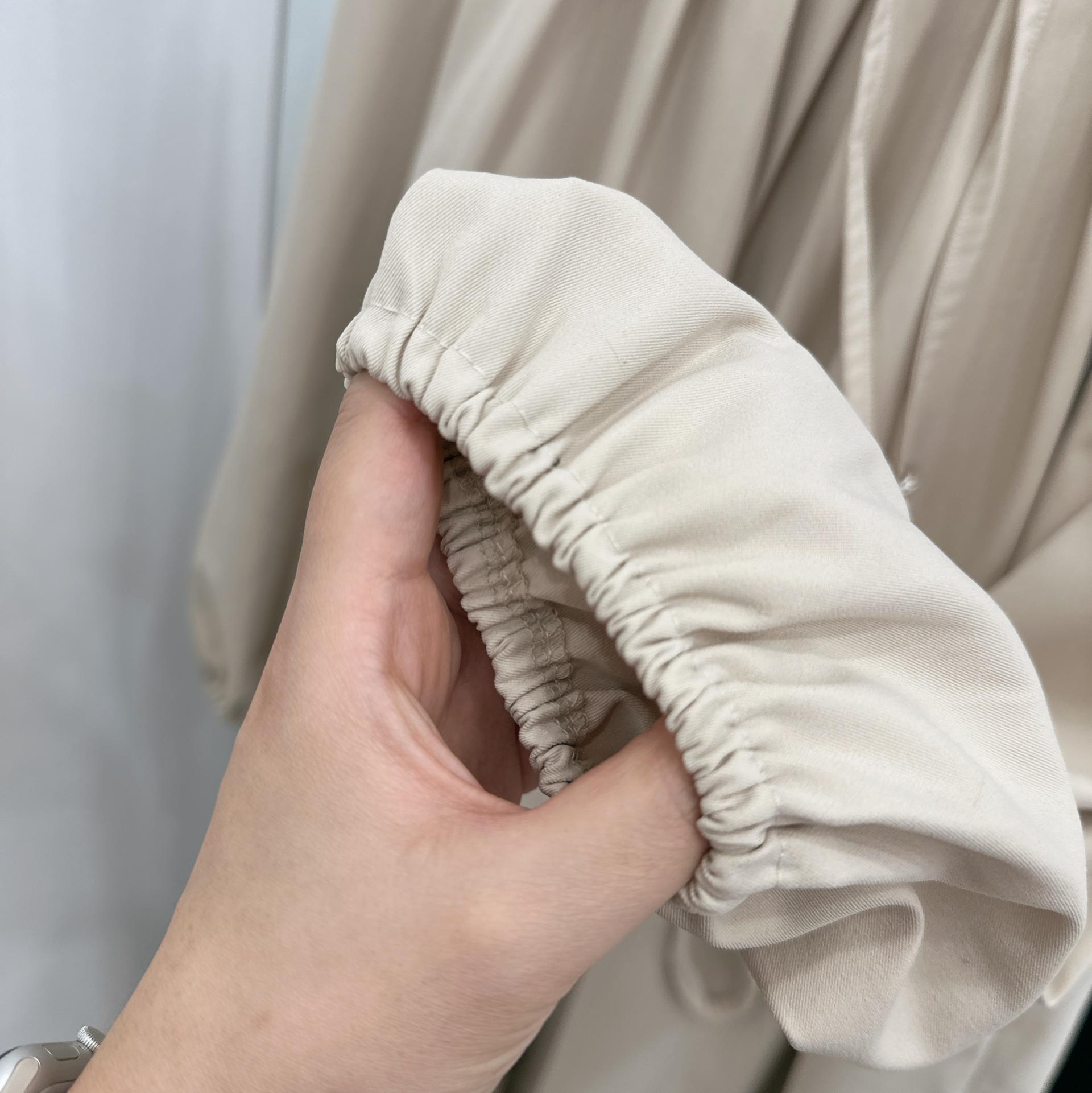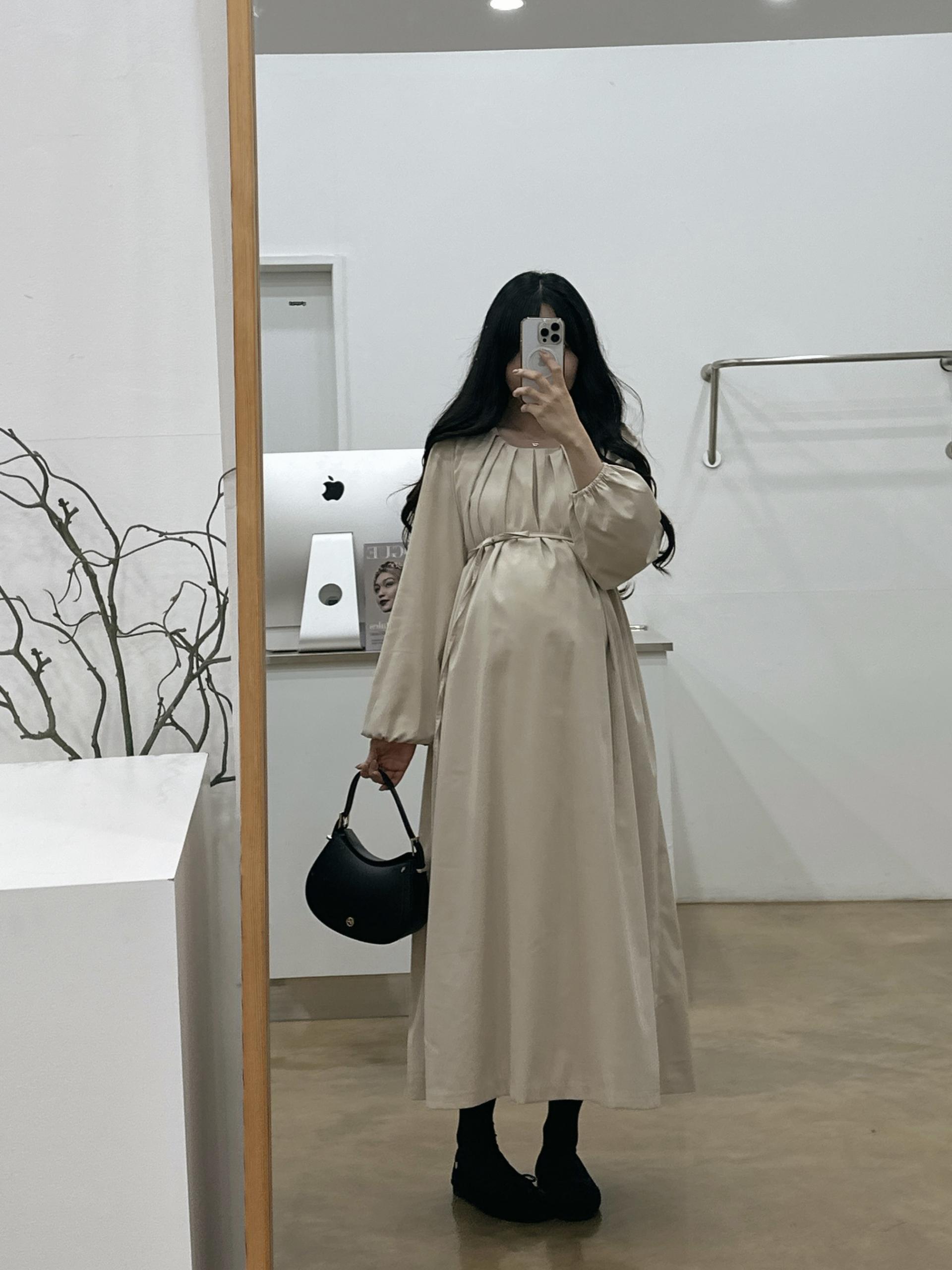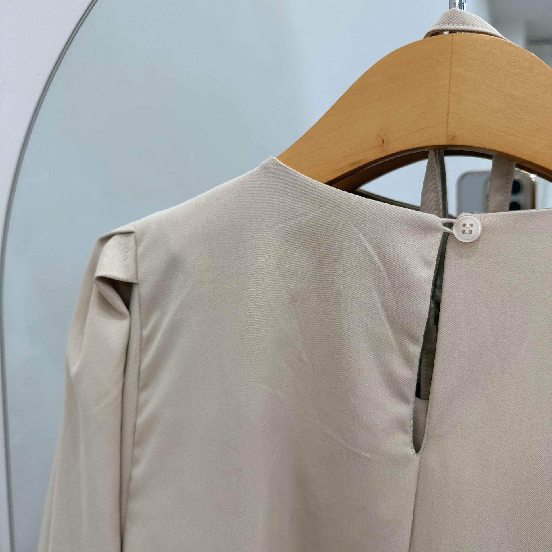넥라인 핀턱과 벨트끈이 좀 더 고급스러운 느낌을 만들어줘요