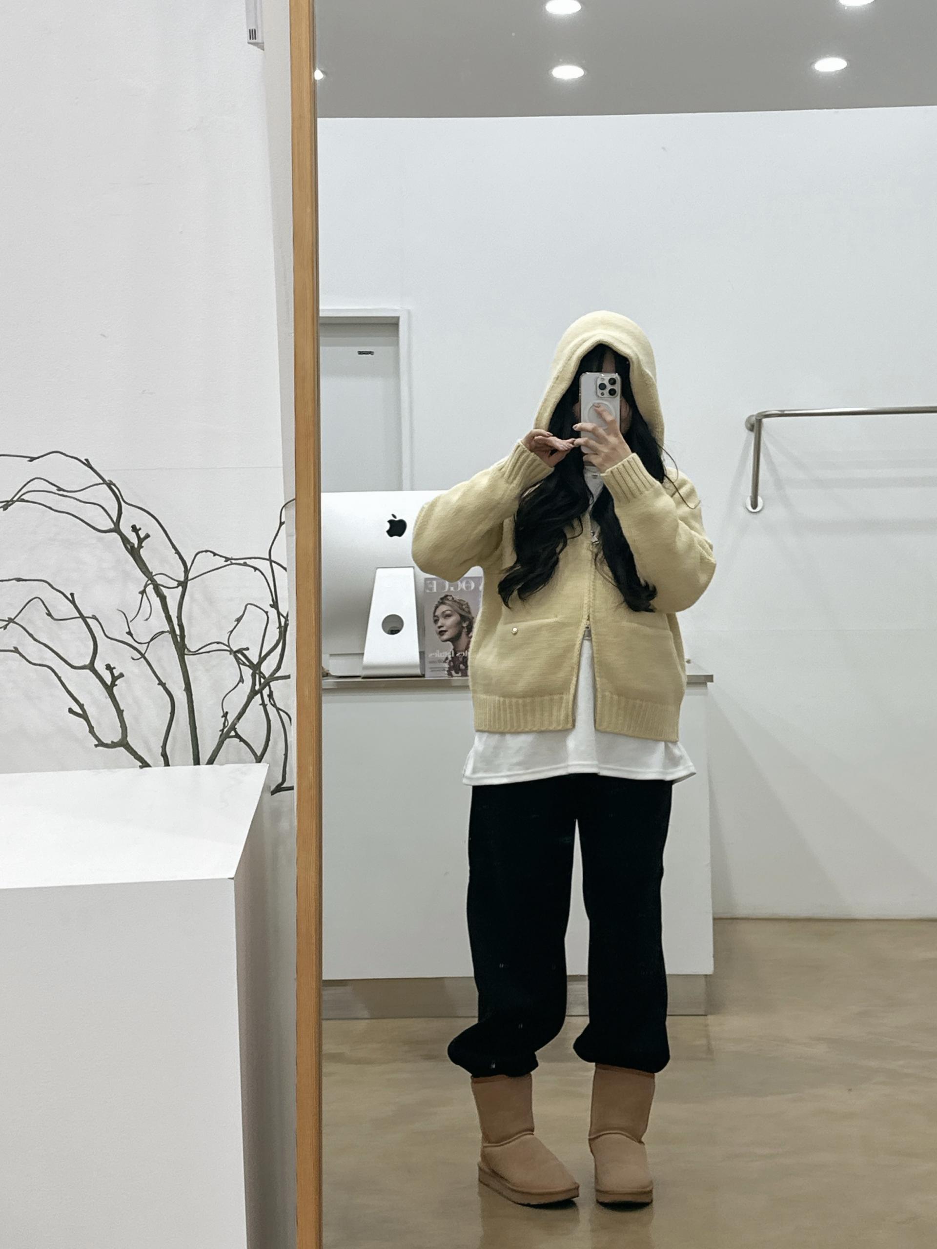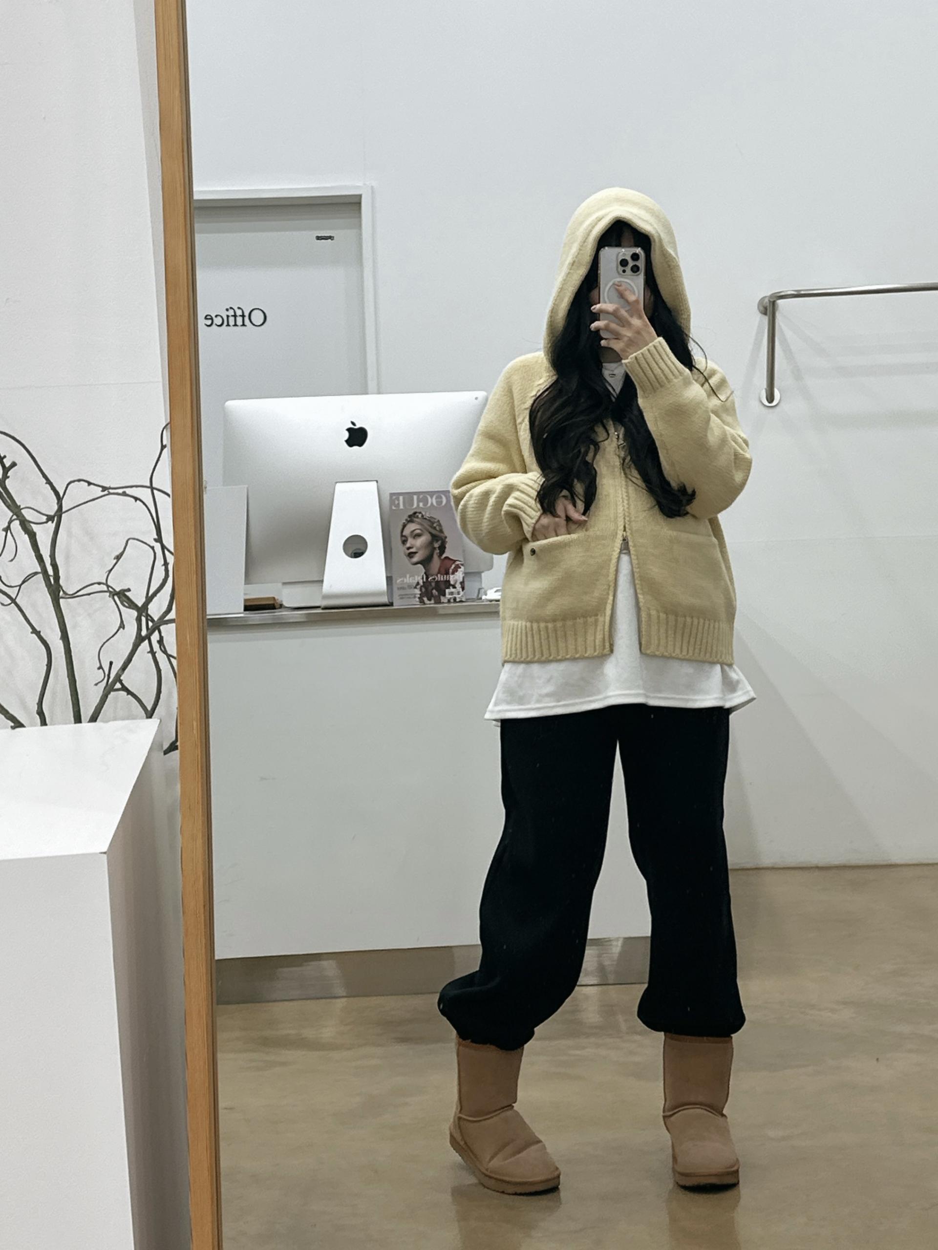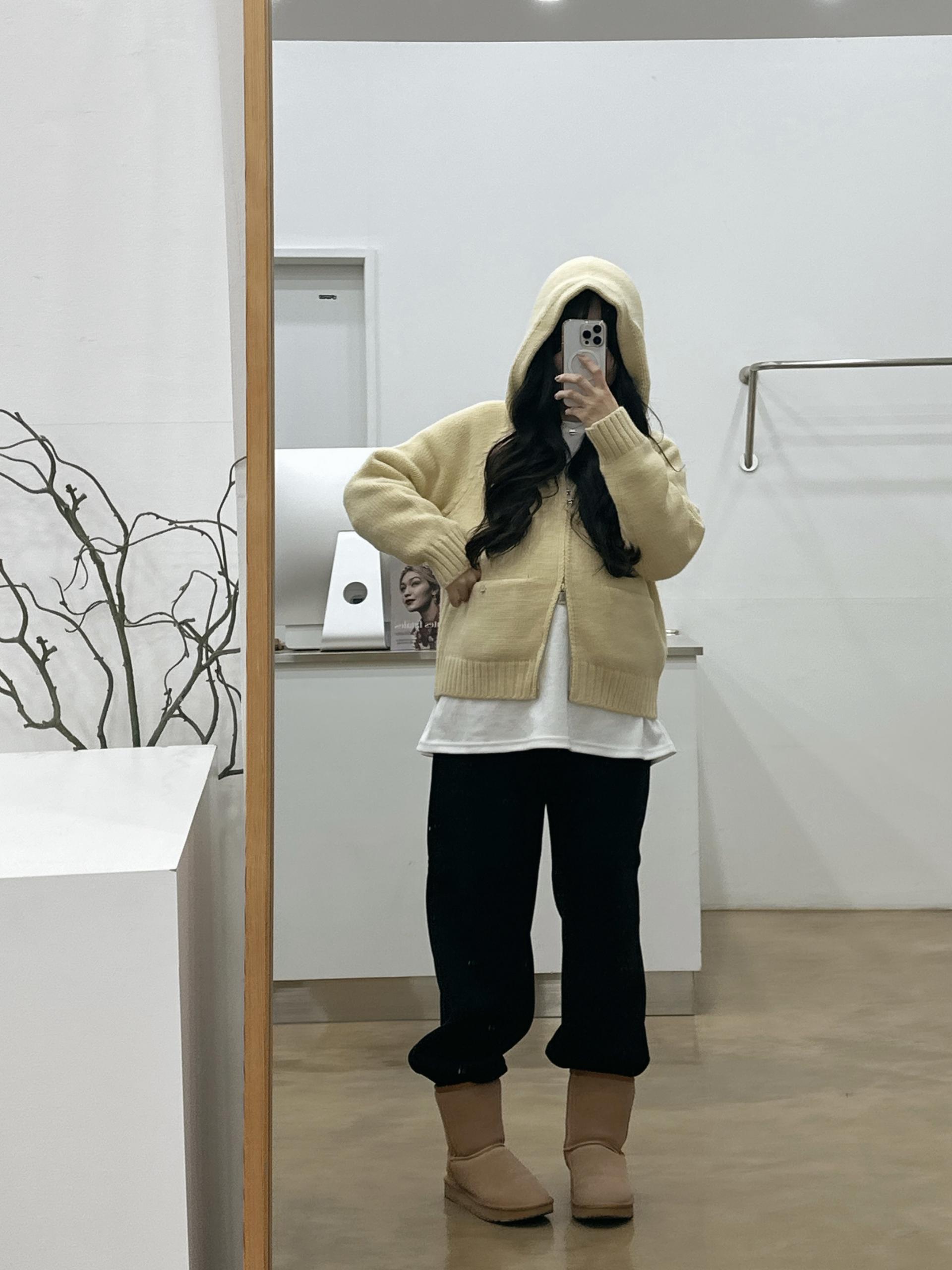포켓에 실링이 고급스러움을 높여준 부드럽고 도톰한 니트집업입니다:)