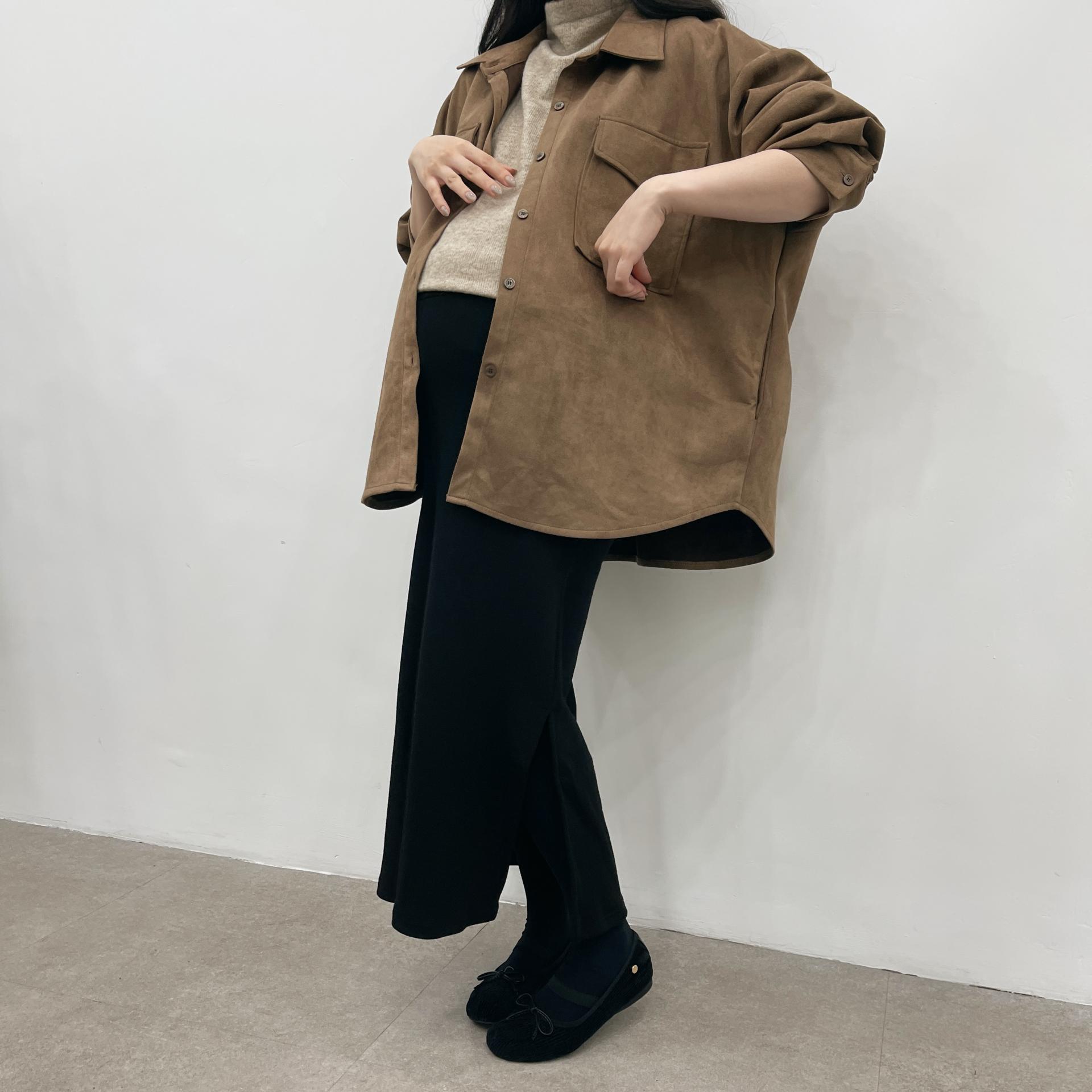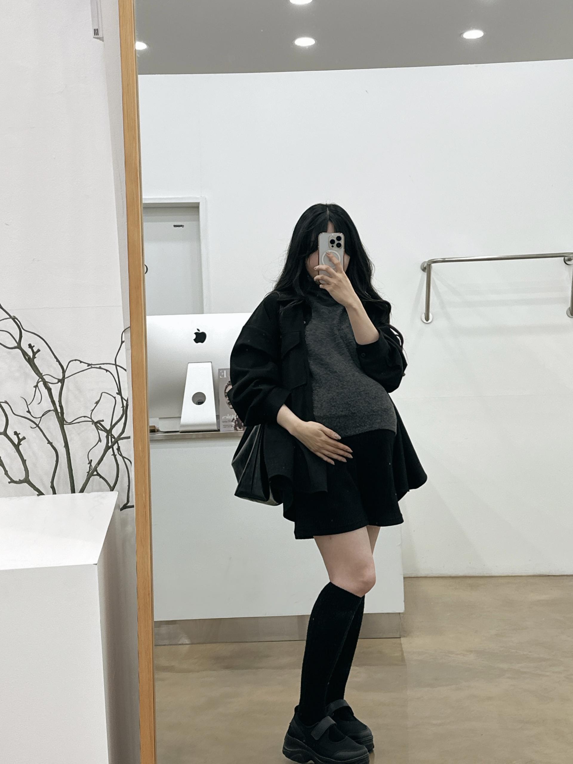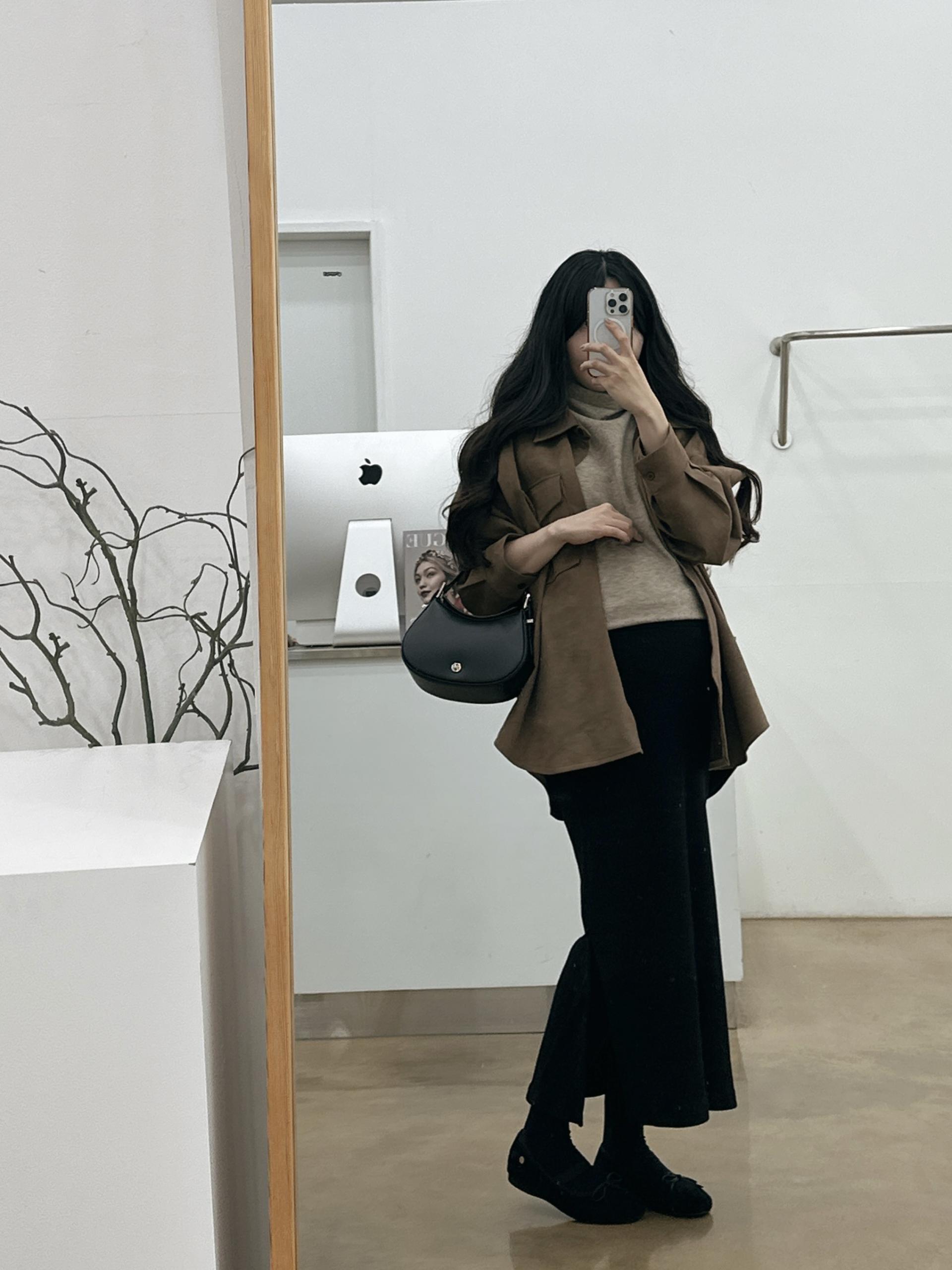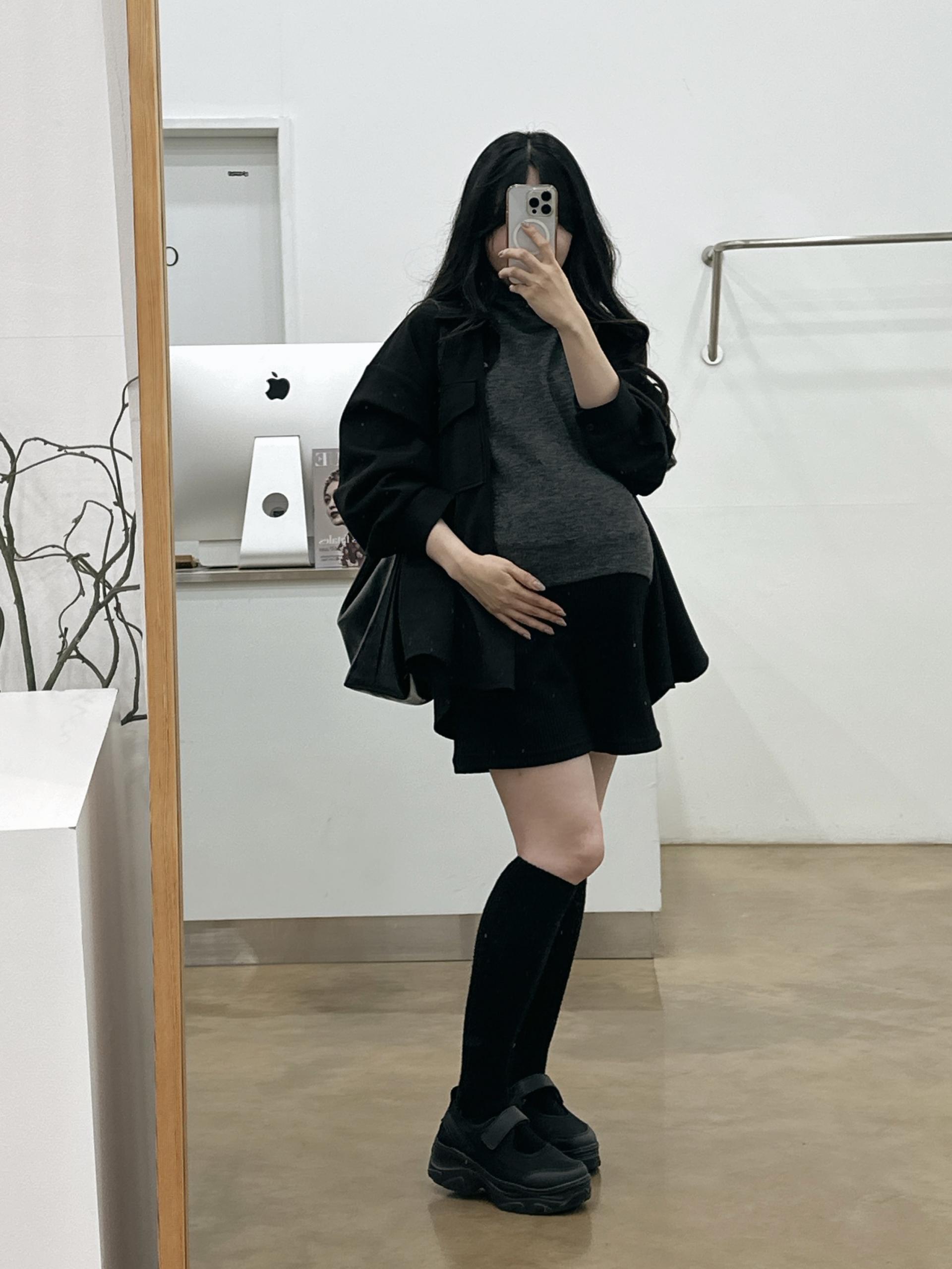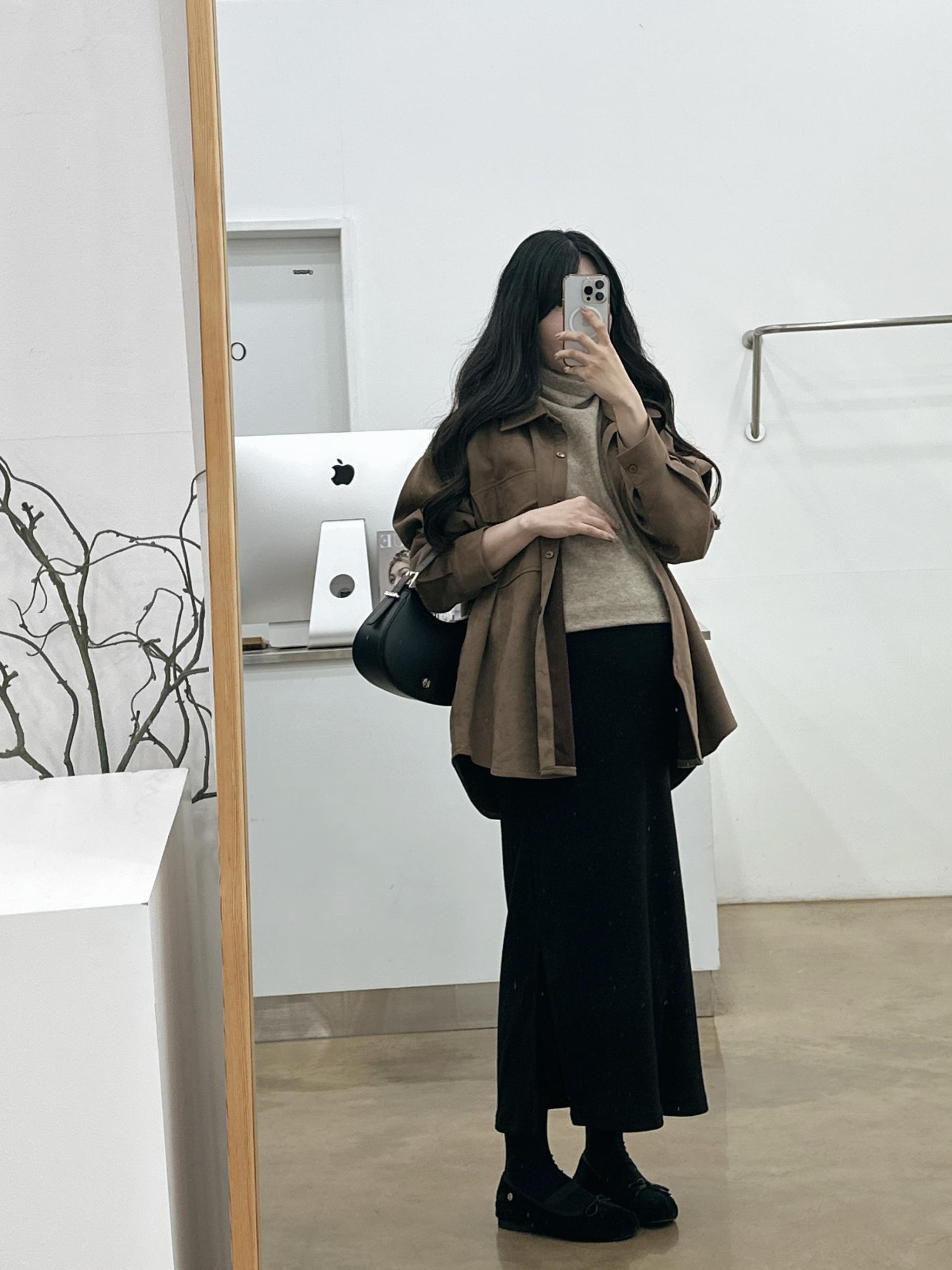 자켓처럼 루즈하게 걸치듯이 코디했을 때 (+임부기모트임롱스커트/심플반목니트)