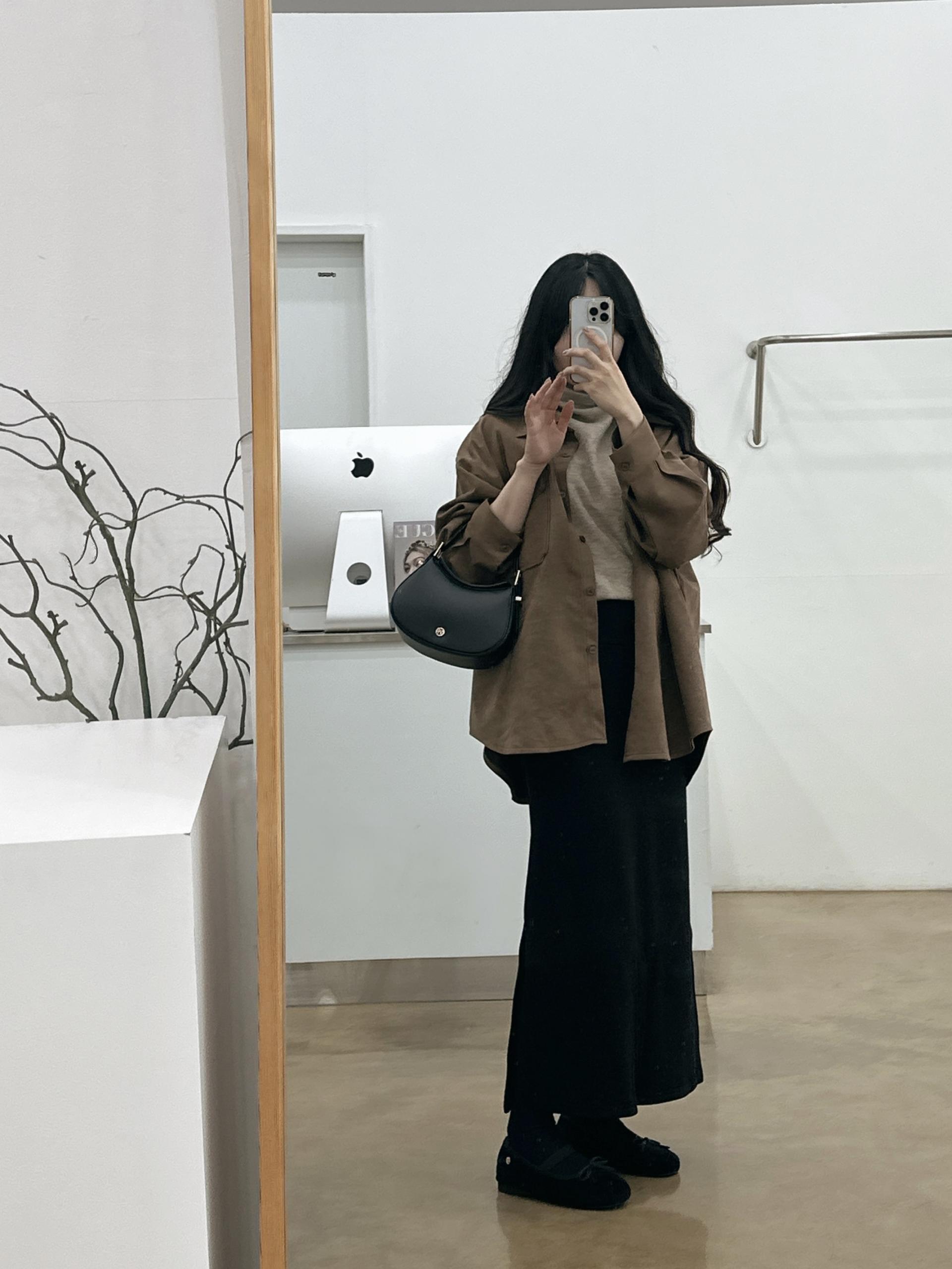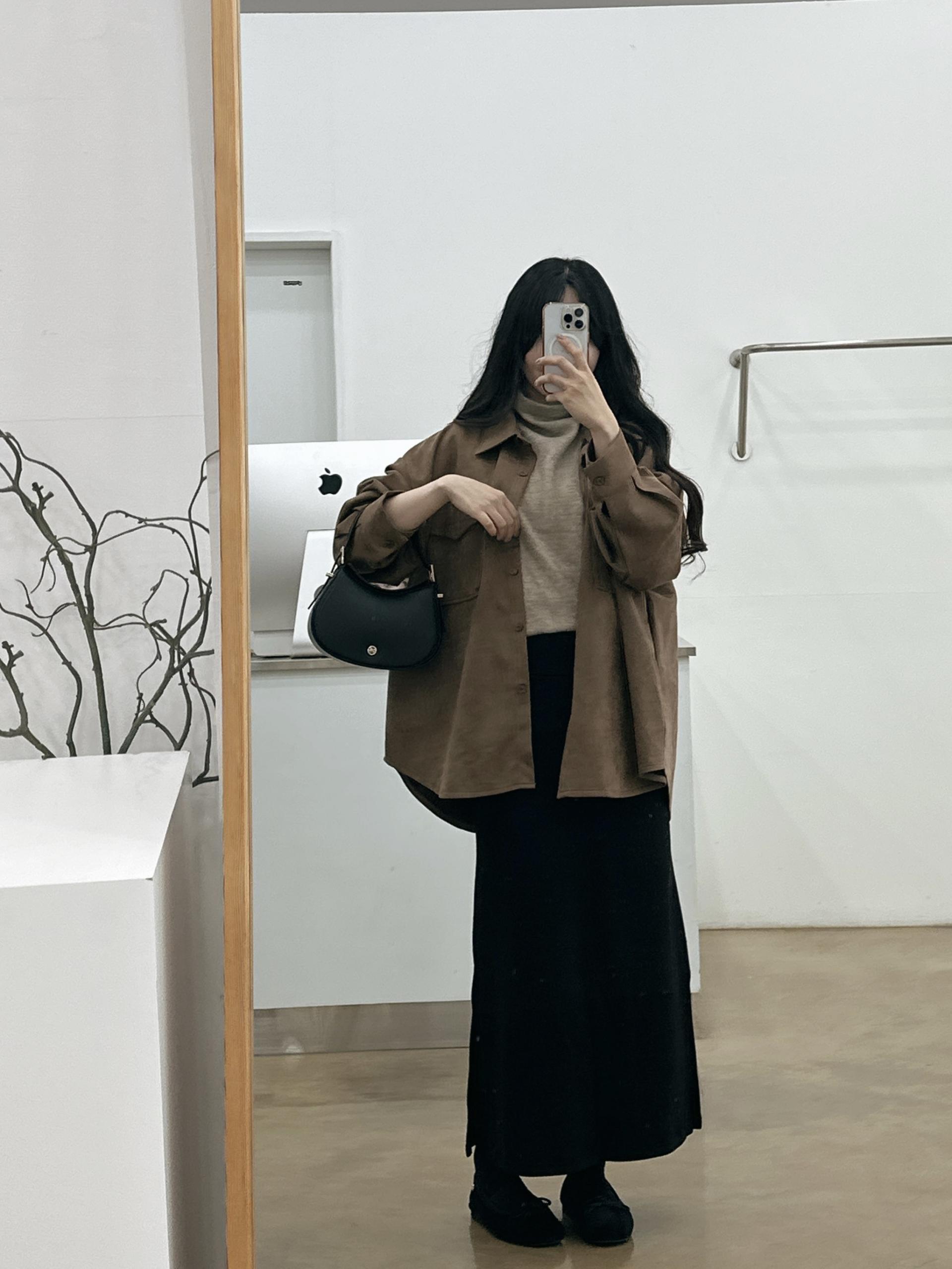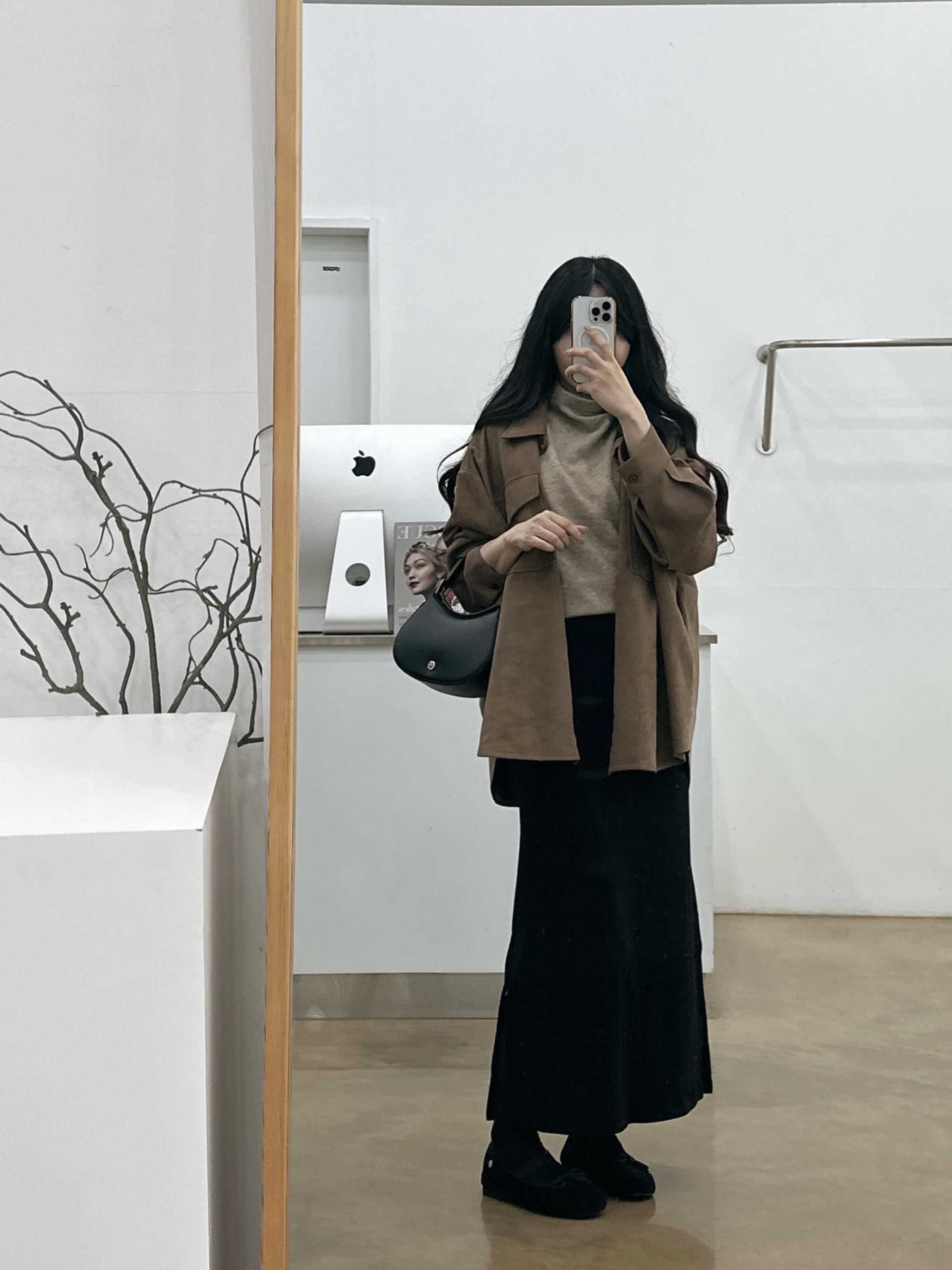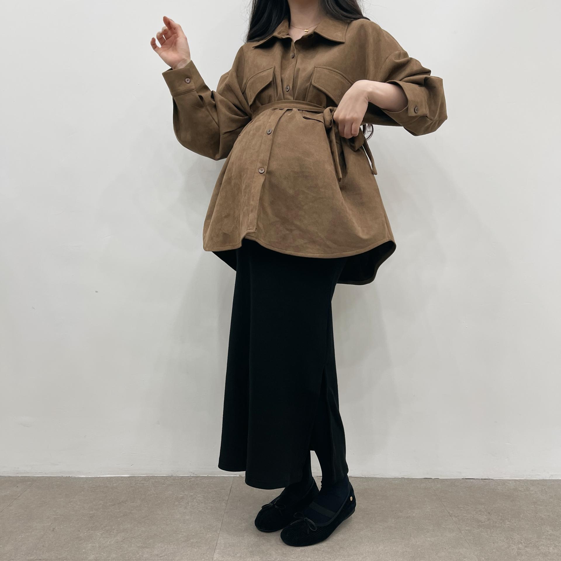 자켓처럼 루즈하게 걸치듯이 코디했을 때 (+임부기모트임롱스커트/심플반목니트)