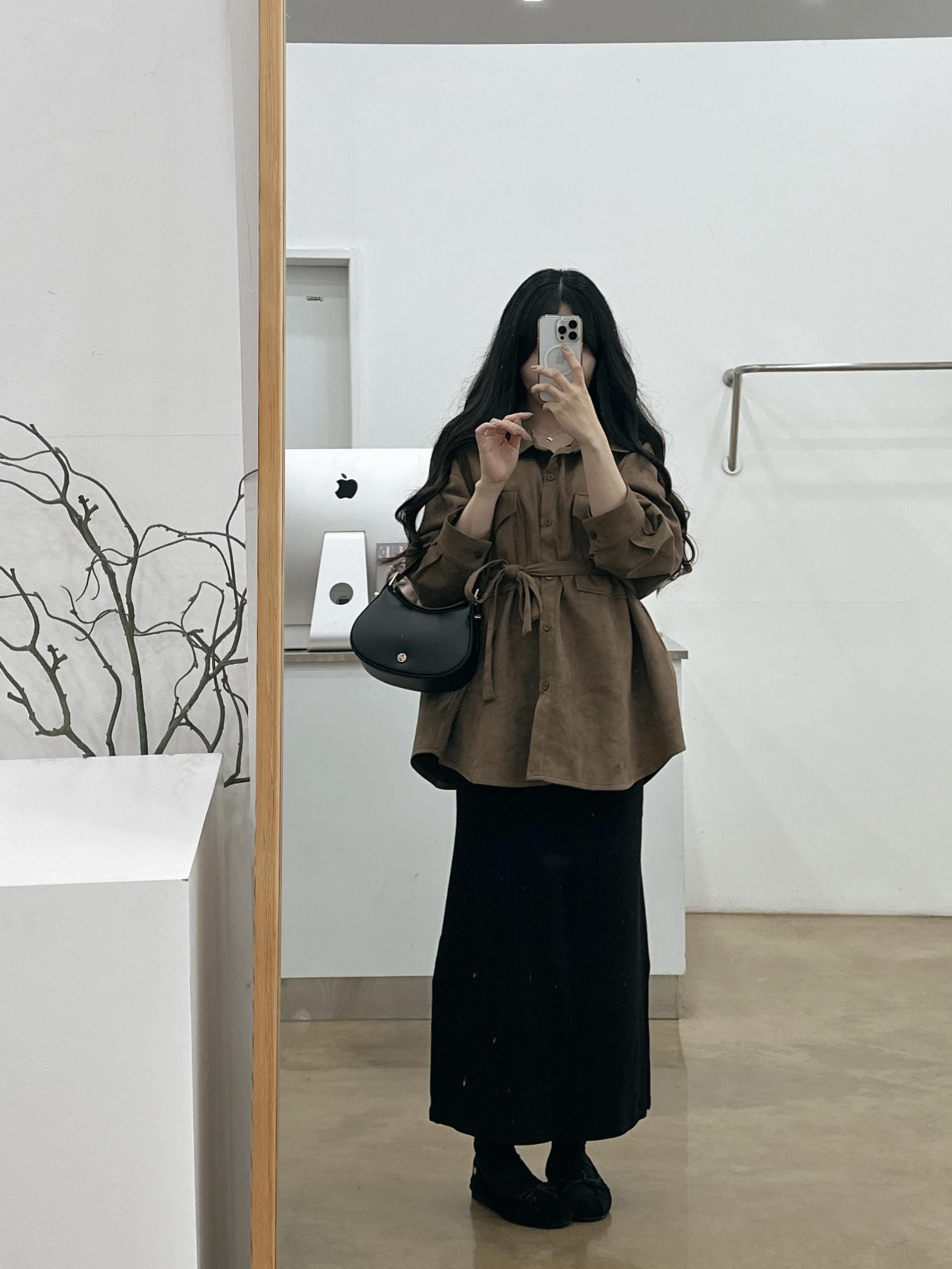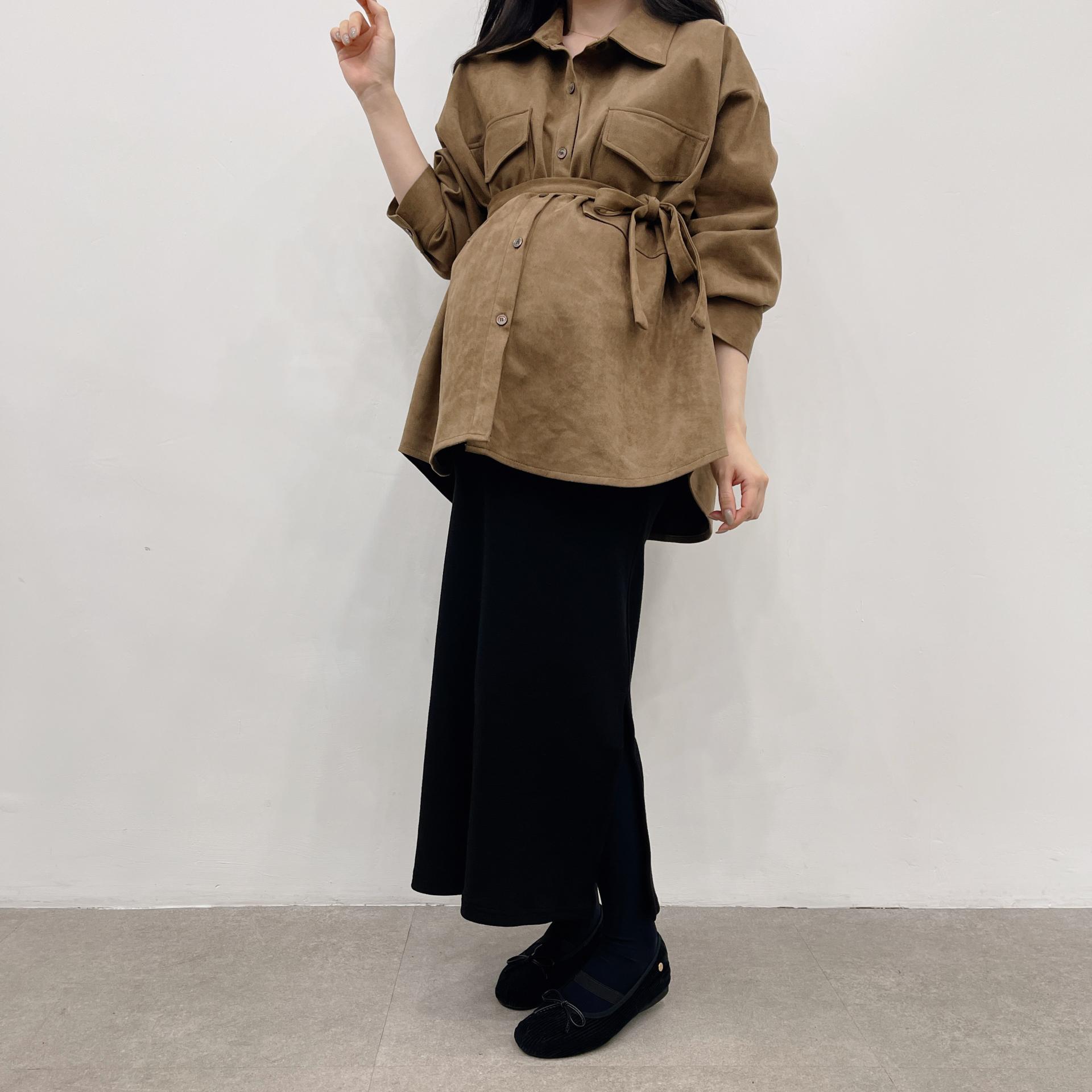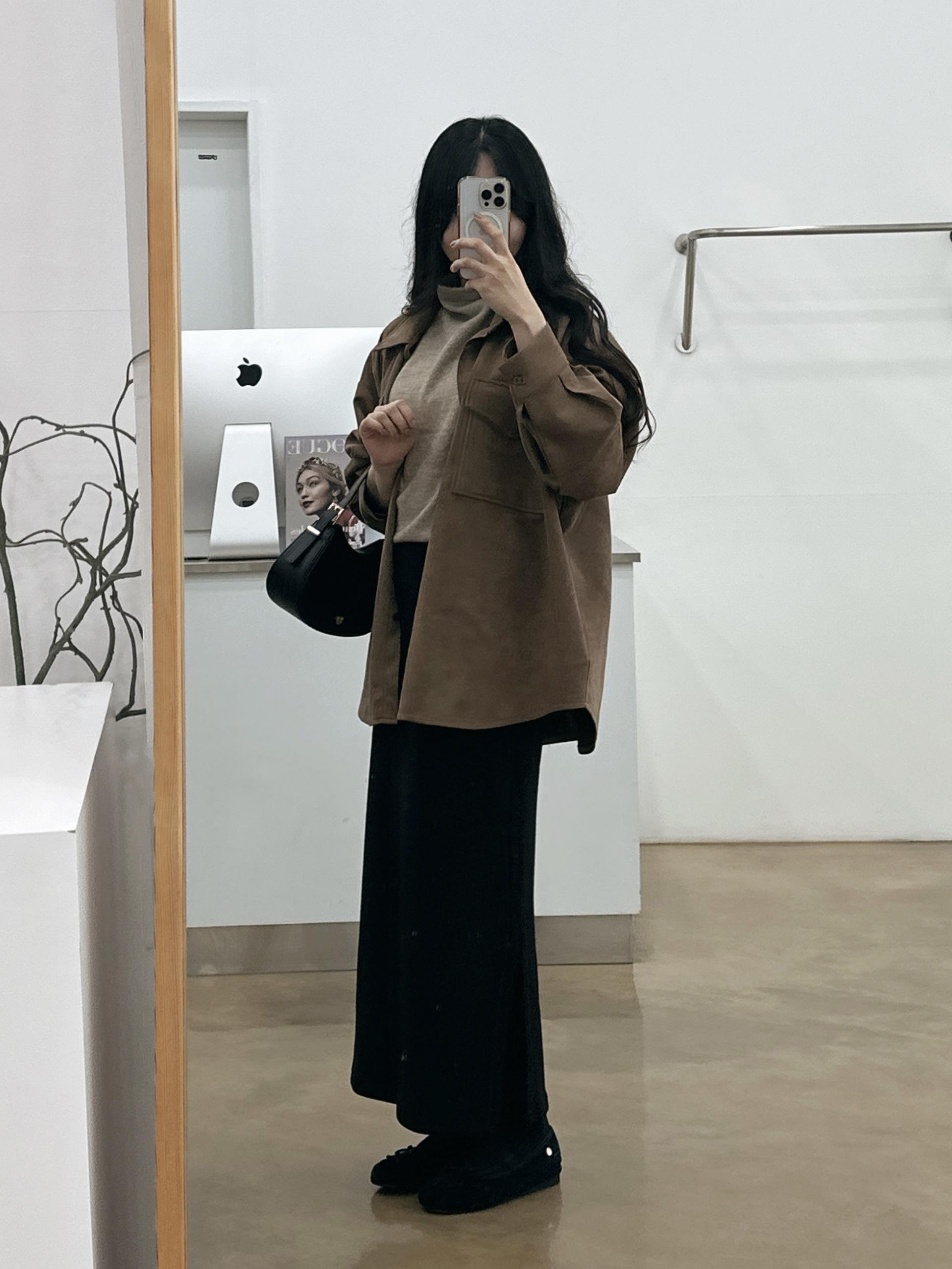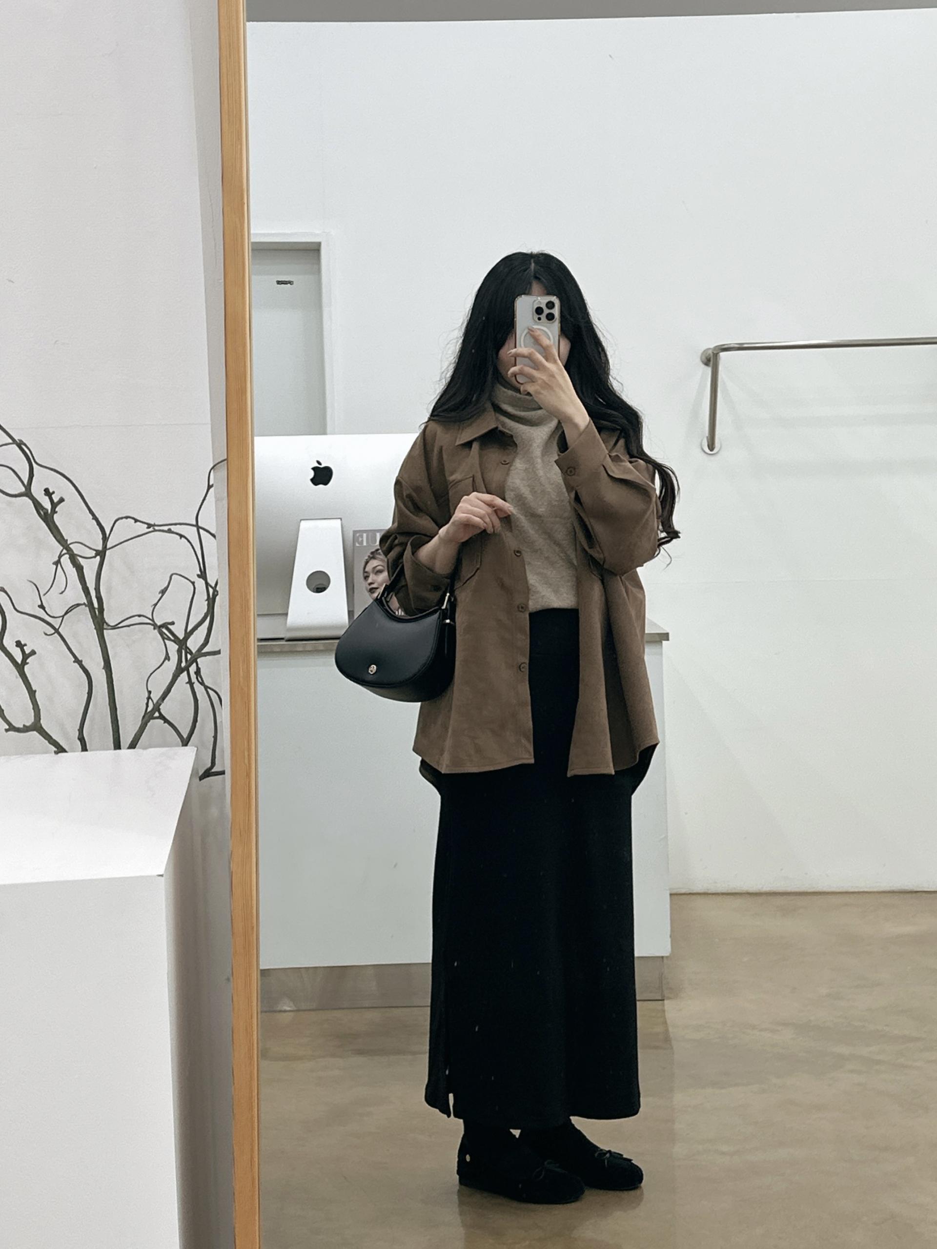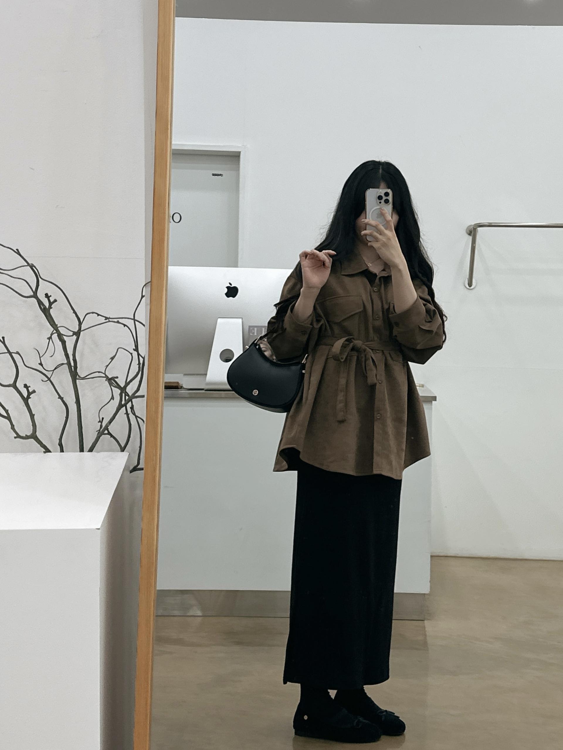 자켓처럼 루즈하게 걸치듯이 코디했을 때 (+임부기모트임롱스커트/심플반목니트)