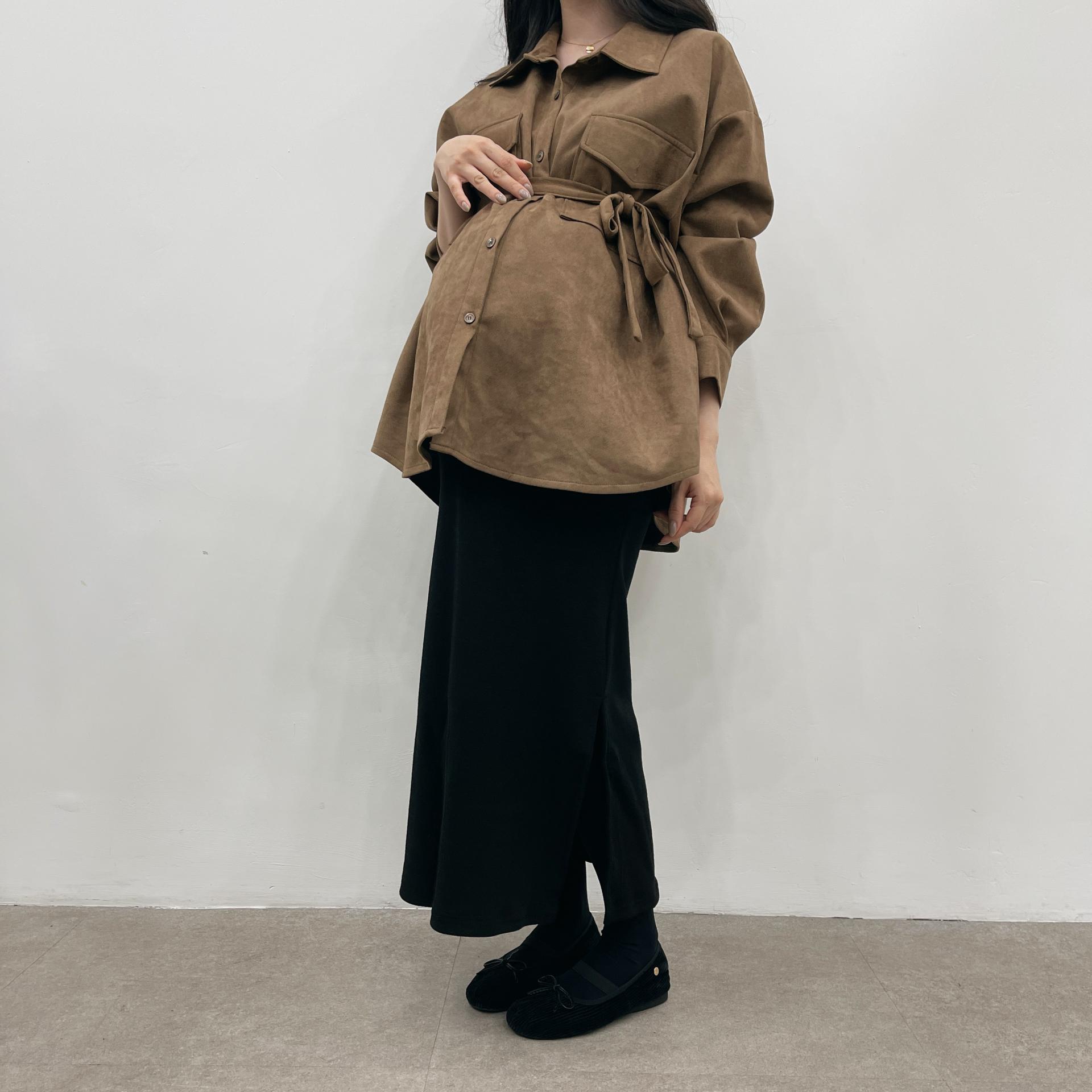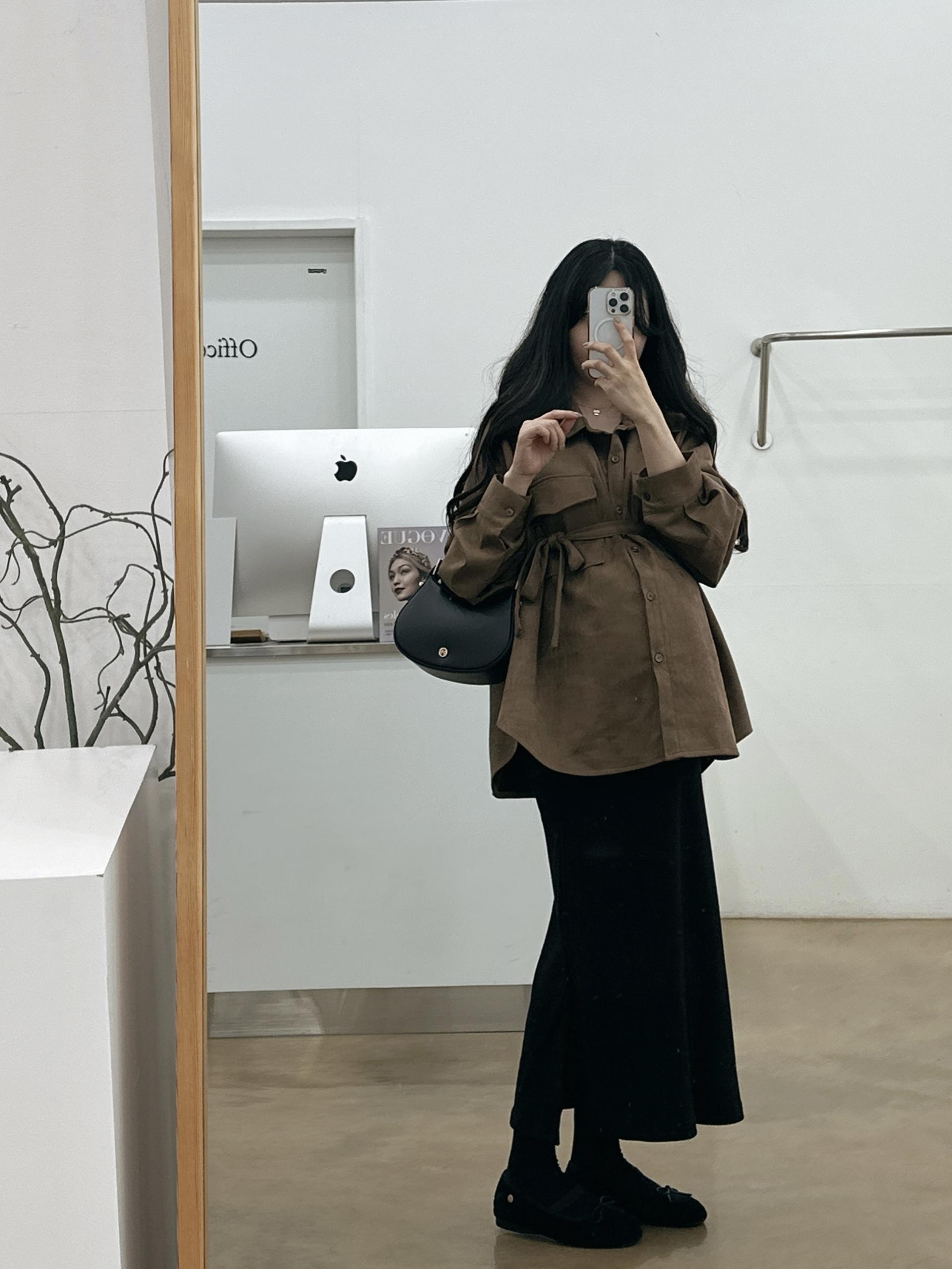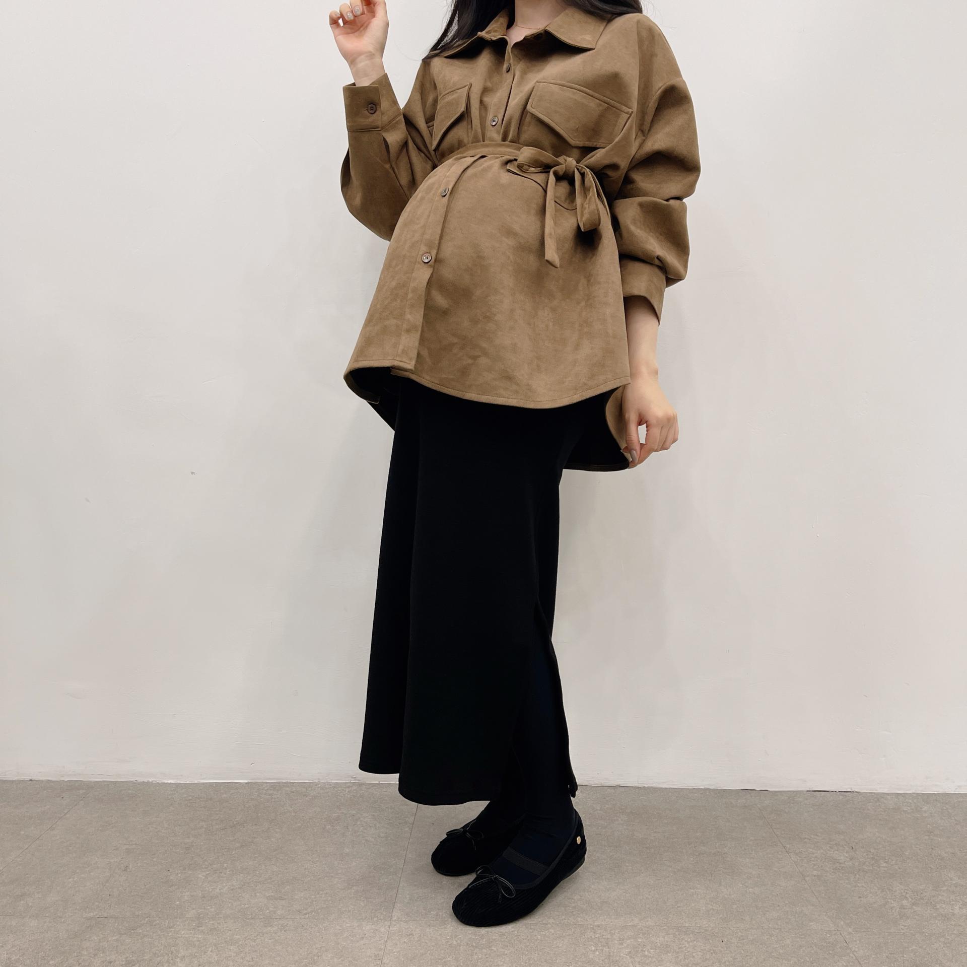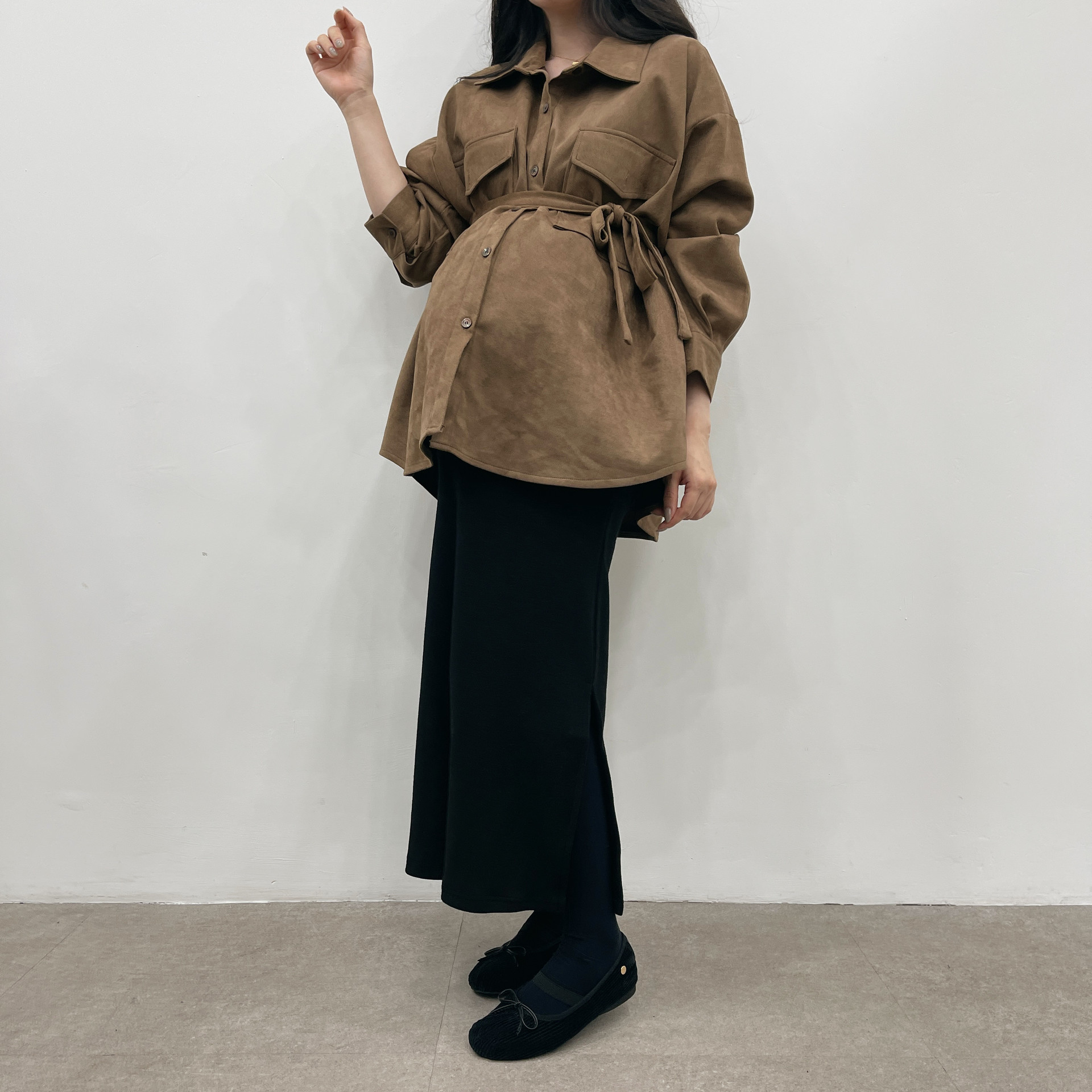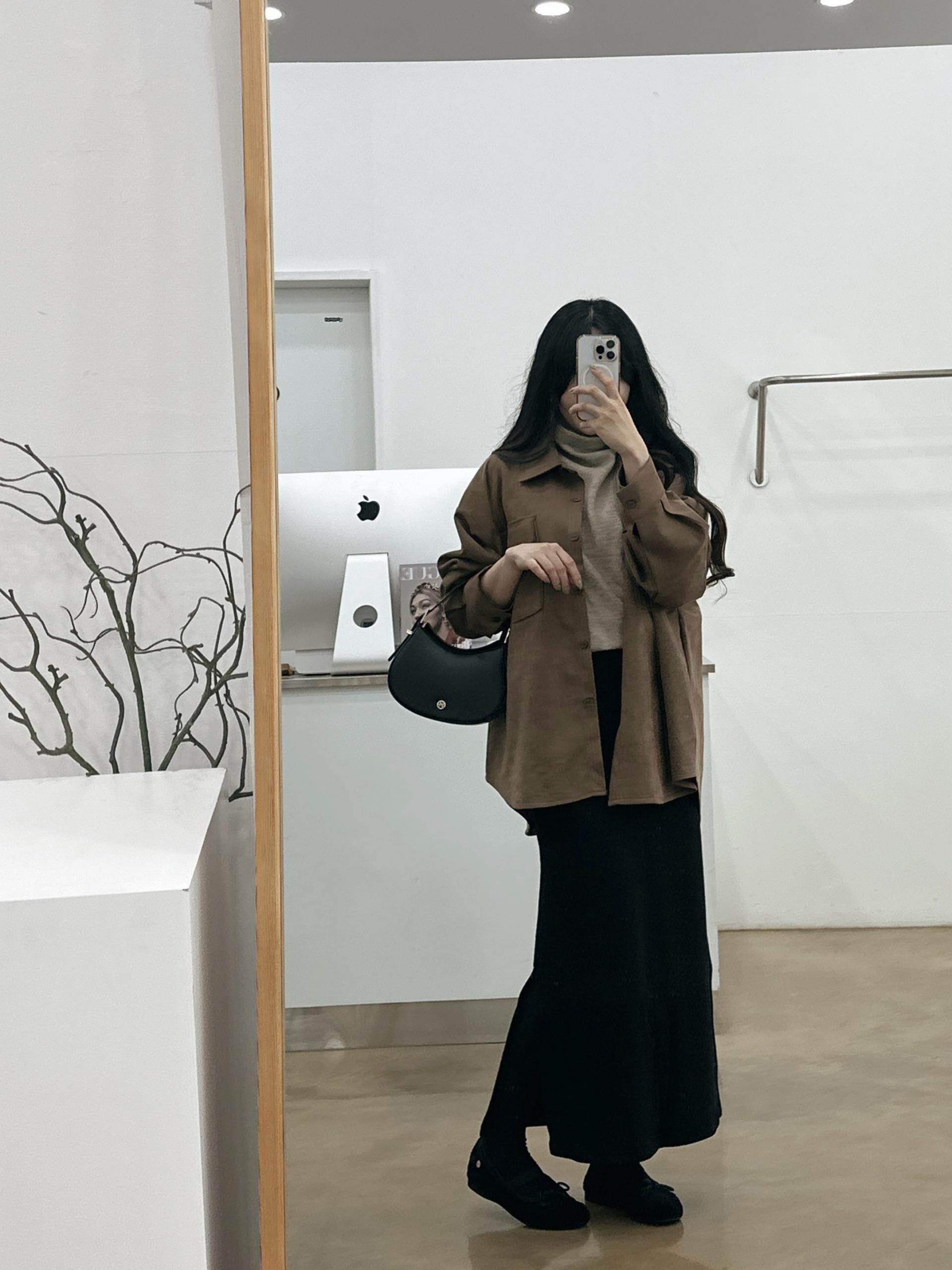 자켓처럼 루즈하게 걸치듯이 코디했을 때 (+임부기모트임롱스커트/심플반목니트)