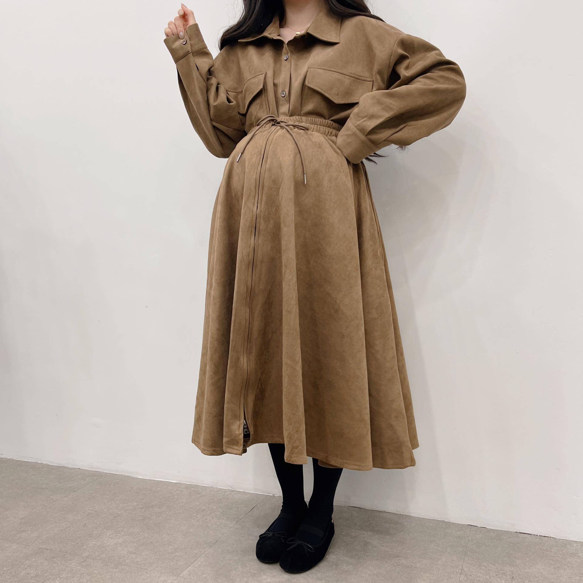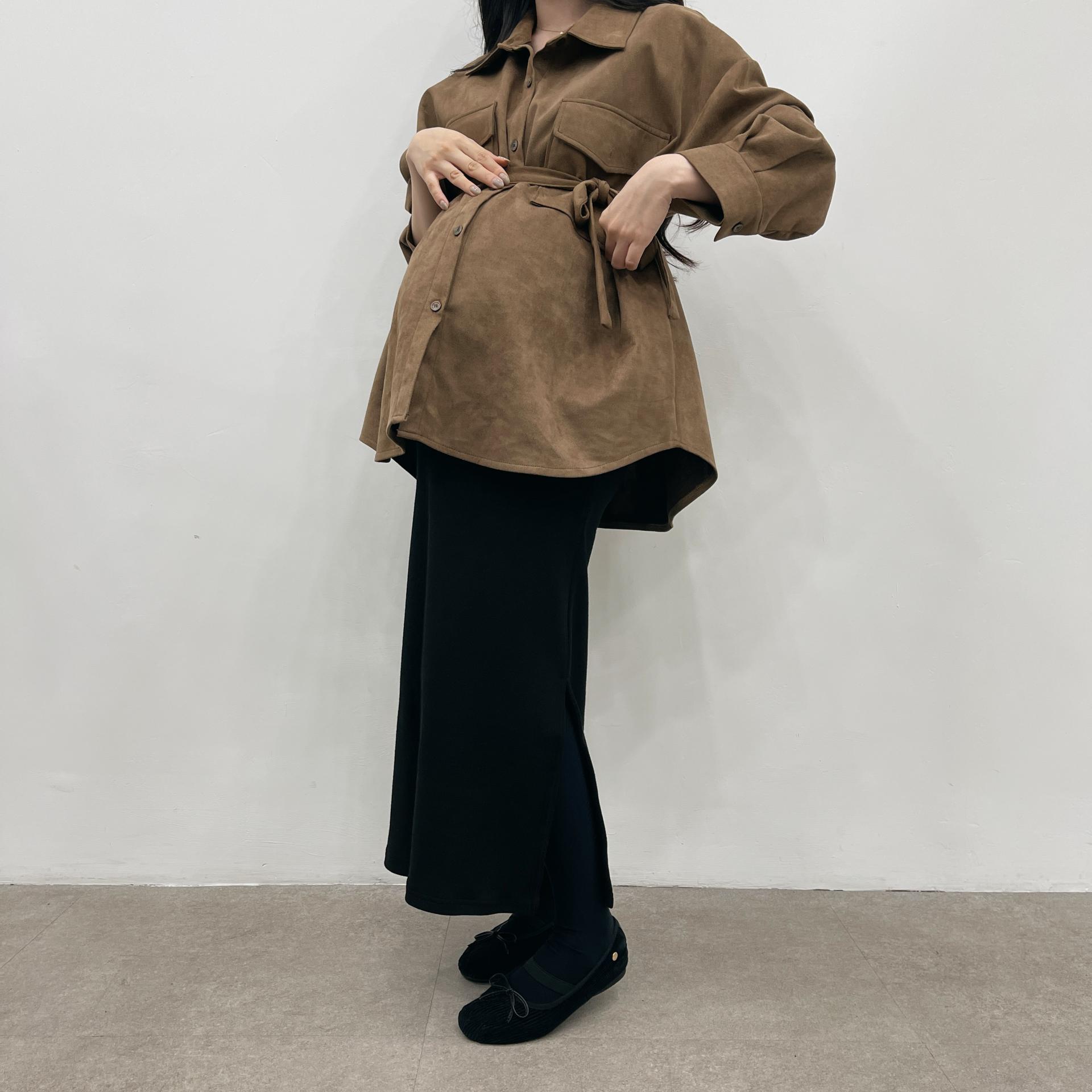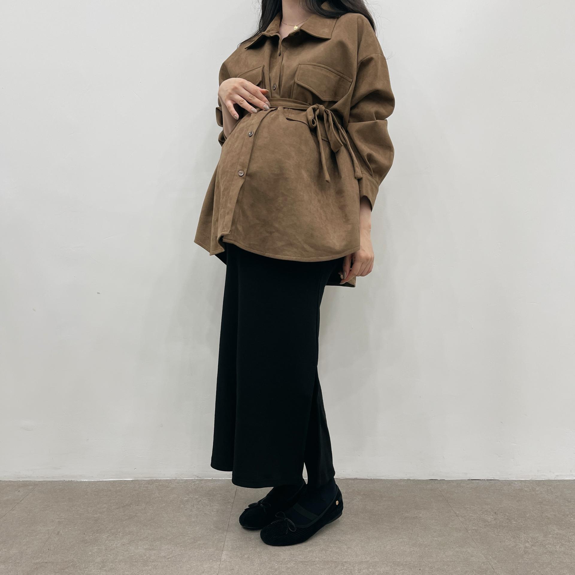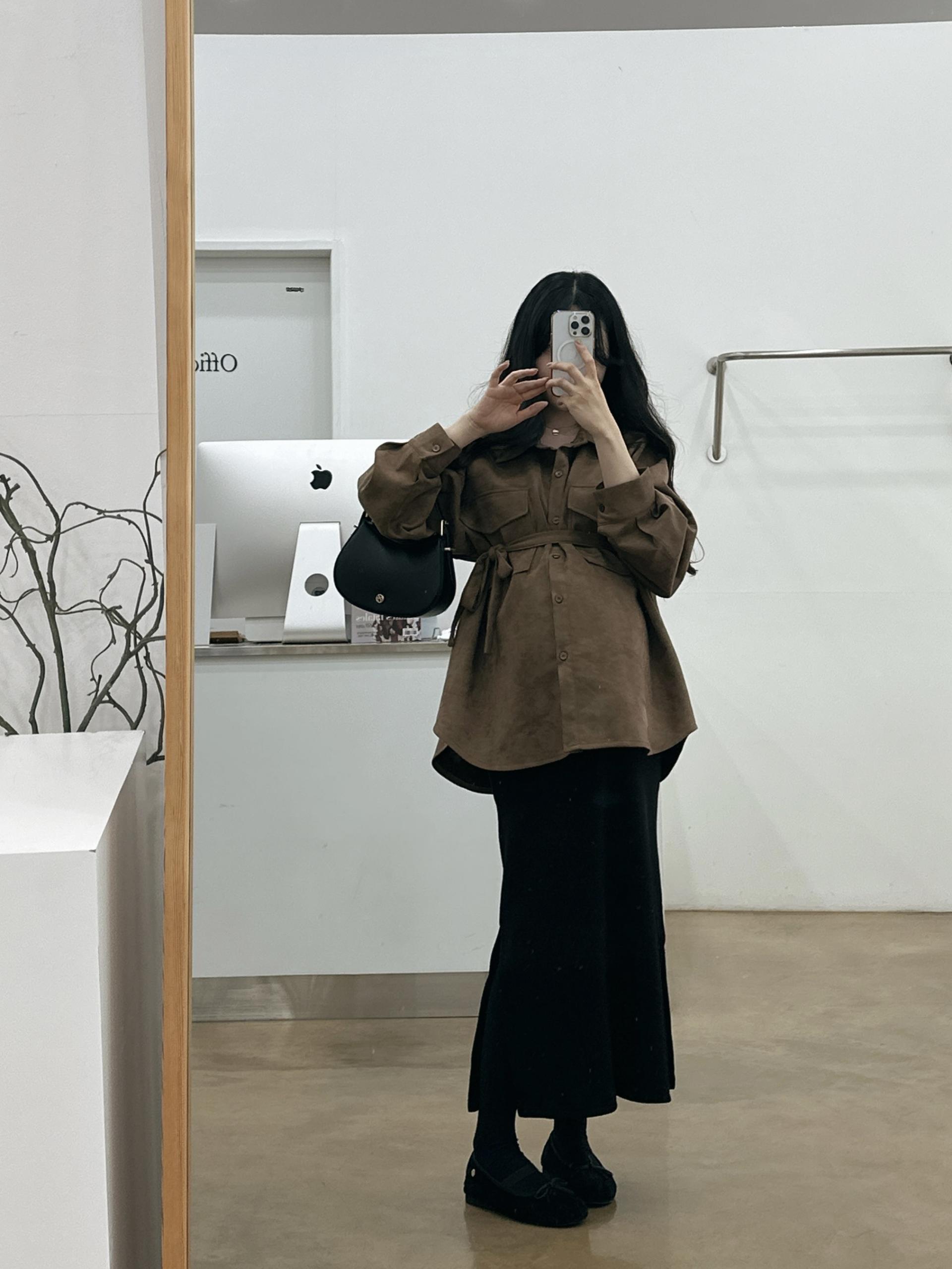 자켓처럼 루즈하게 걸치듯이 코디했을 때 (+임부기모트임롱스커트/심플반목니트)