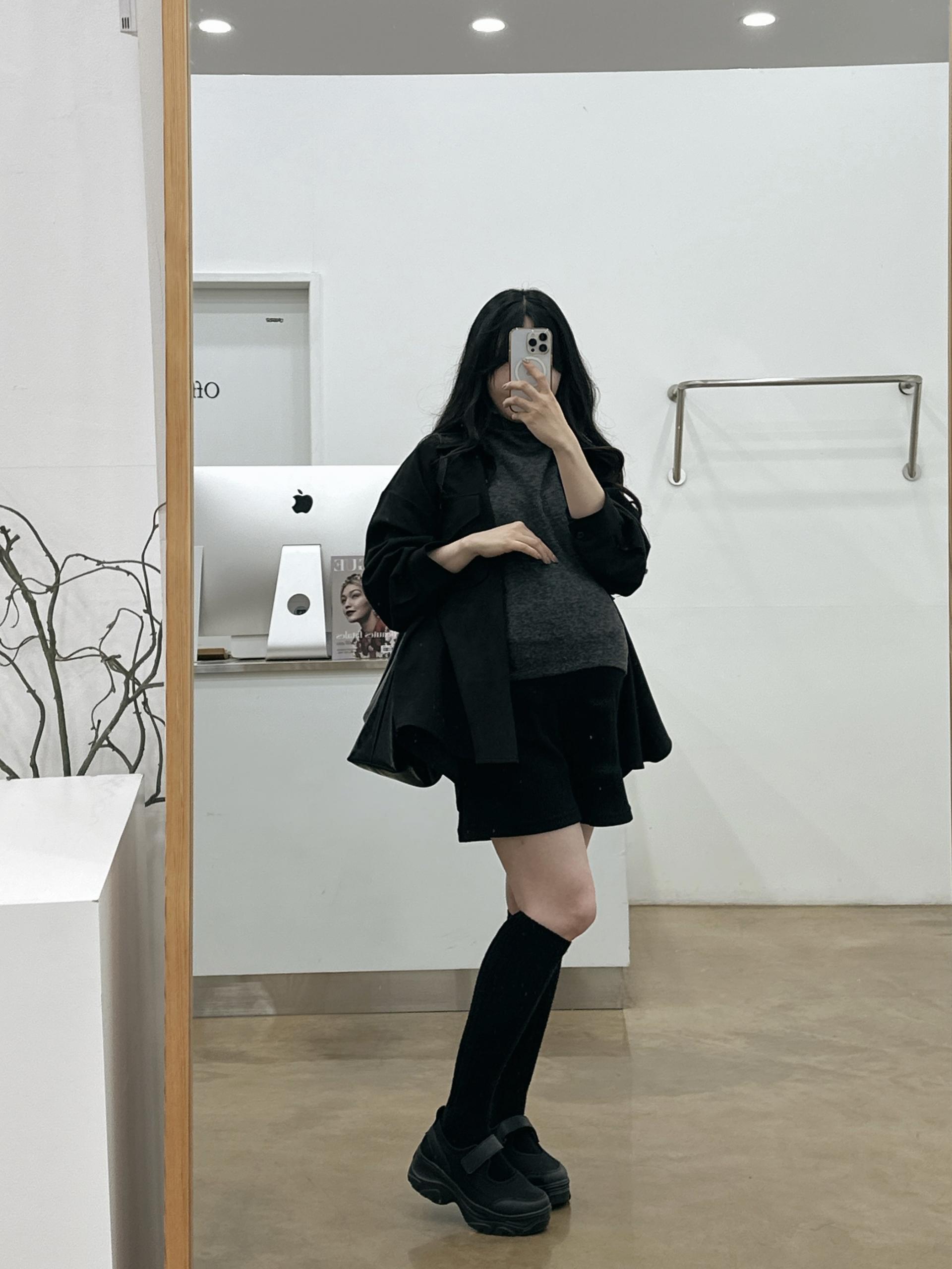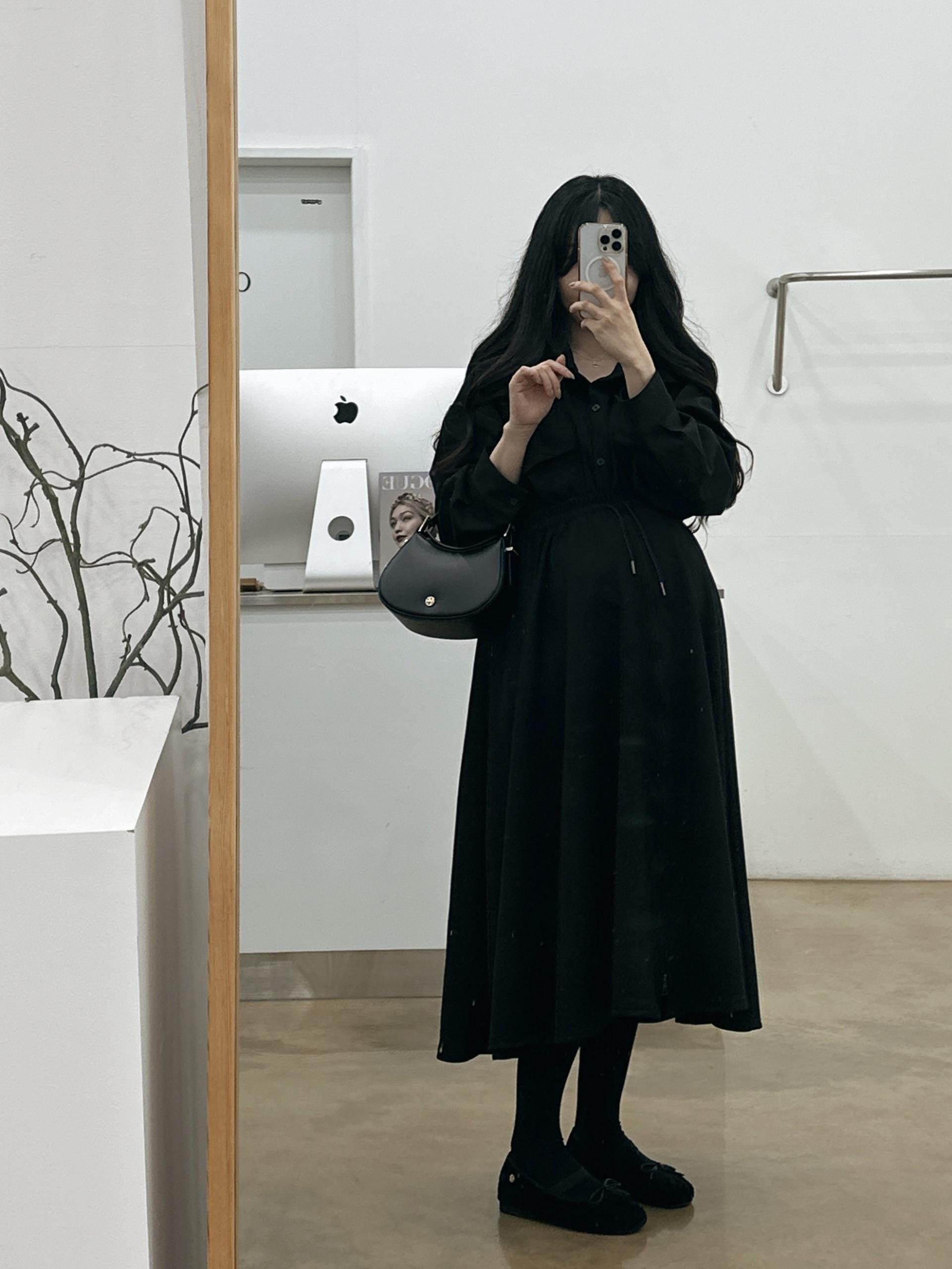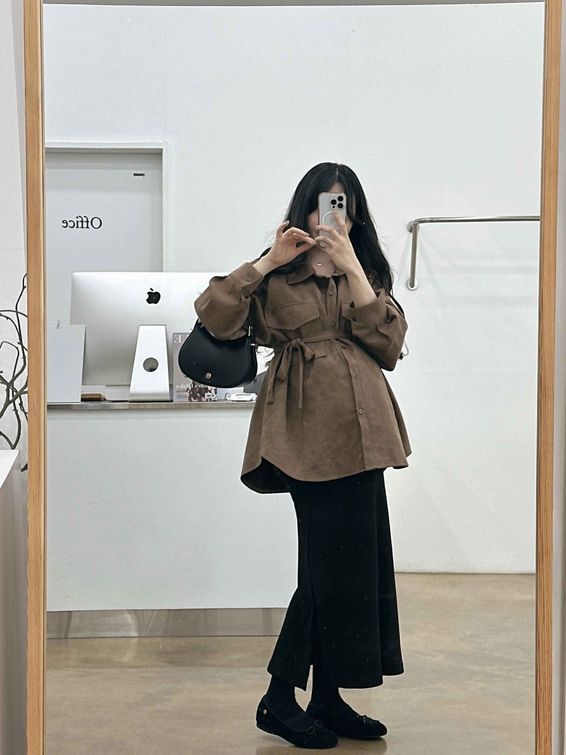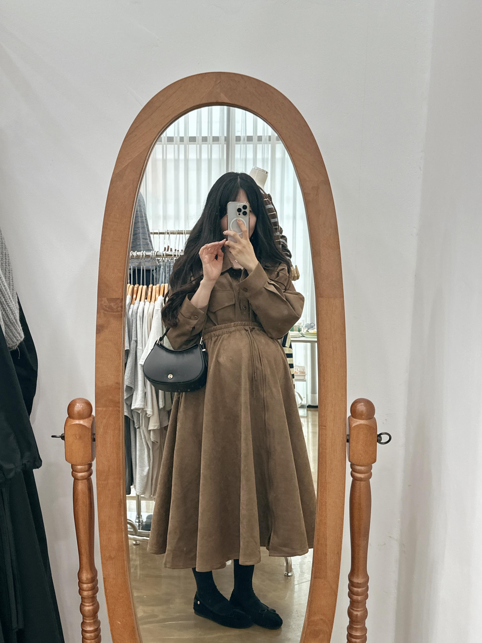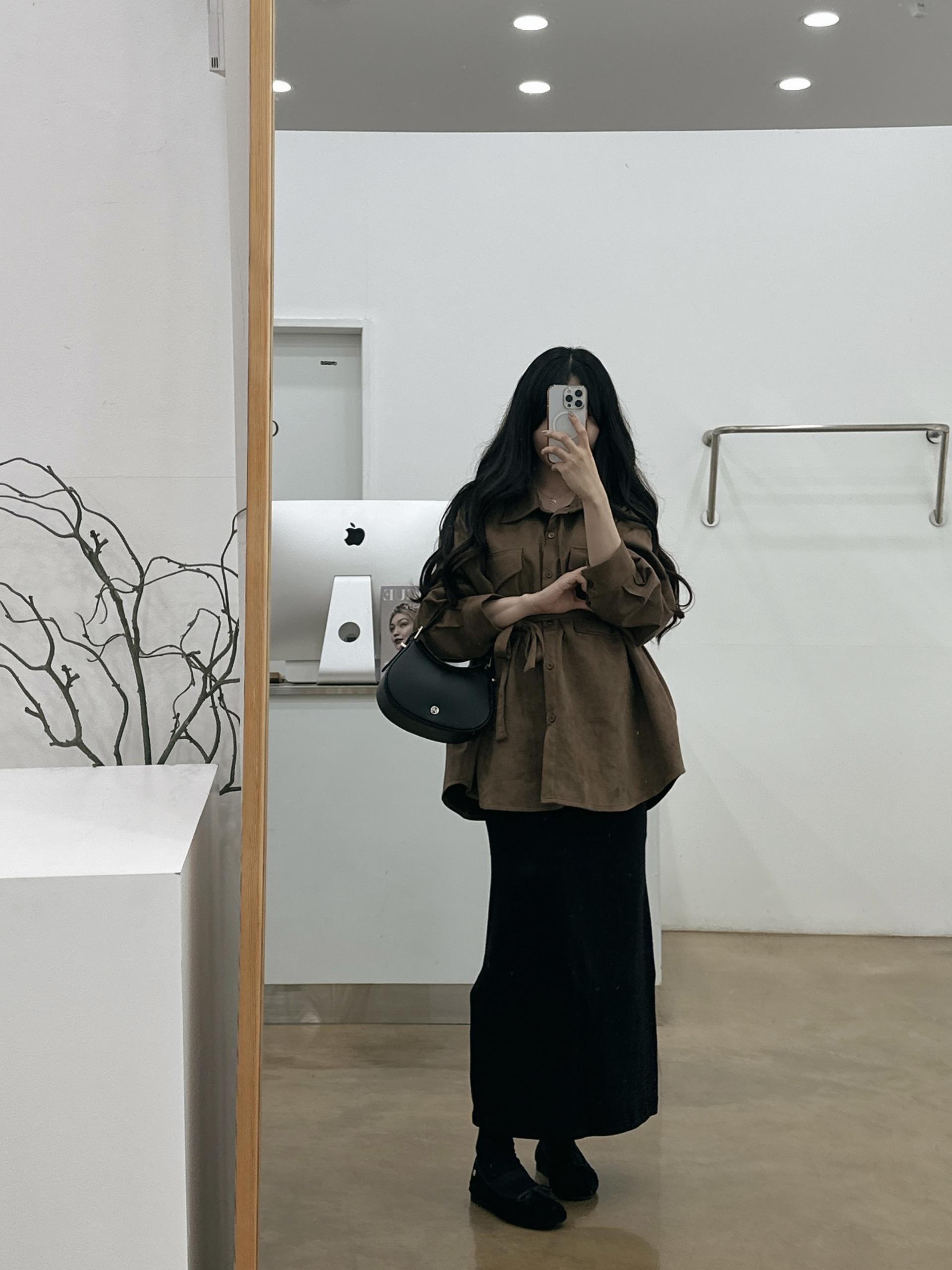 자켓처럼 루즈하게 걸치듯이 코디했을 때 (+임부기모트임롱스커트/심플반목니트)