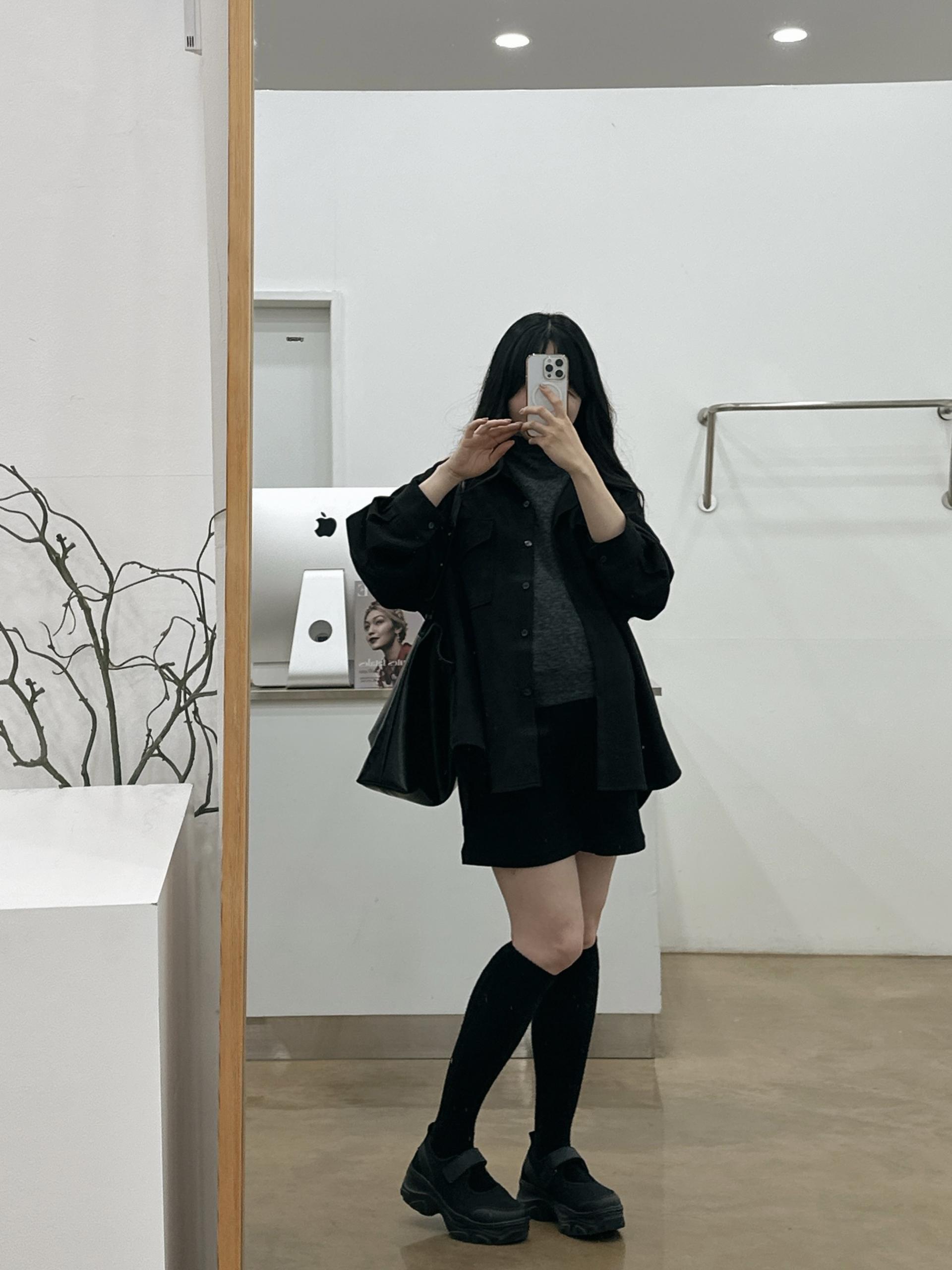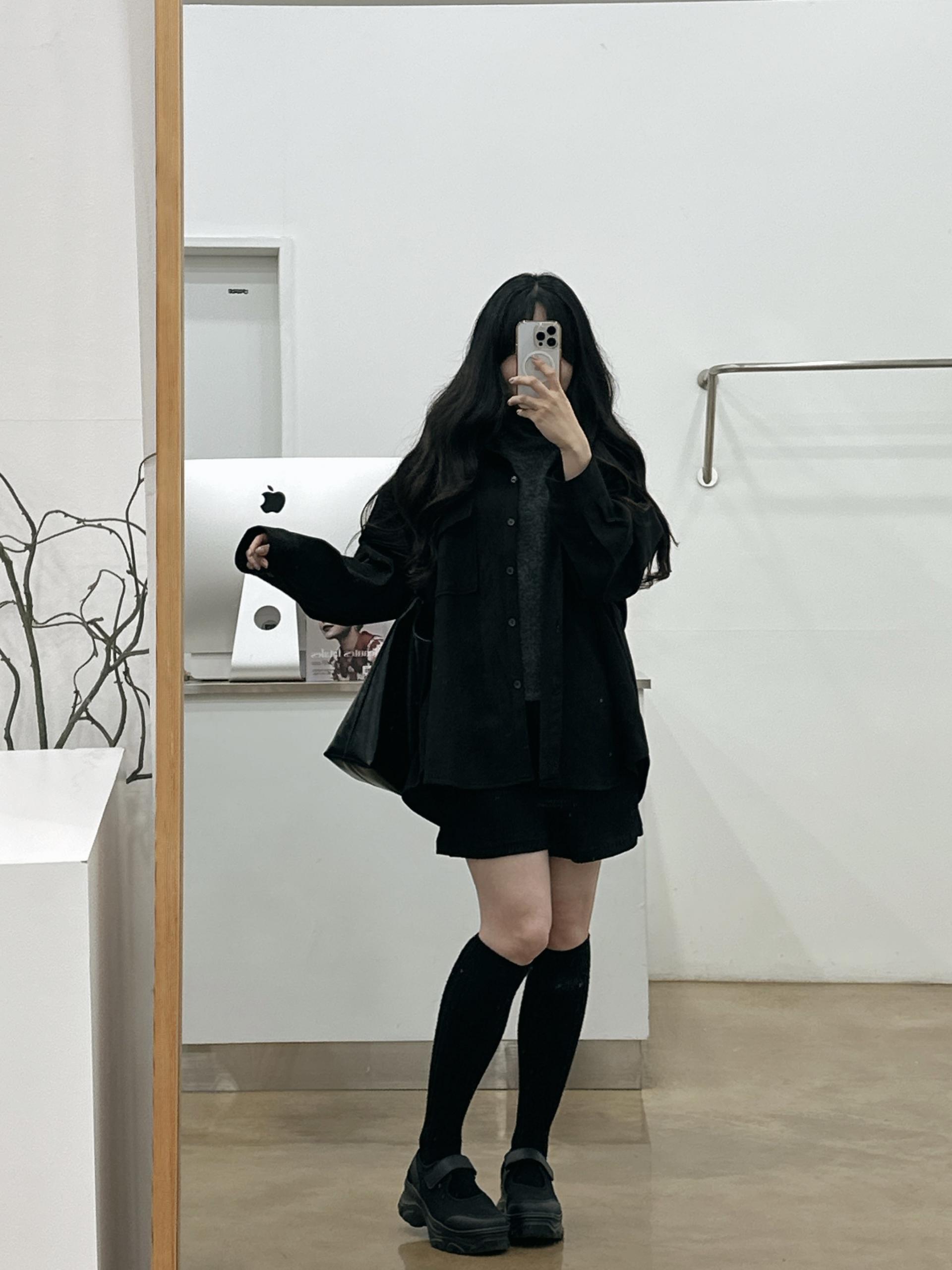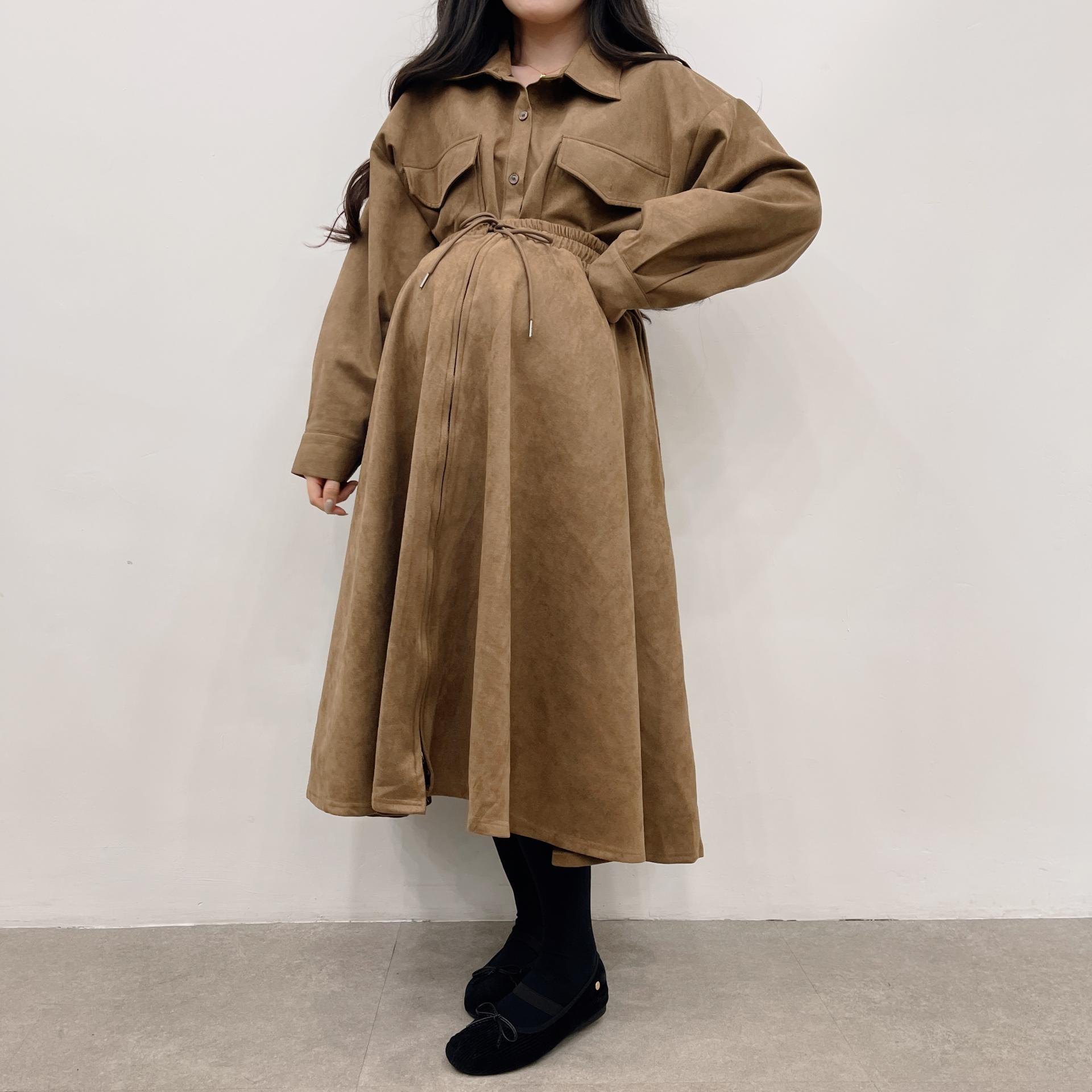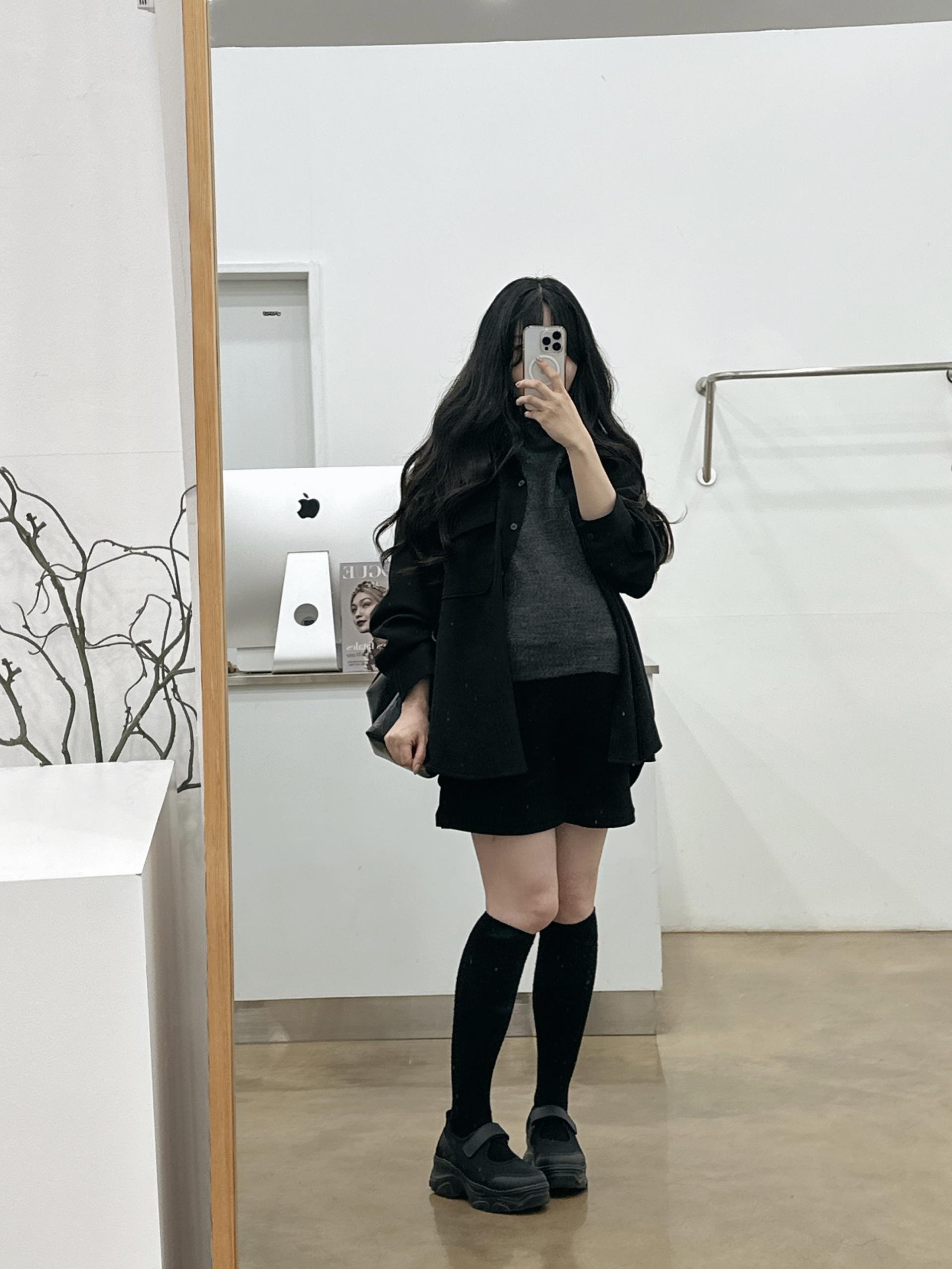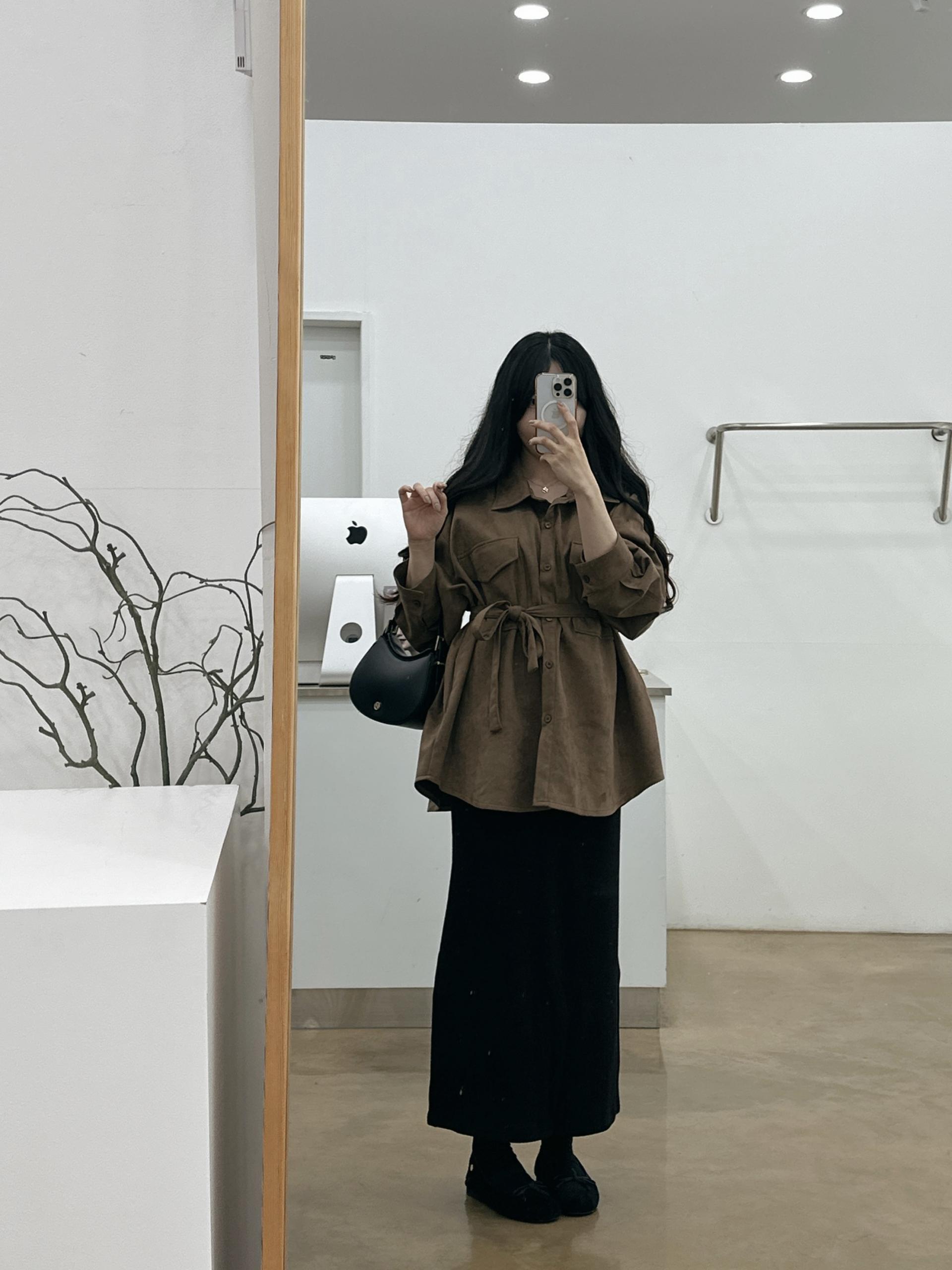 자켓처럼 루즈하게 걸치듯이 코디했을 때 (+임부기모트임롱스커트/심플반목니트)