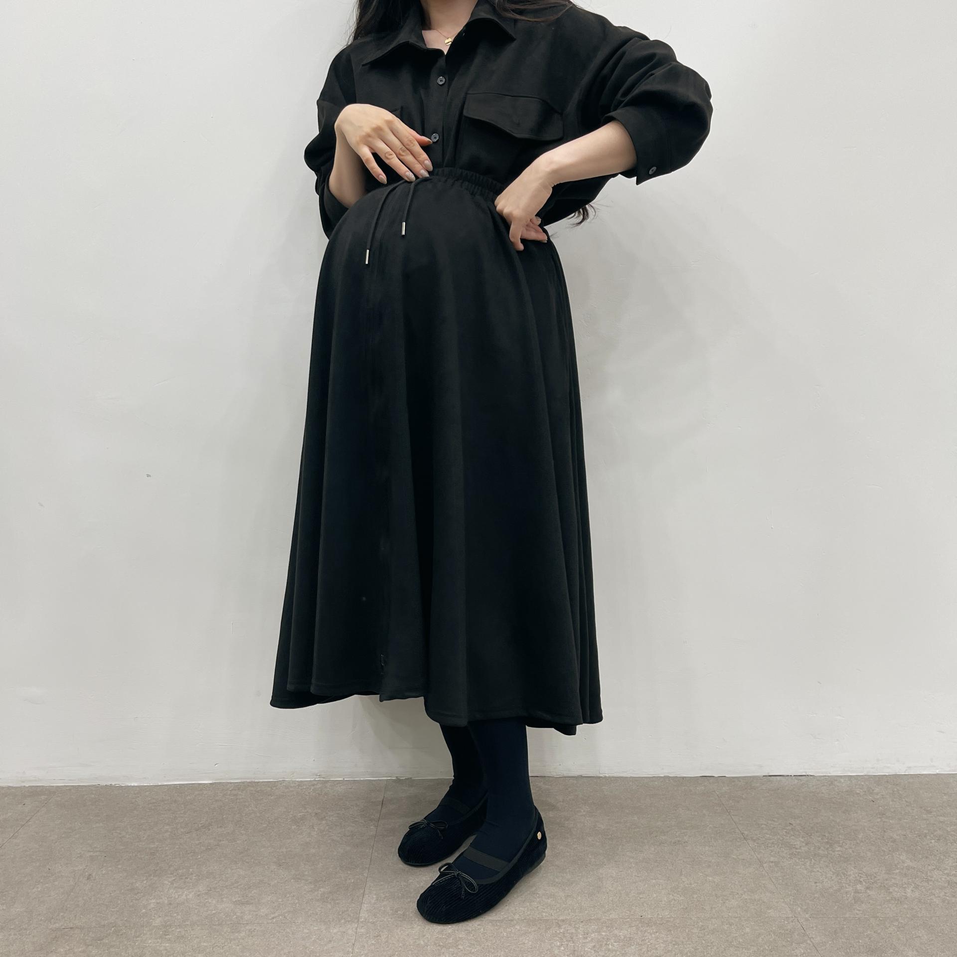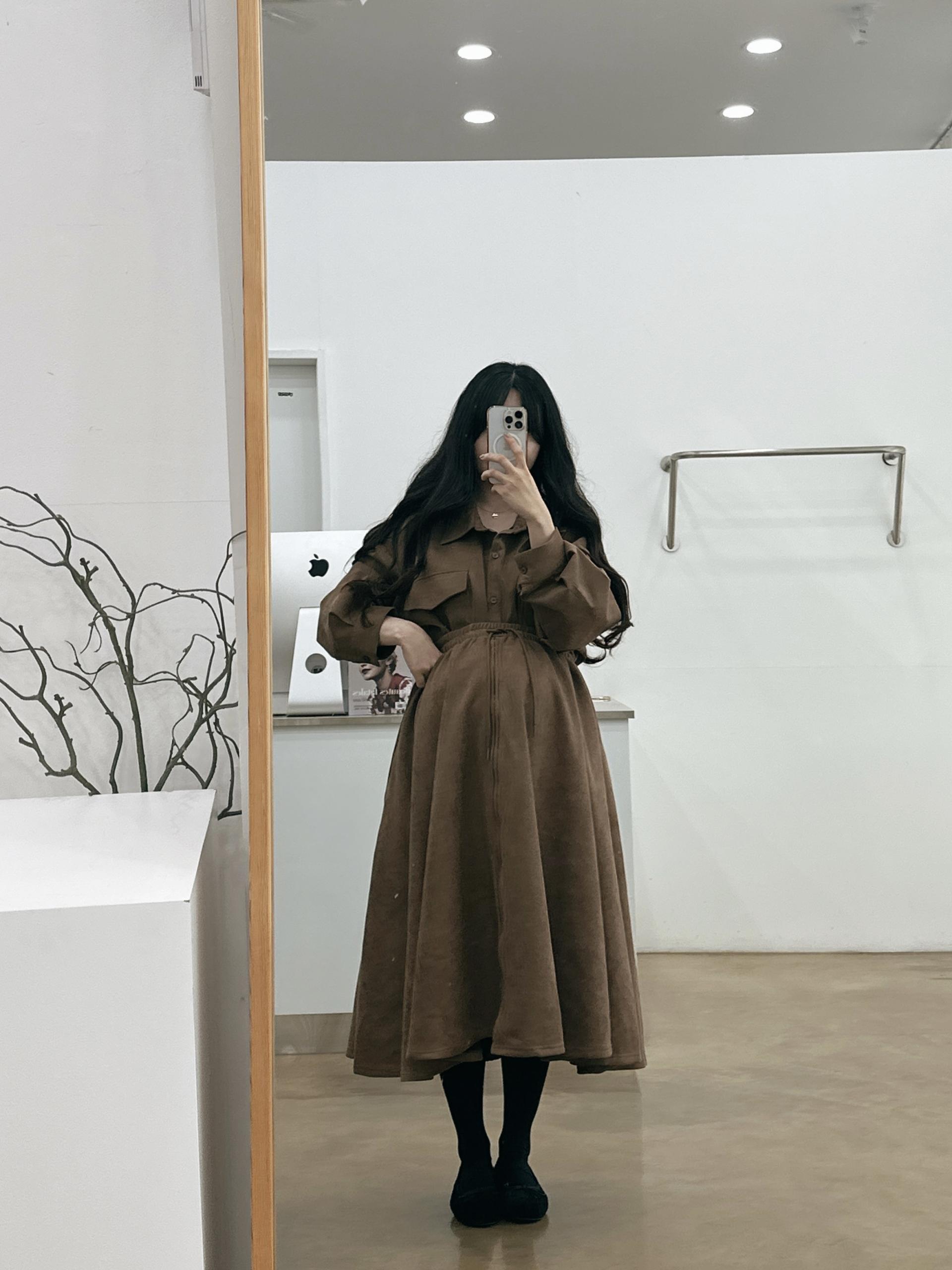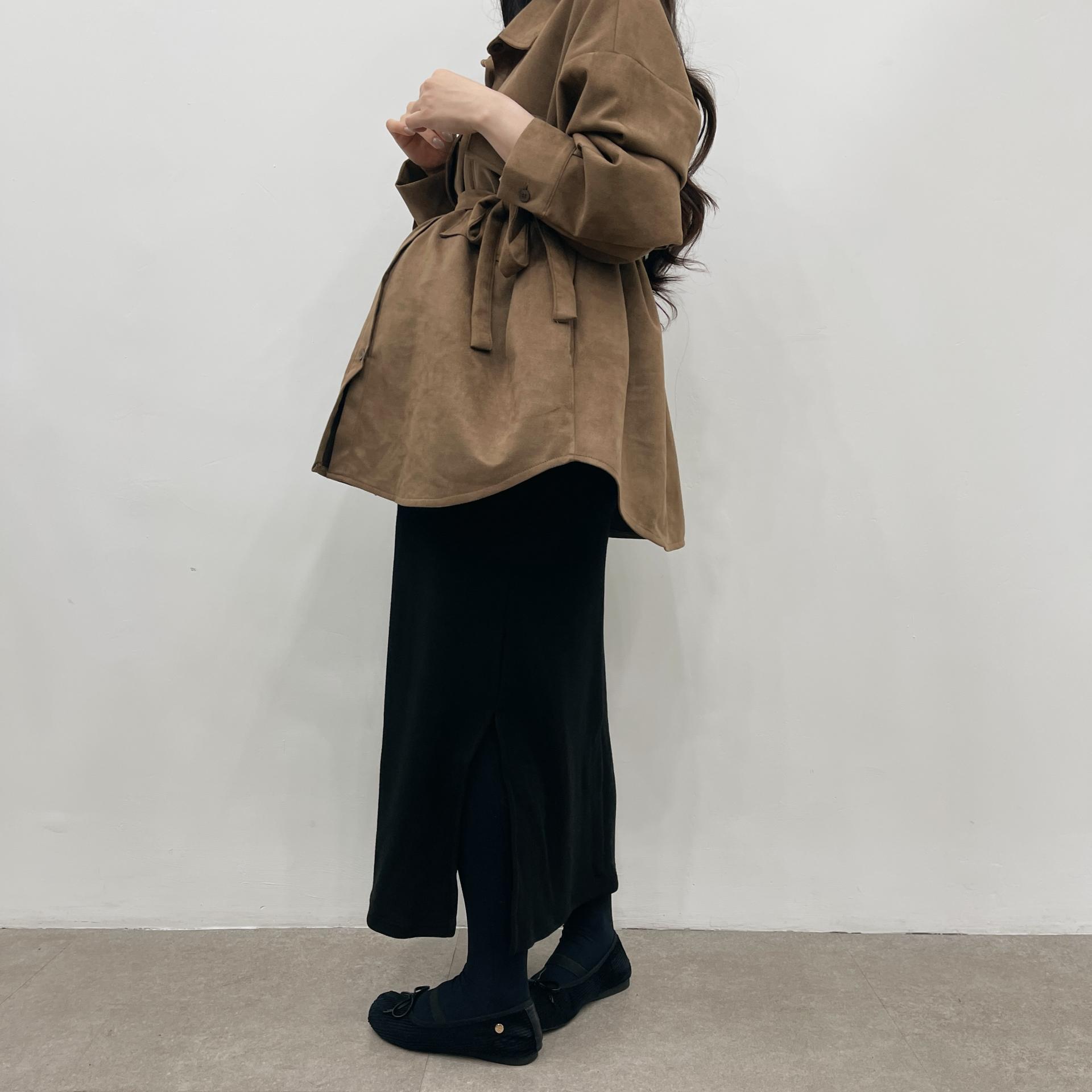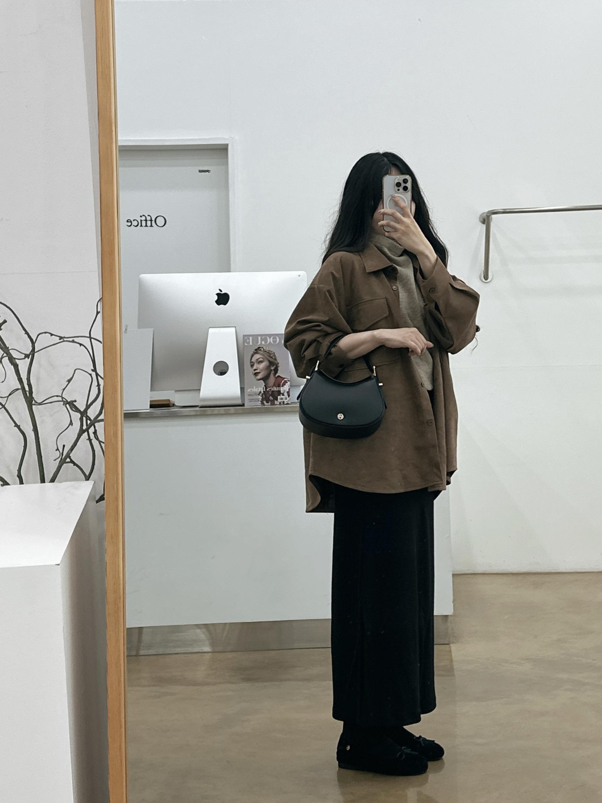 자켓처럼 루즈하게 걸치듯이 코디했을 때 (+임부기모트임롱스커트/심플반목니트)