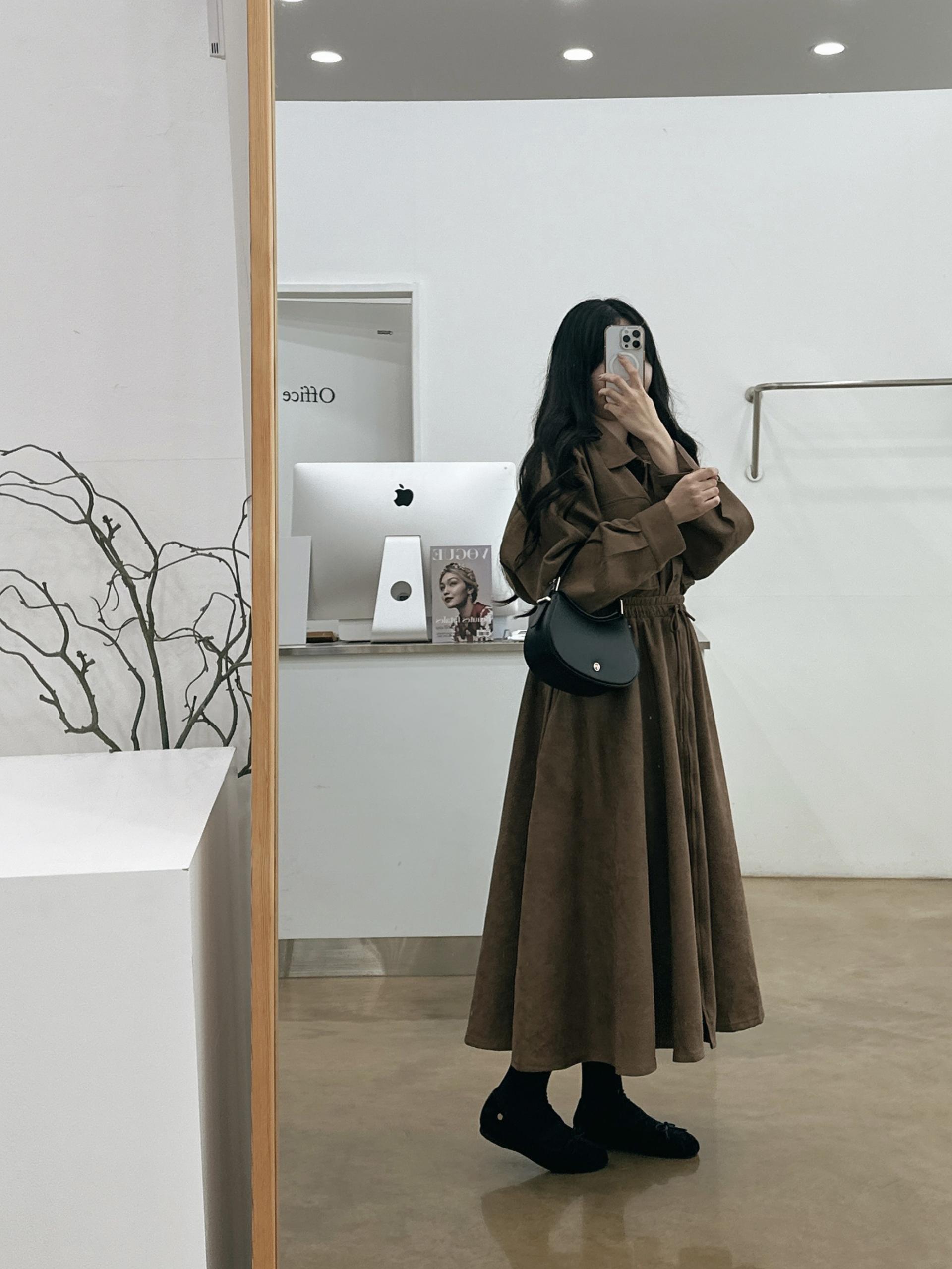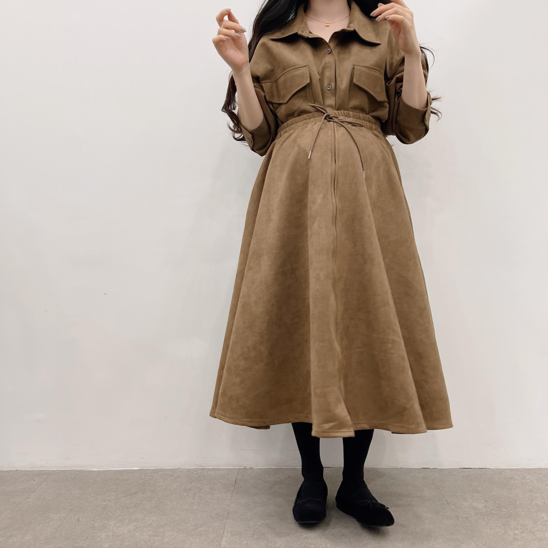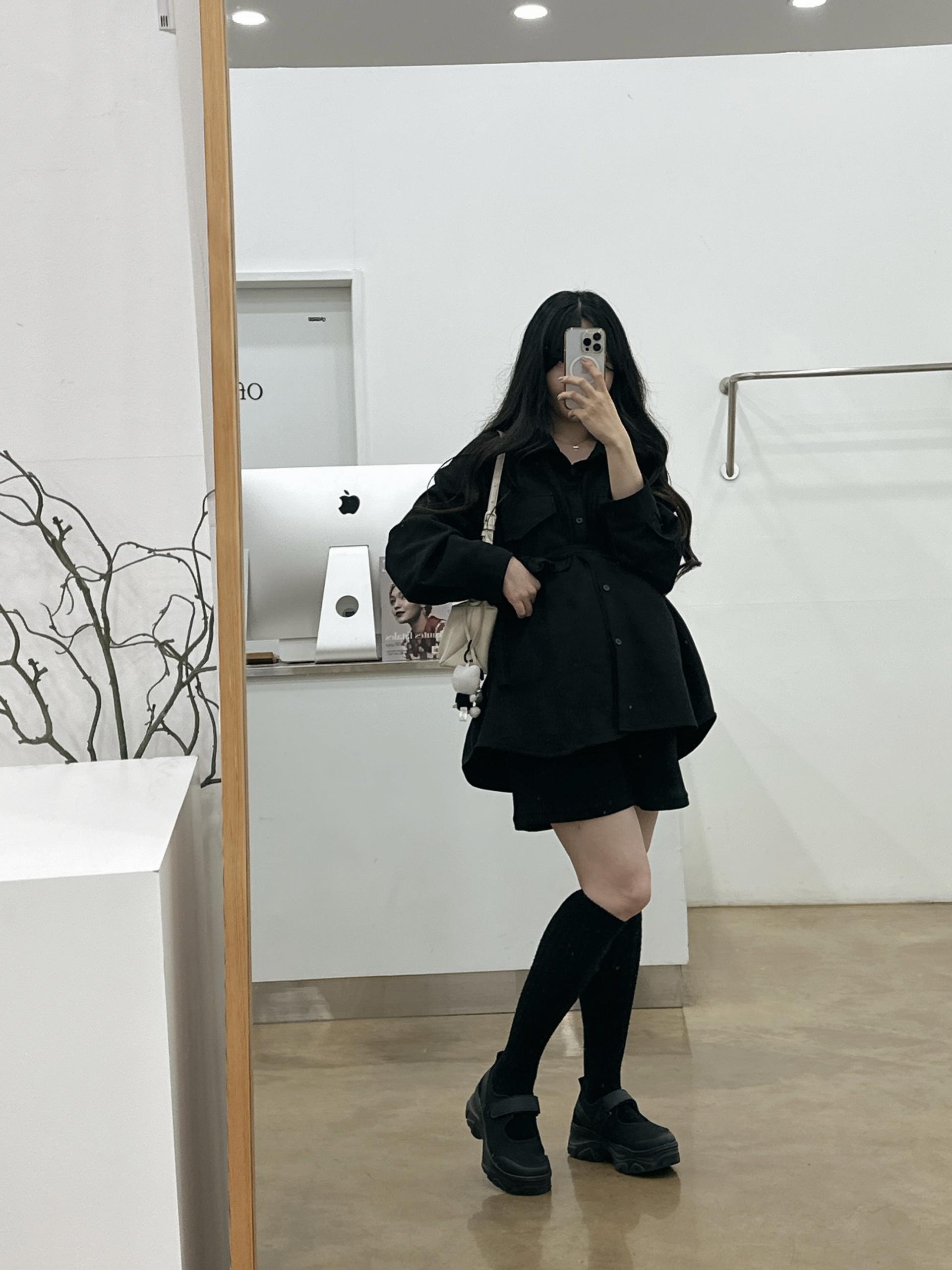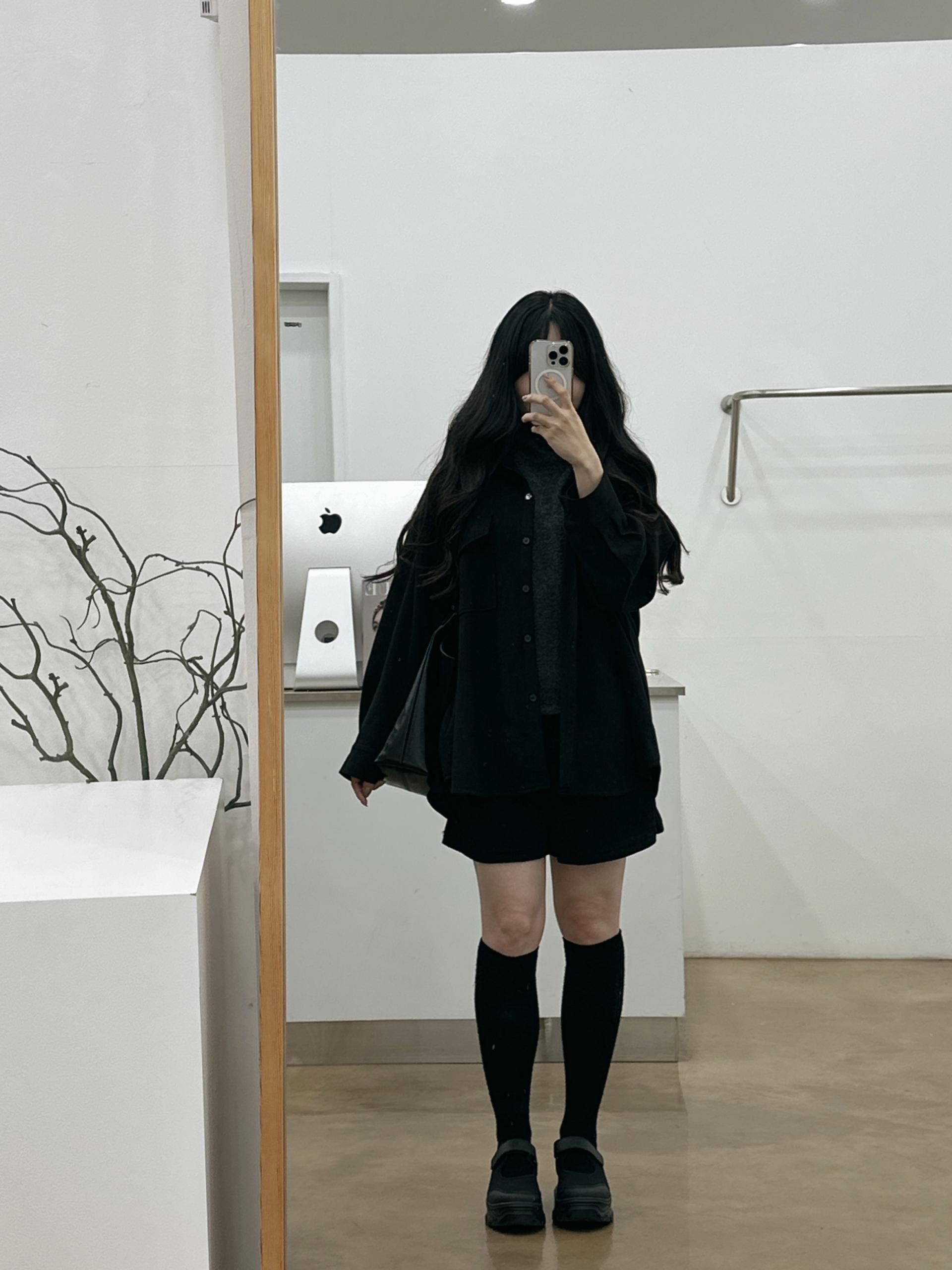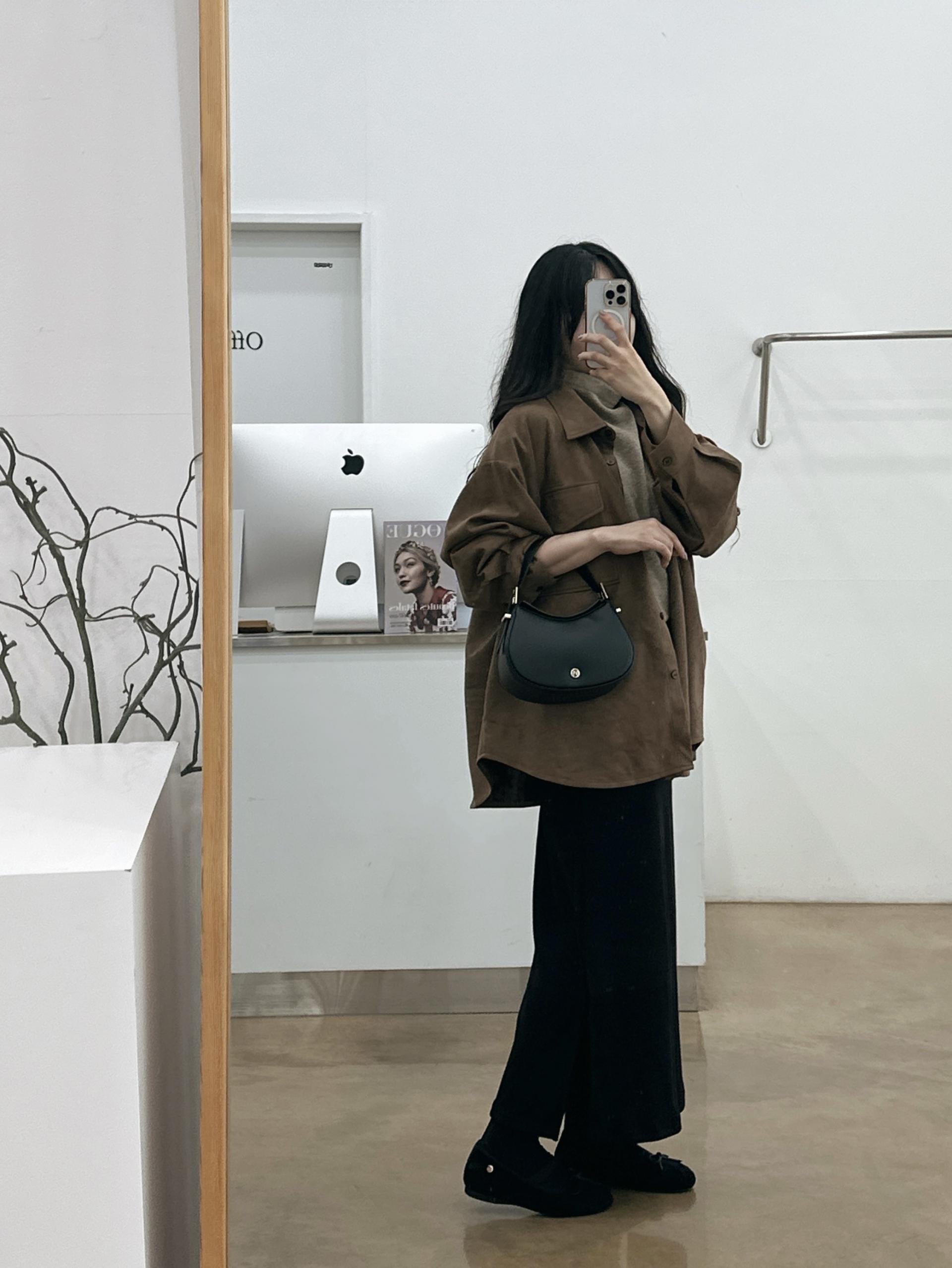 자켓처럼 루즈하게 걸치듯이 코디했을 때 (+임부기모트임롱스커트/심플반목니트)