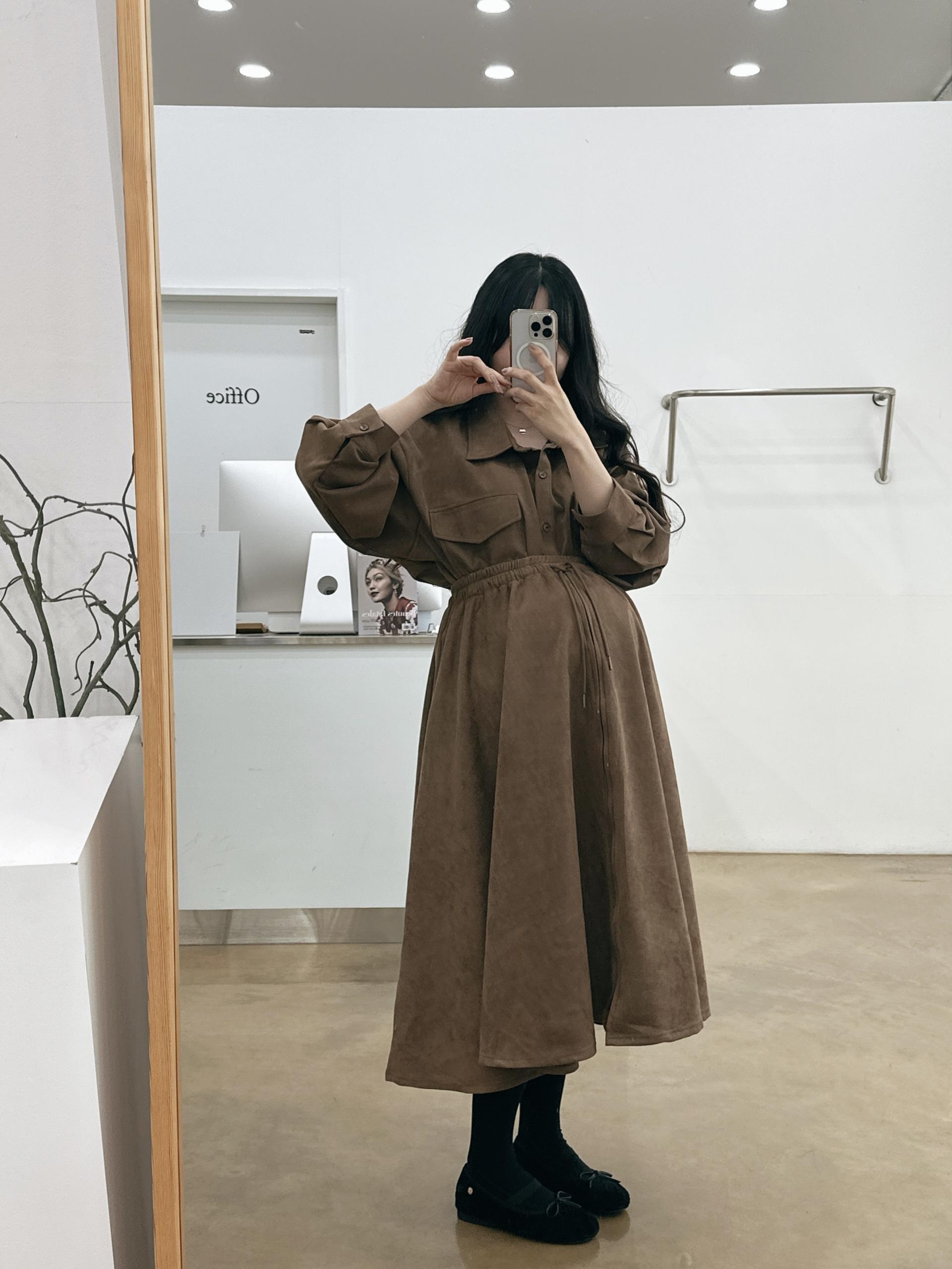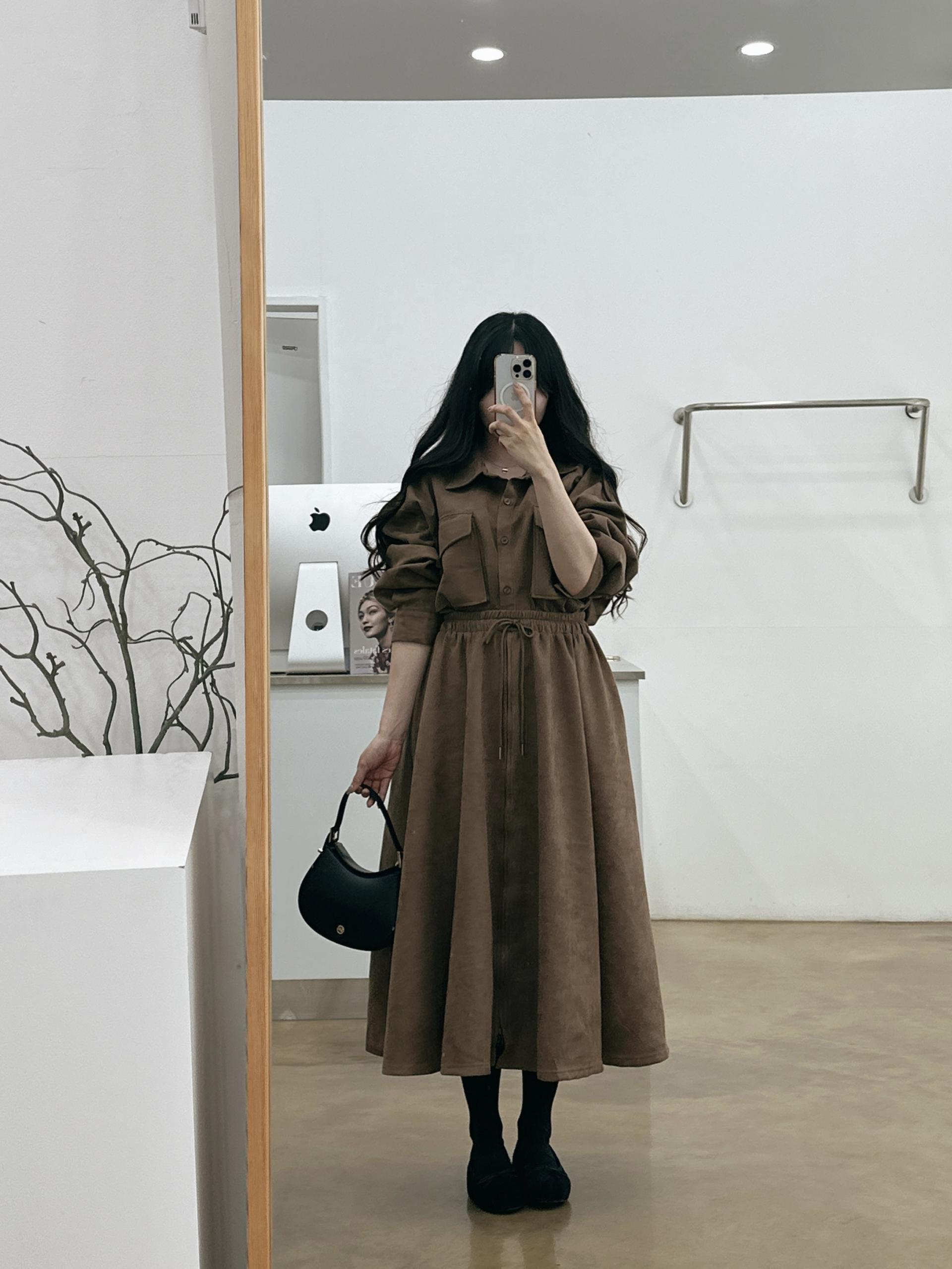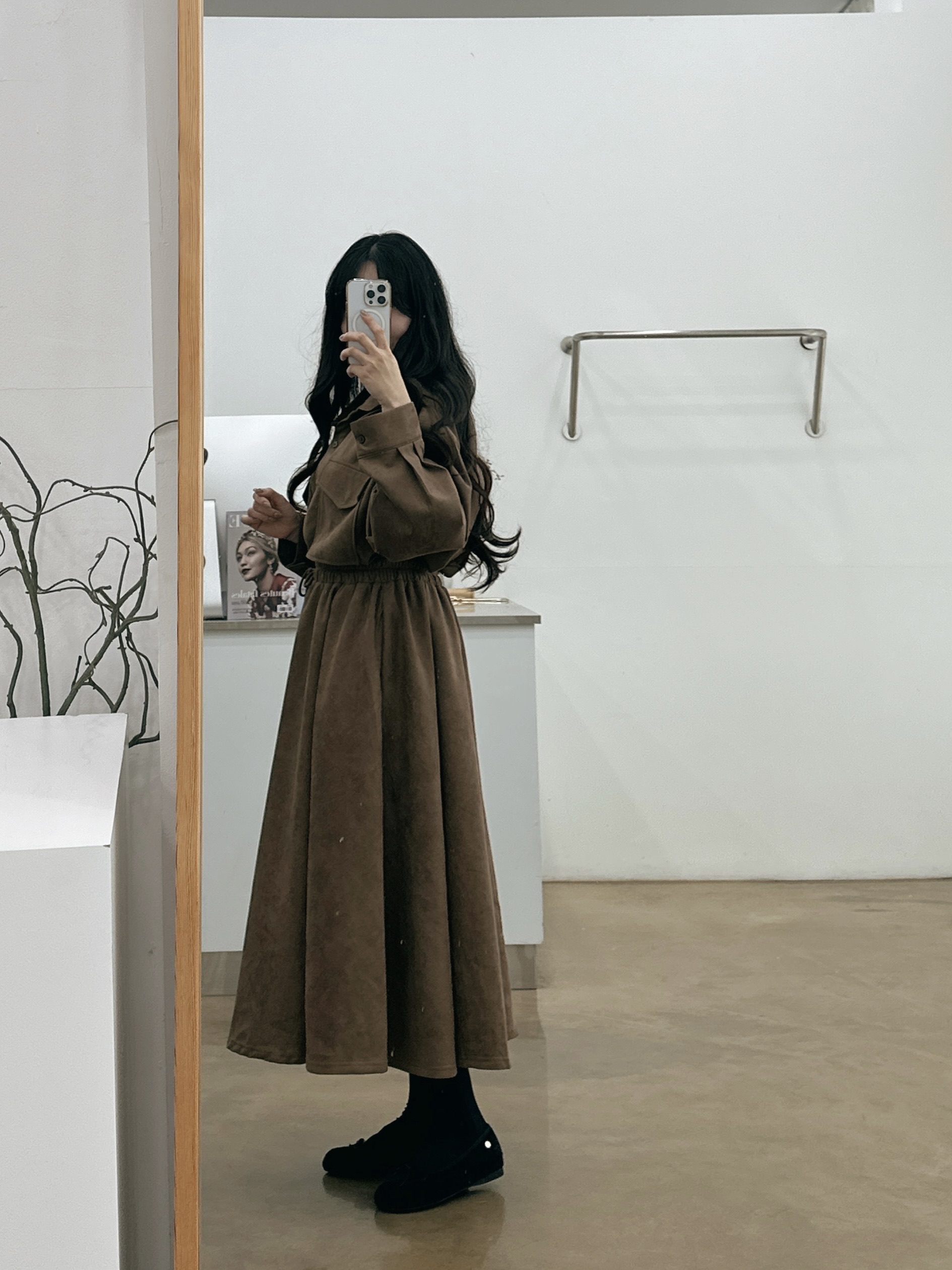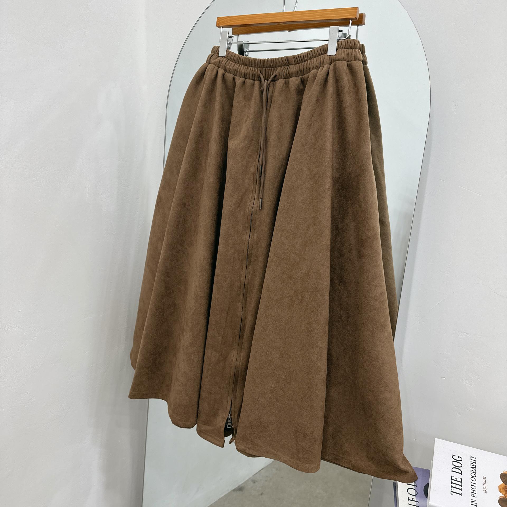 편한 밴딩과 부드러운 스웨이드재질 그리고 앞 지퍼로 포인트를 준 스커트인데요