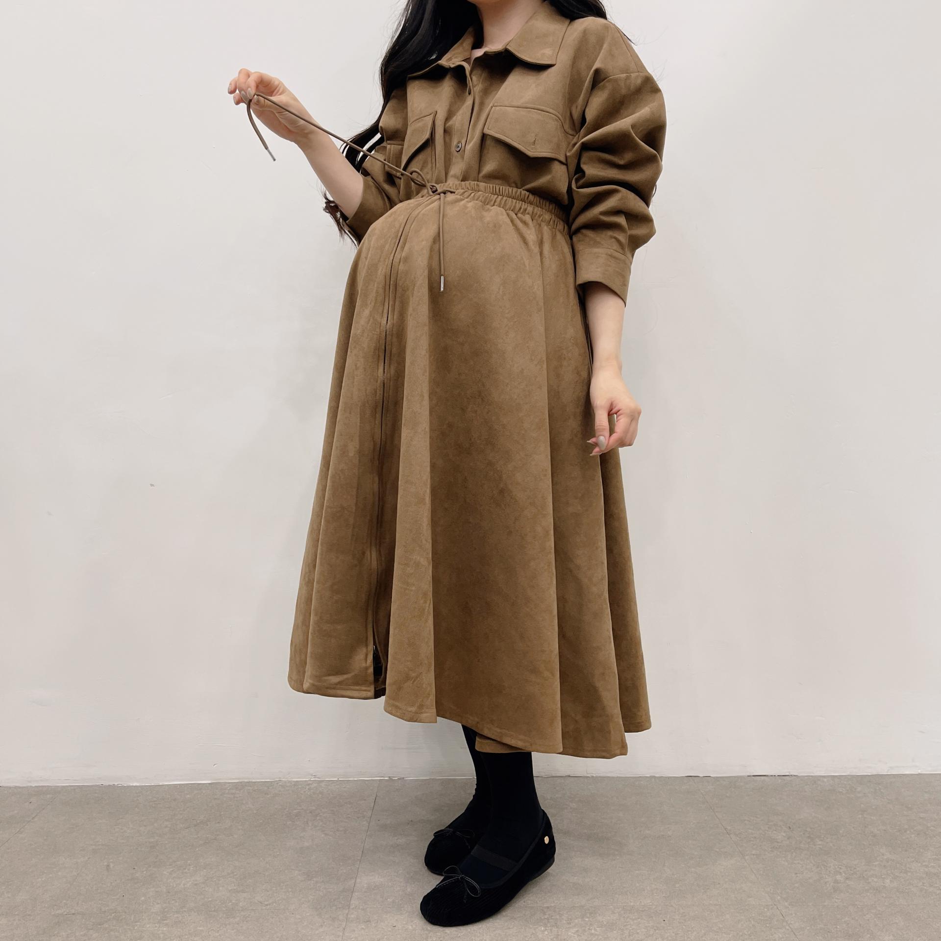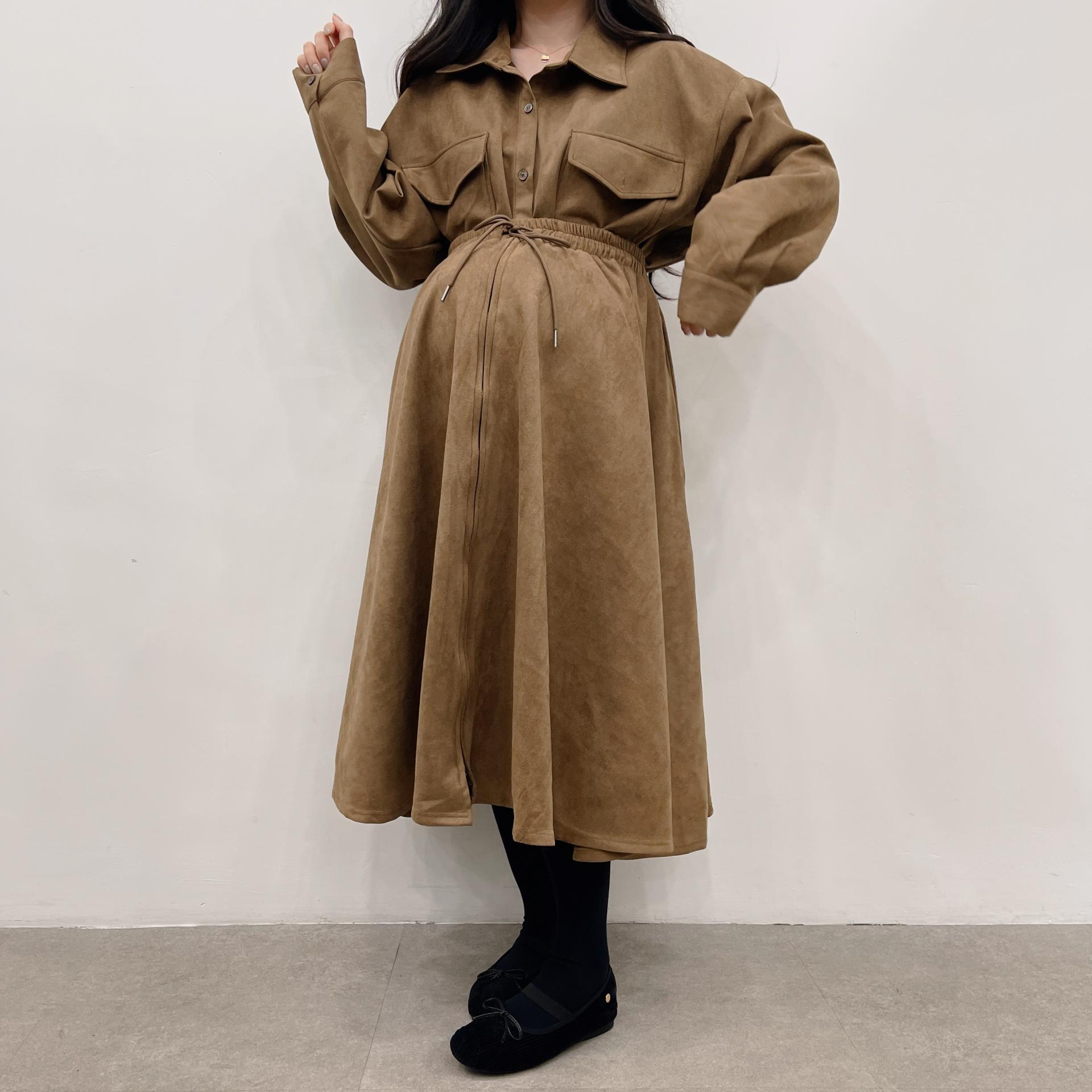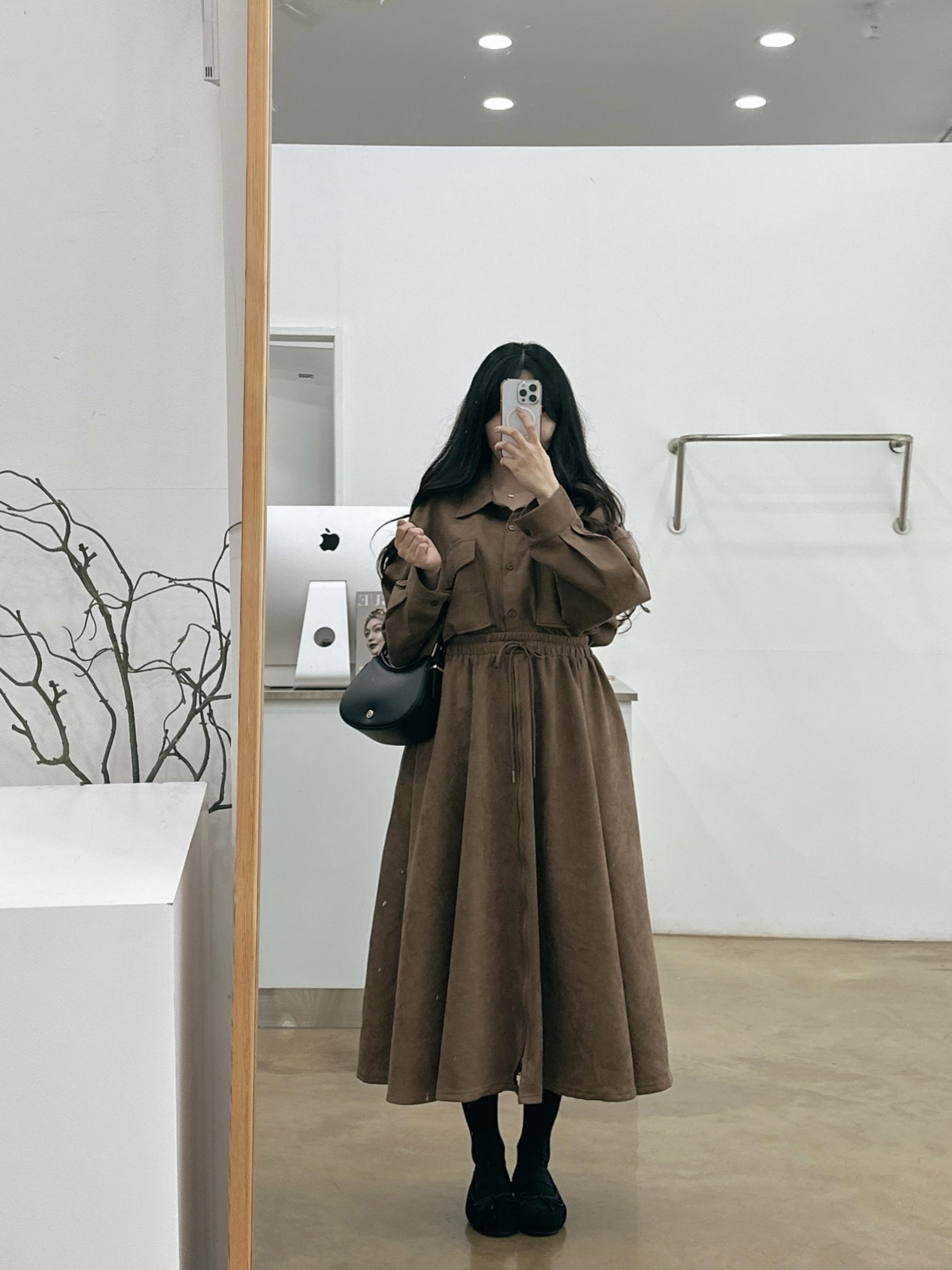 편한 밴딩과 부드러운 스웨이드재질 그리고 앞 지퍼로 포인트를 준 스커트인데요