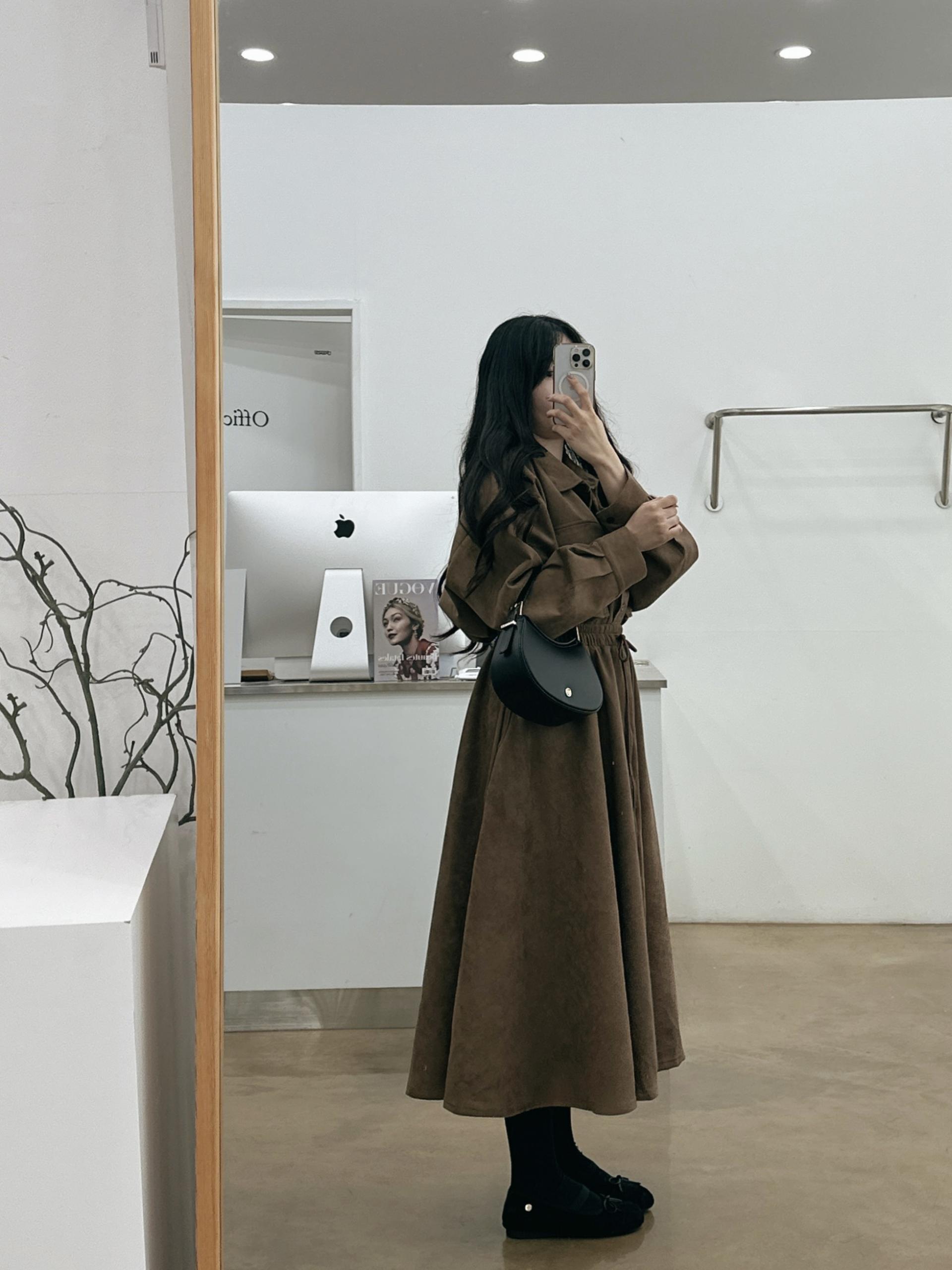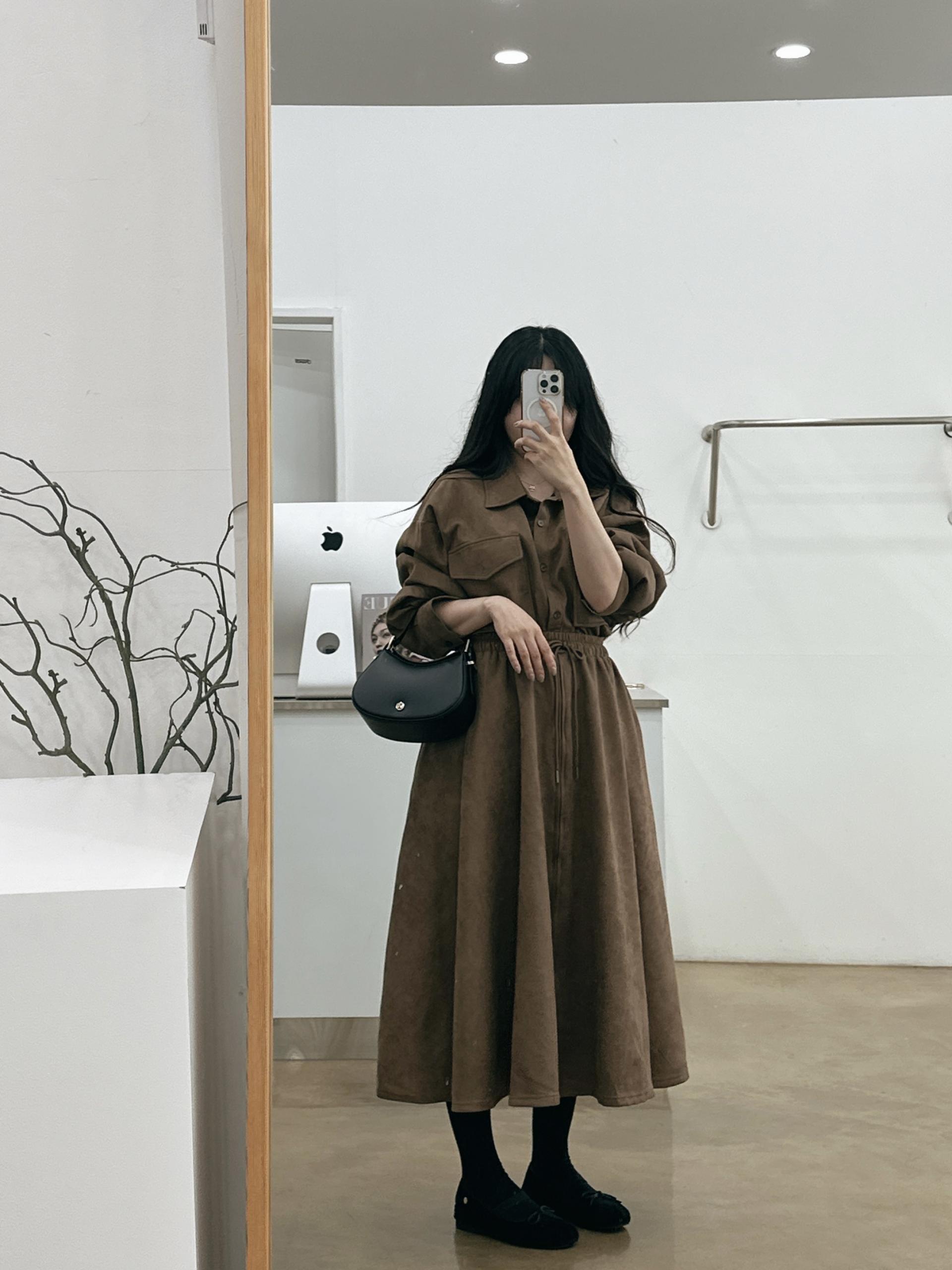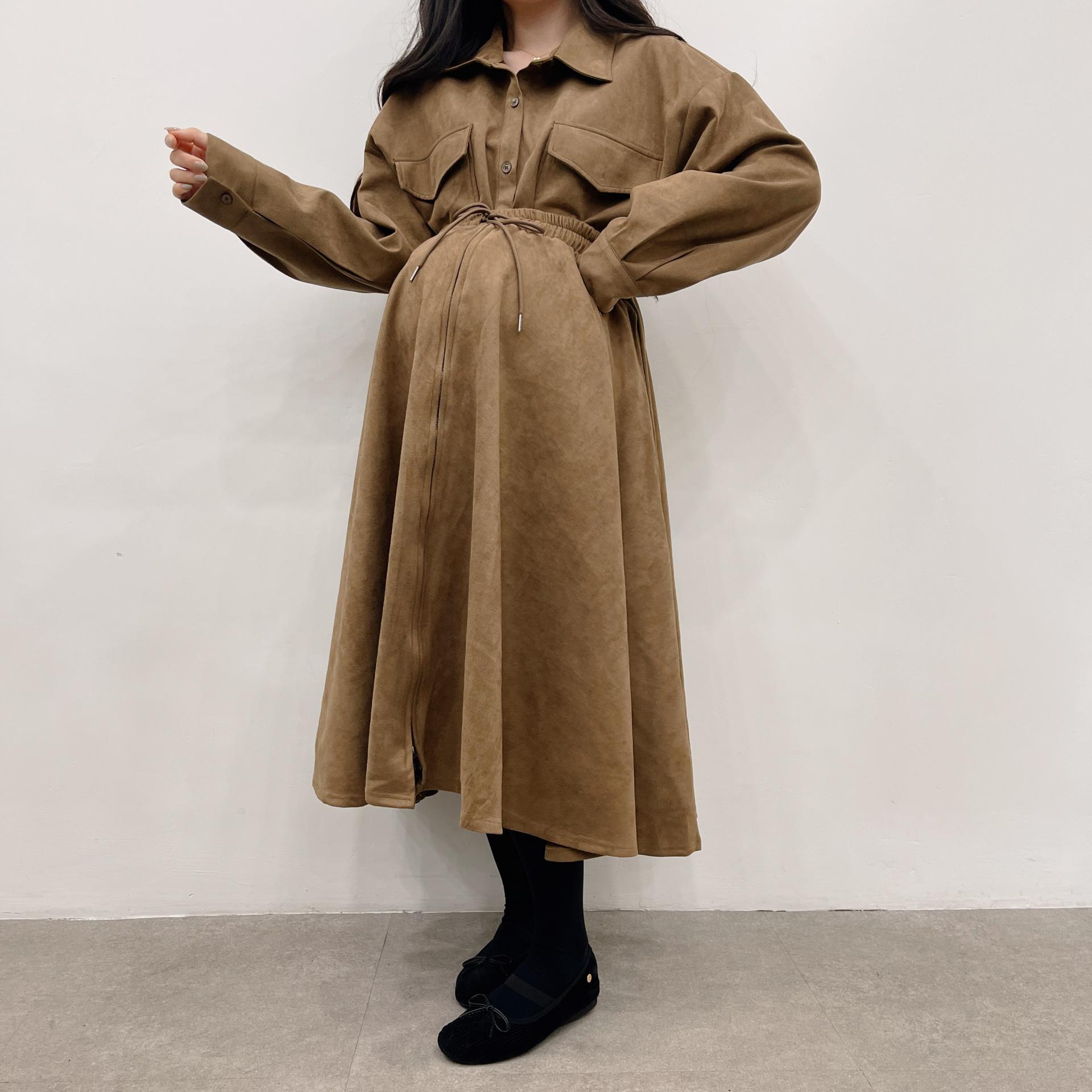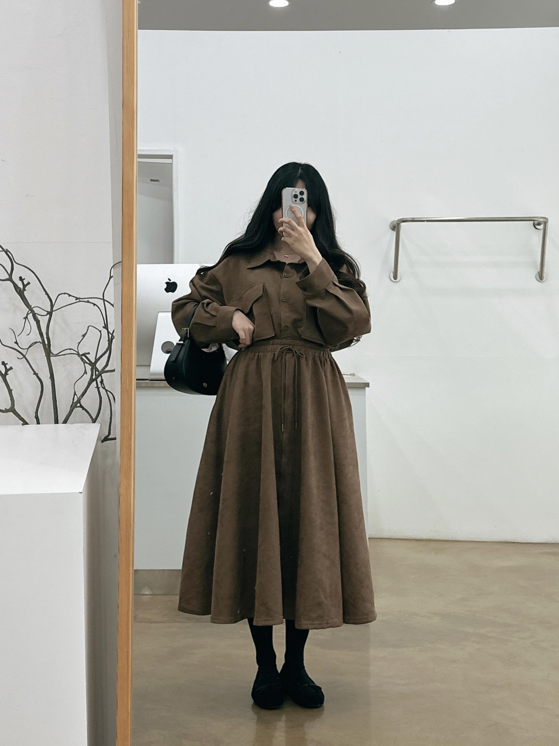 편한 밴딩과 부드러운 스웨이드재질 그리고 앞 지퍼로 포인트를 준 스커트인데요