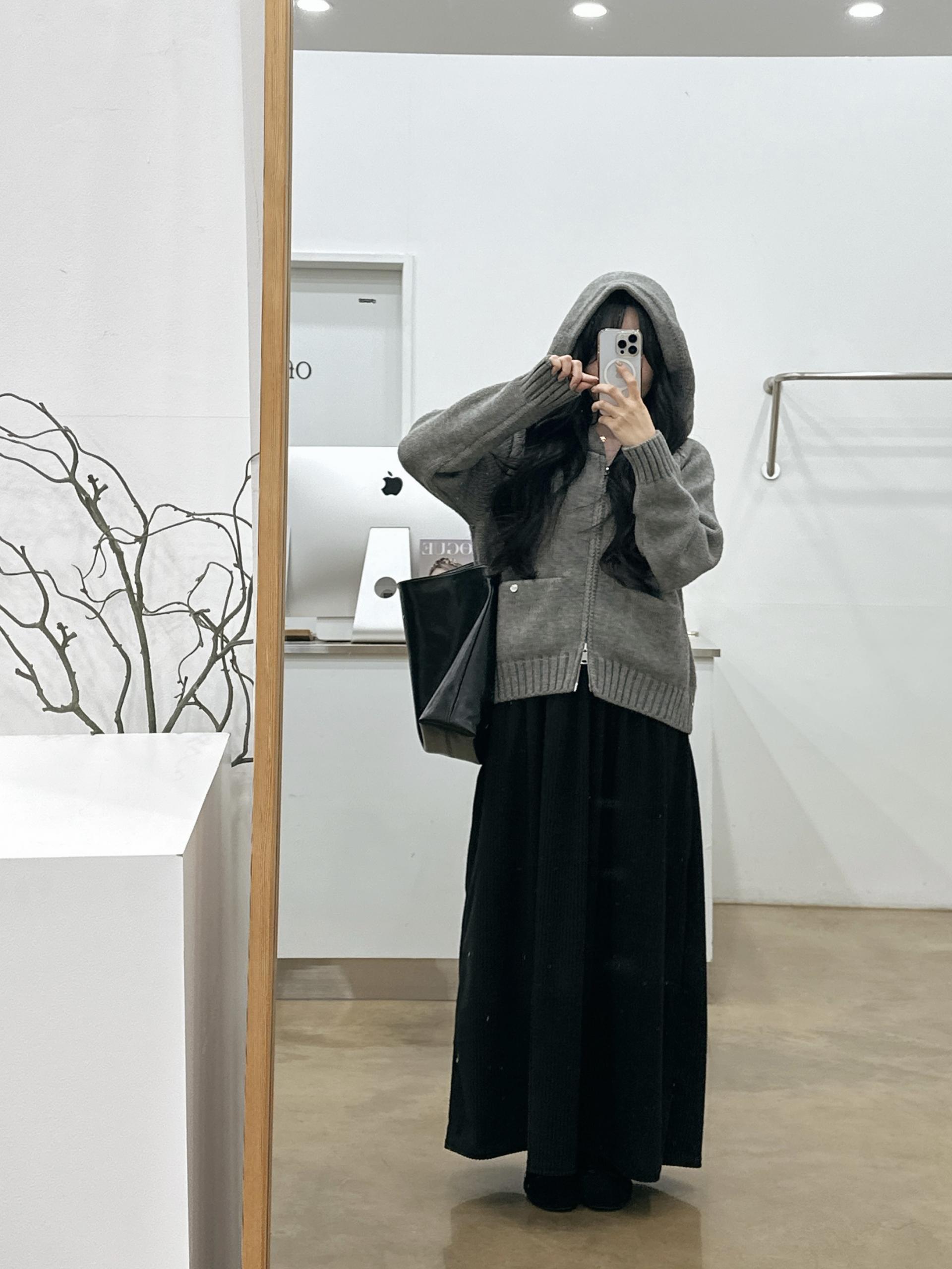 글로우 투웨이 니트후드집업