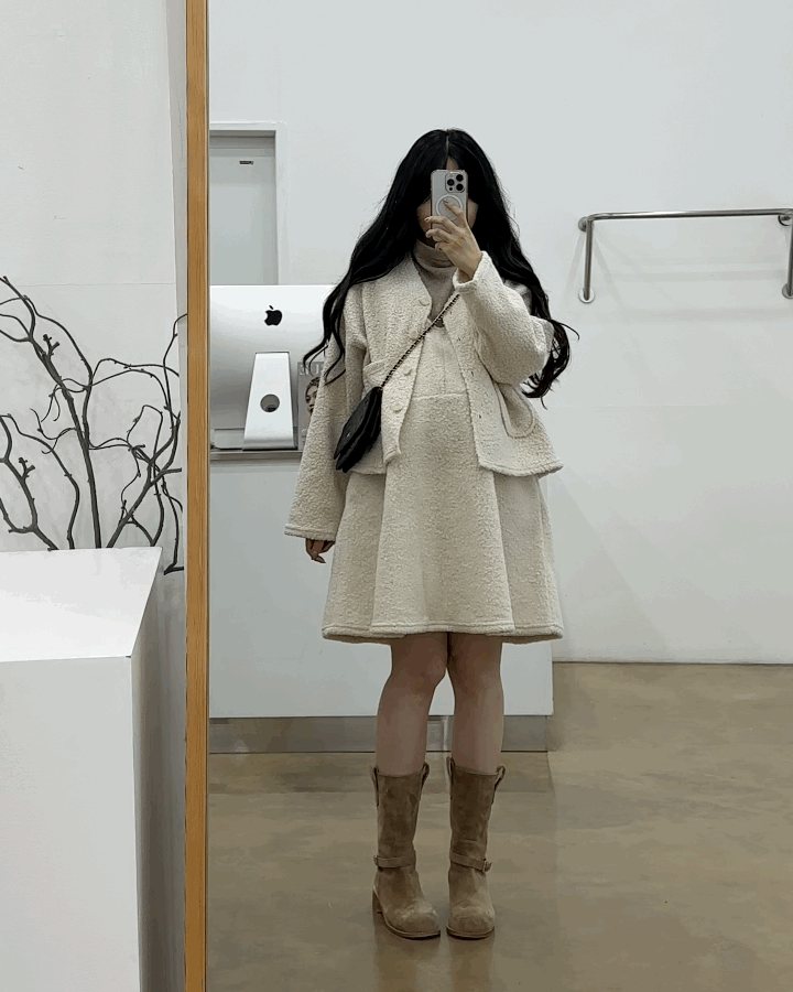 부클포켓자켓(크림)+부클미니원피스(크림)