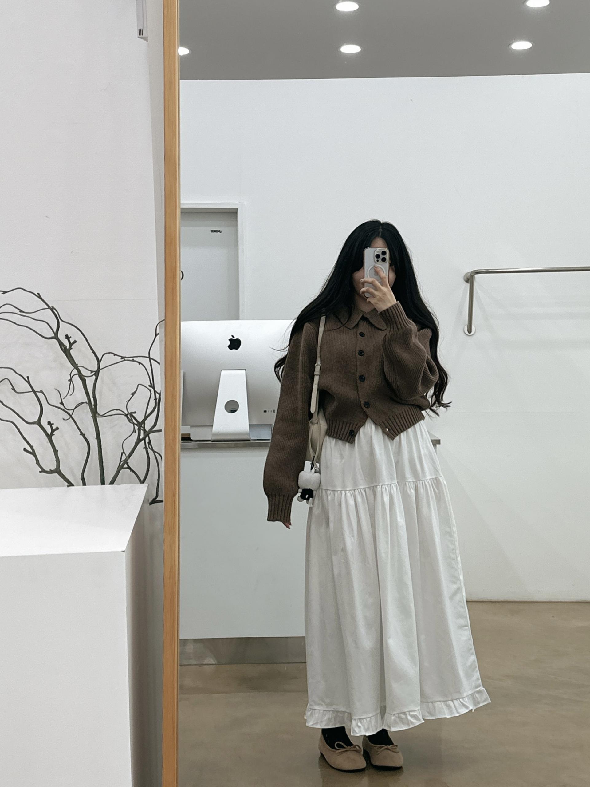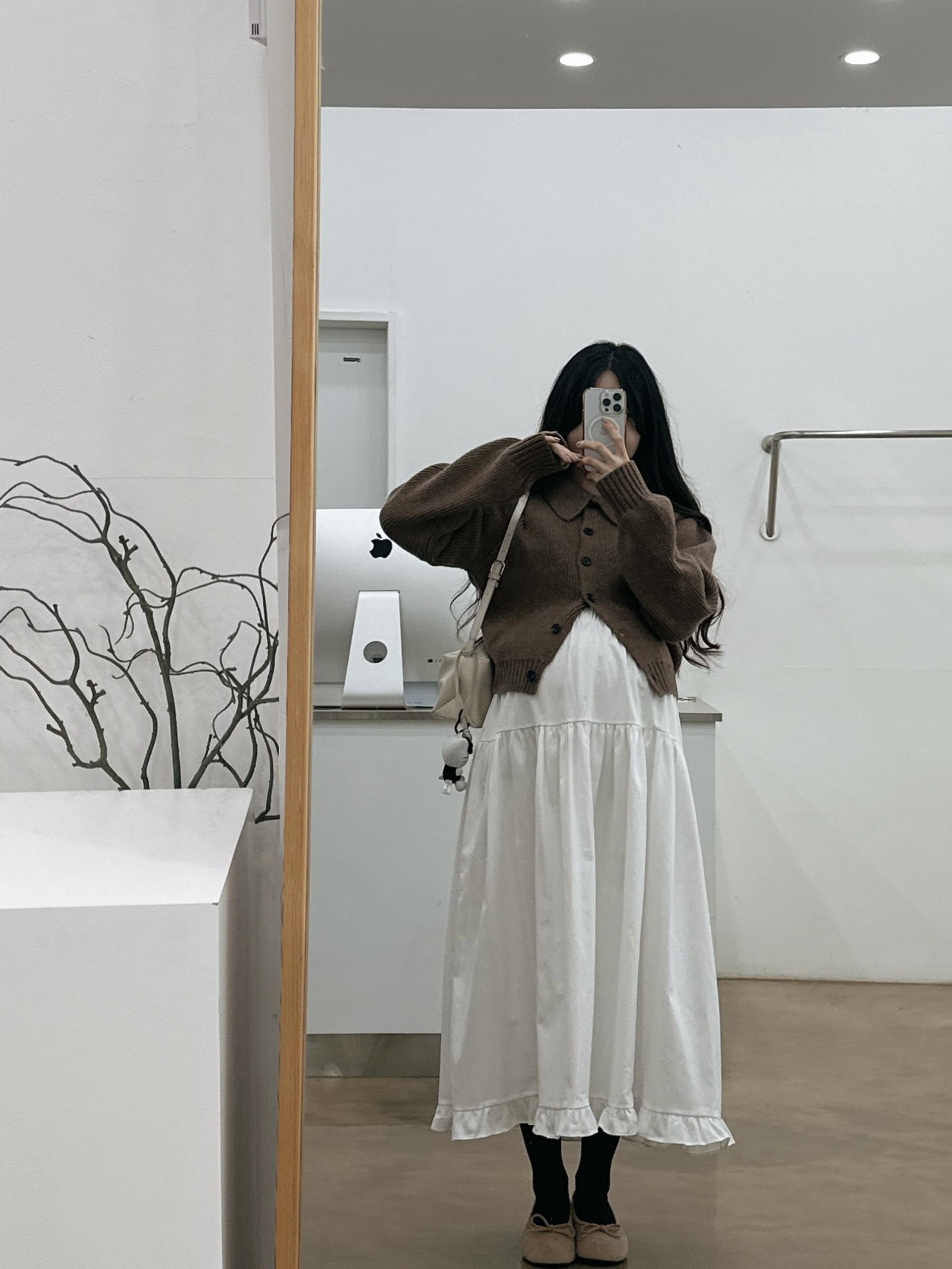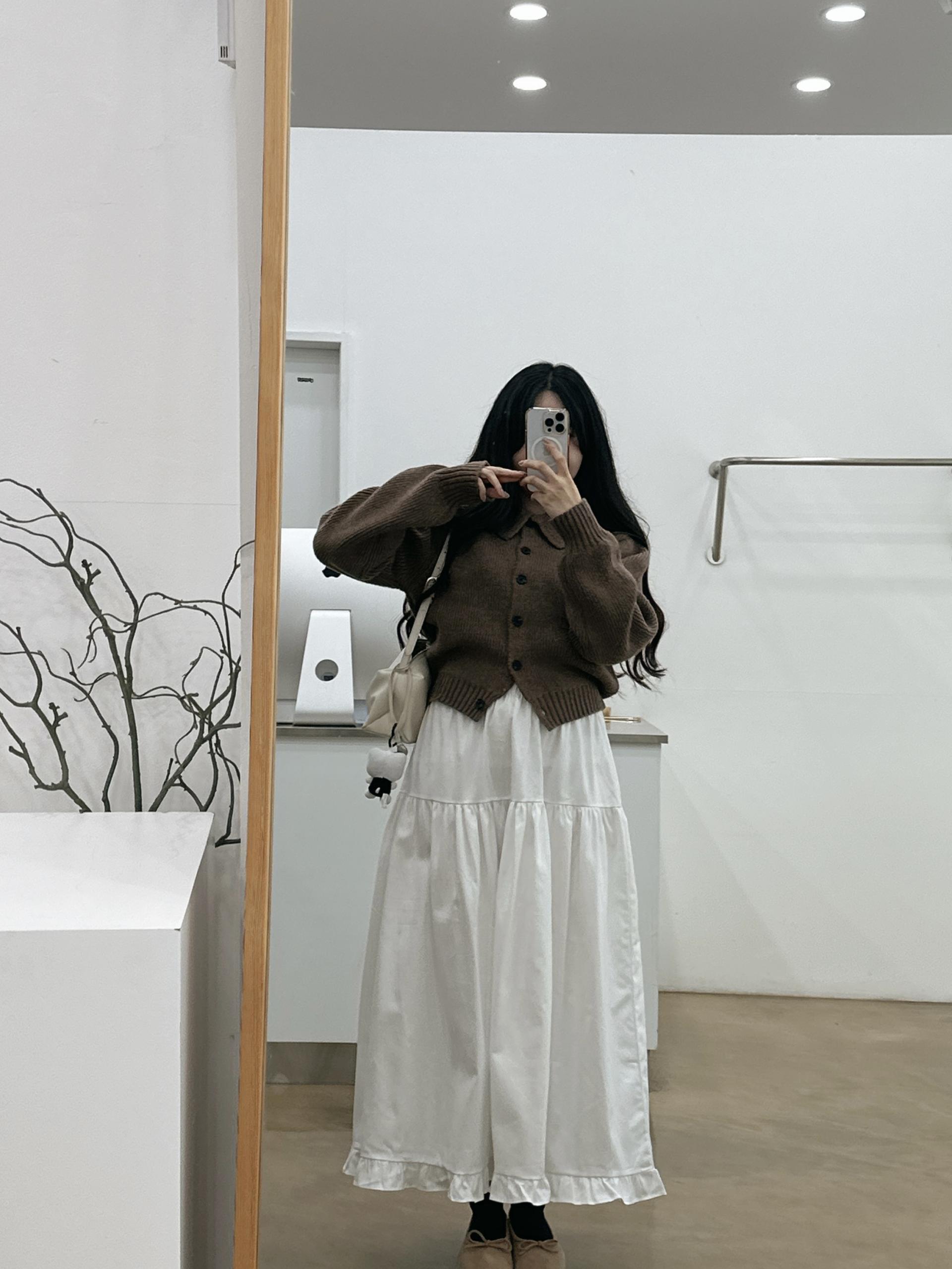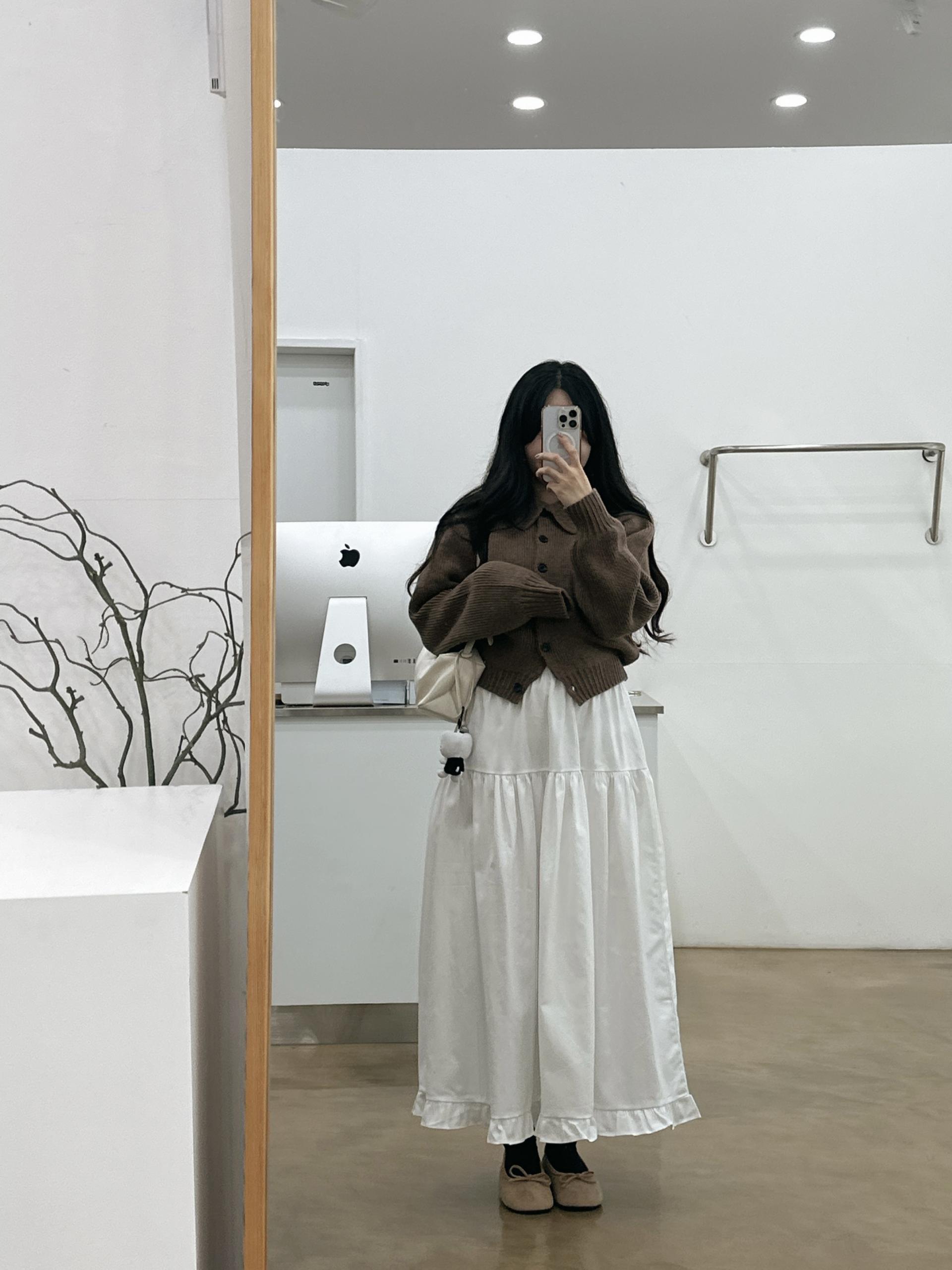 프린스커트(아이보리)+카라니트가디건(밤색)