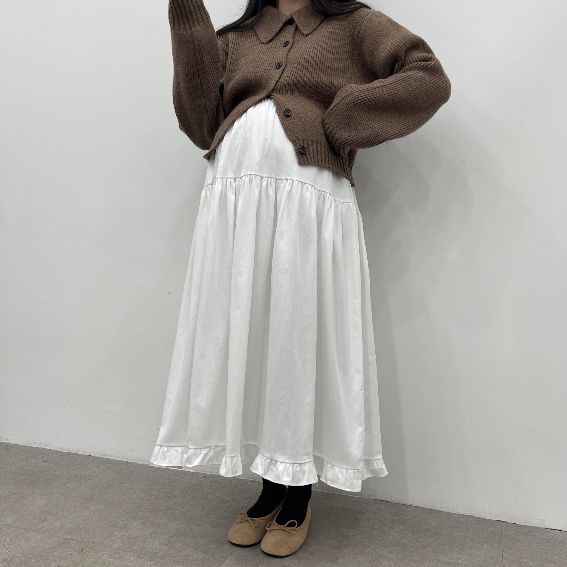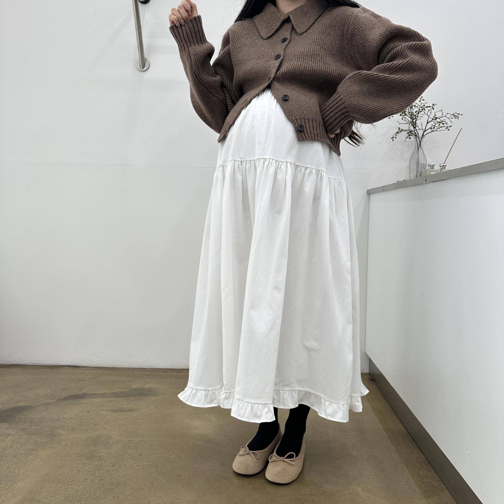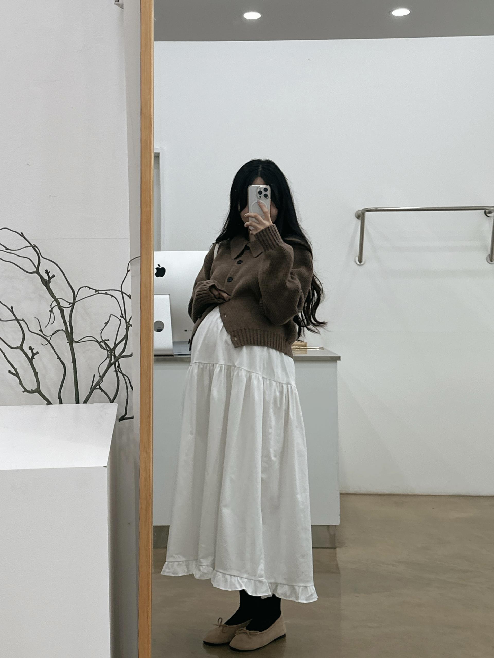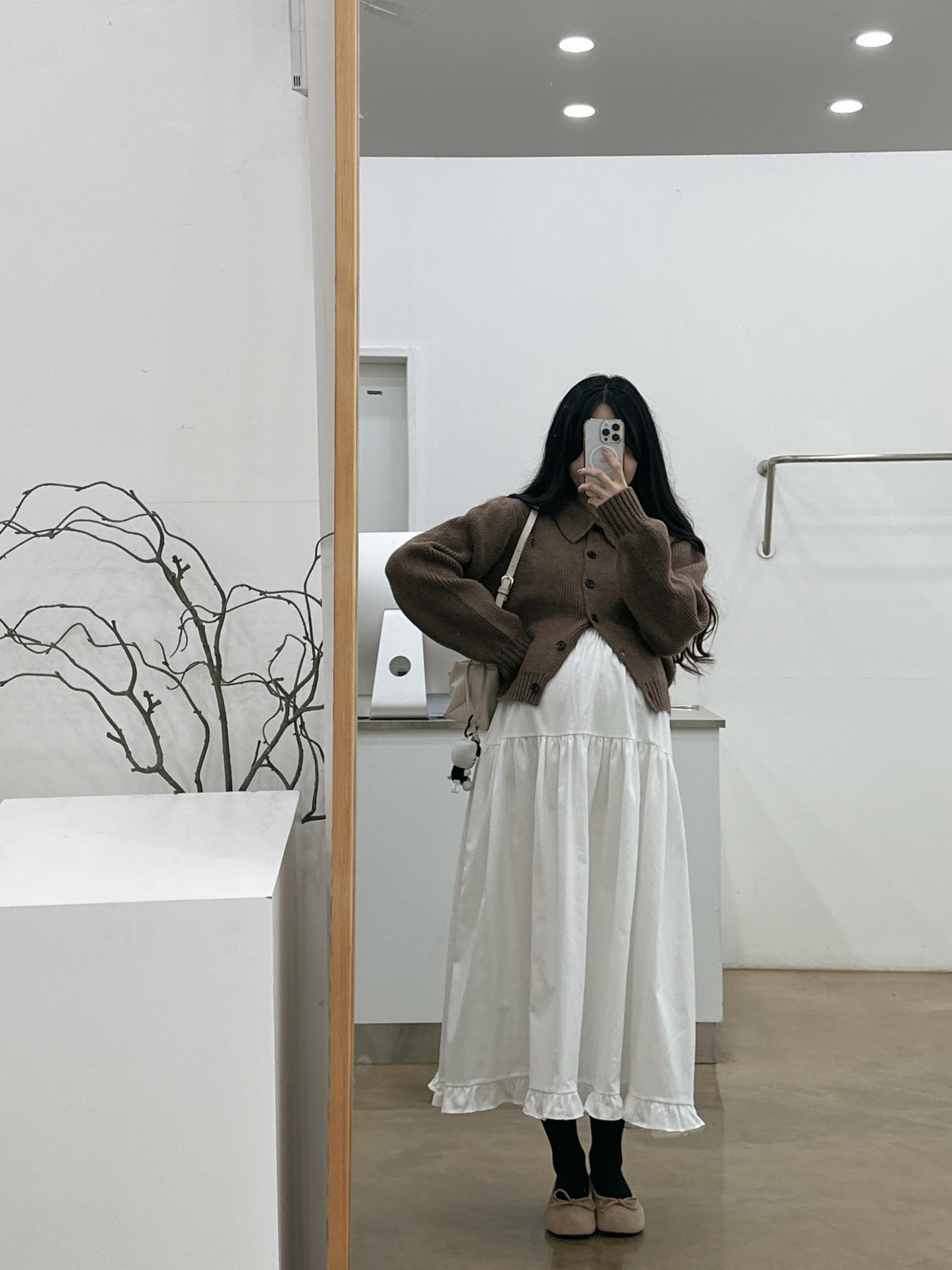 프린스커트(아이보리)+카라니트가디건(밤색)