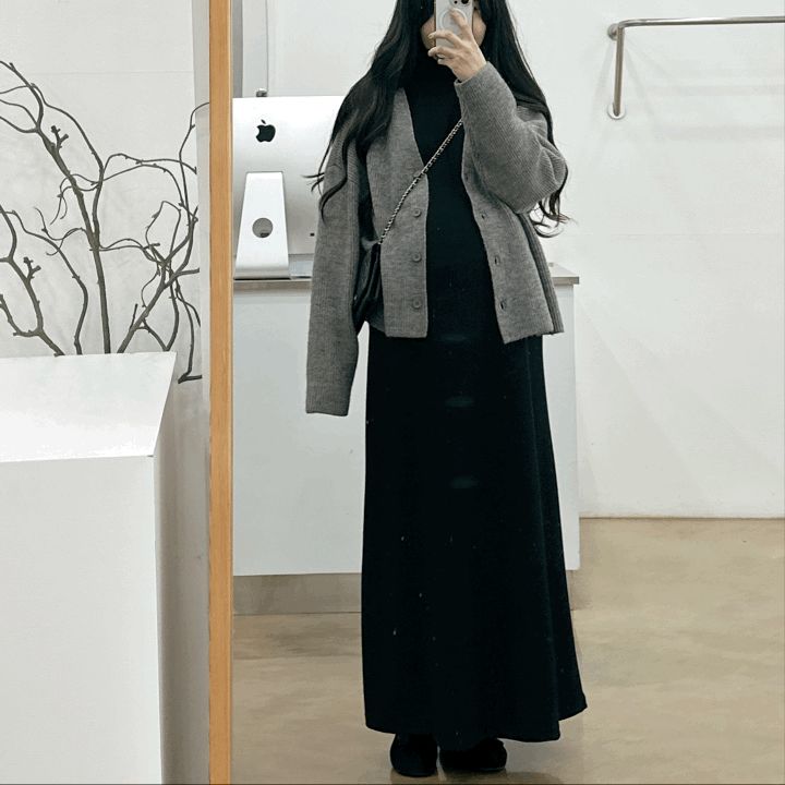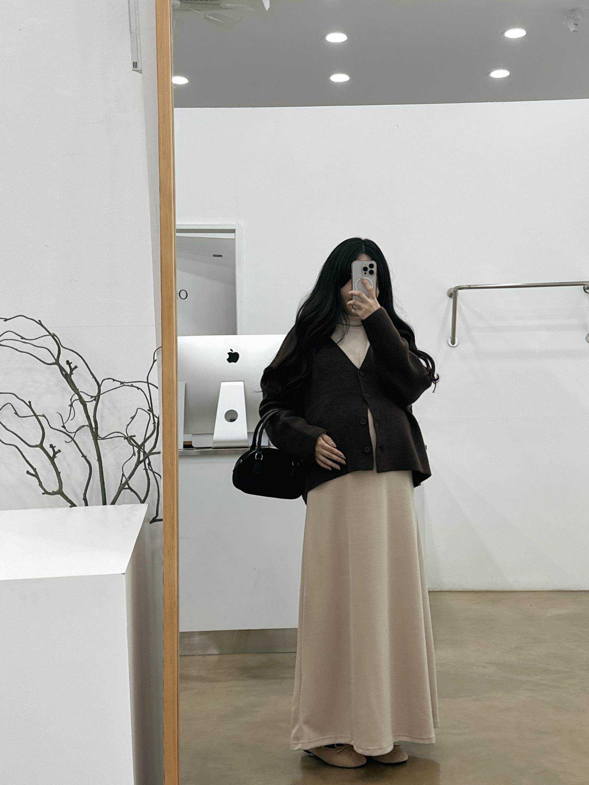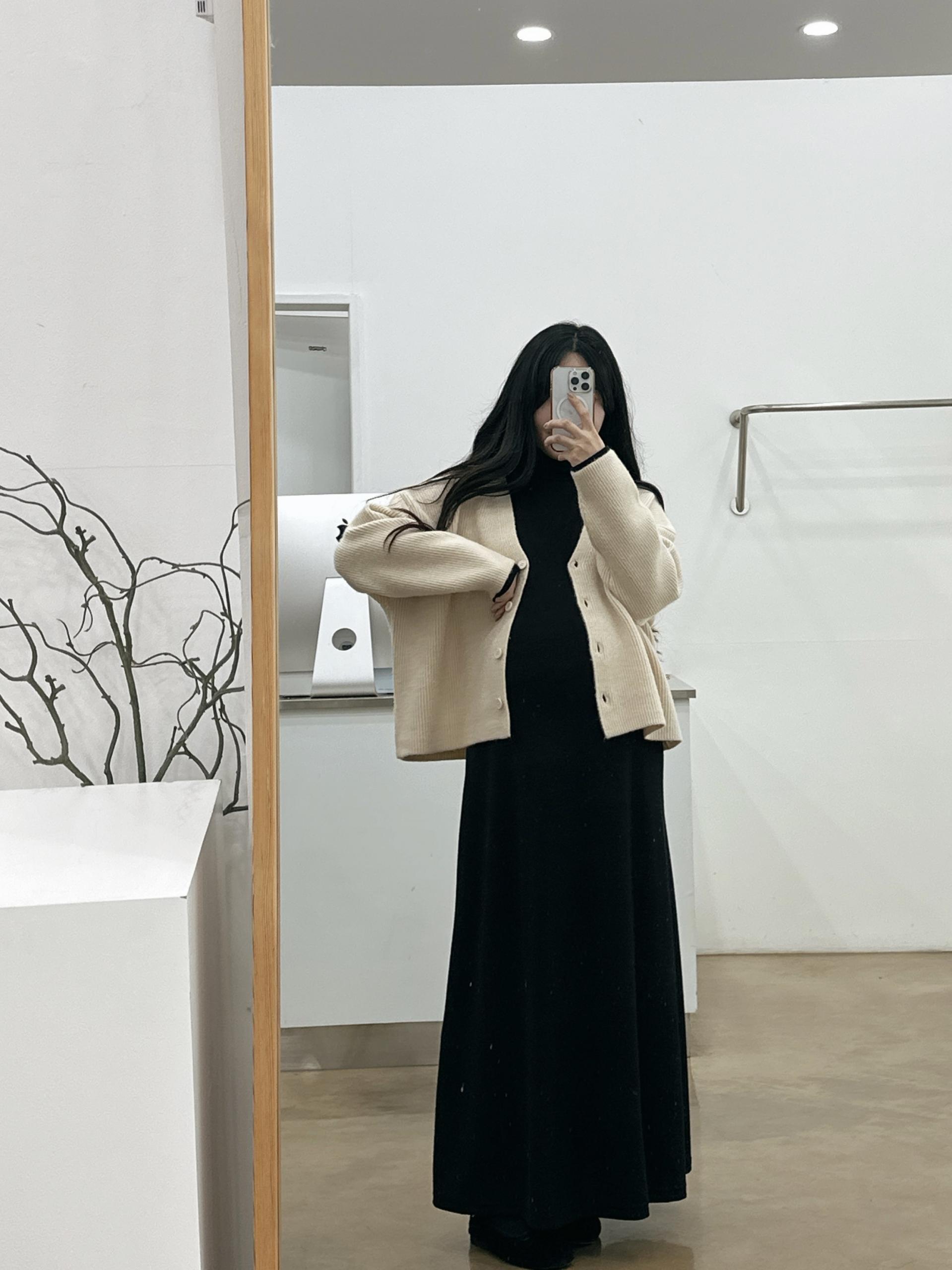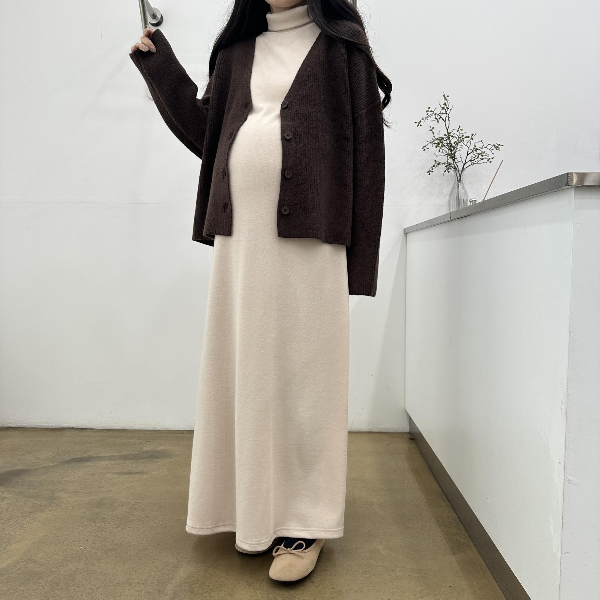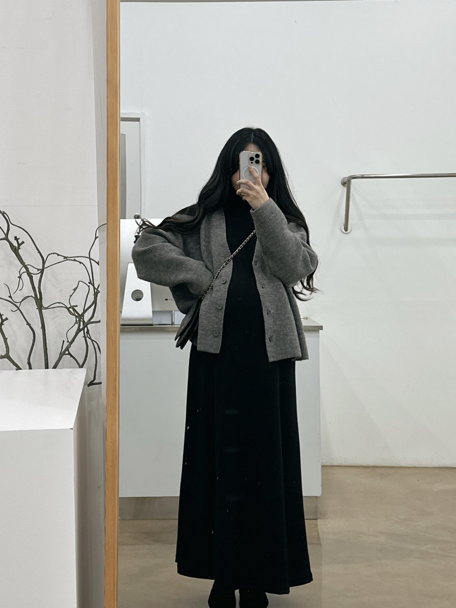 랜치니트폴라원피스 + 소프트웜 브이넥가디건 조합입니다:)