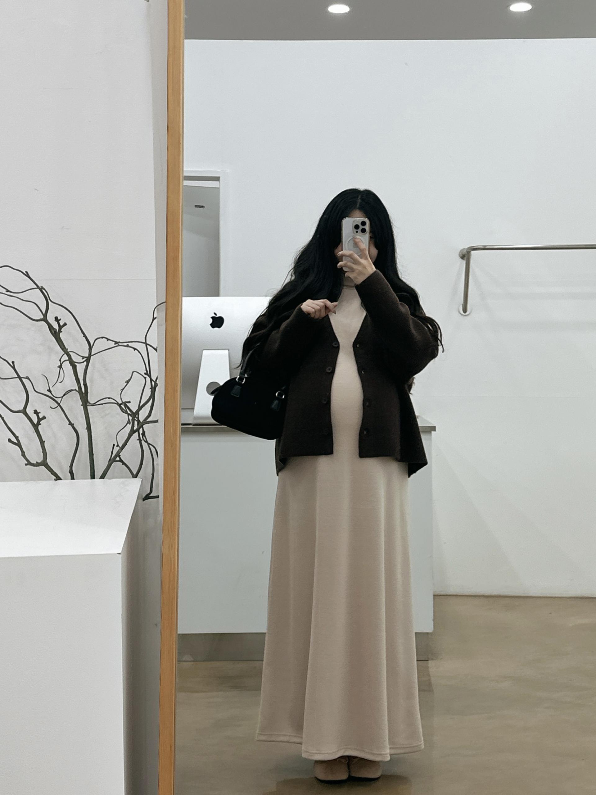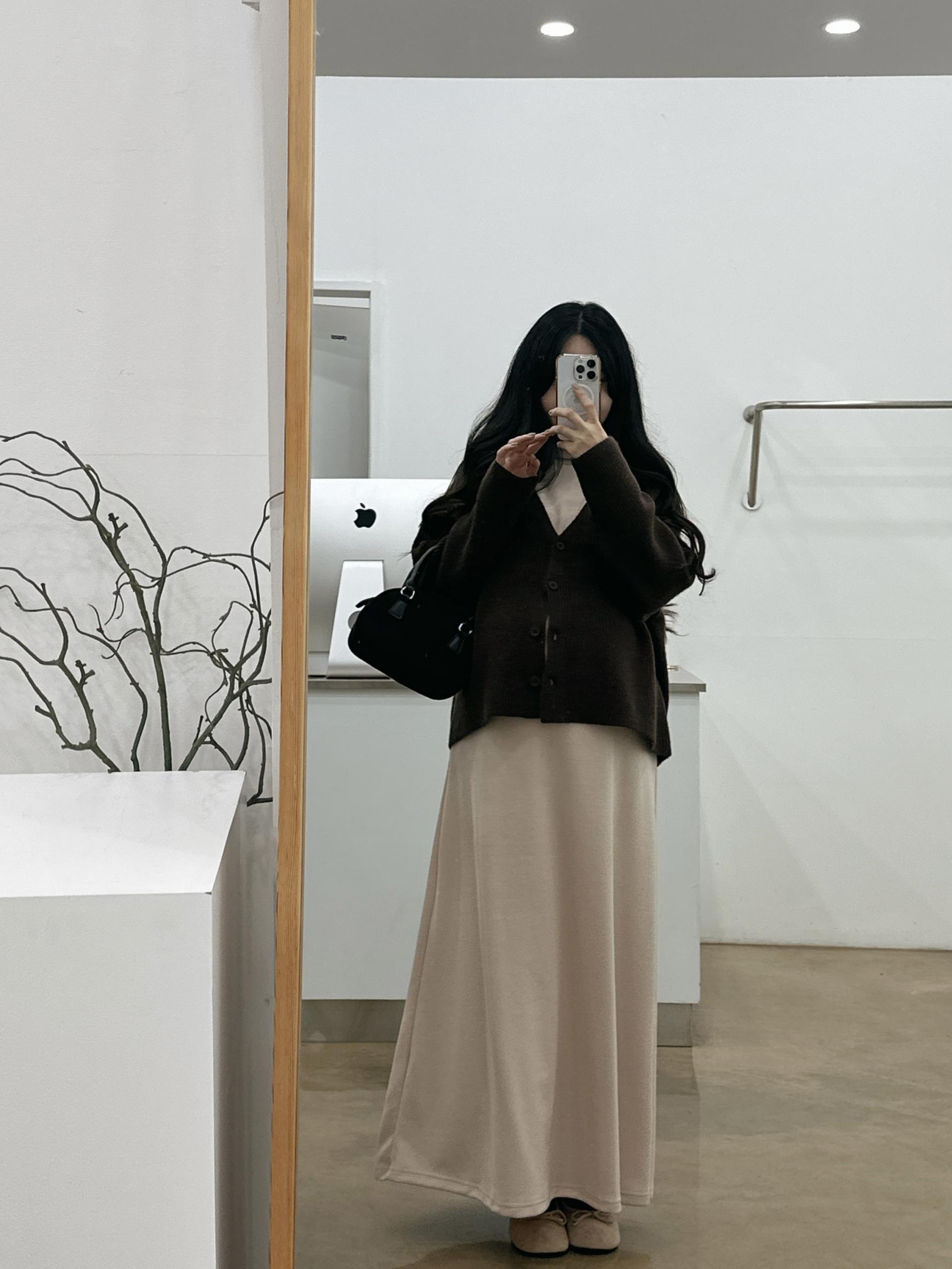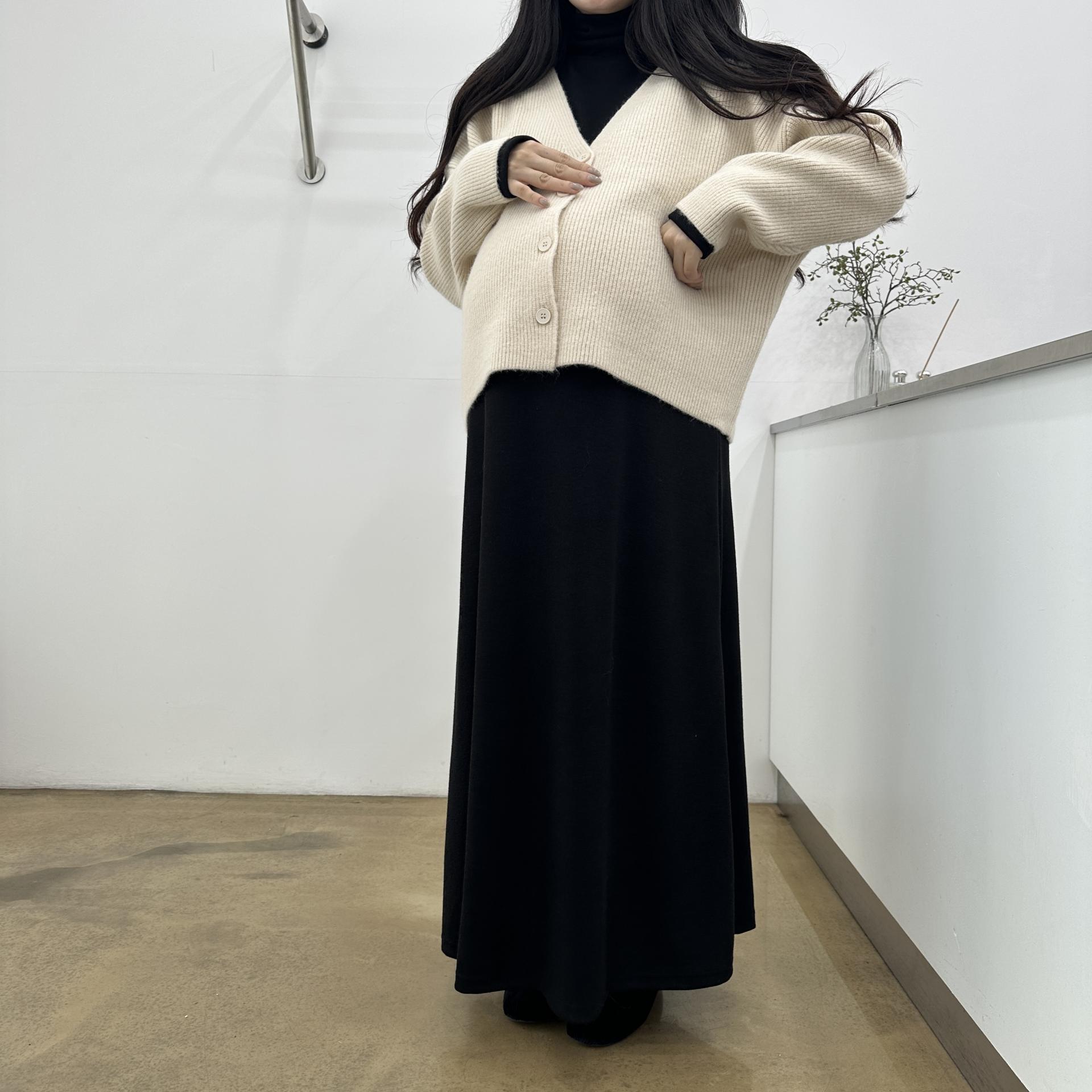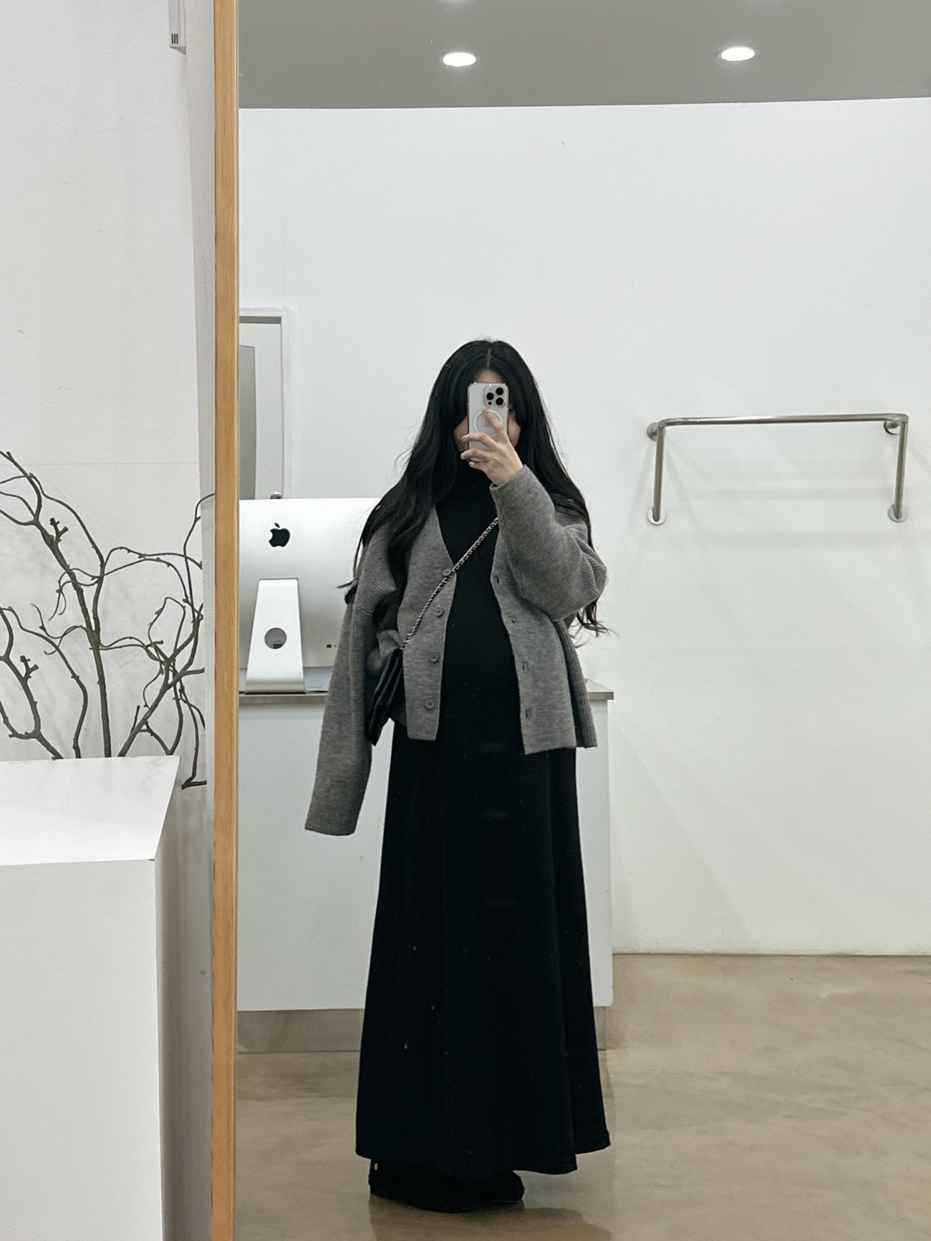 랜치니트폴라원피스 + 소프트웜 브이넥가디건 조합입니다:)