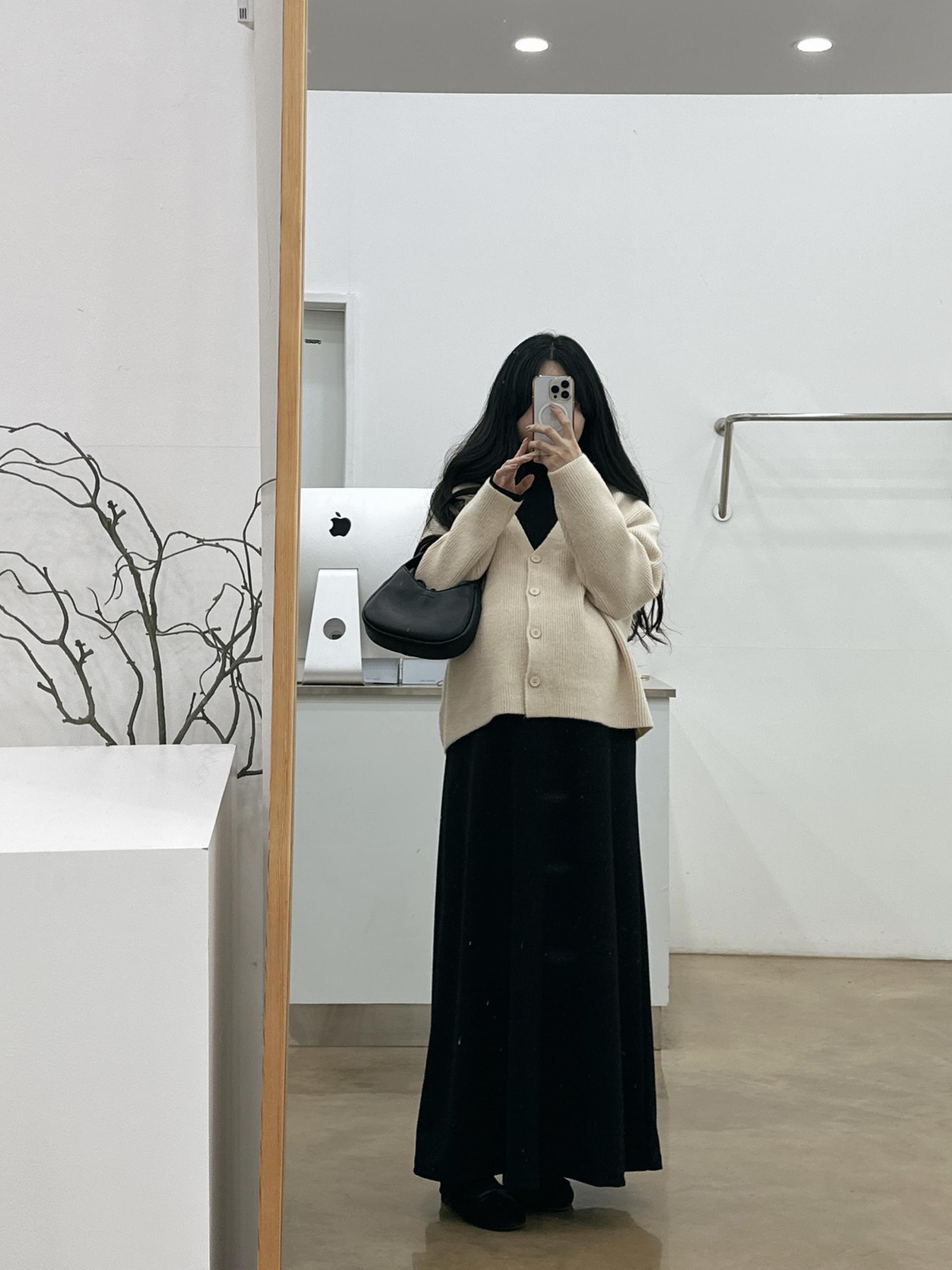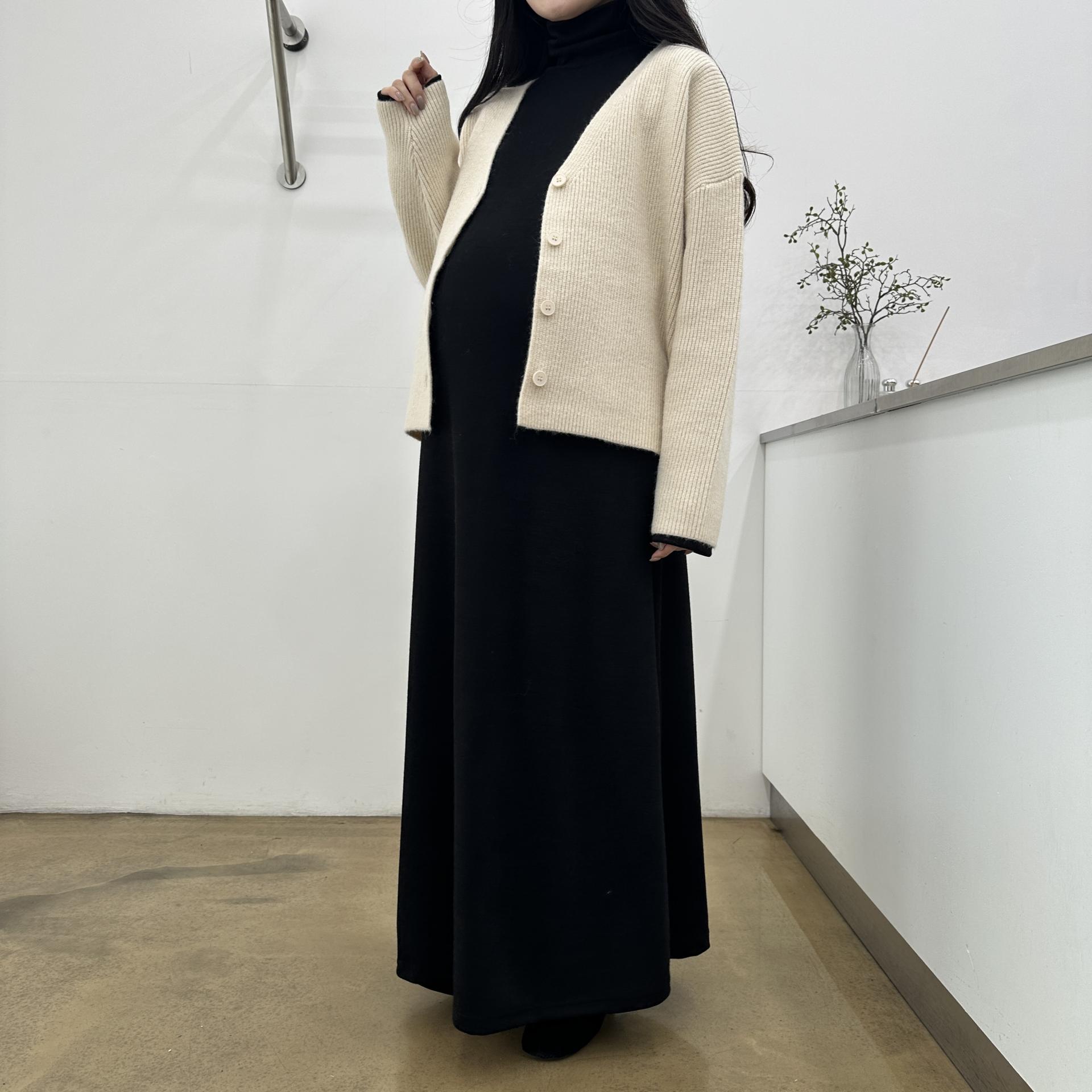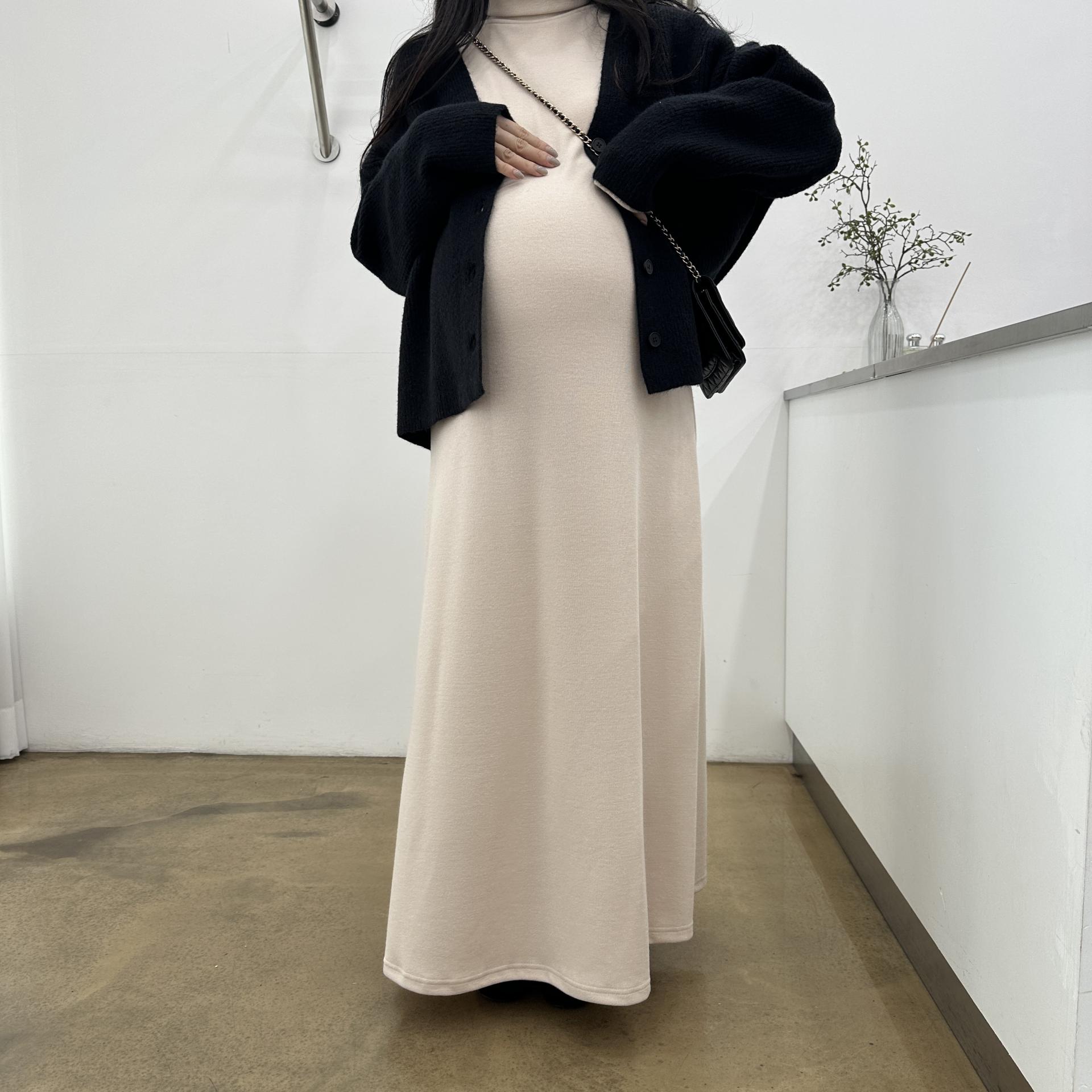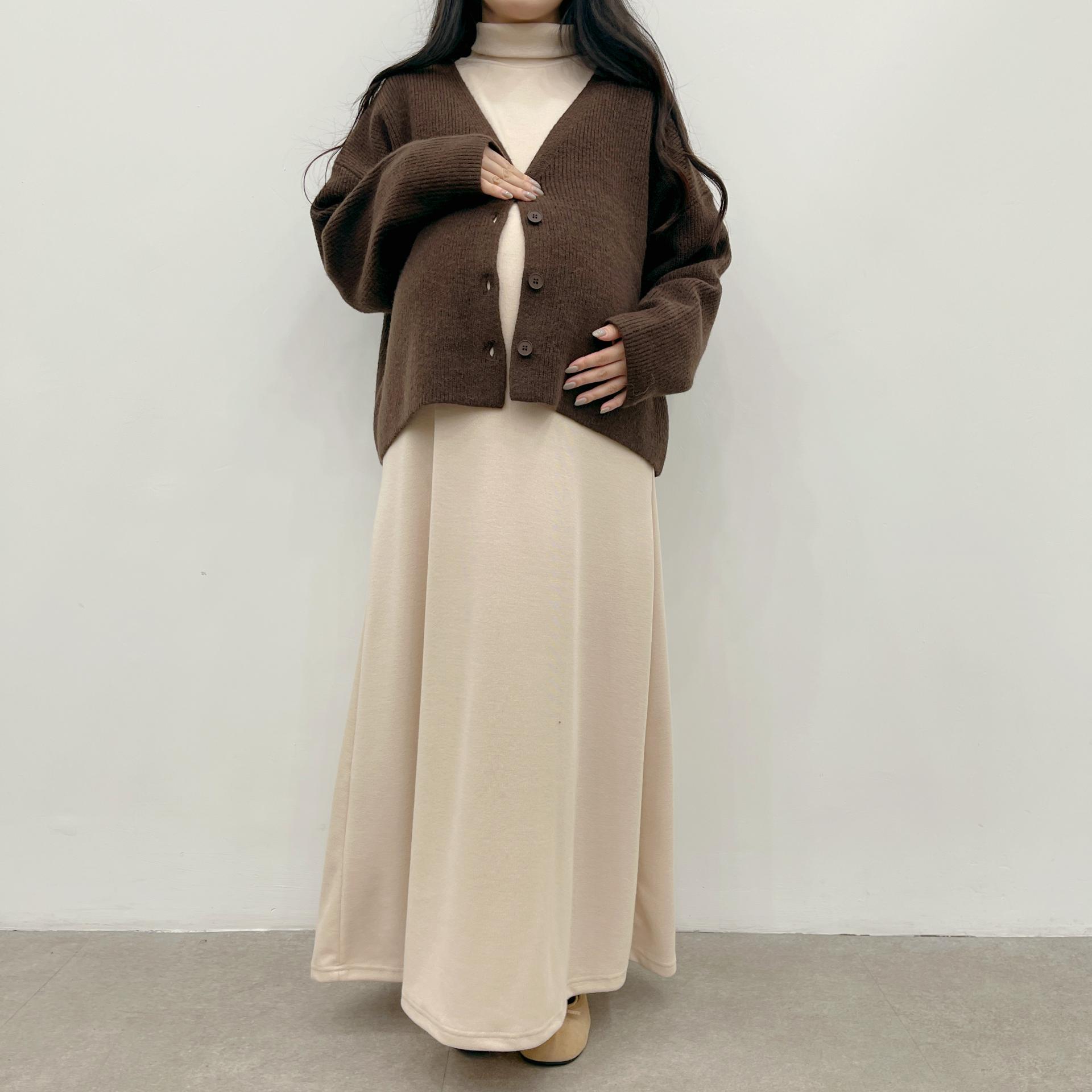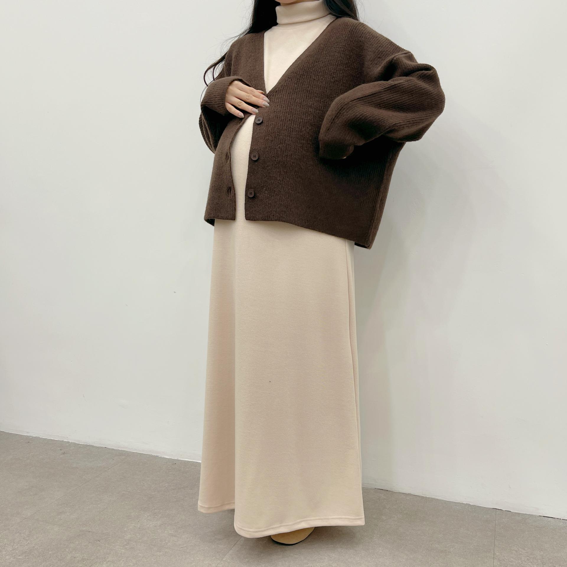 랜치니트폴라원피스 + 소프트웜 브이넥가디건 조합입니다:)