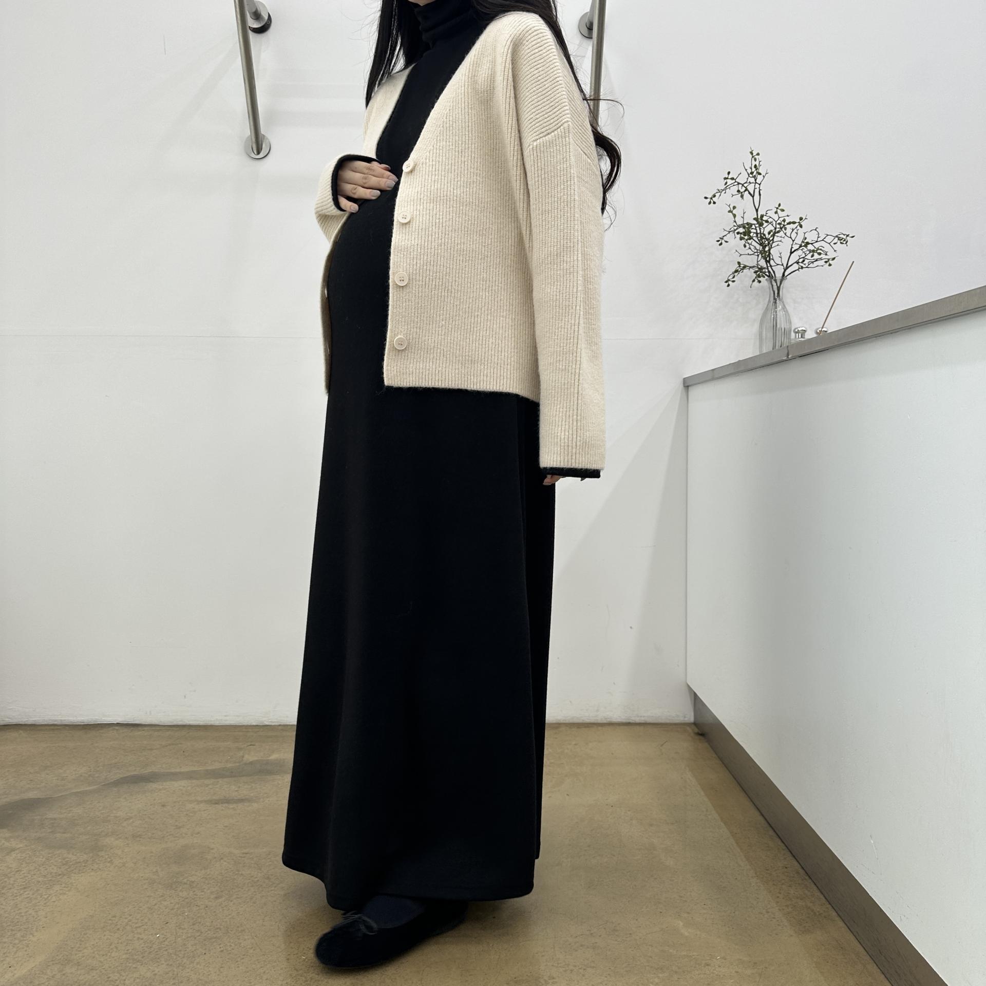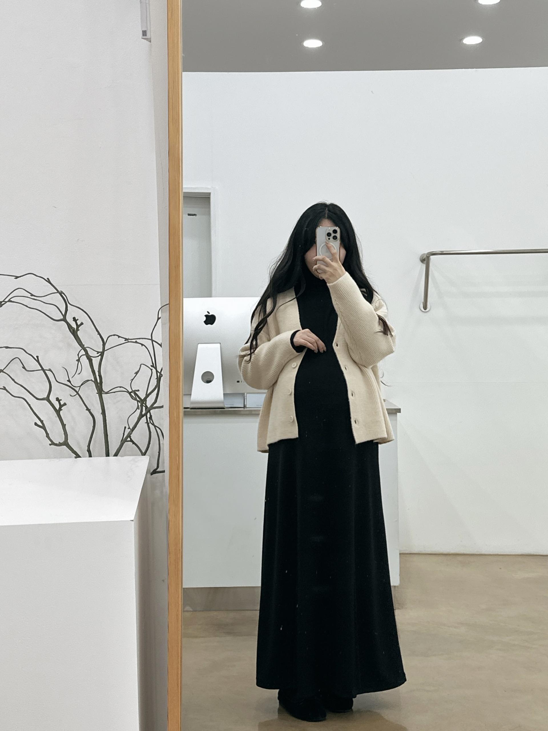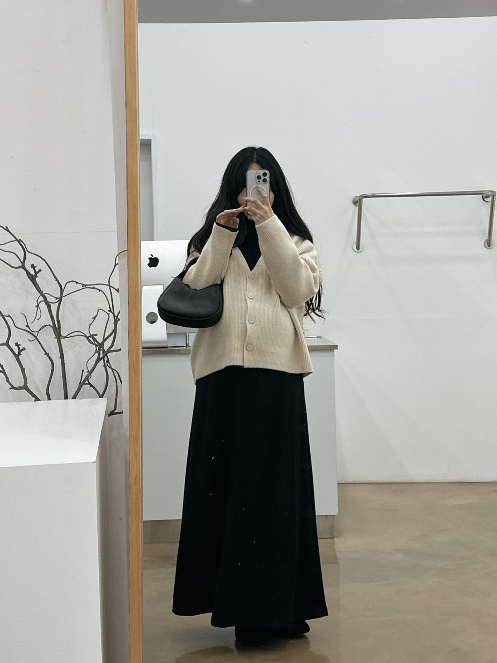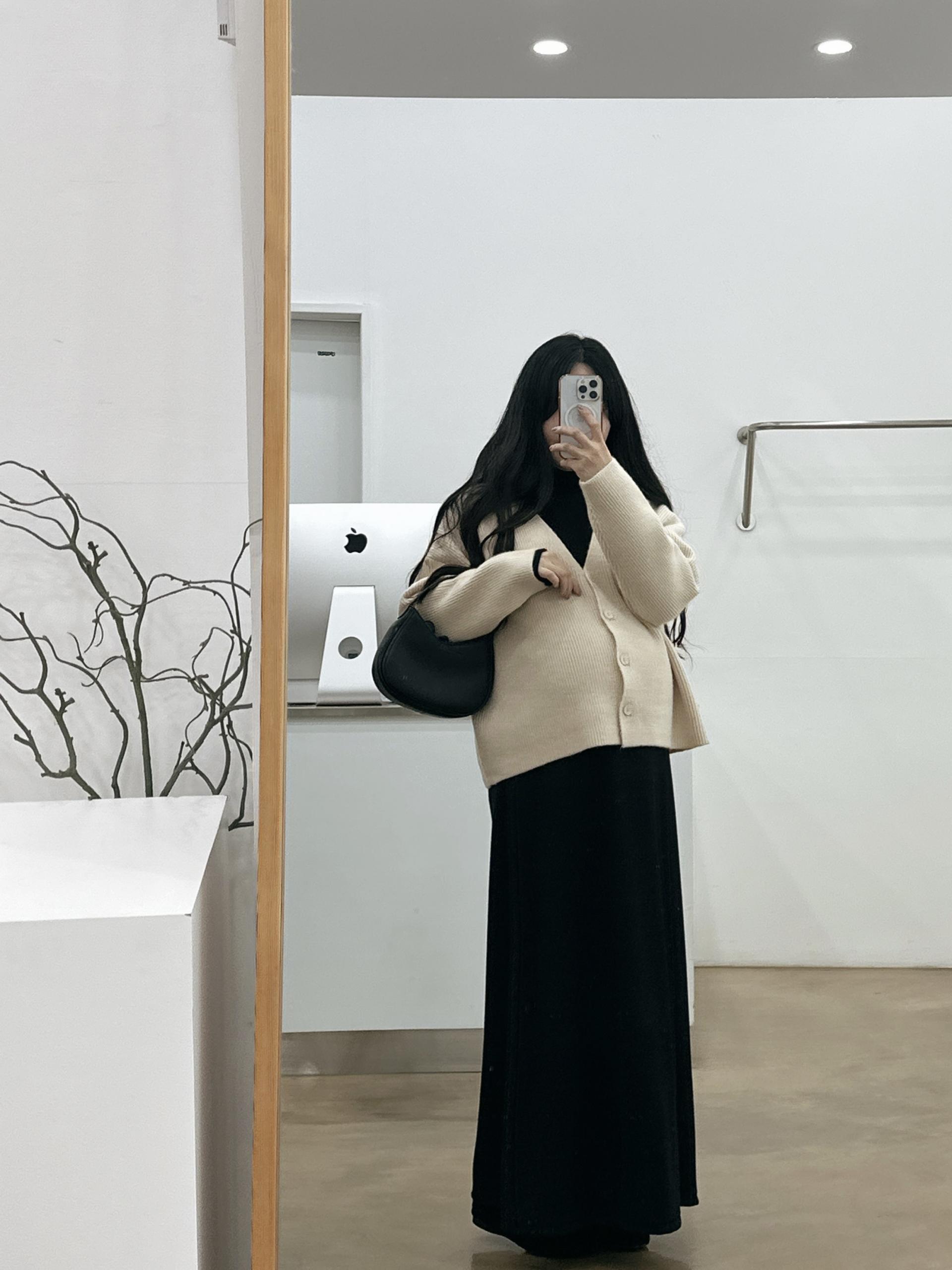 랜치니트폴라원피스 + 소프트웜 브이넥가디건 조합입니다:)