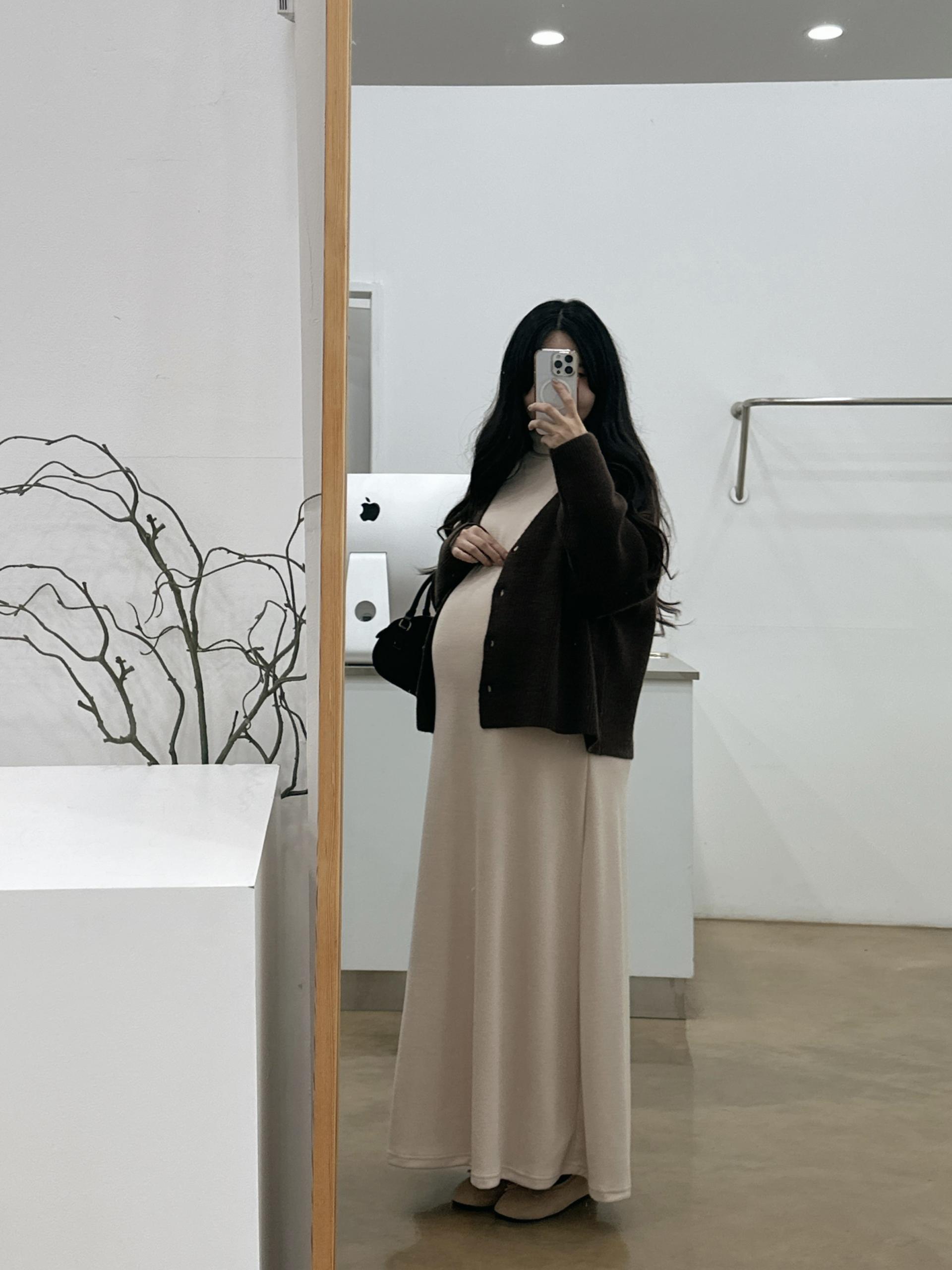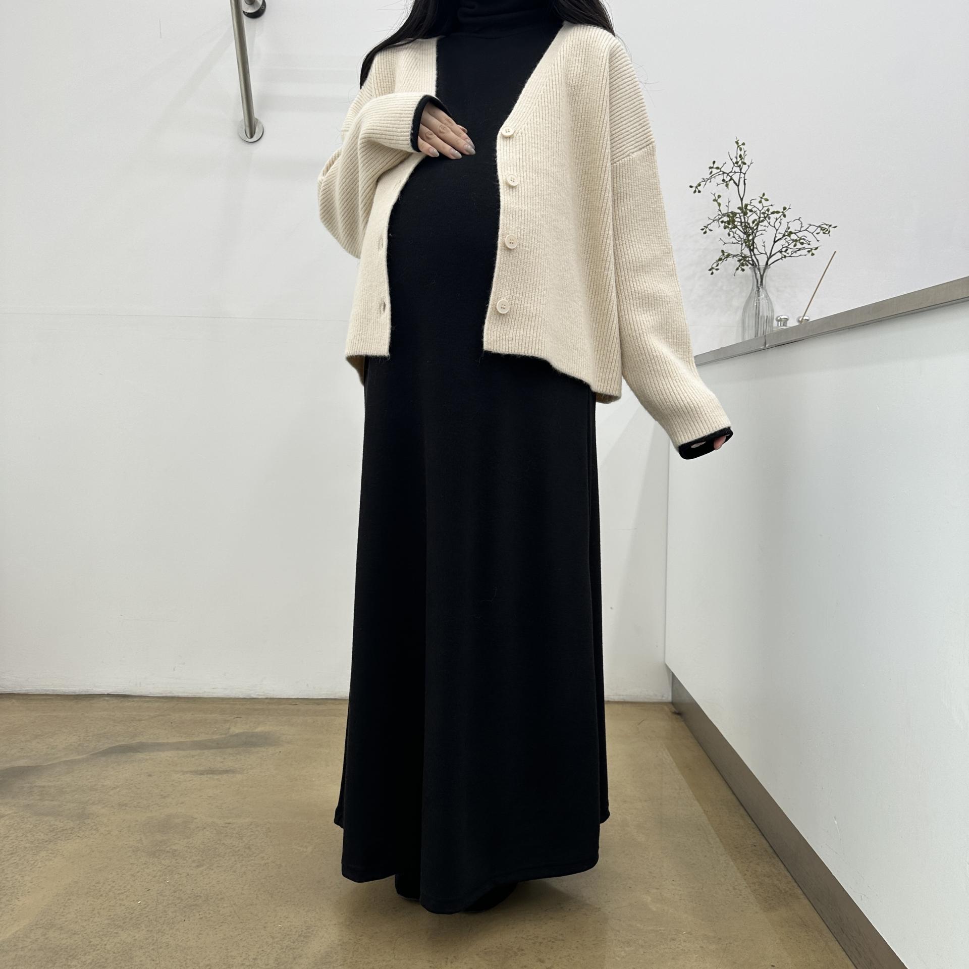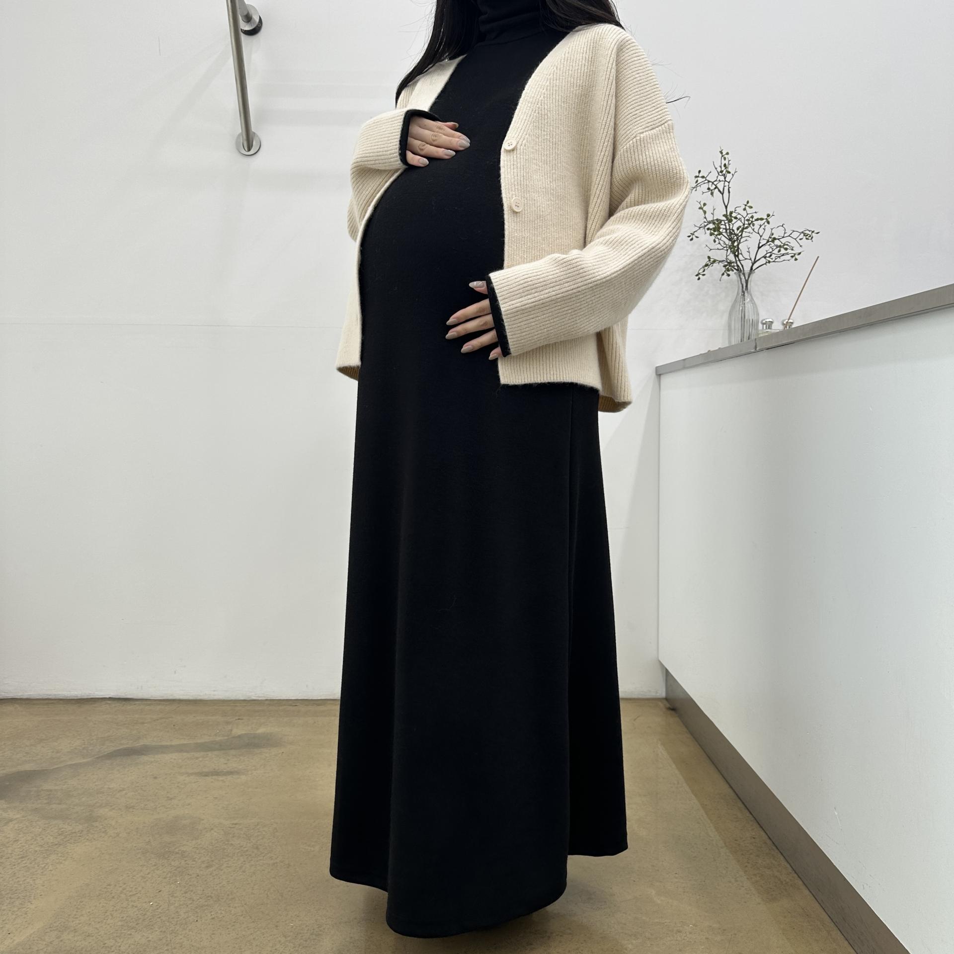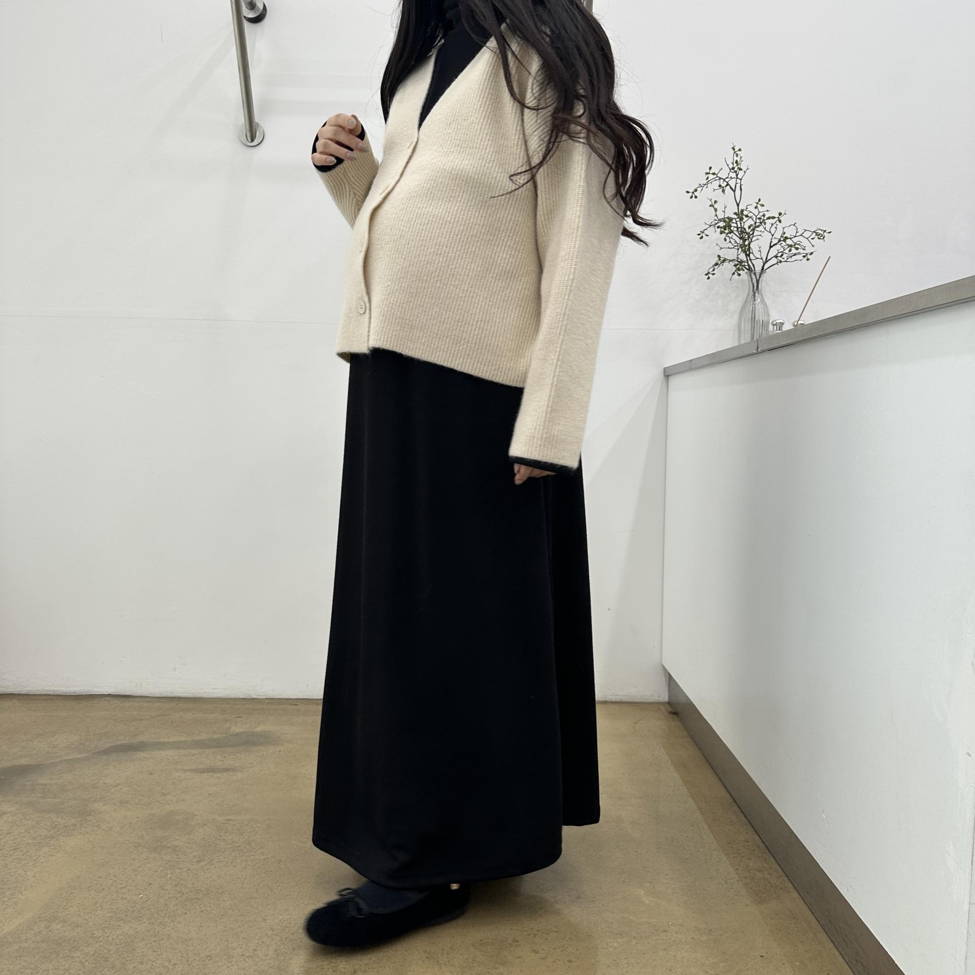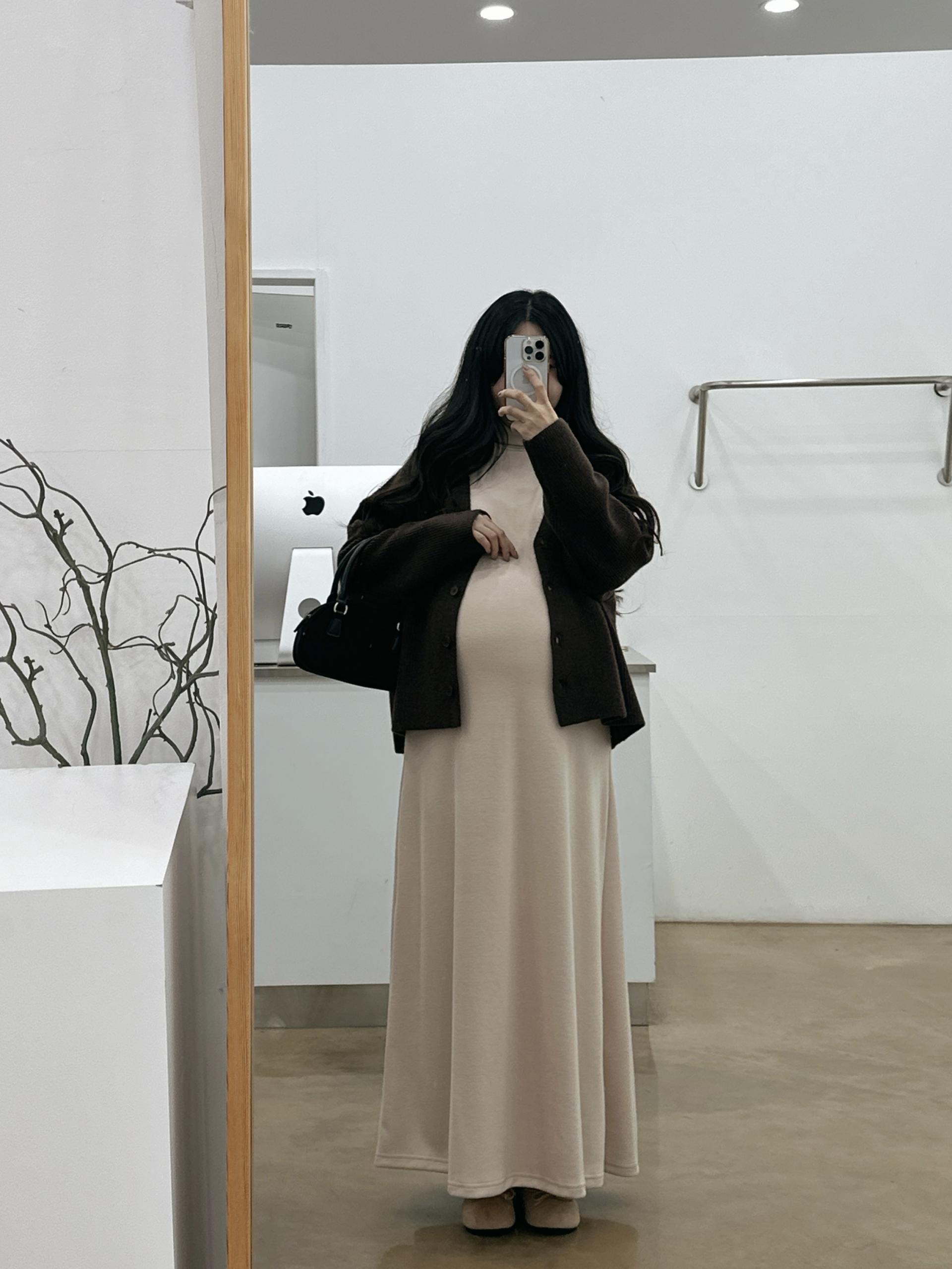 랜치니트폴라원피스 + 소프트웜 브이넥가디건 조합입니다:)