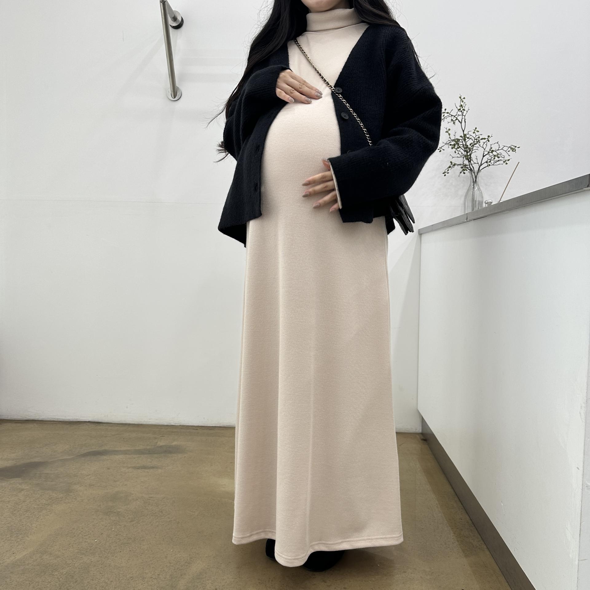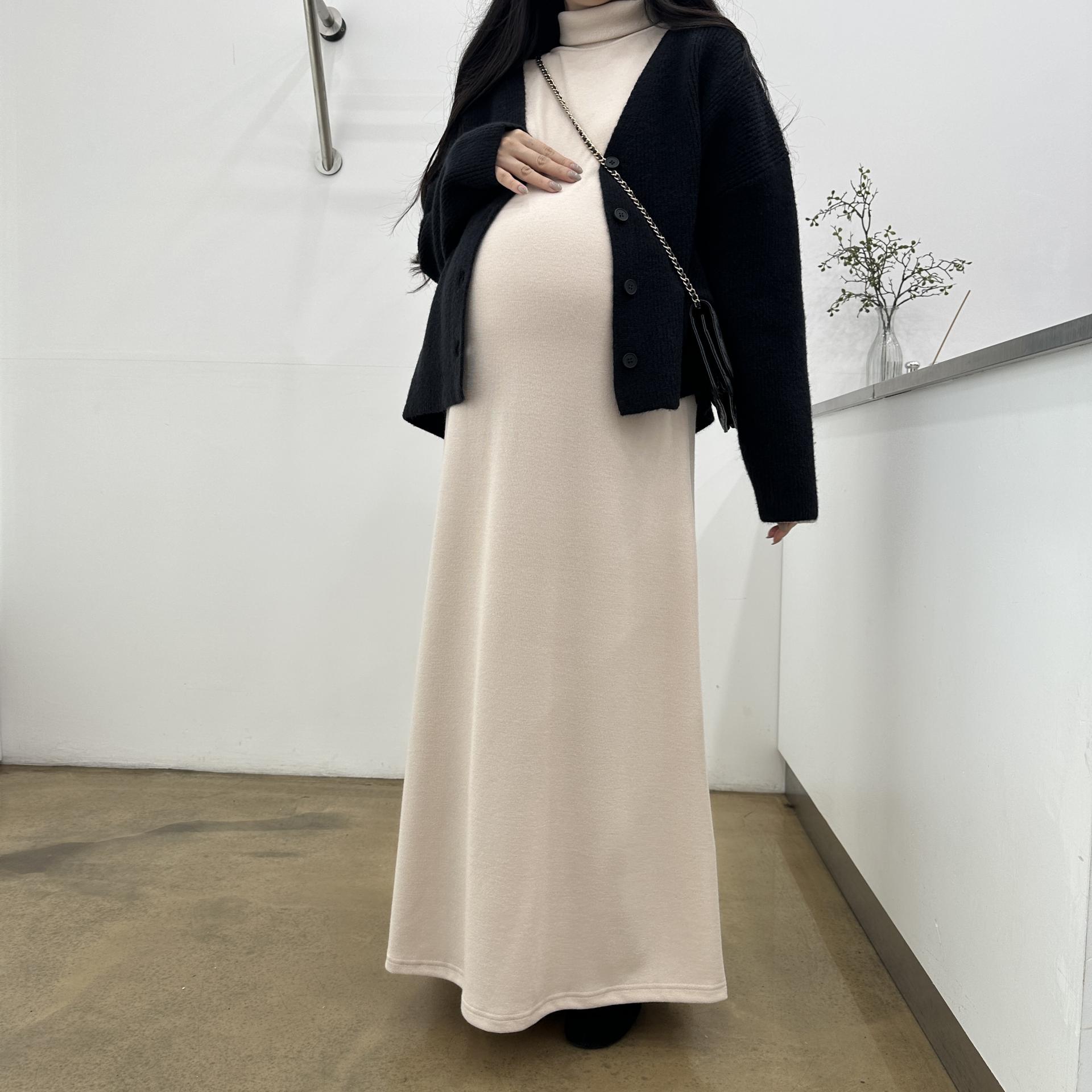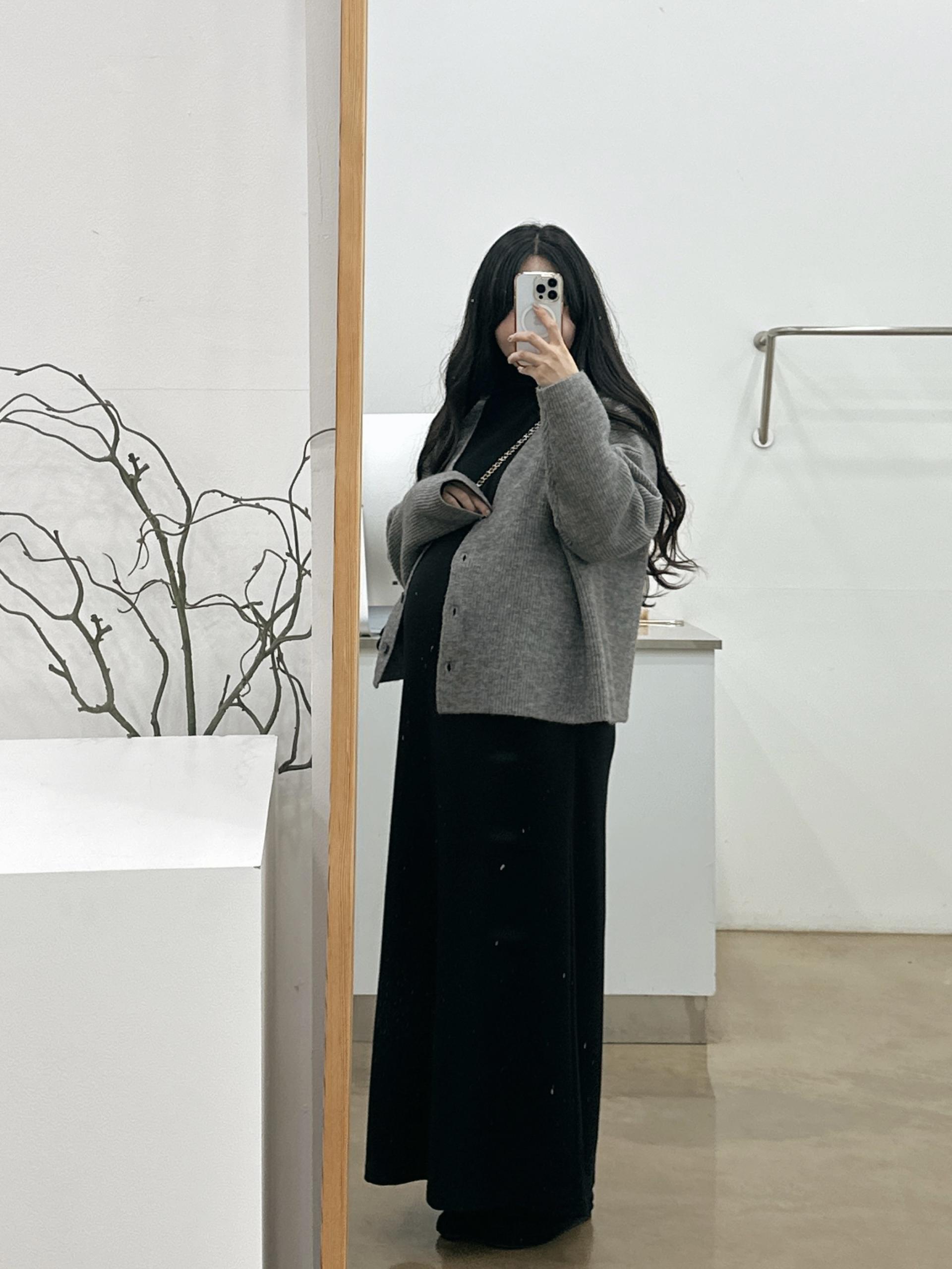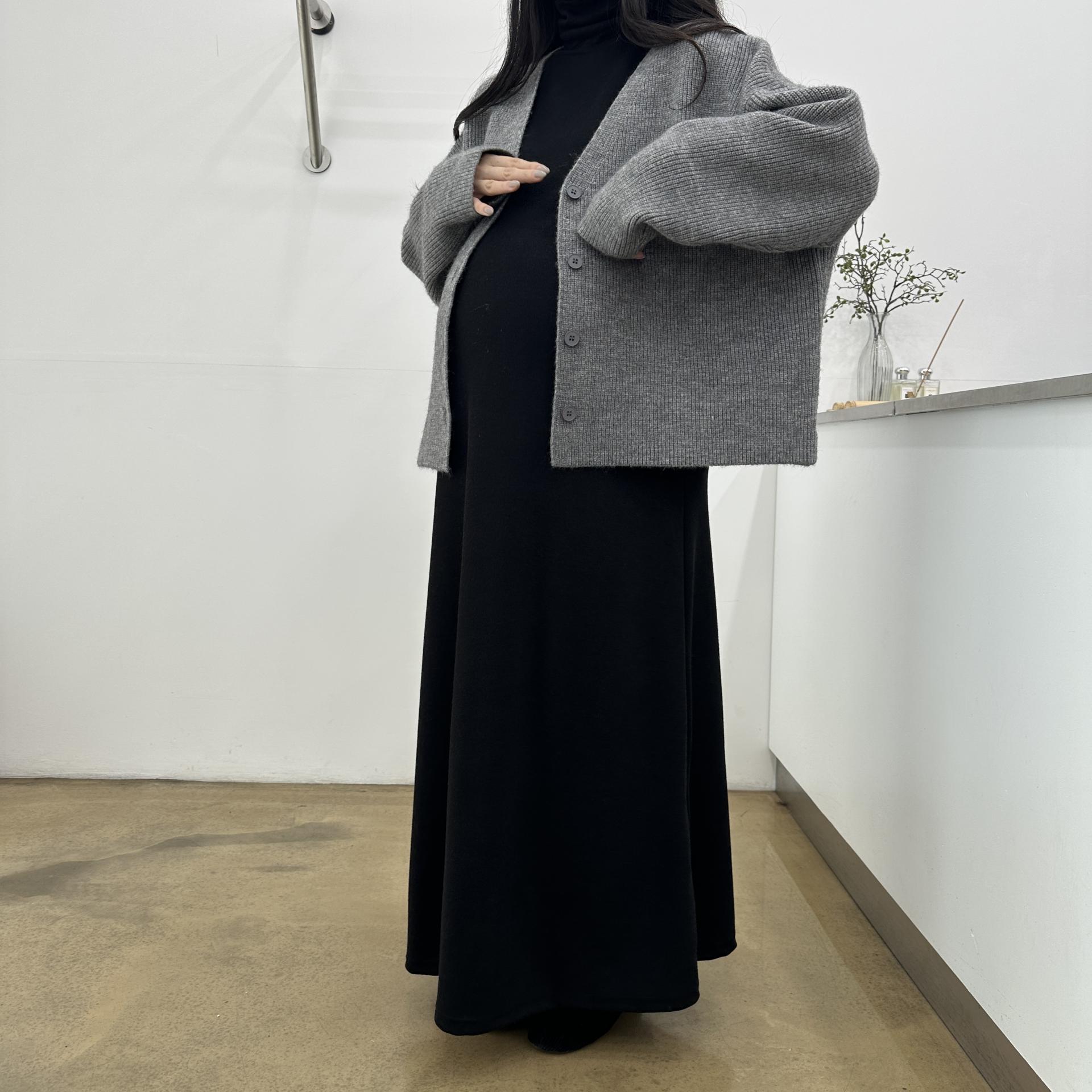 랜치니트폴라원피스 + 소프트웜 브이넥가디건 조합입니다:)