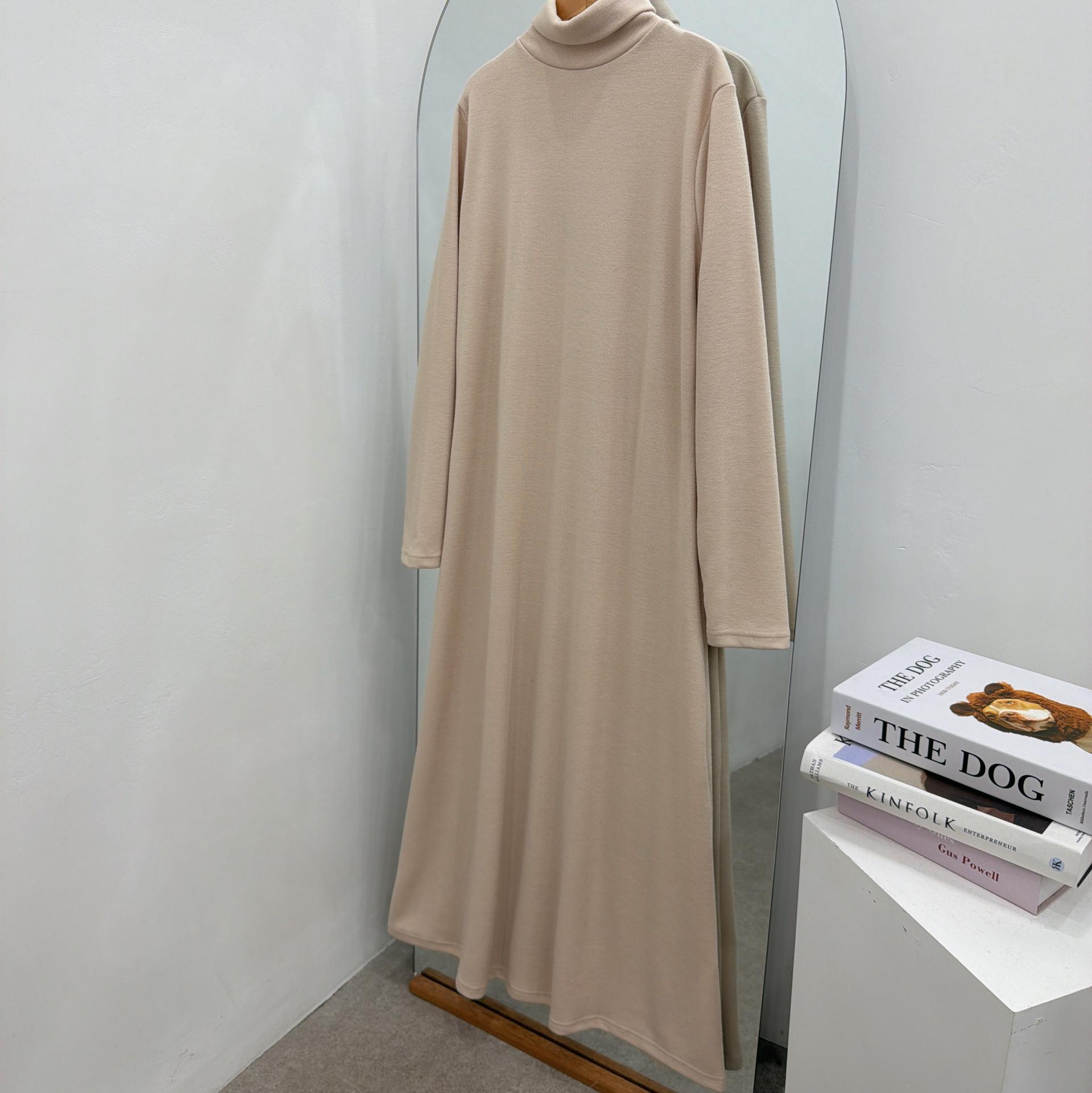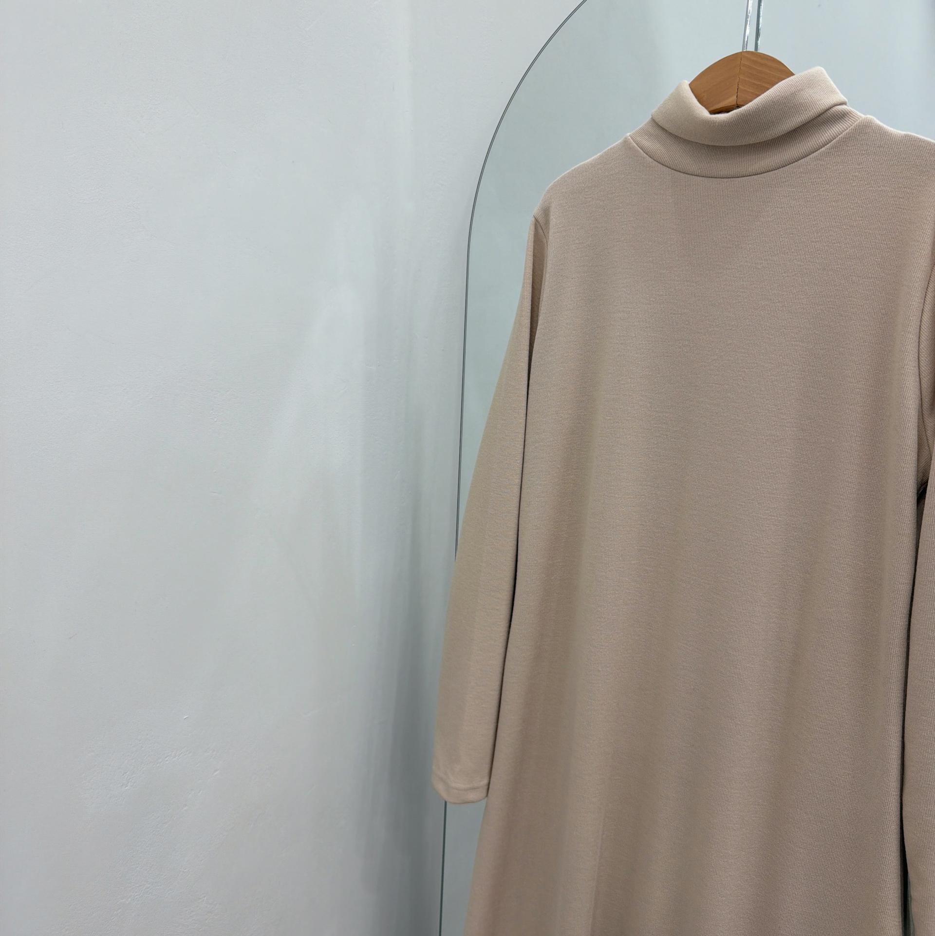 맥시한 기장에 쪼임없는 목 폴라로 따땃하게