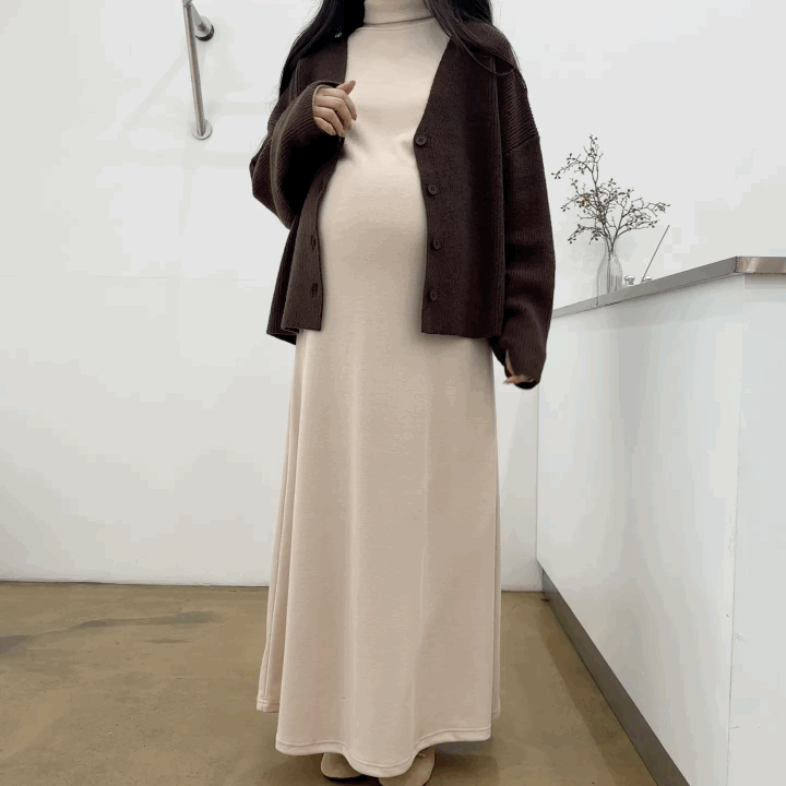 랜치니트폴라원피스 + 소프트웜 브이넥가디건 조합입니다:)