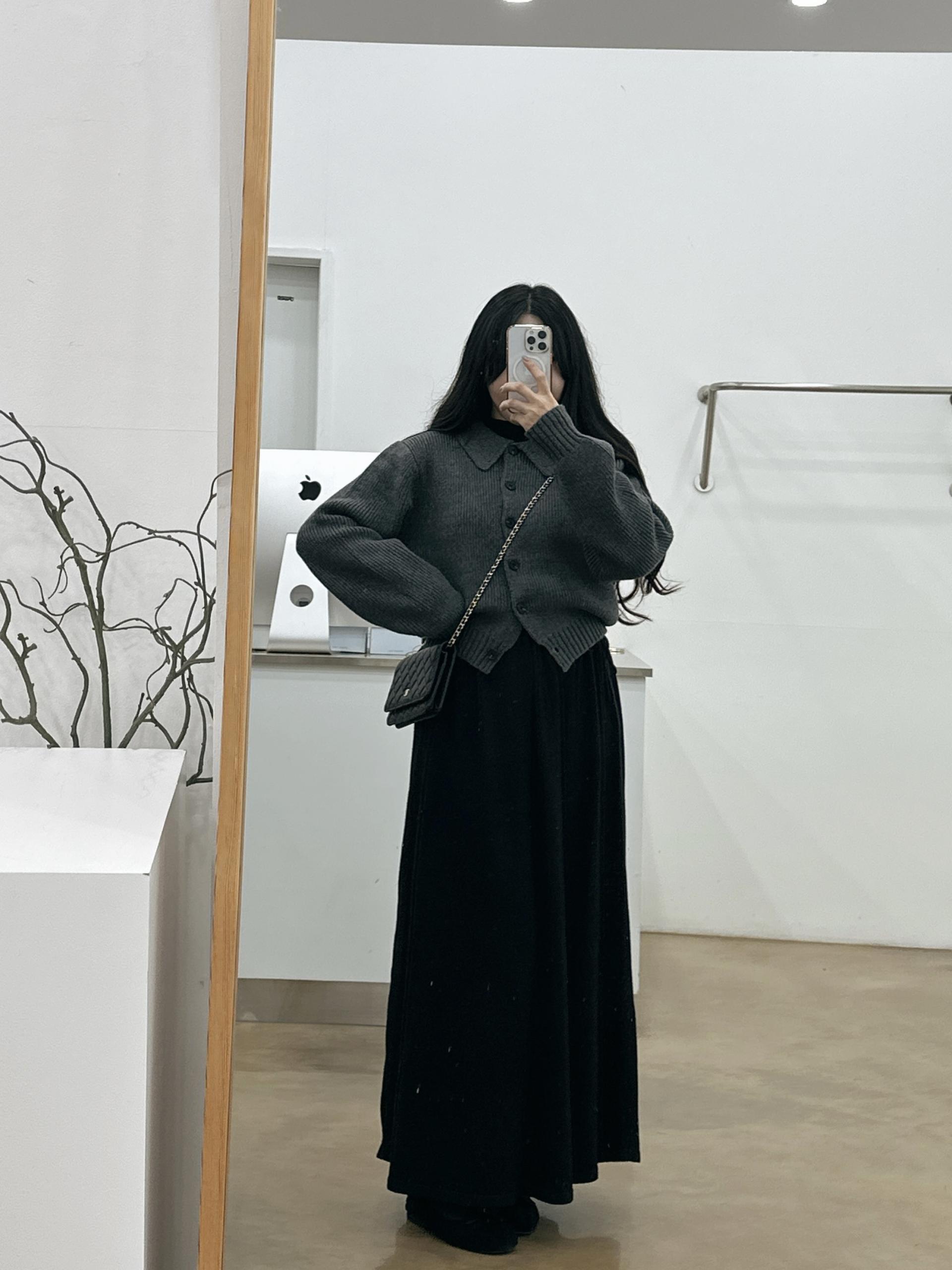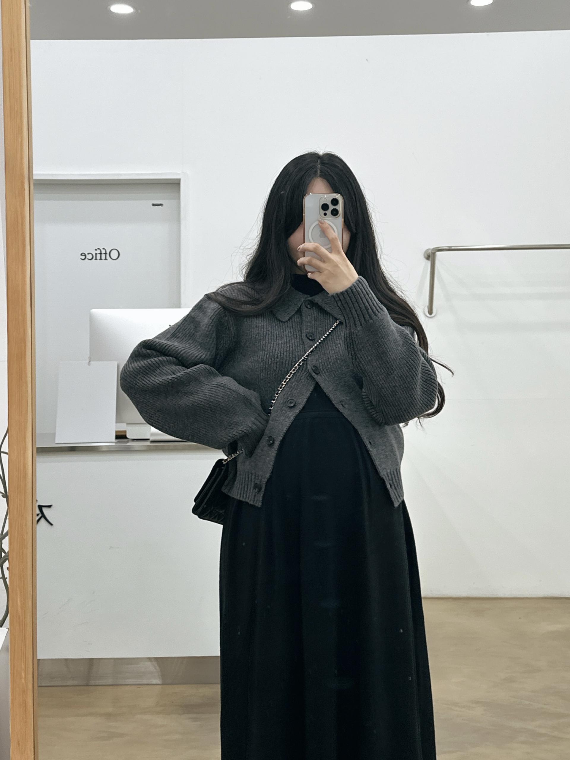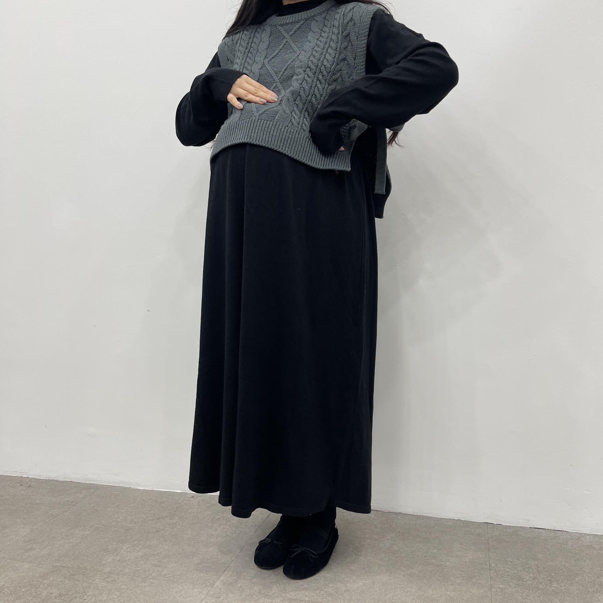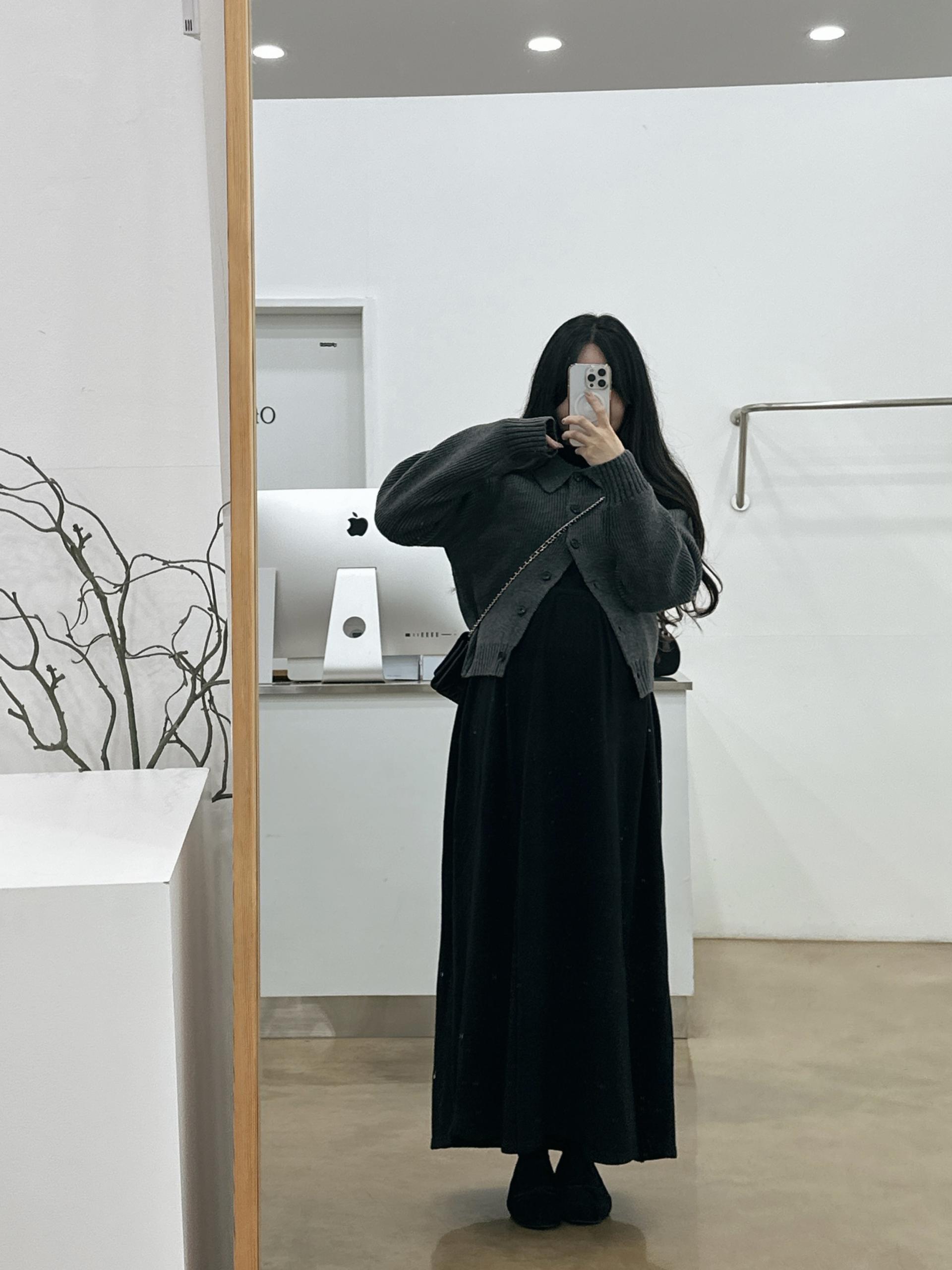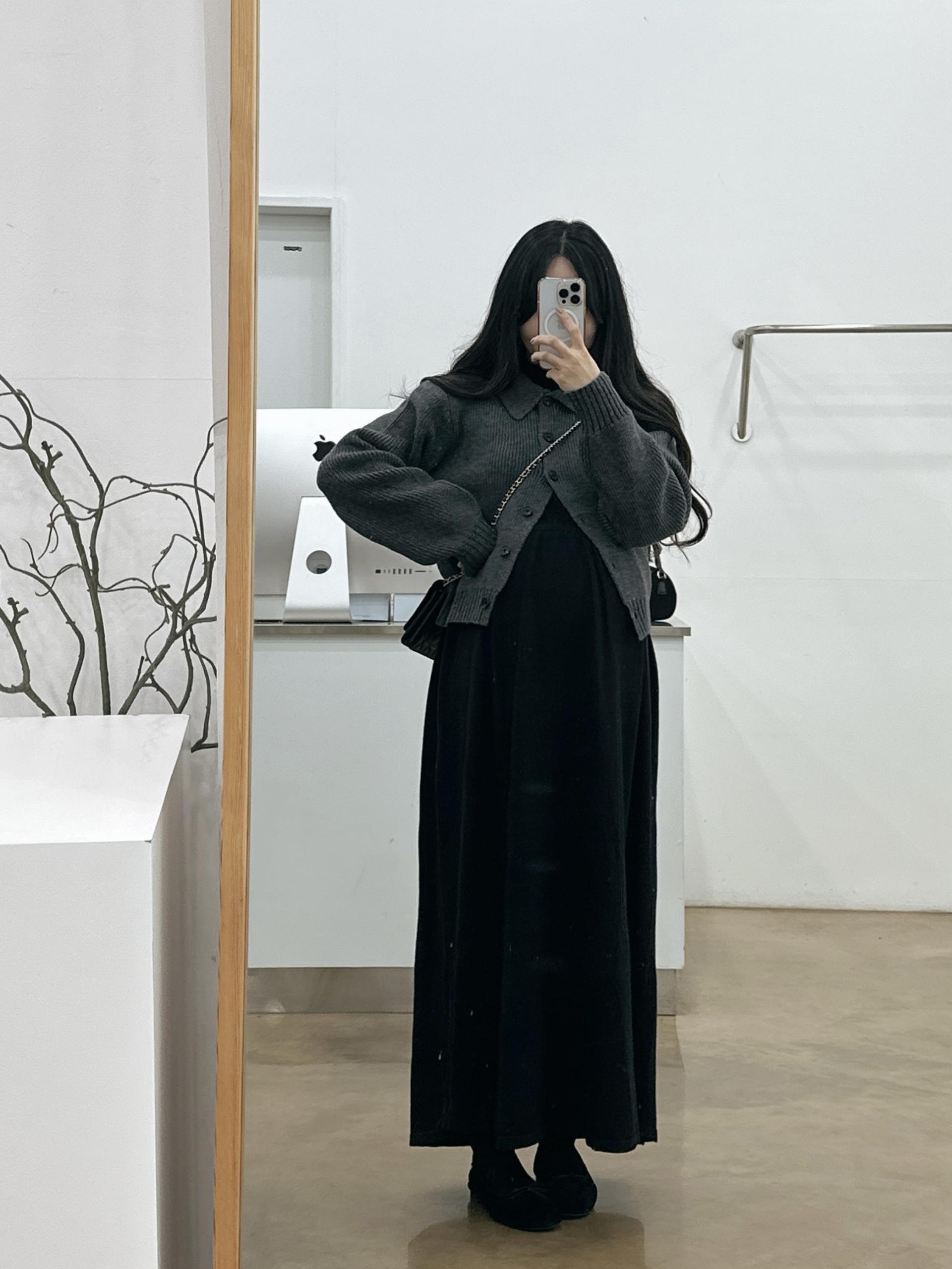 반목스트링니트원피스(블랙)+카라니트가디건(그레이)