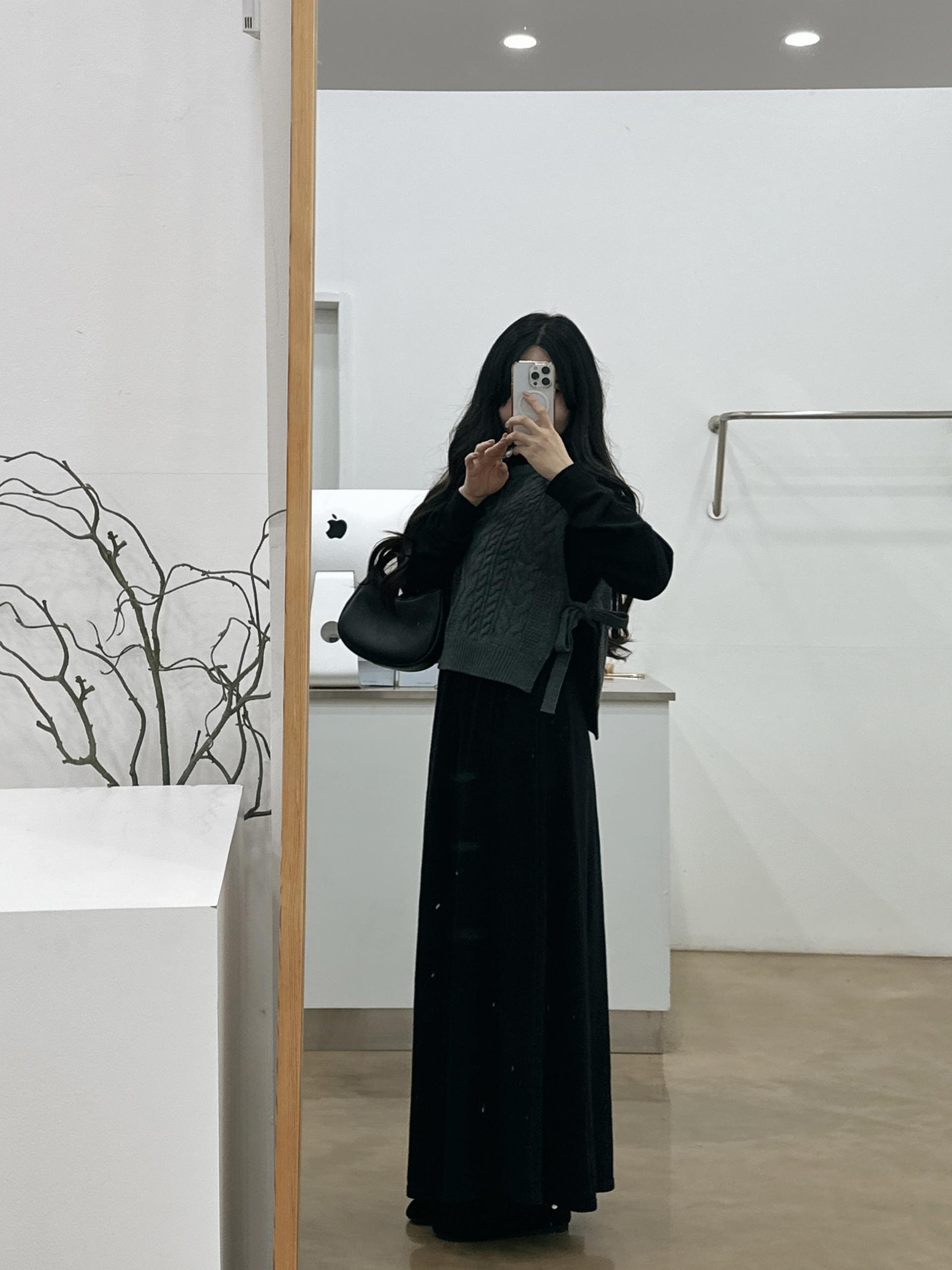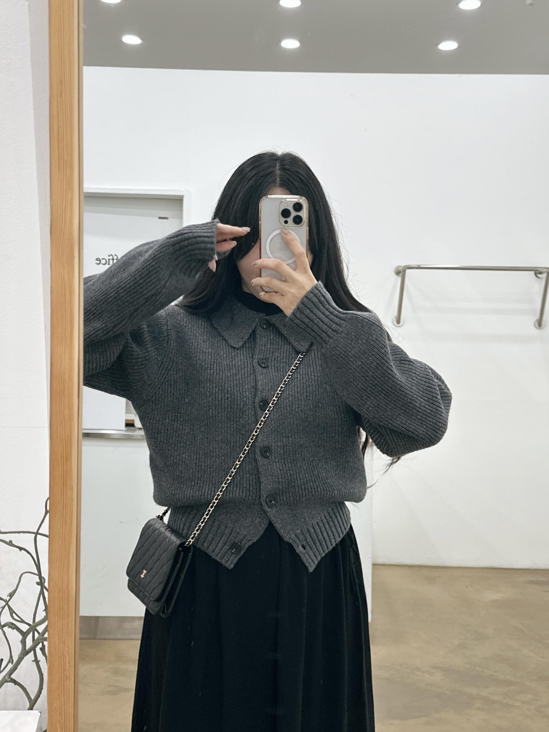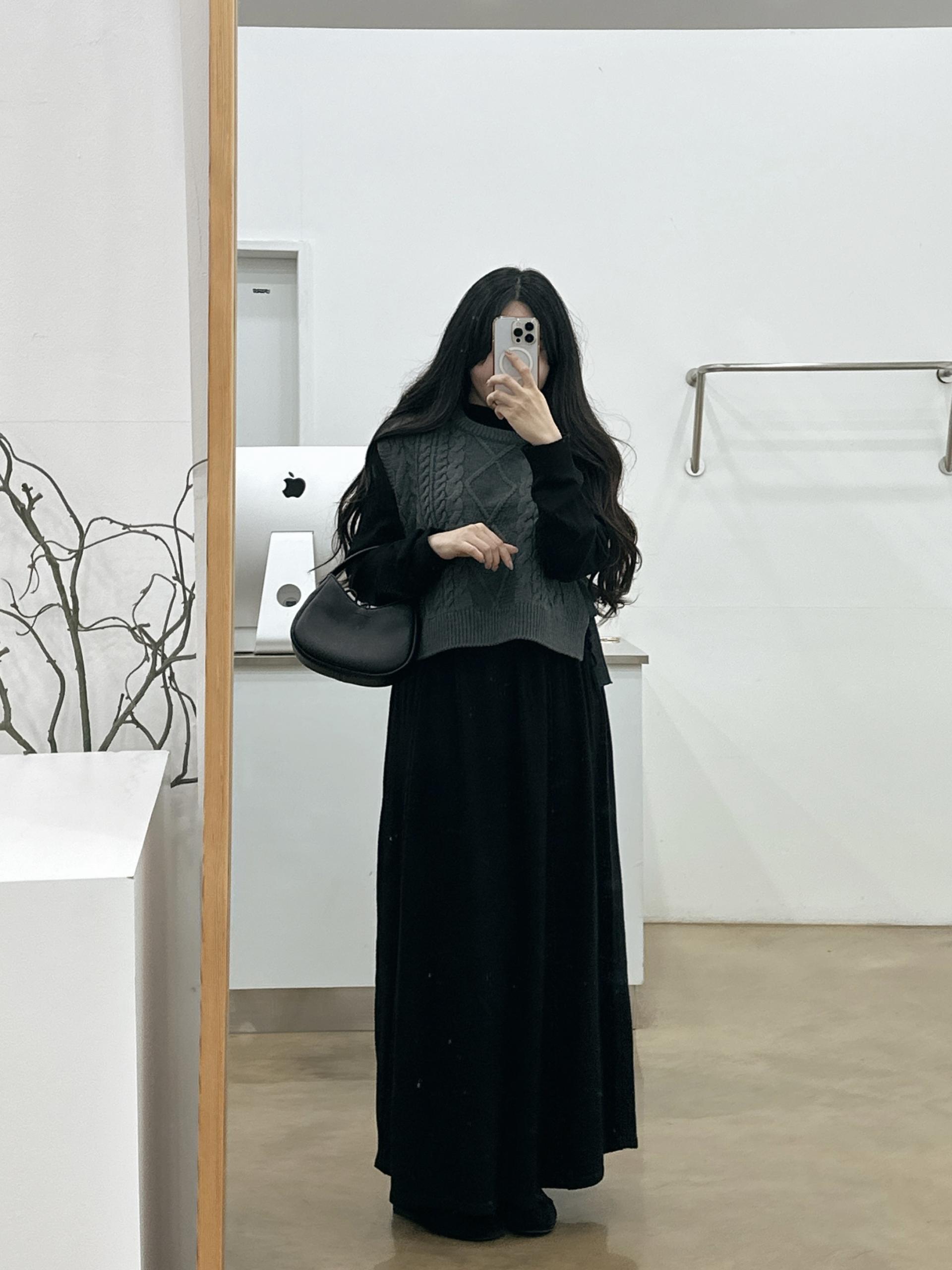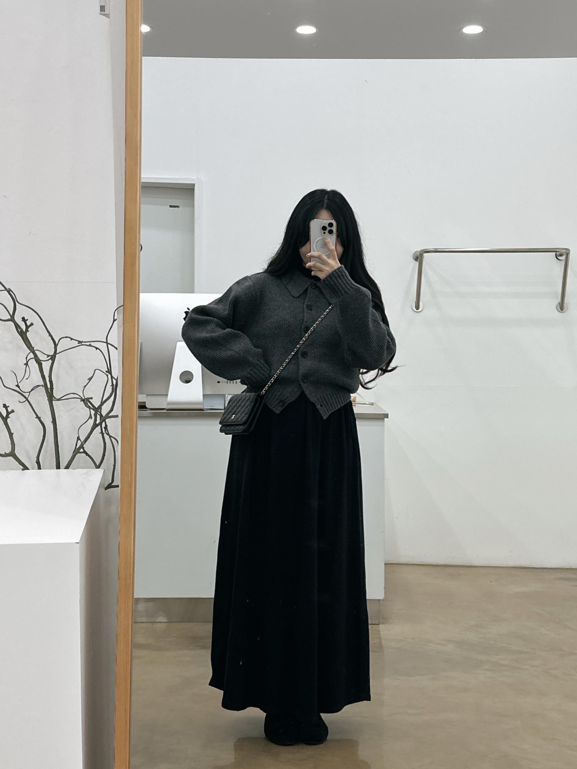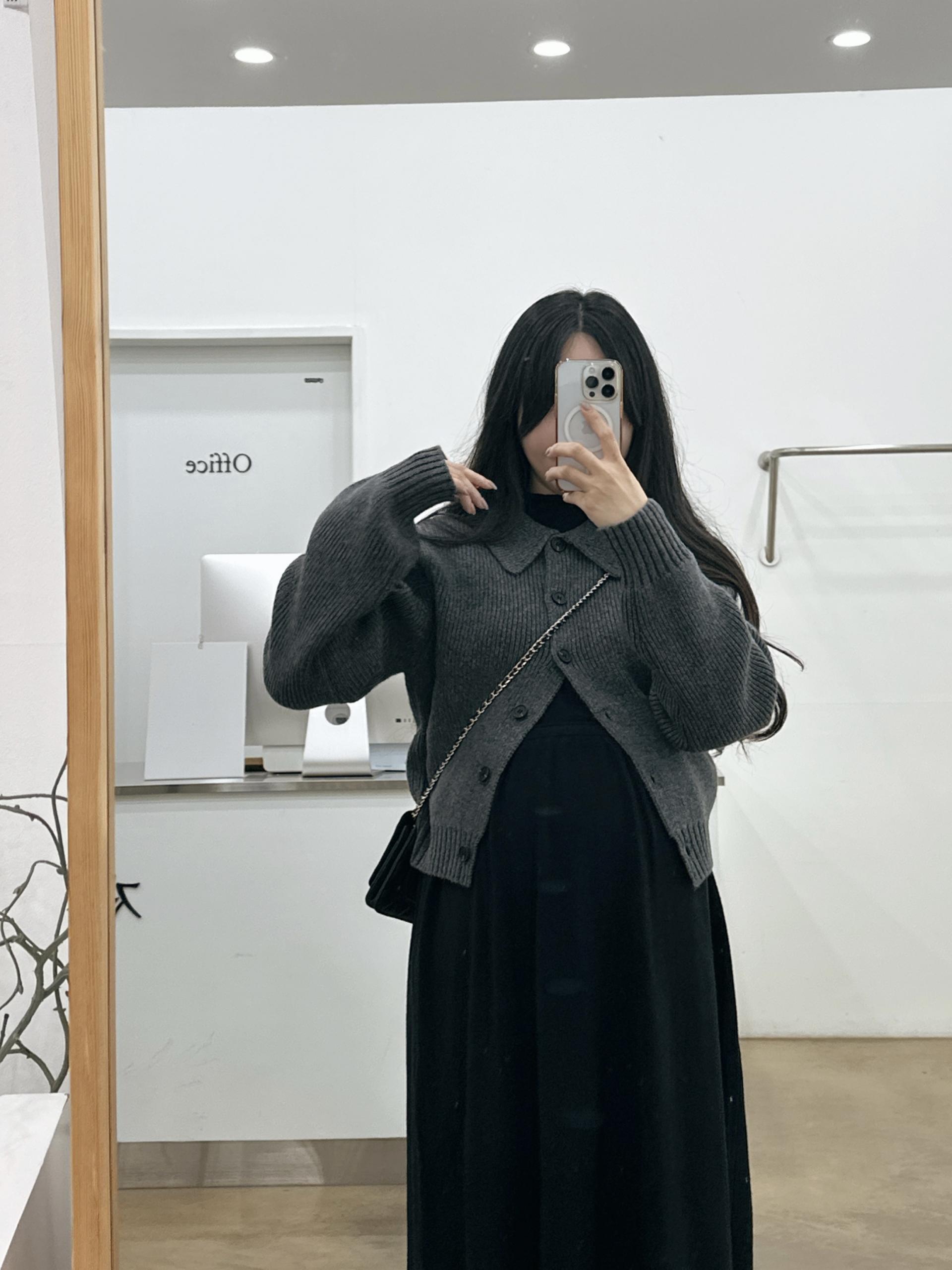 반목스트링니트원피스(블랙)+카라니트가디건(그레이)