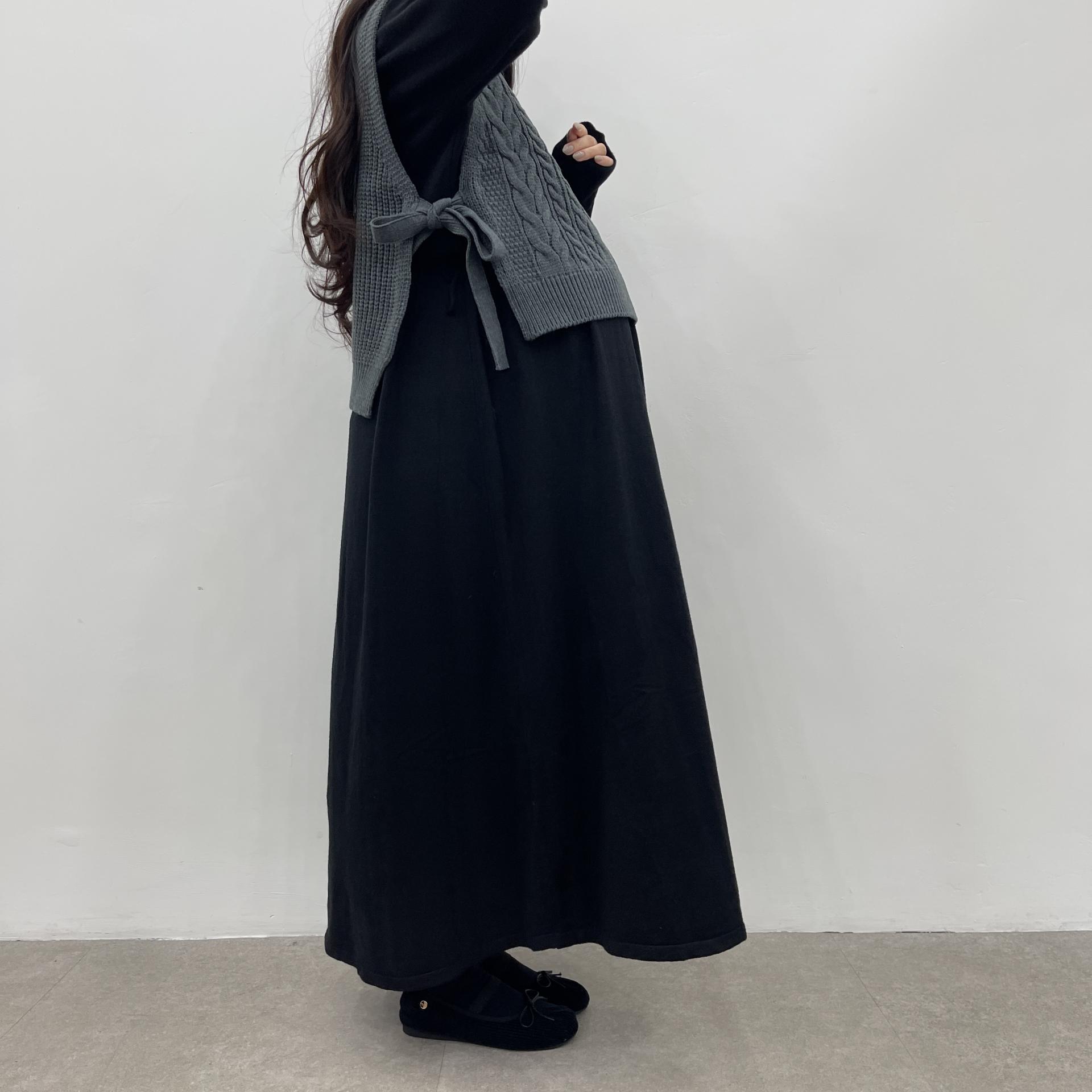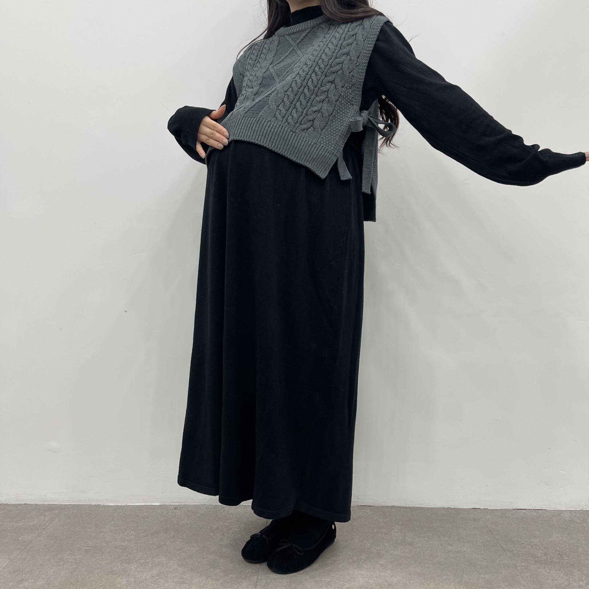 반목스트링니트원피스(블랙)+옆리본니트(그레이)