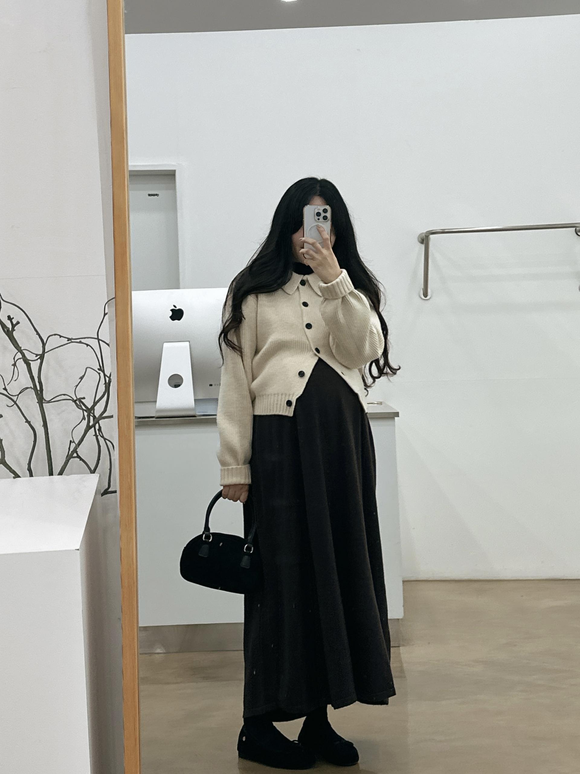 반목스트링니트원피스(밤색)+카라니트가디건(아이보리)