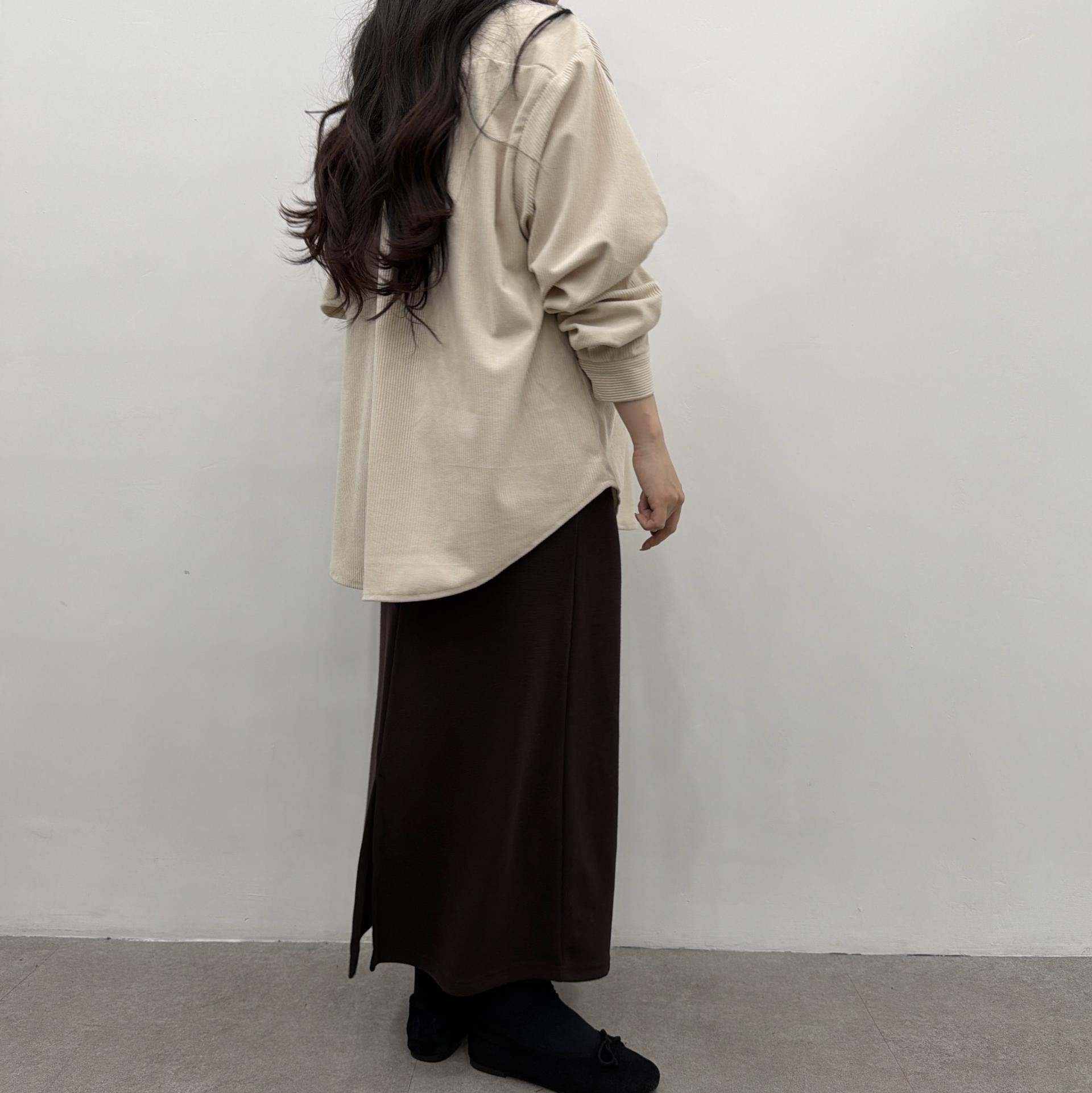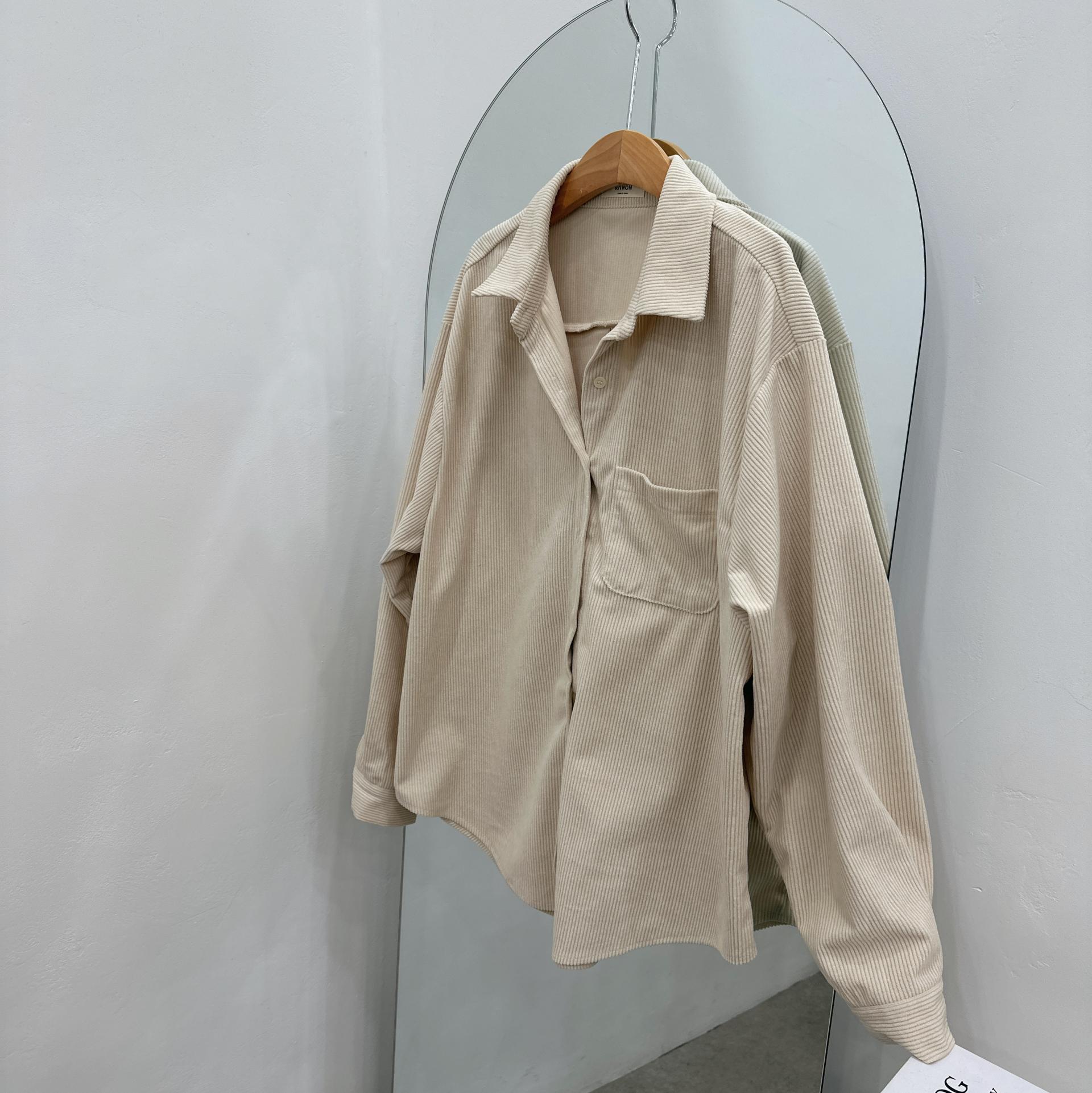 소프트한 골덴소재에 먼지가 덜 타고, 오버핏의 셔츠라 핏감 예뻐요!