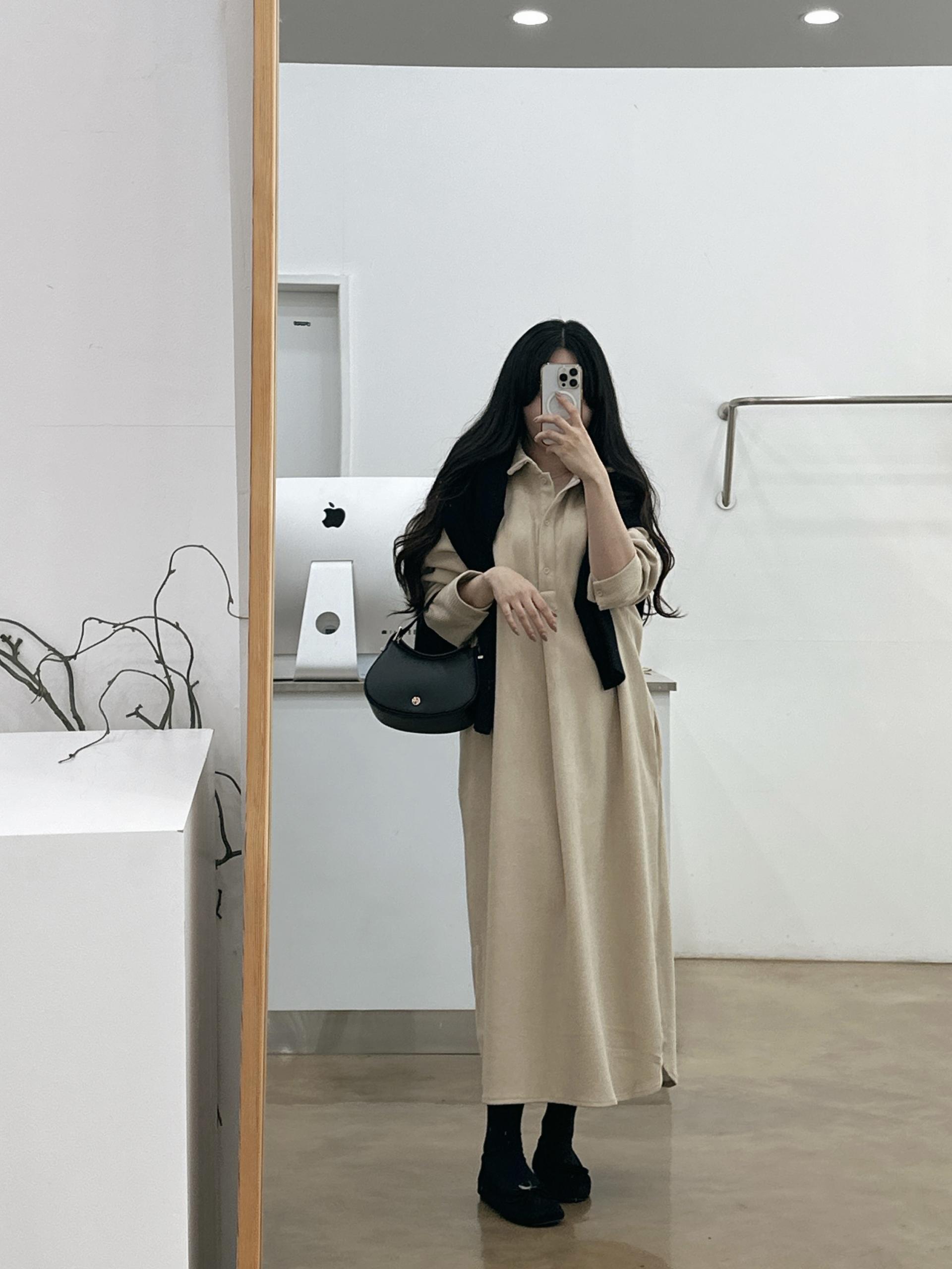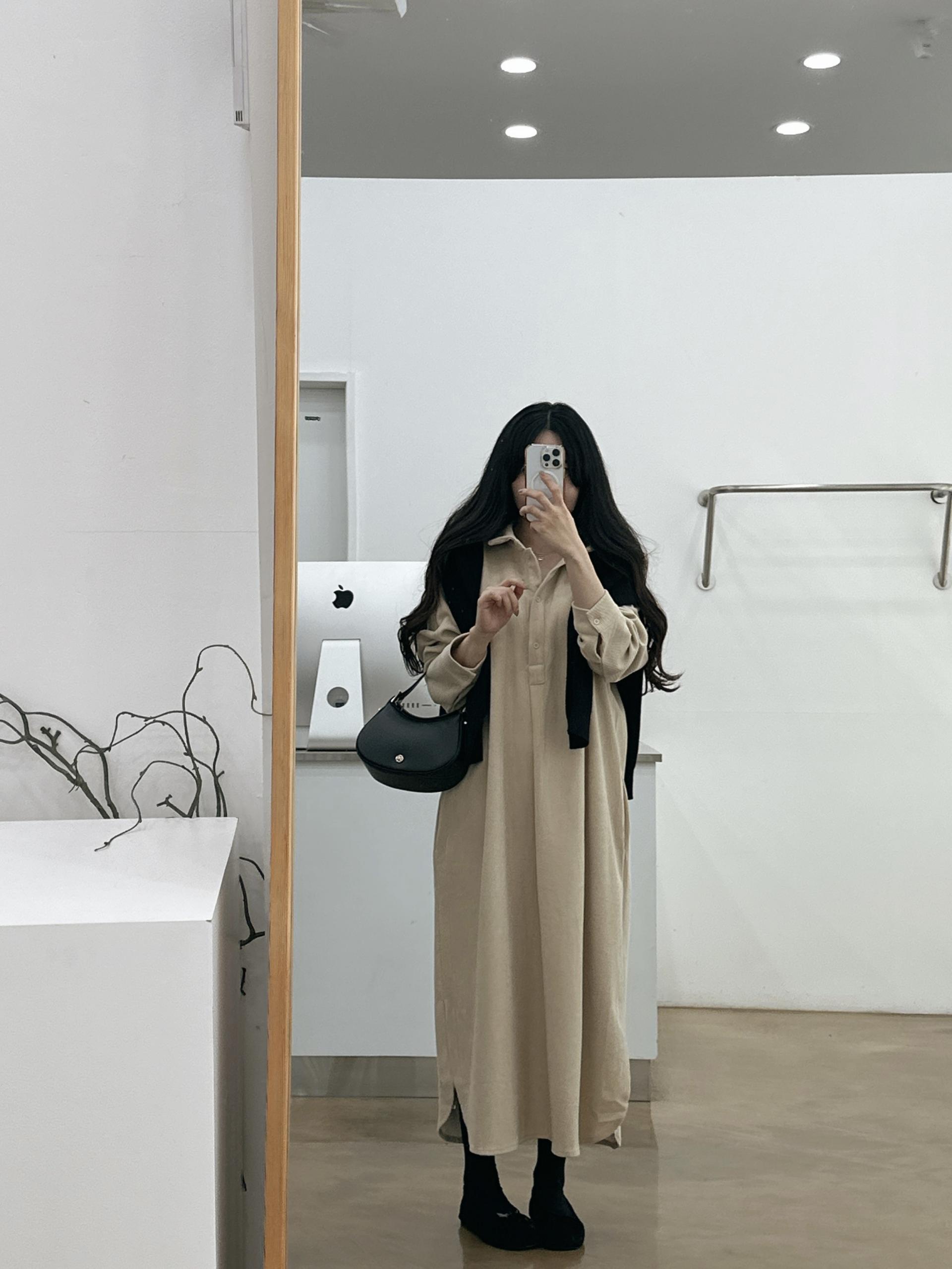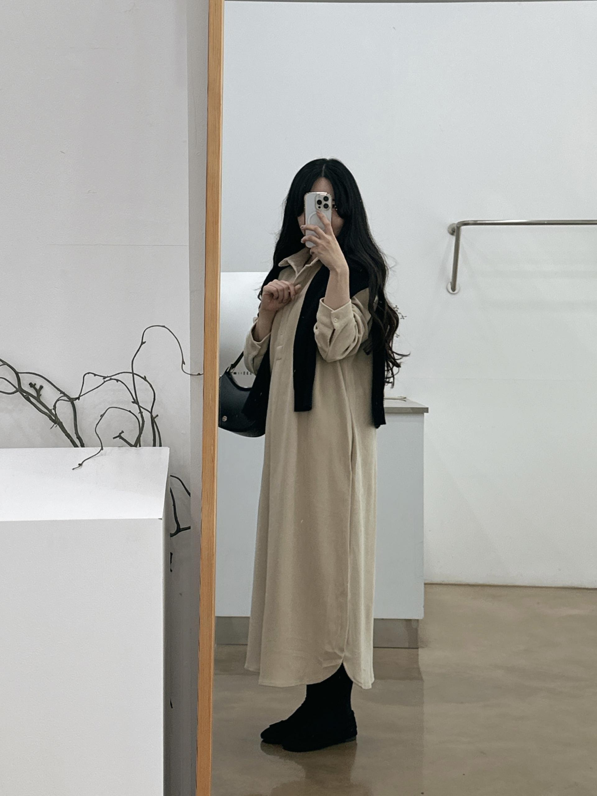 편하게 입기 좋은 골덴소재 셔츠 원피스입니다