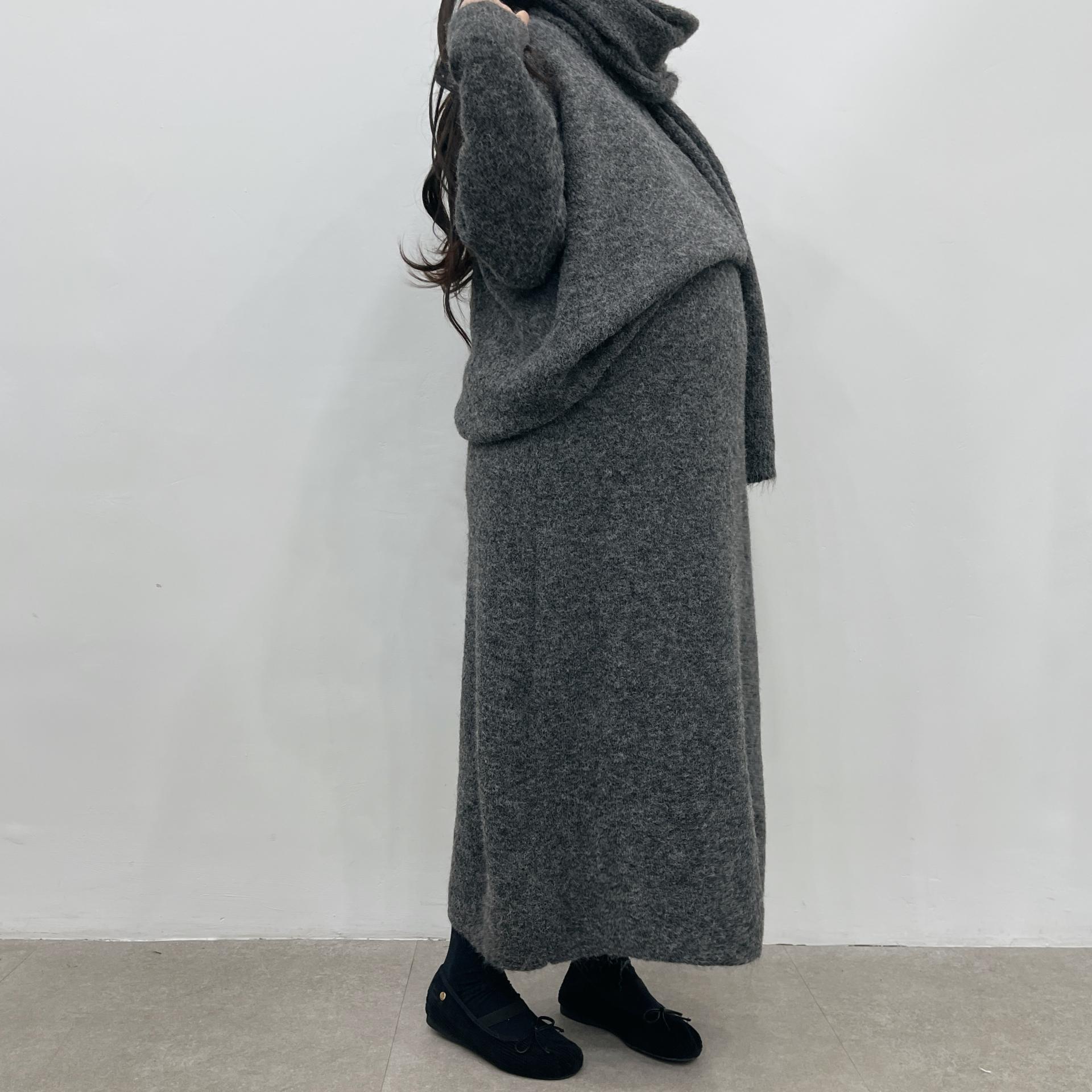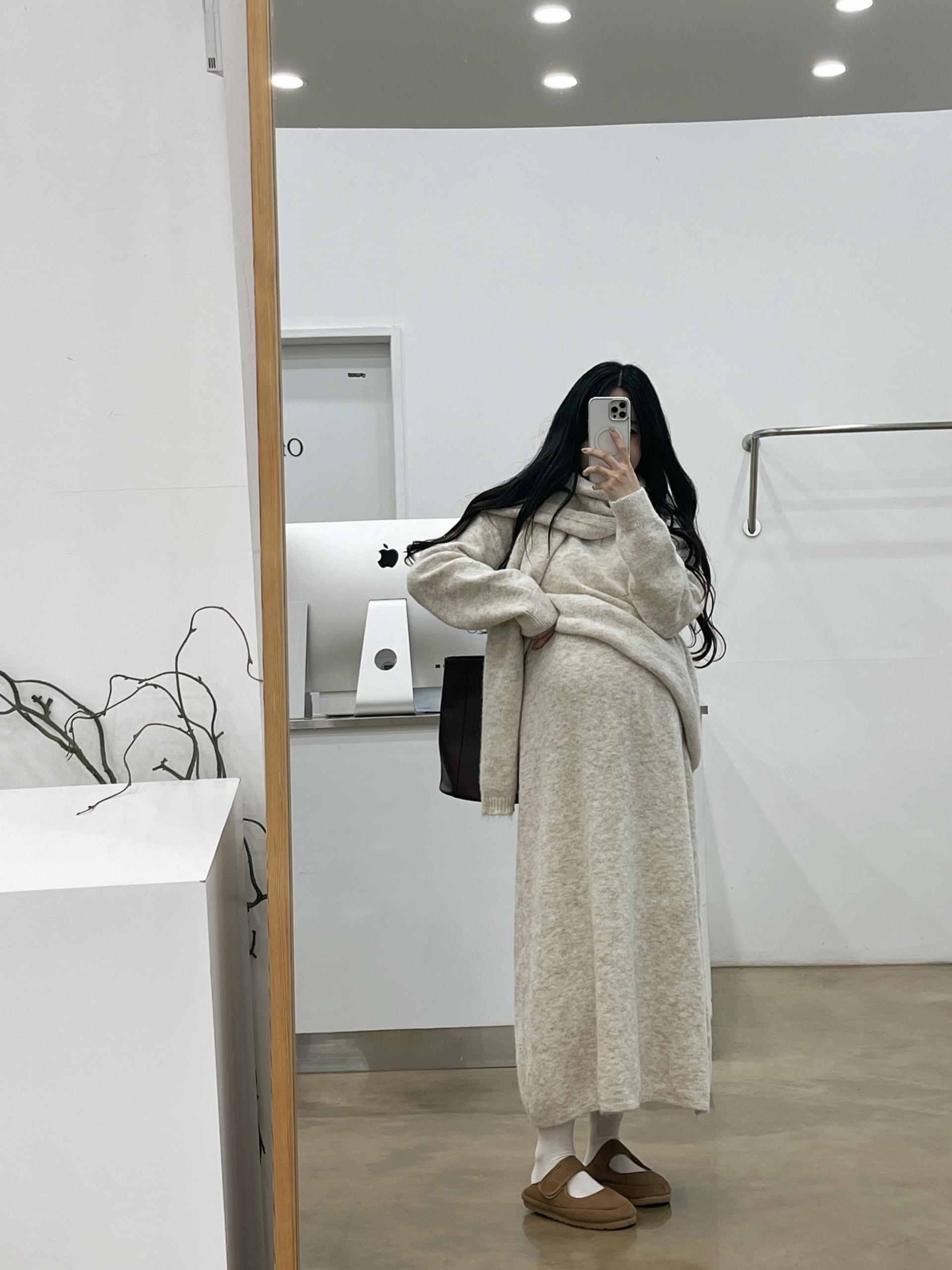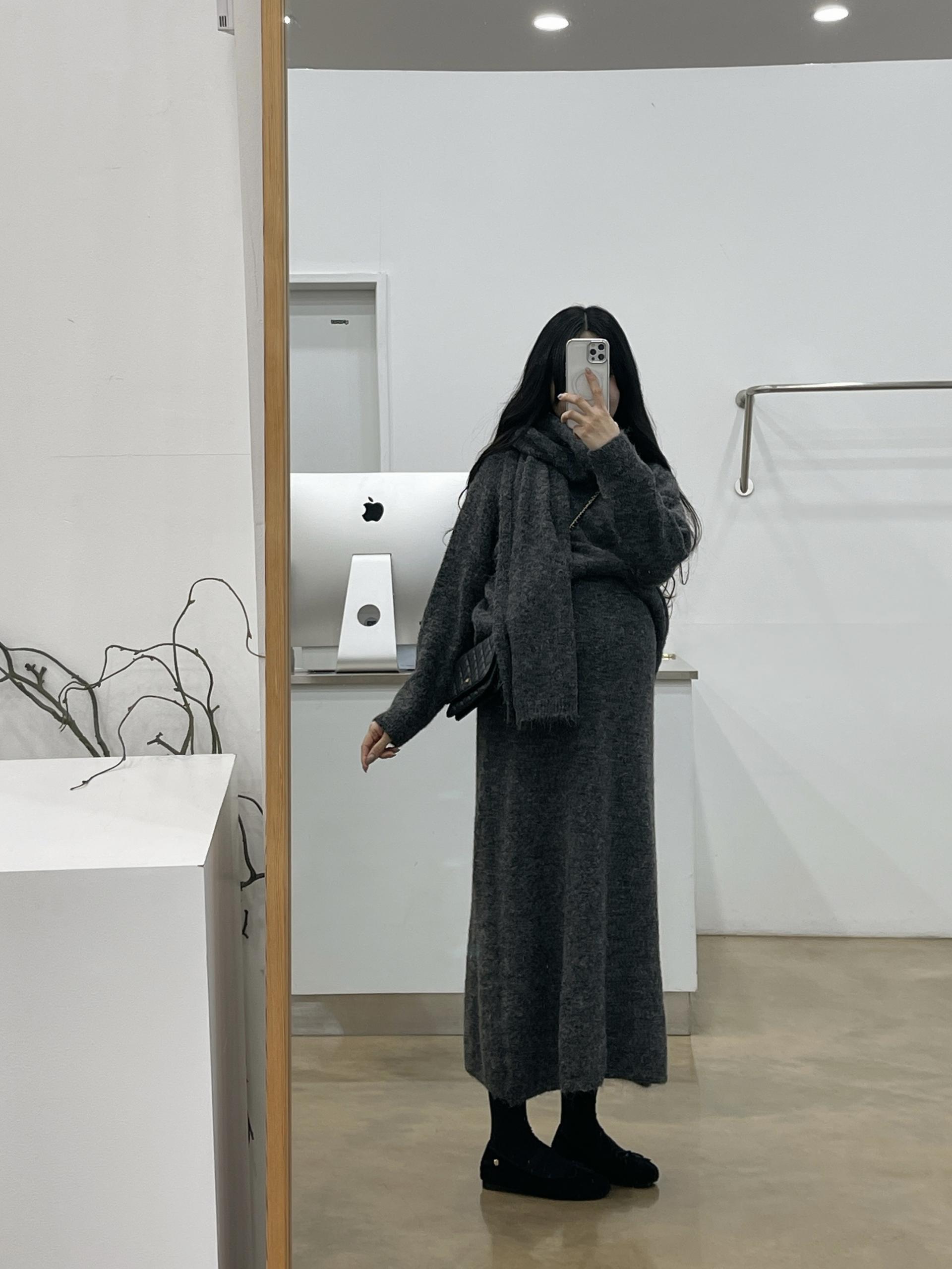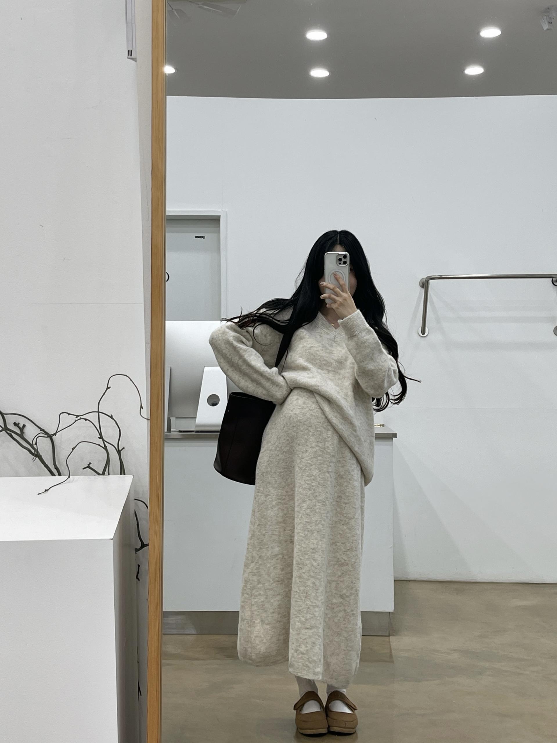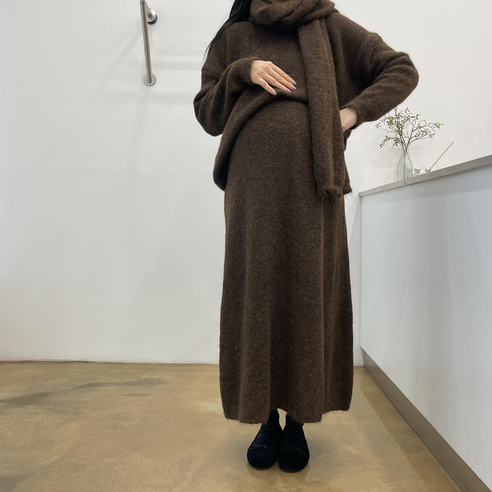 힙.배덮기장의 V넥니트와 스커트 그리고 머플러가 세트입니다