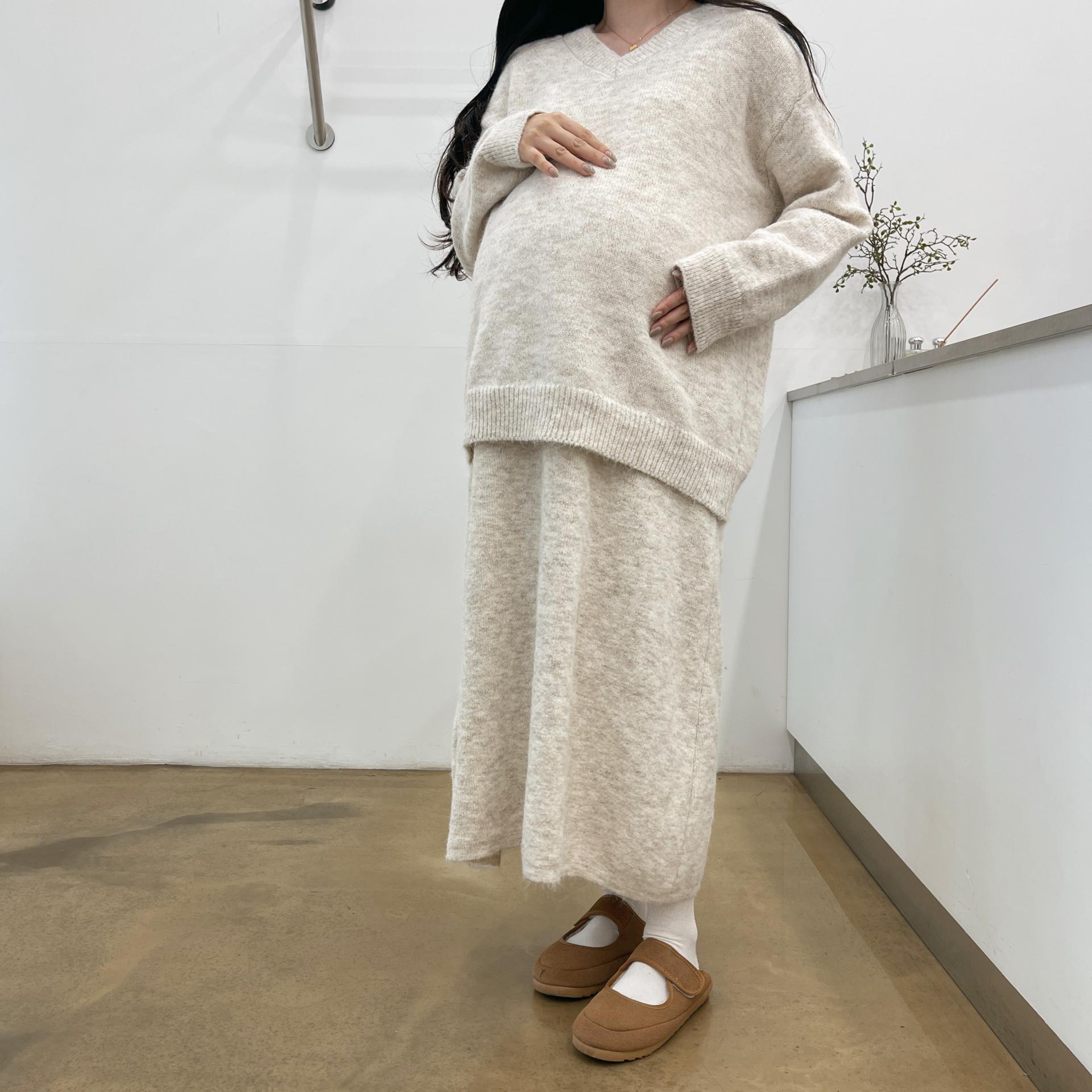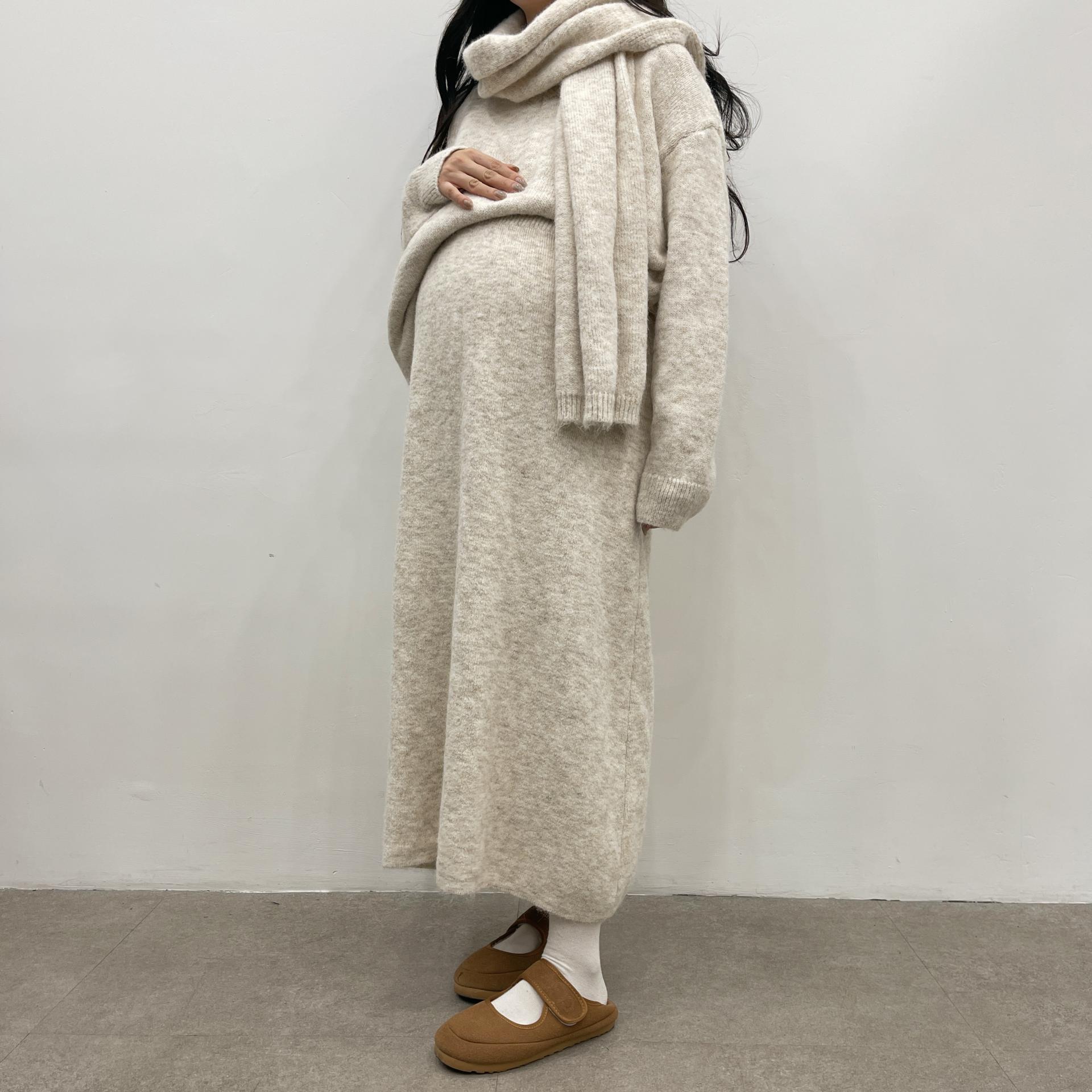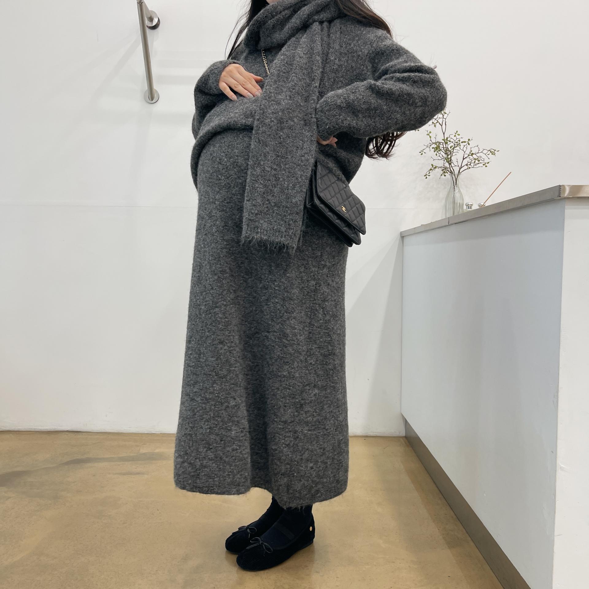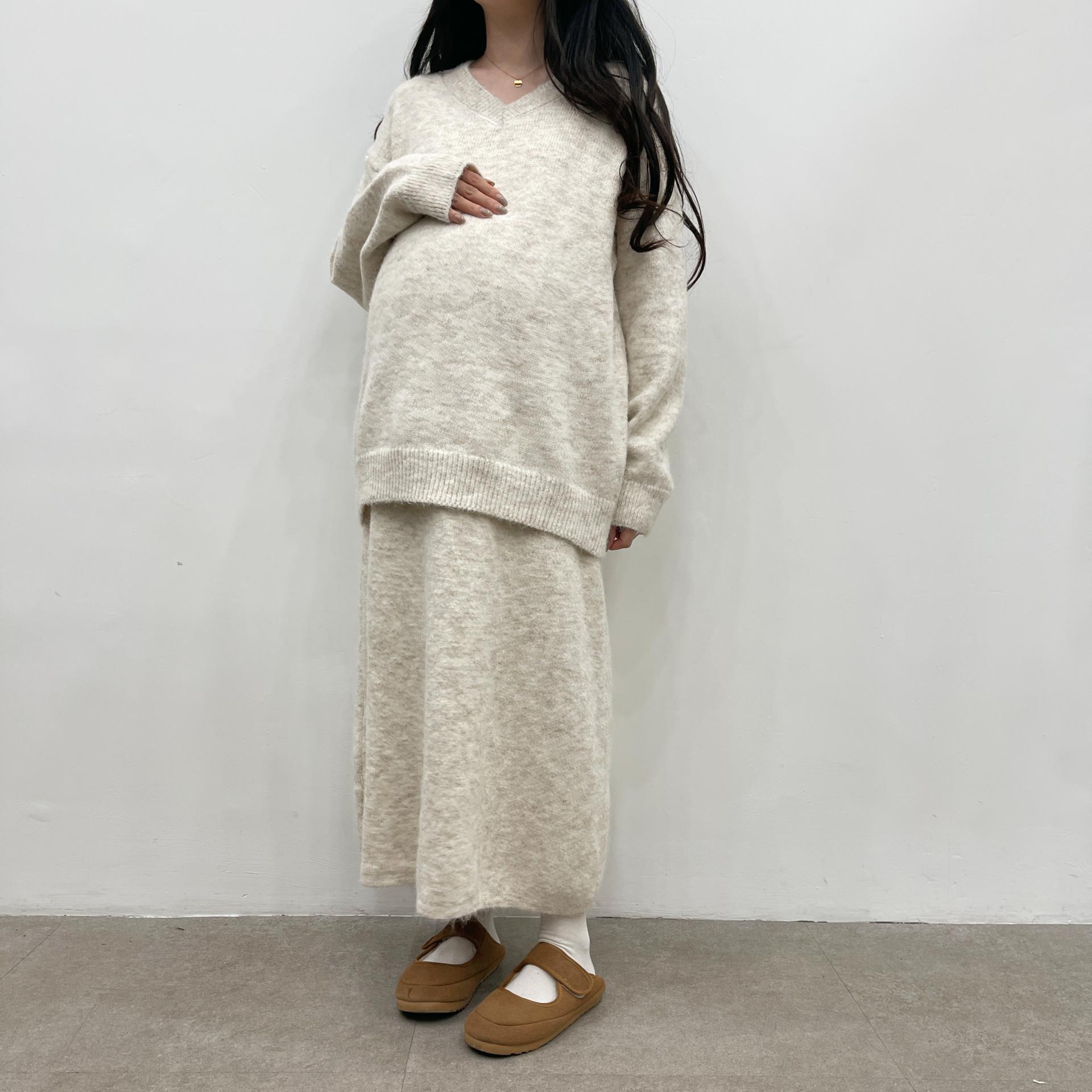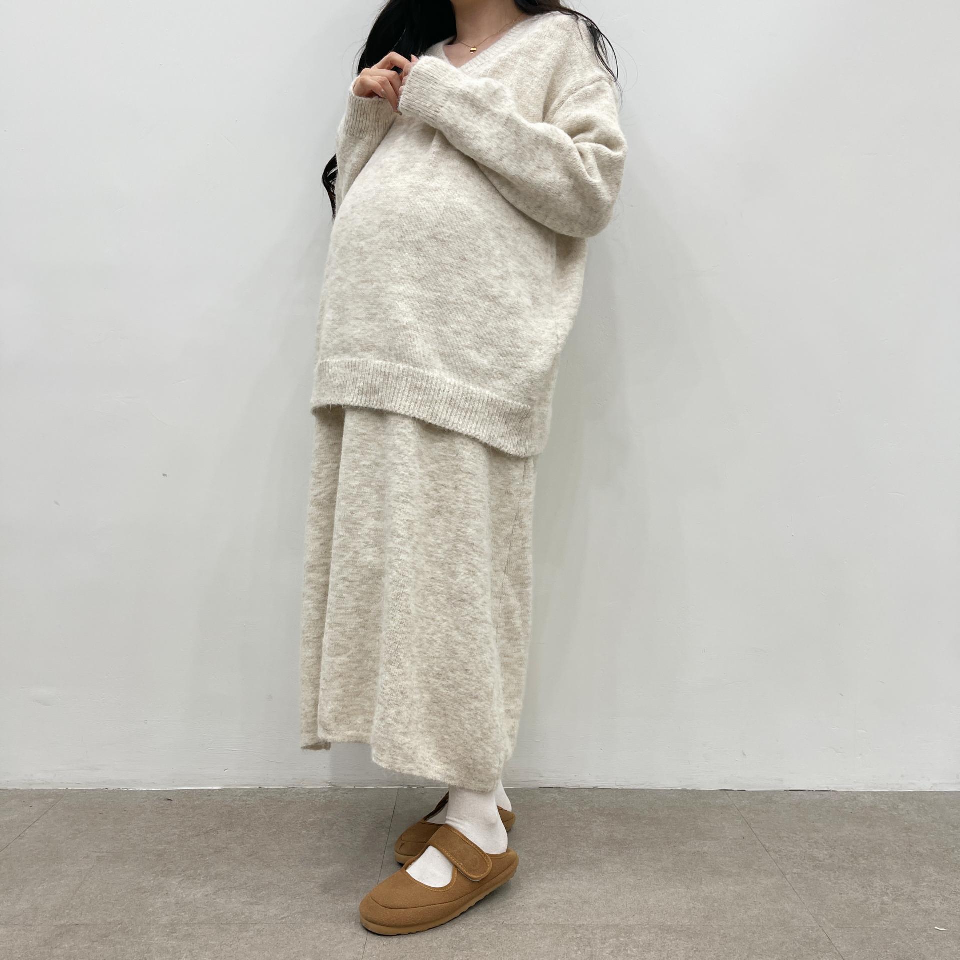 힙.배덮기장의 V넥니트와 스커트 그리고 머플러가 세트입니다
