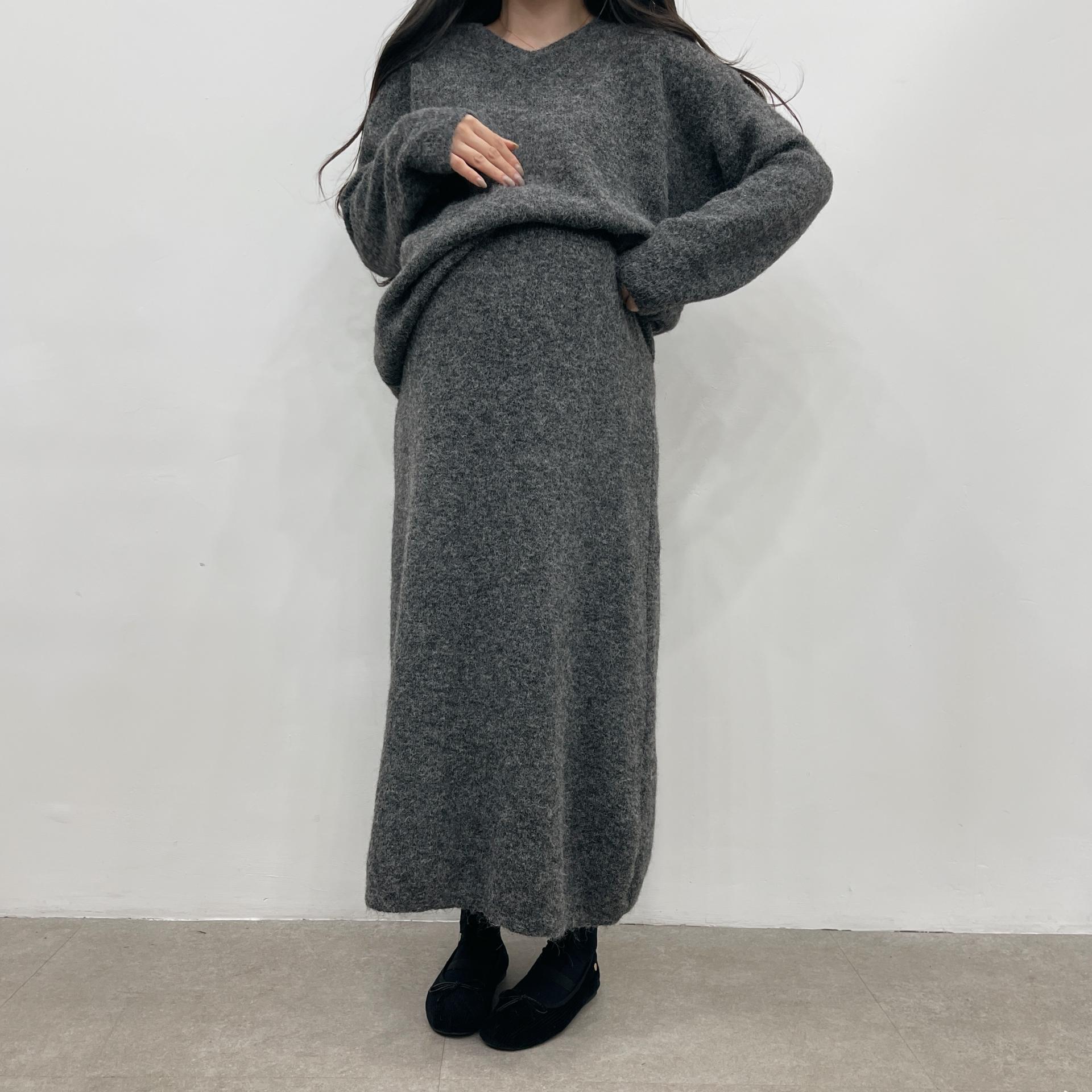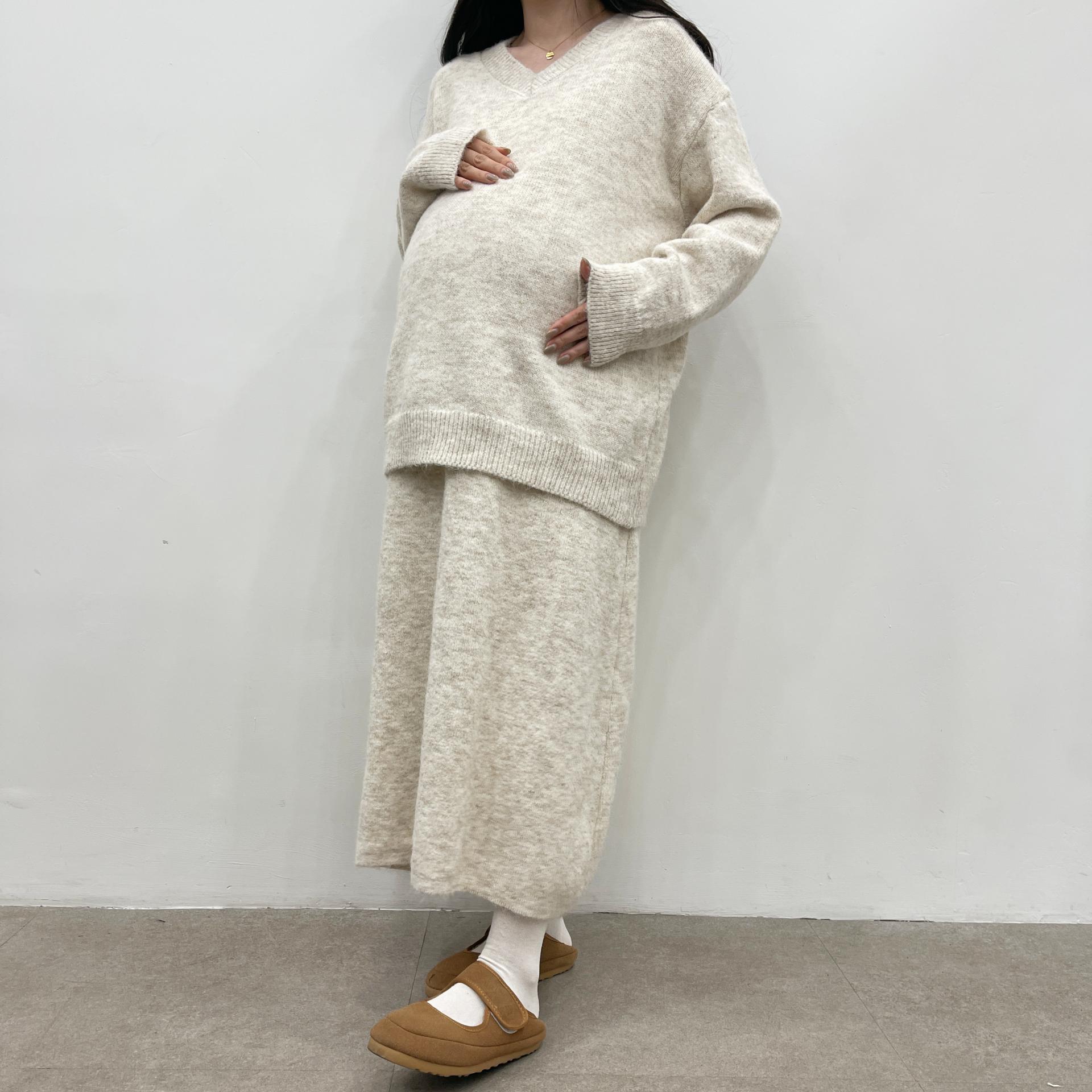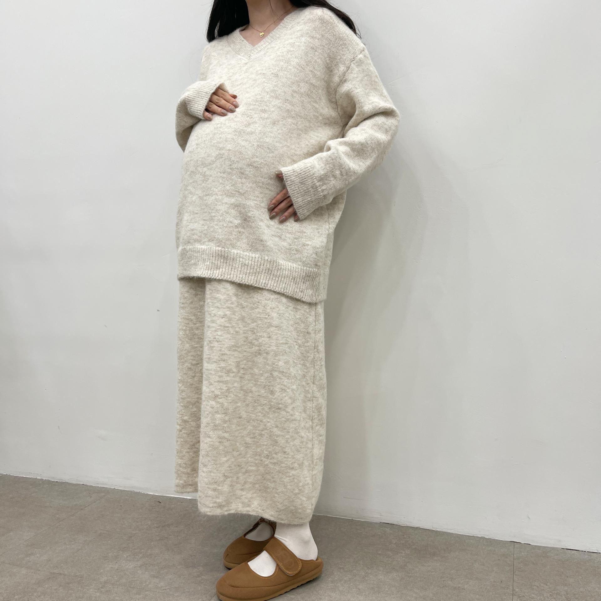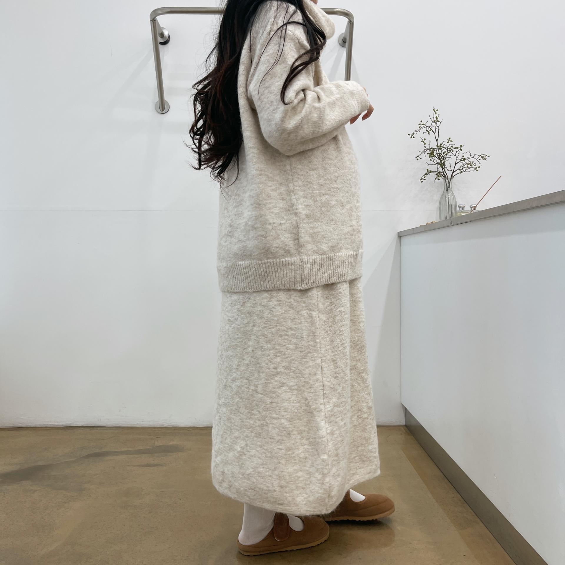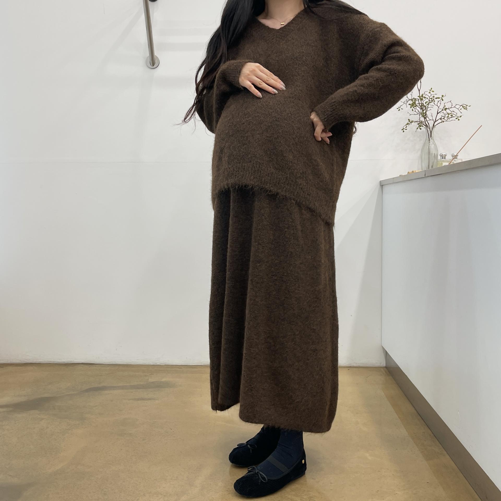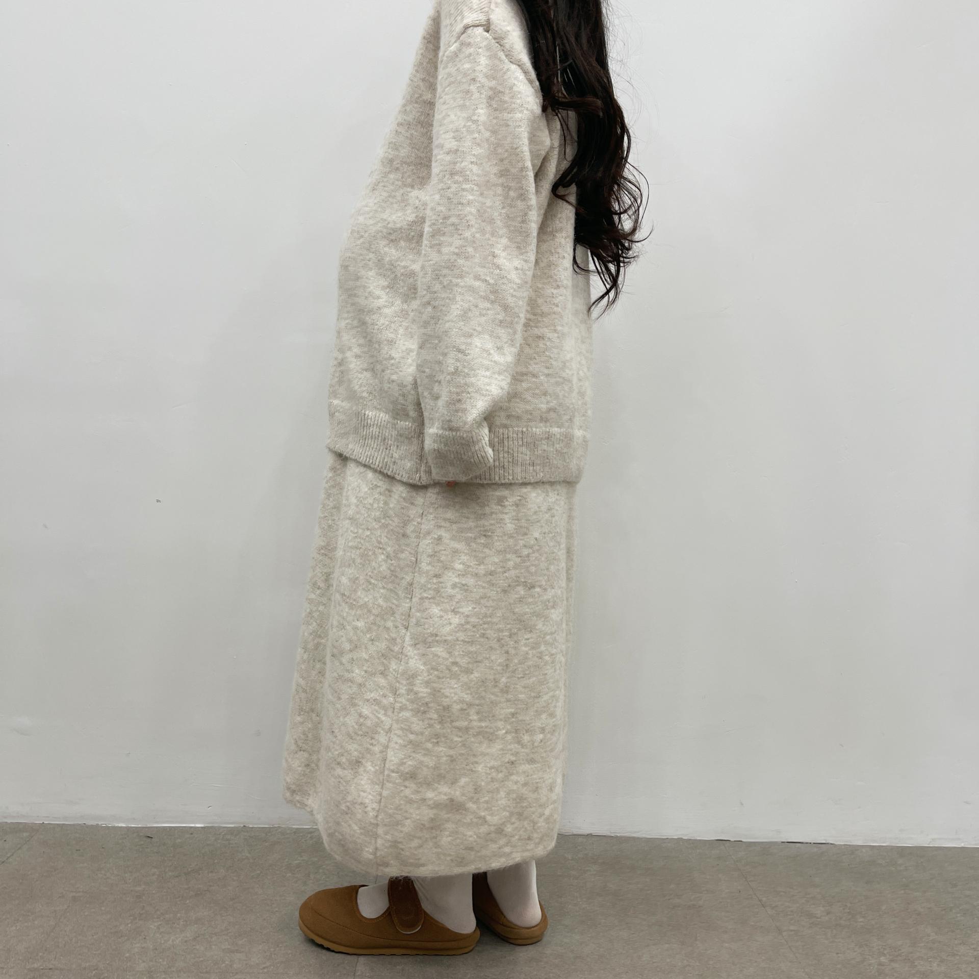 힙.배덮기장의 V넥니트와 스커트 그리고 머플러가 세트입니다