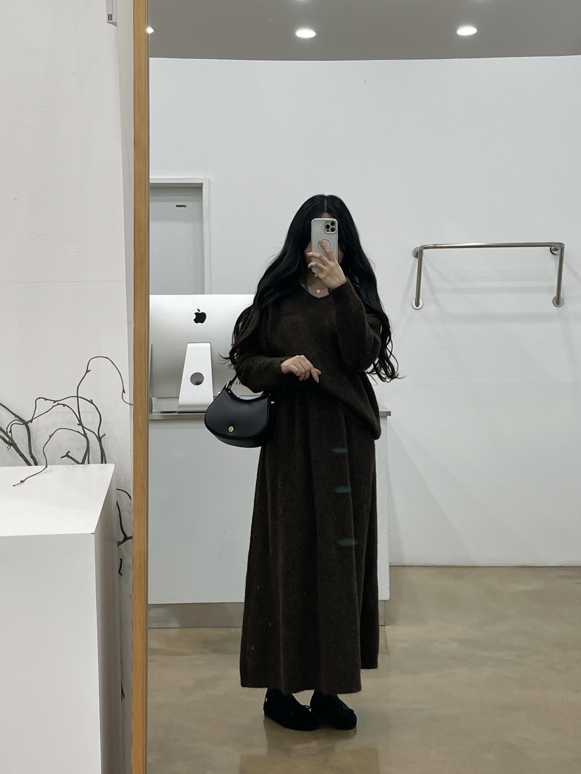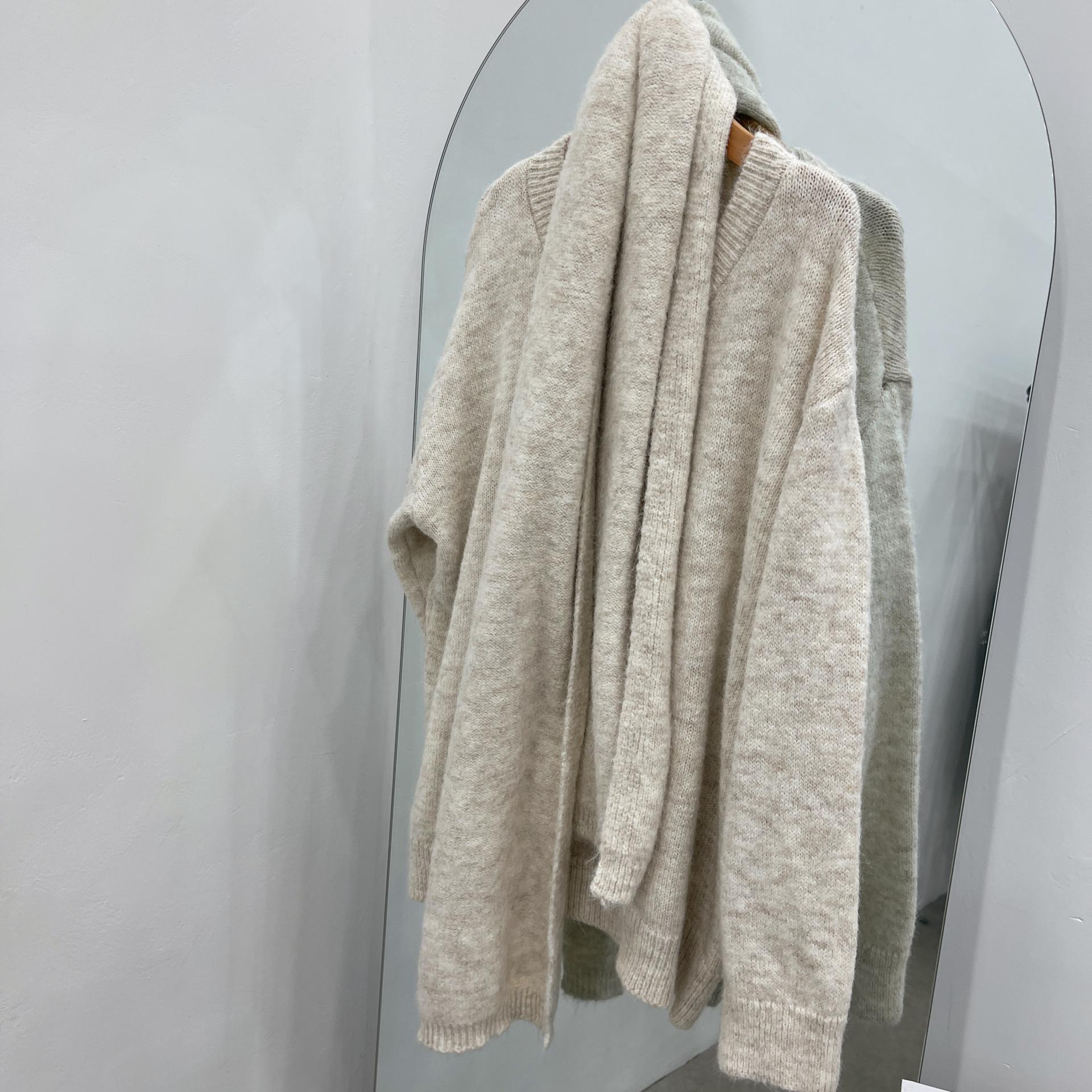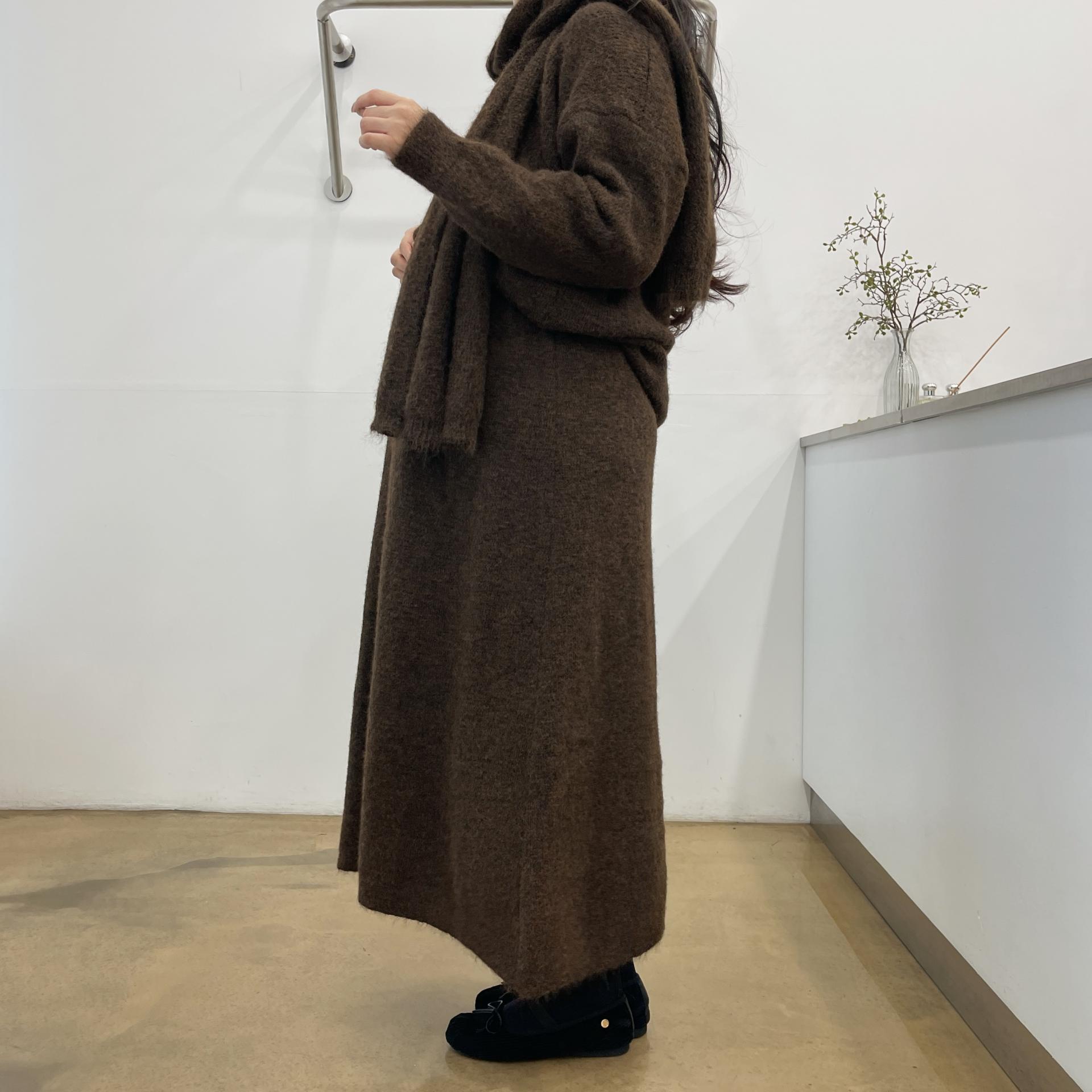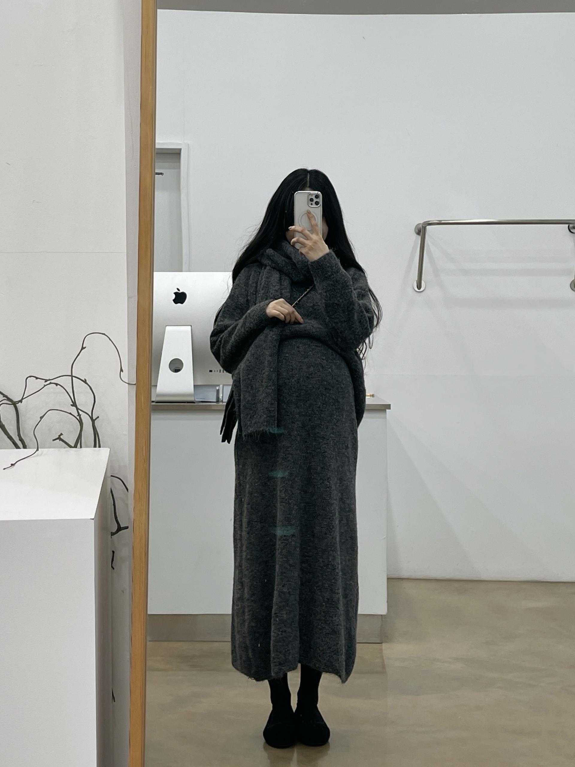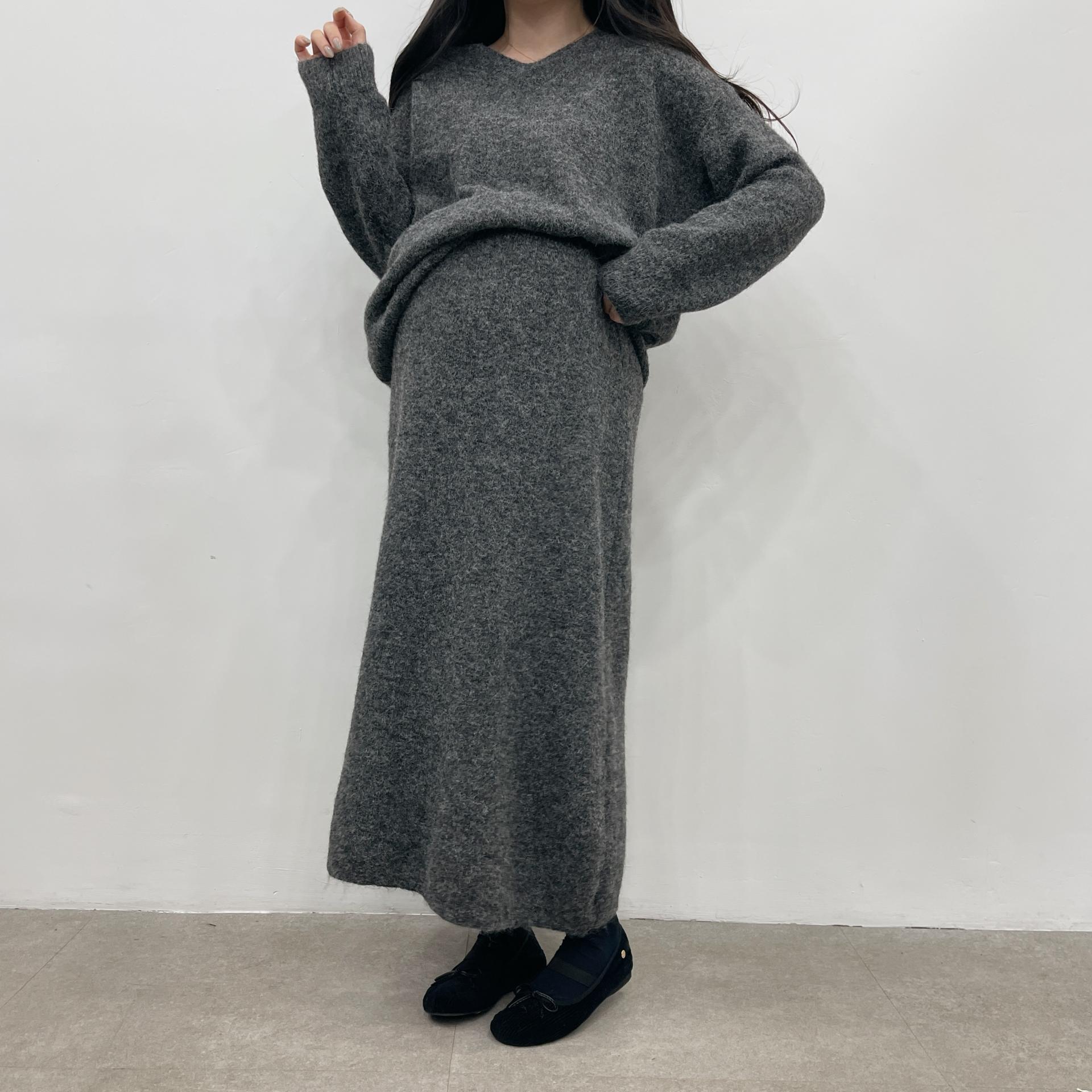힙.배덮기장의 V넥니트와 스커트 그리고 머플러가 세트입니다