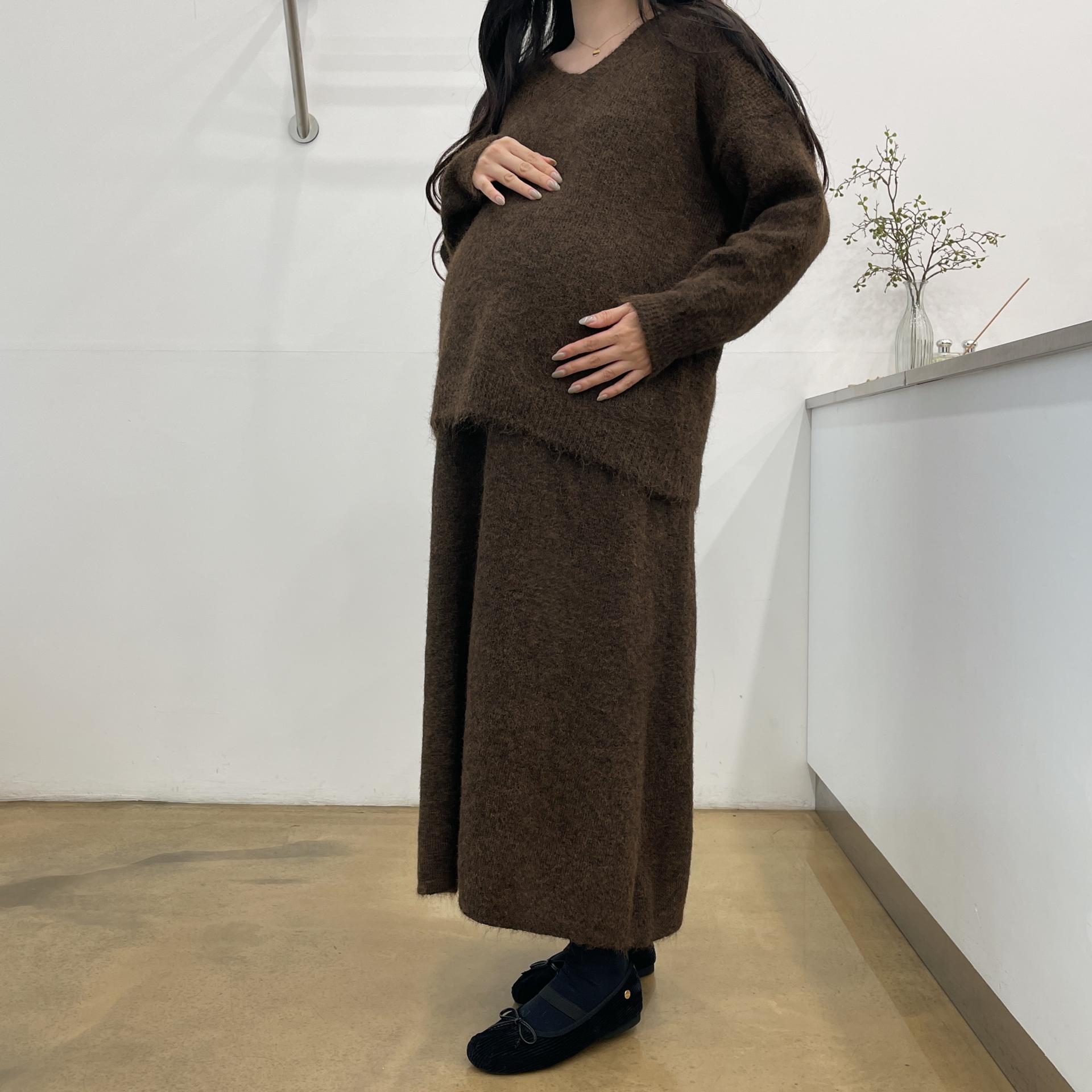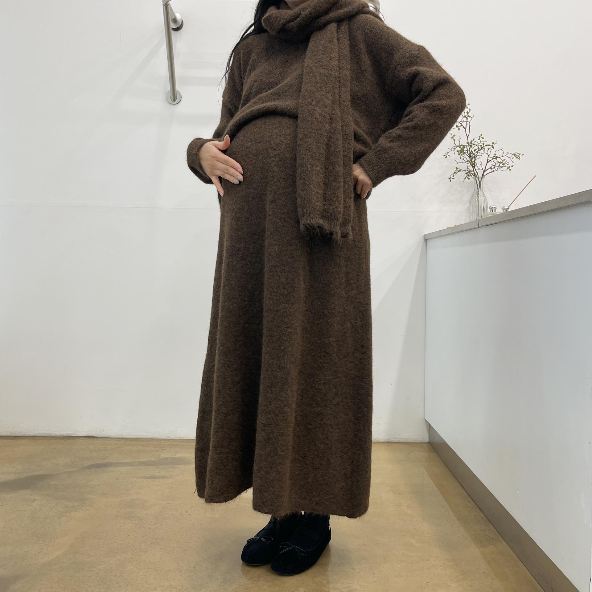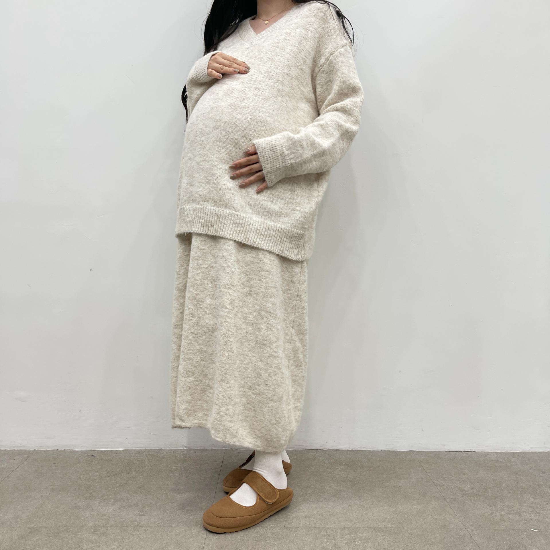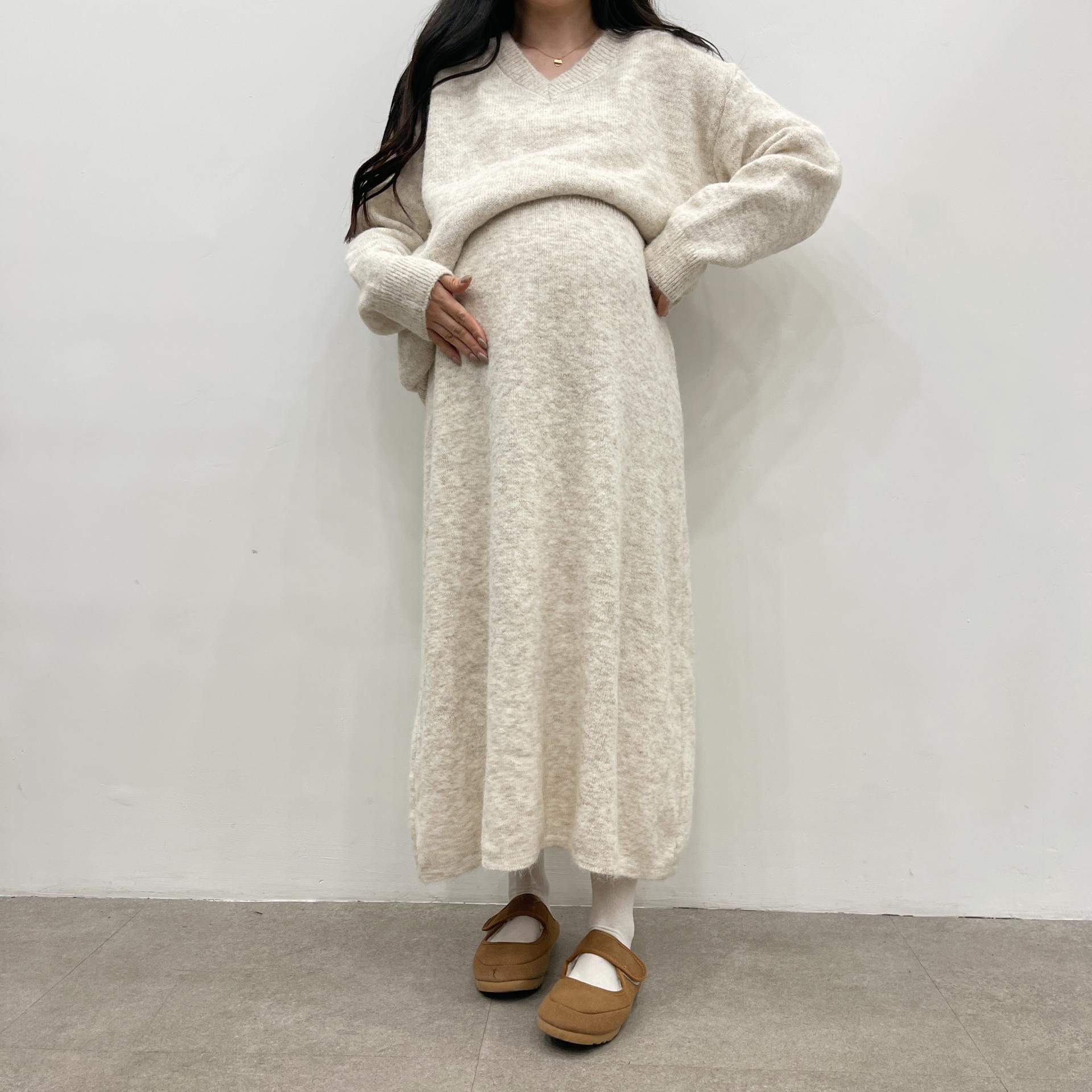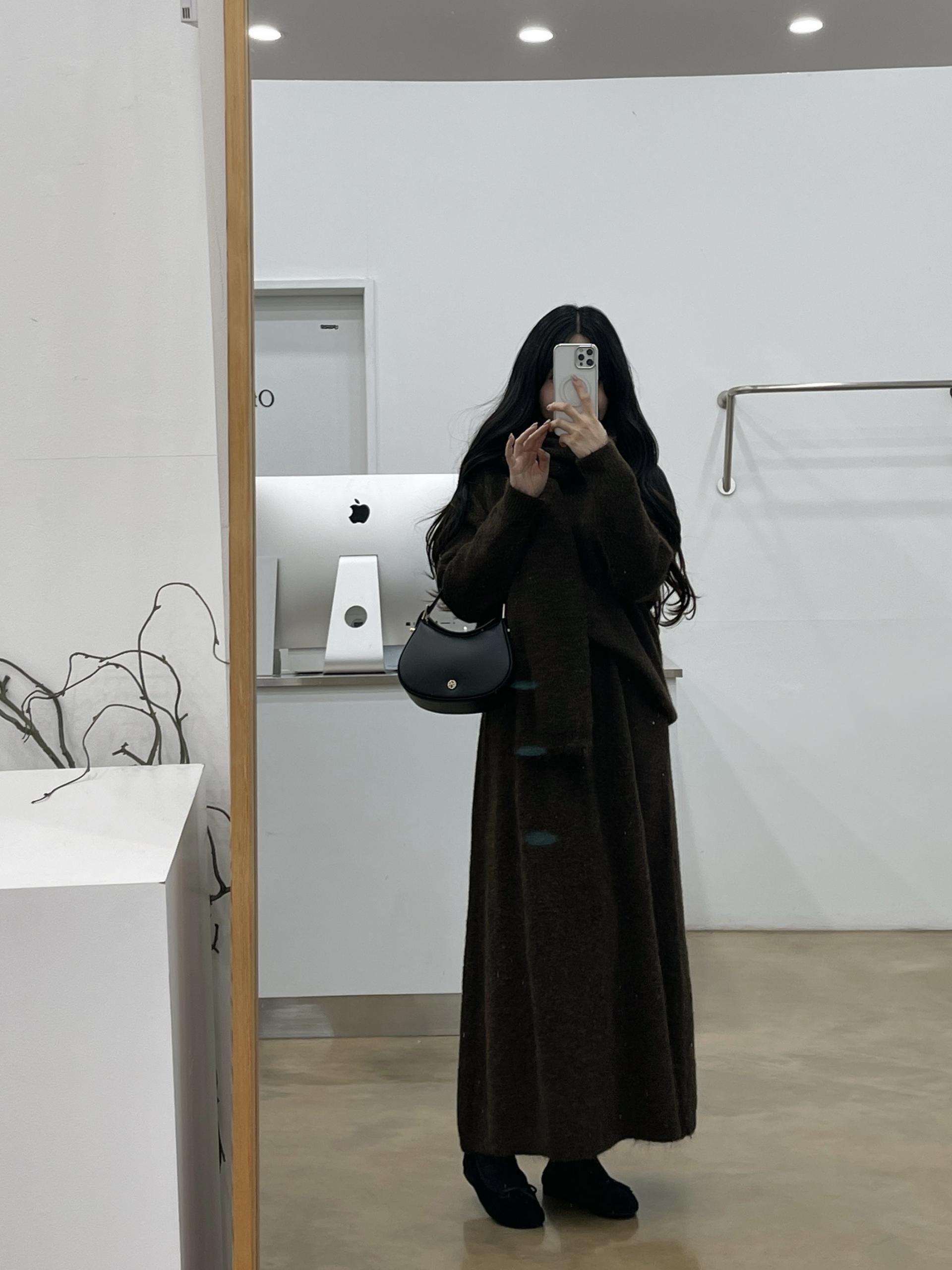 힙.배덮기장의 V넥니트와 스커트 그리고 머플러가 세트입니다