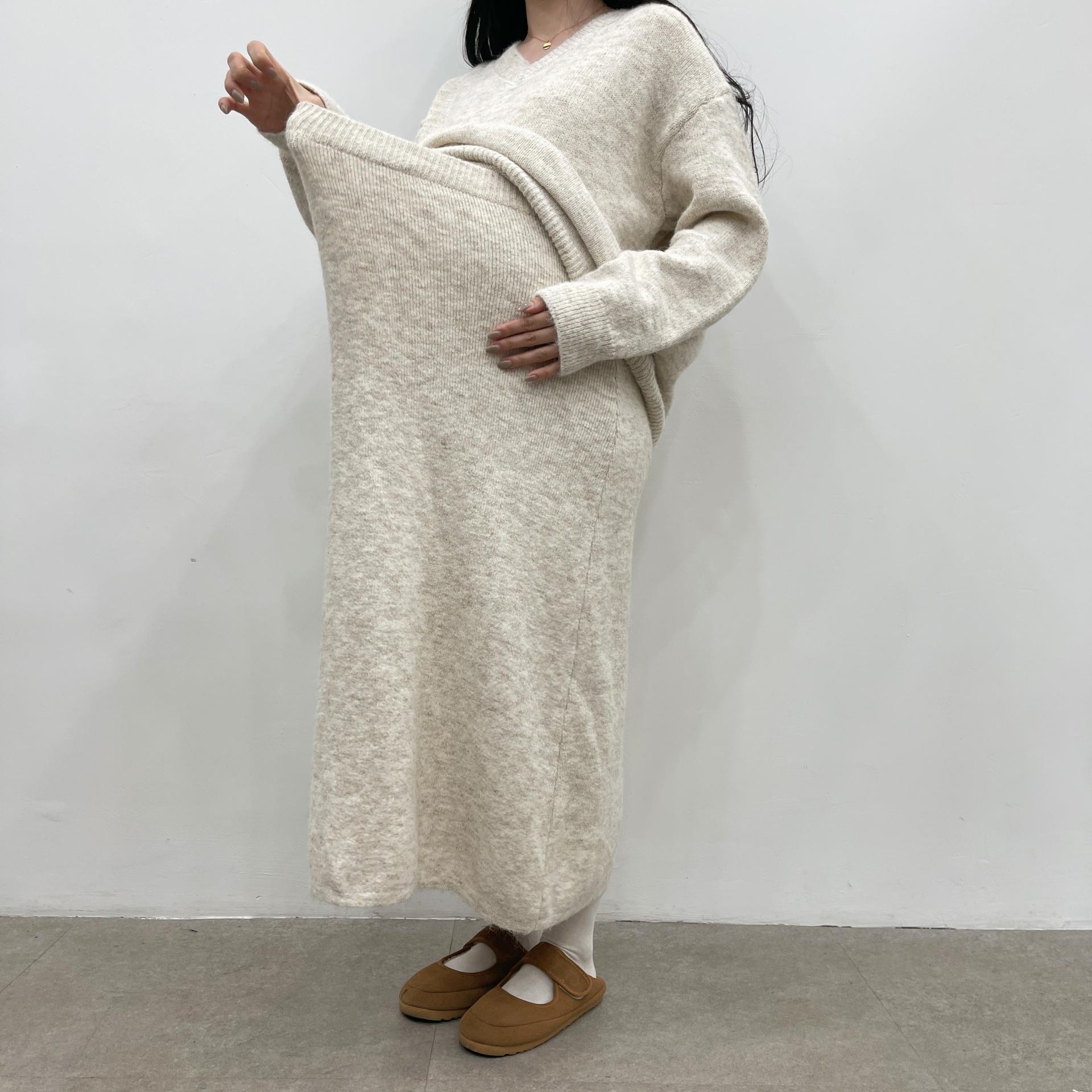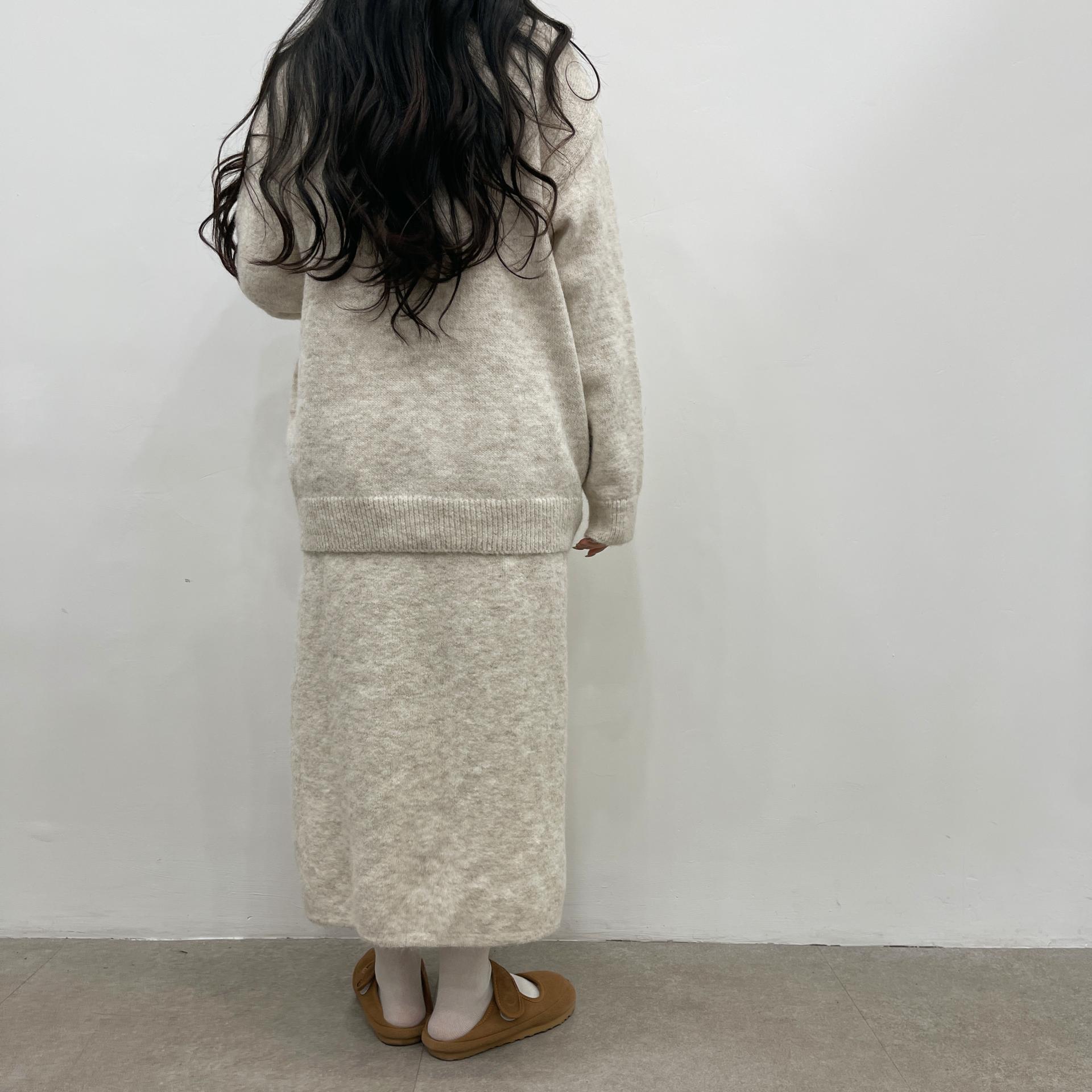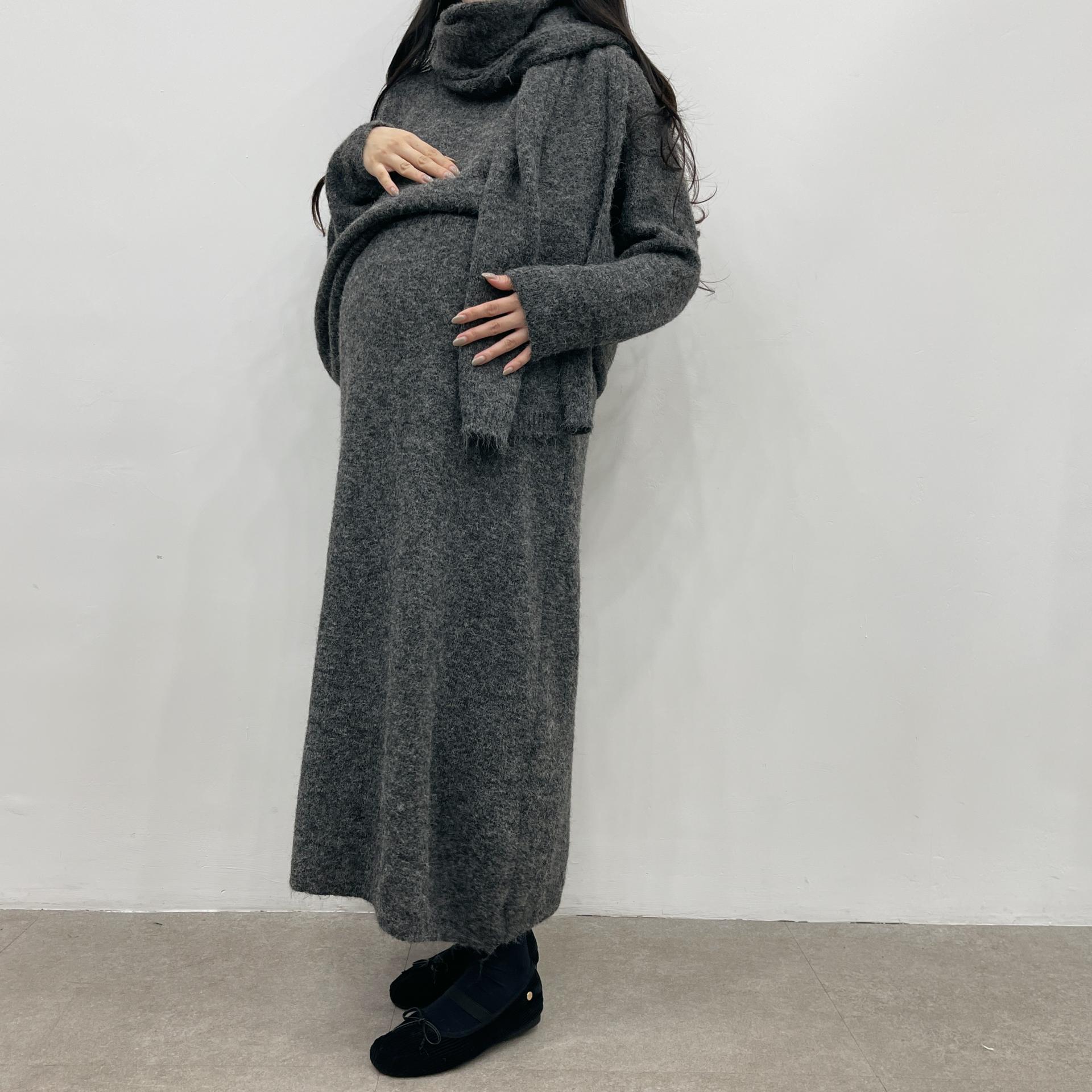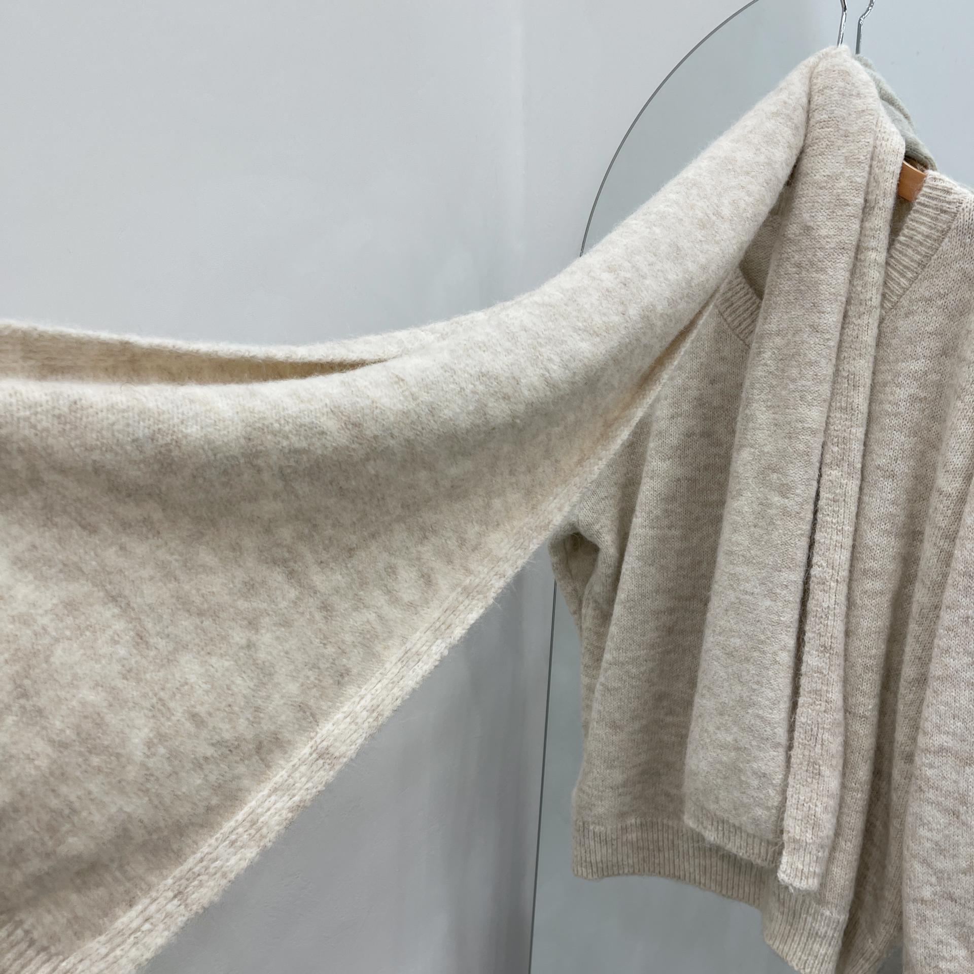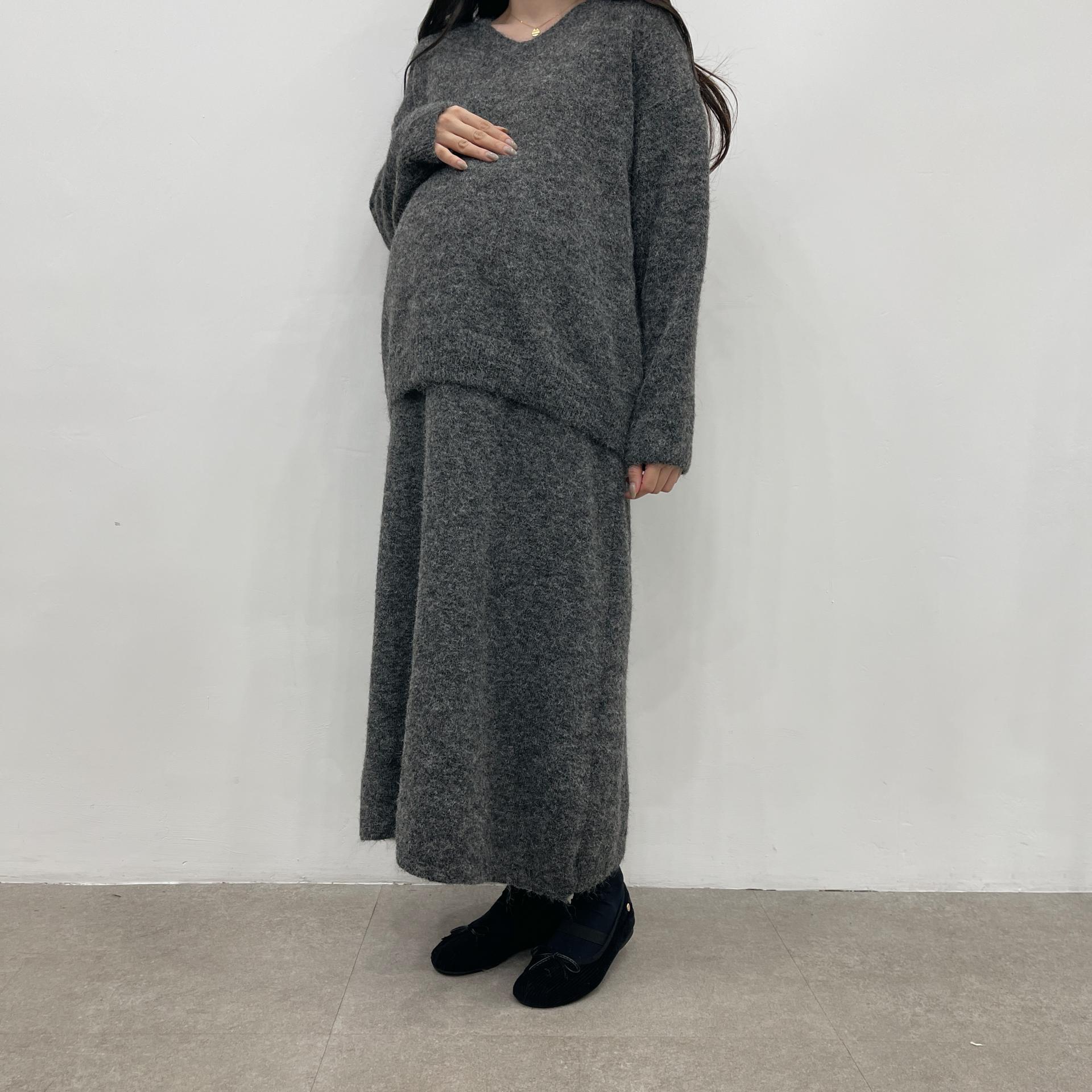 힙.배덮기장의 V넥니트와 스커트 그리고 머플러가 세트입니다