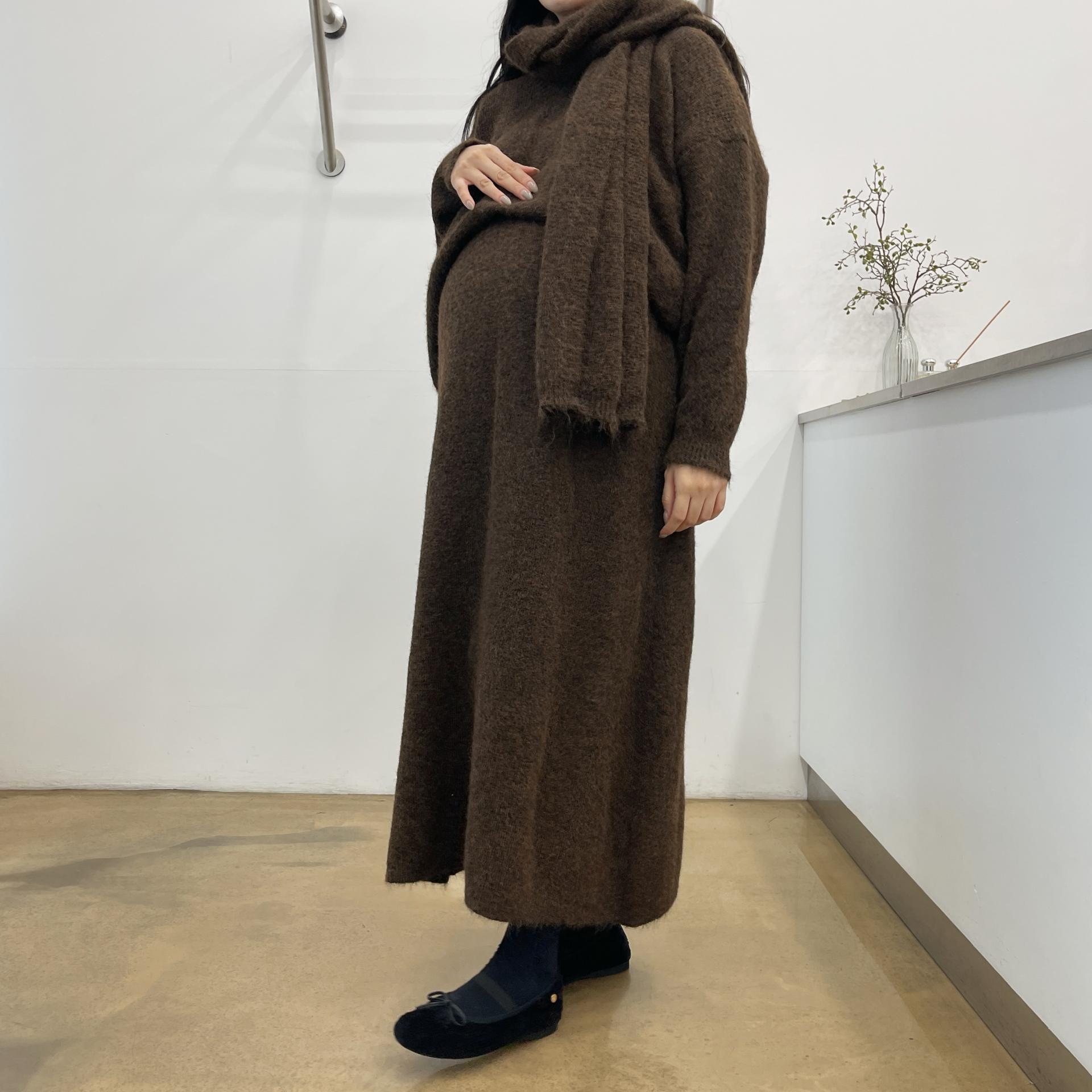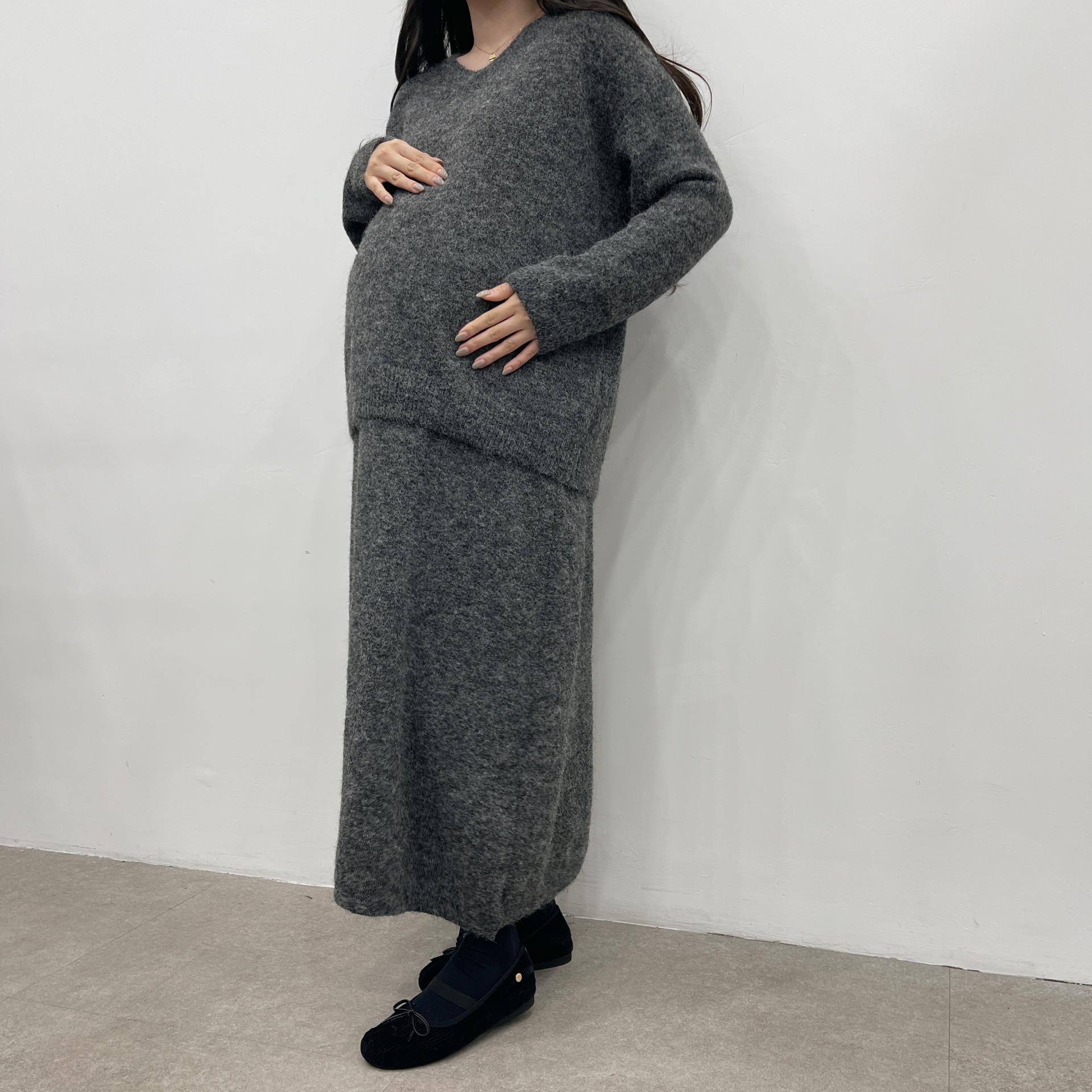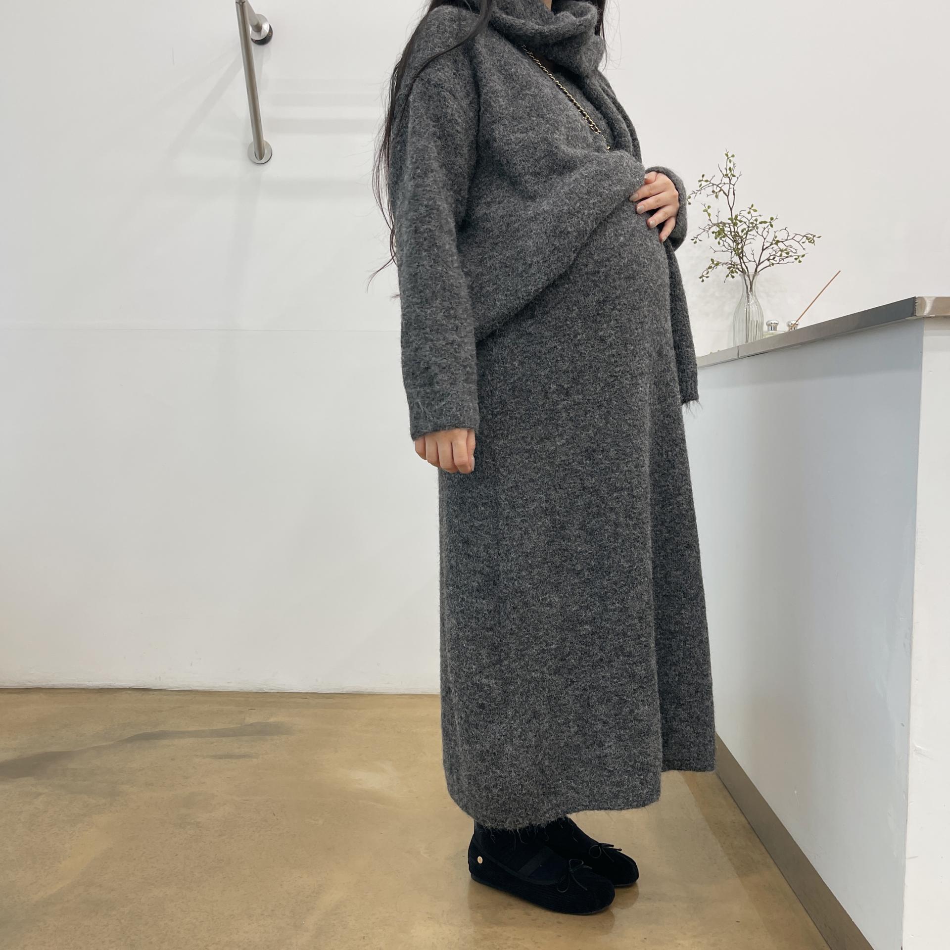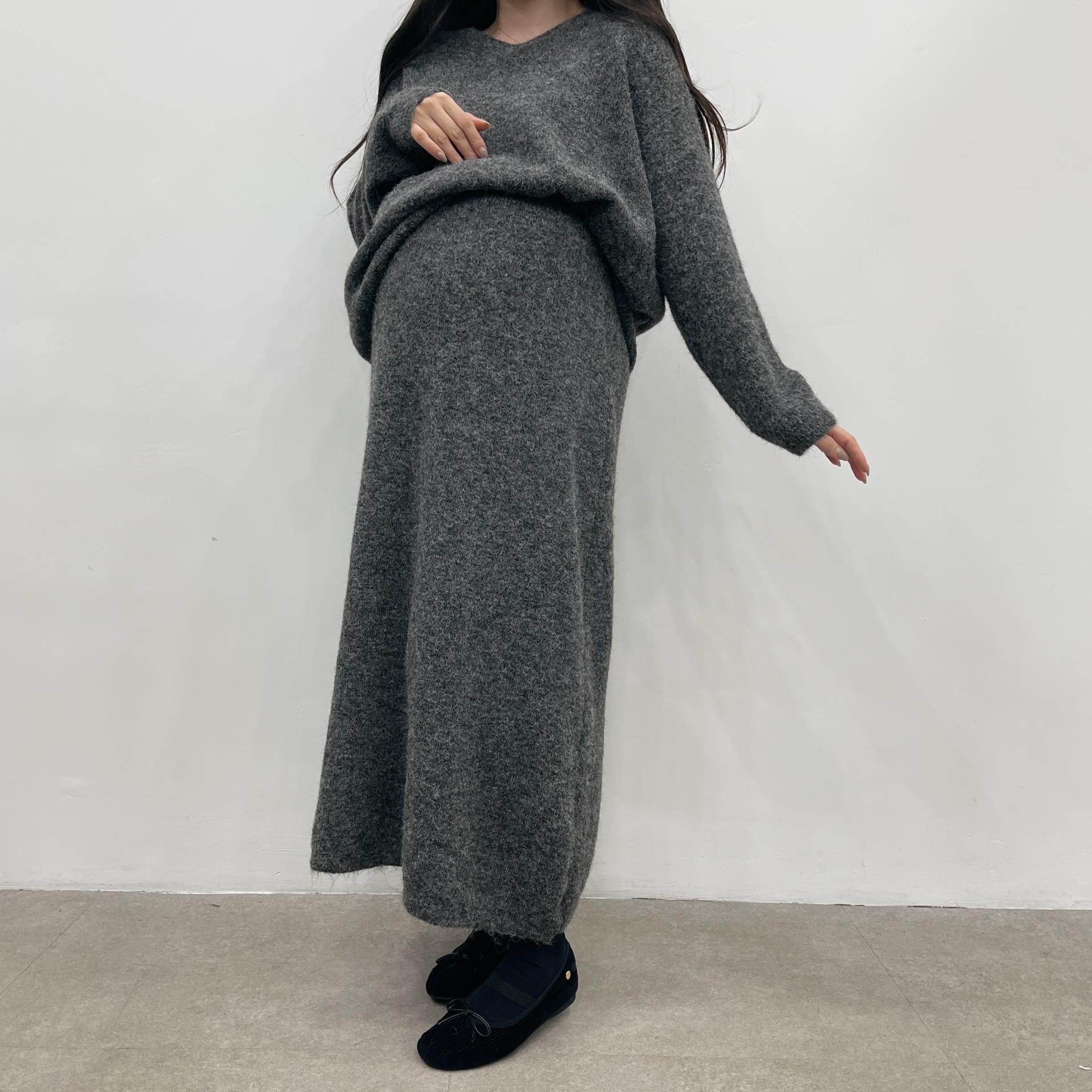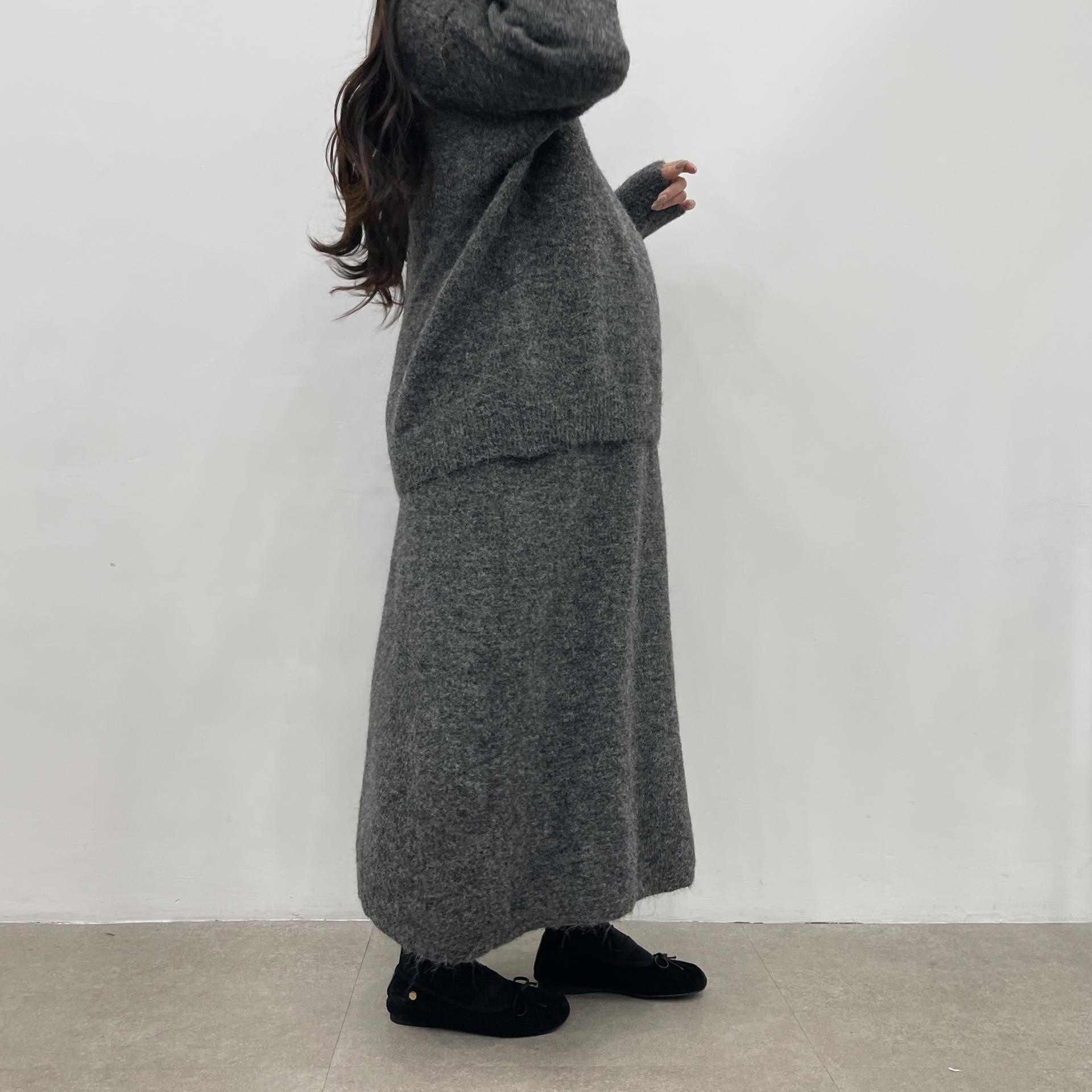 힙.배덮기장의 V넥니트와 스커트 그리고 머플러가 세트입니다