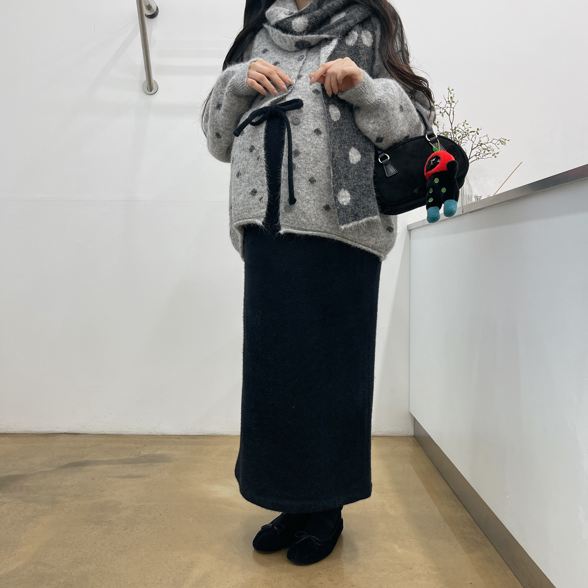 모헤어스트링SK(블랙) + 도트울니트가디건(그레이)