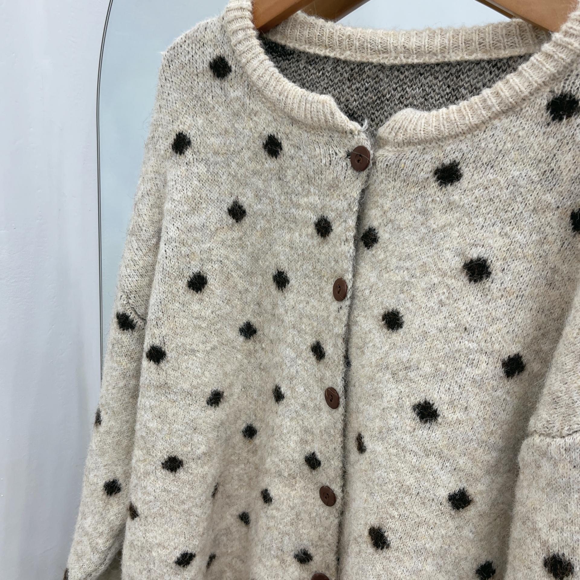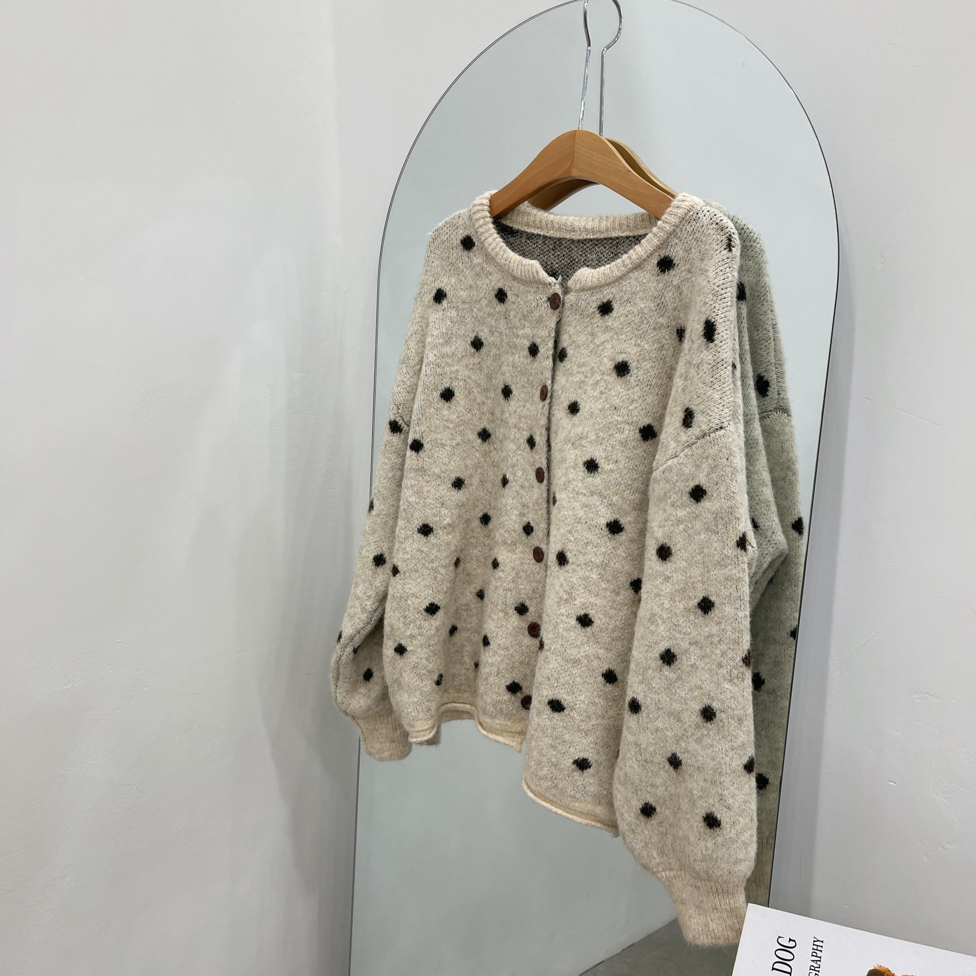 촌스럽지 않고 귀여움만 담은 도트가디건, 이번겨울에 포인트룩으로 어떠세요