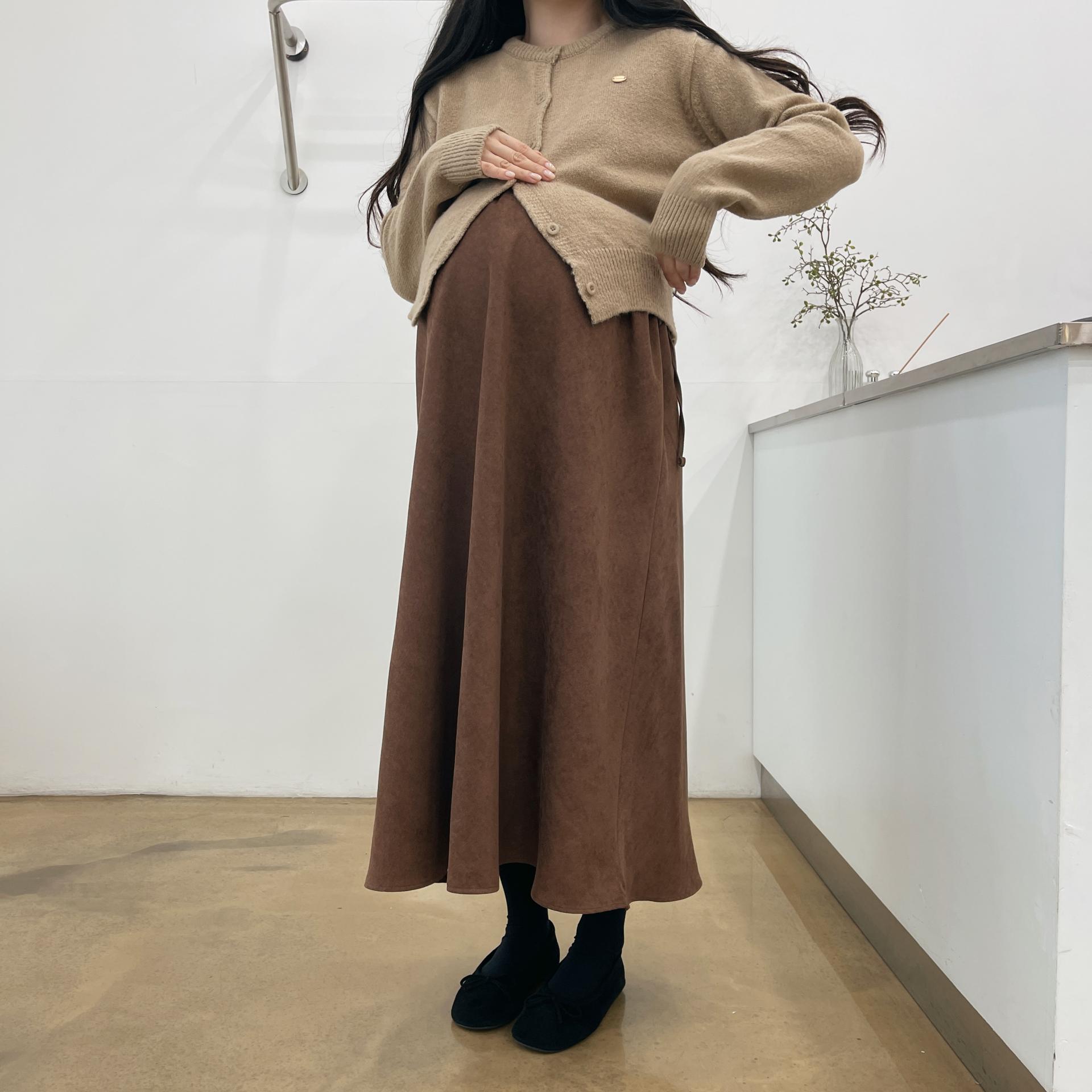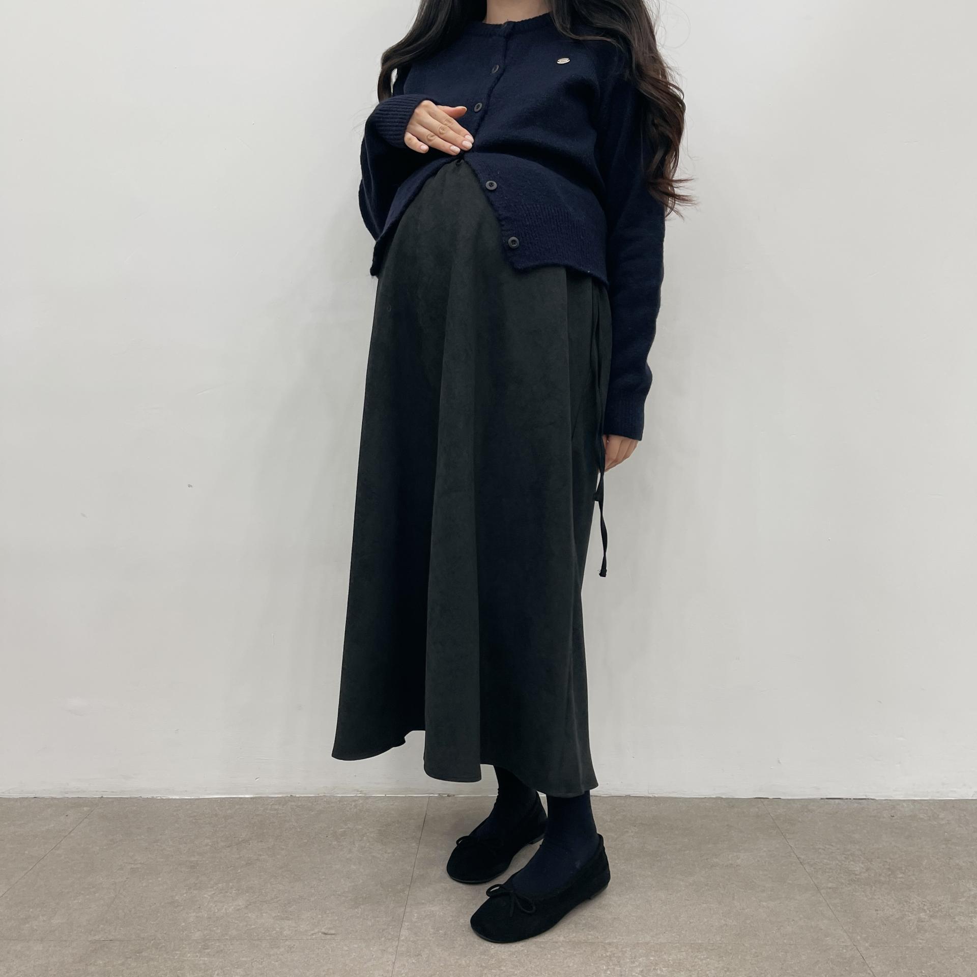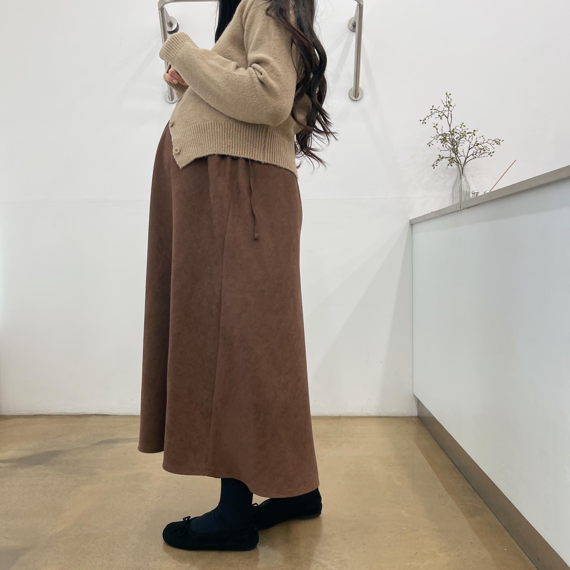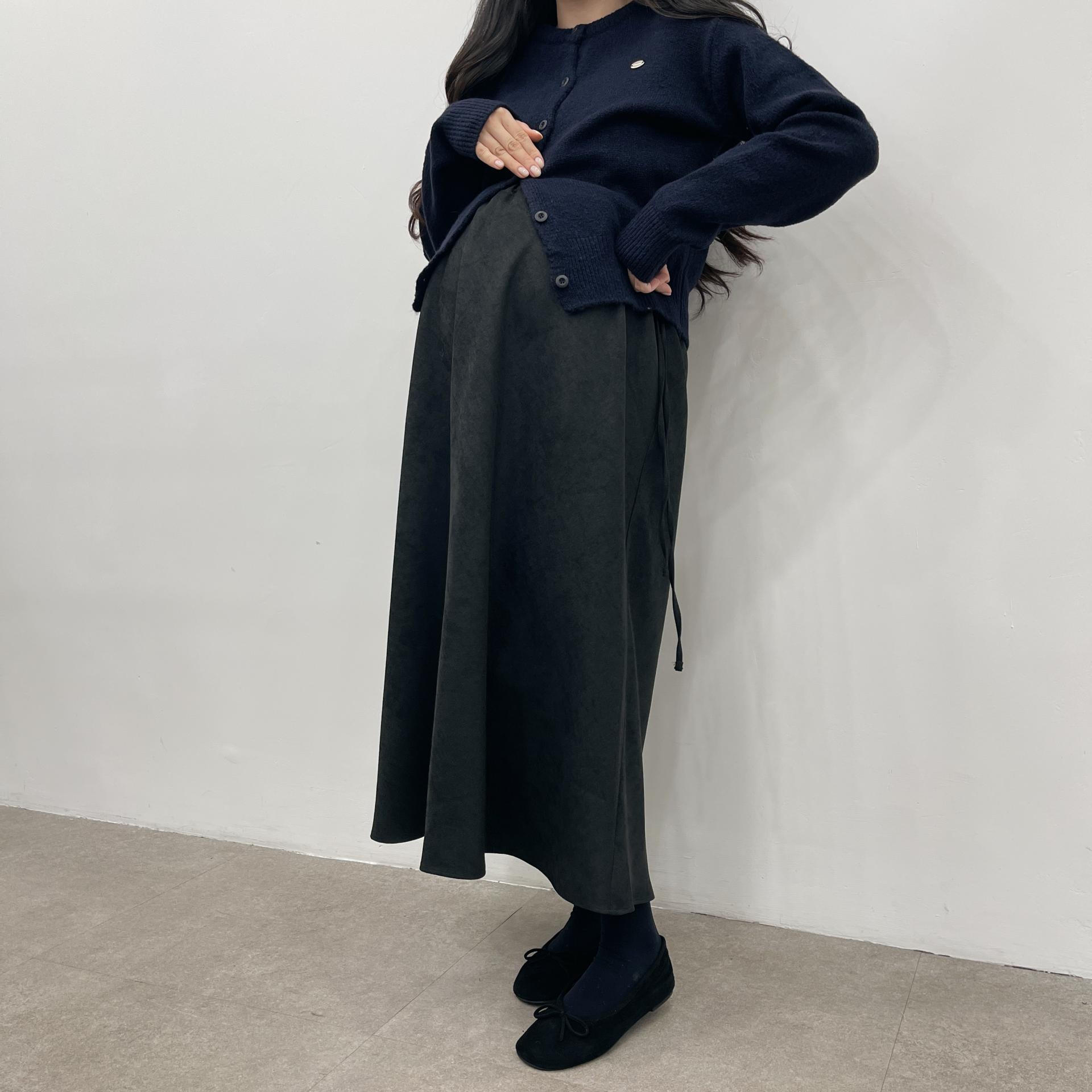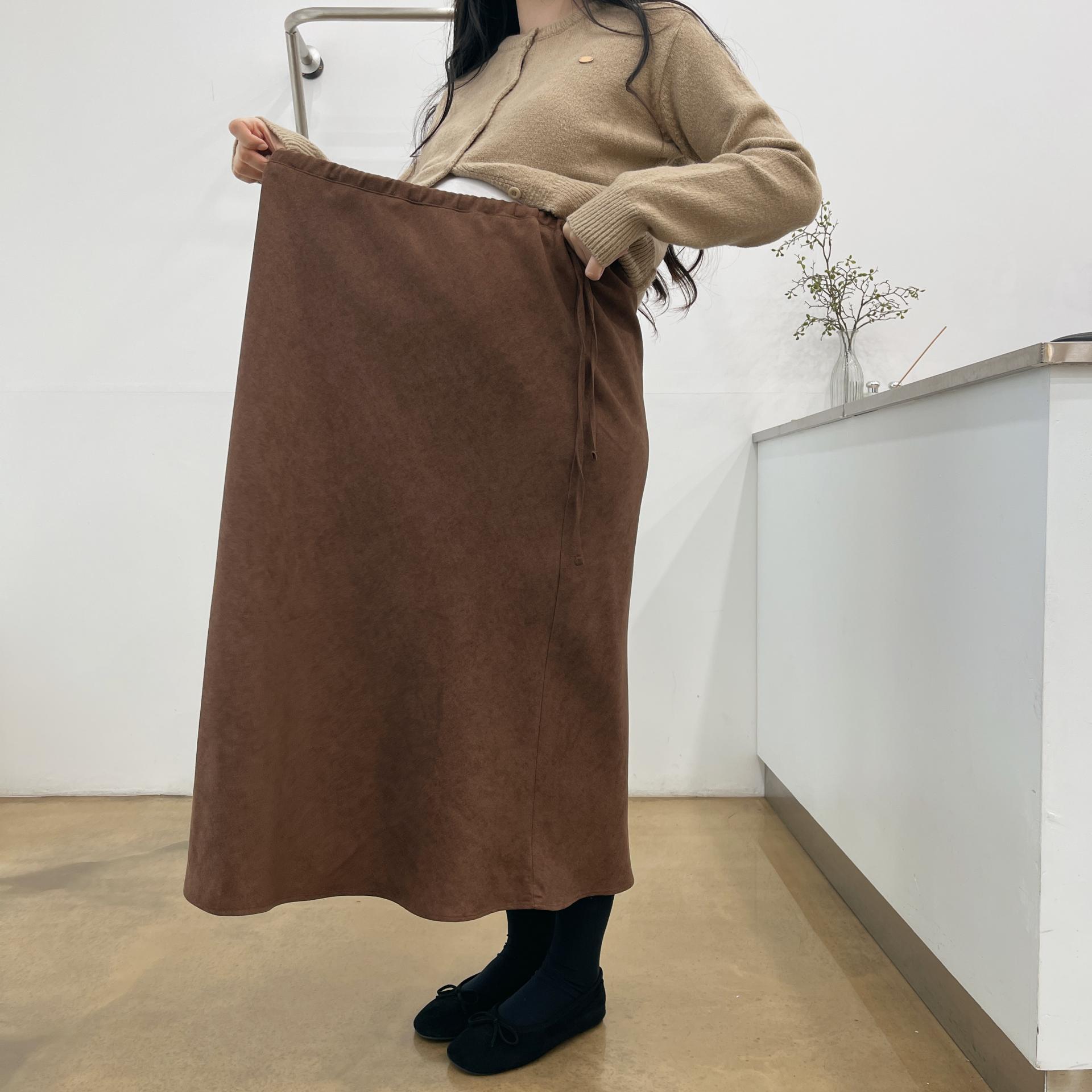겨울버전으로 소개해드리는 , 허리스트링으로 사이즈구애없이 입는, 스웨이드소재의 스커트에요