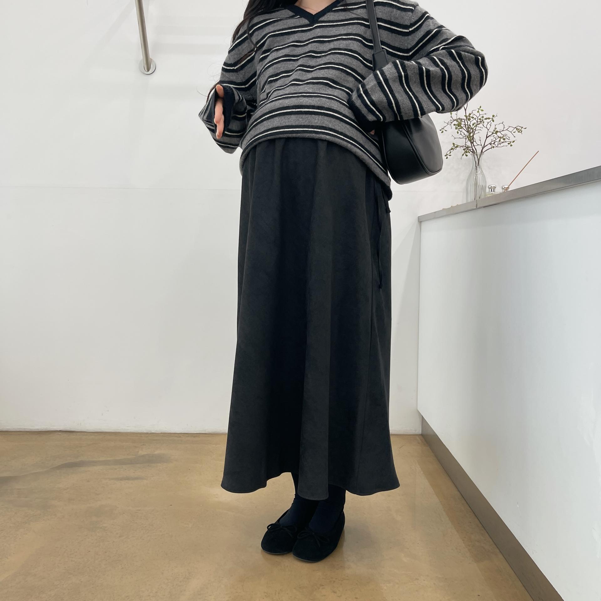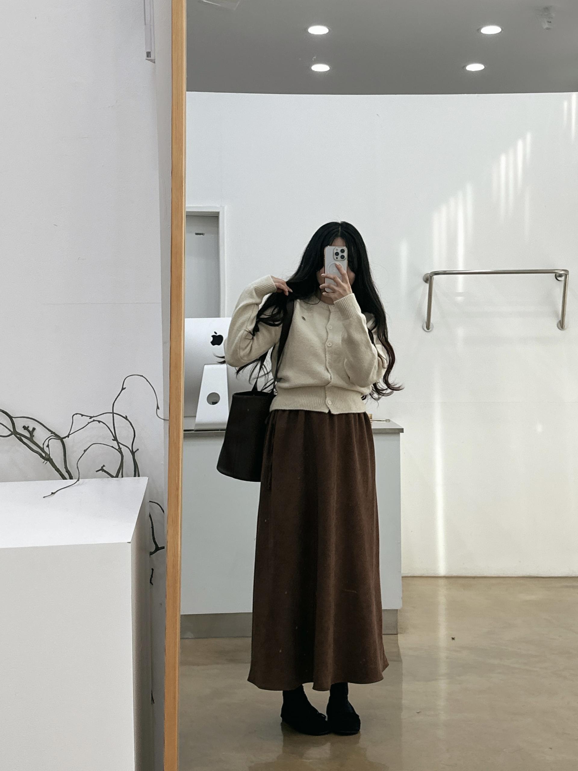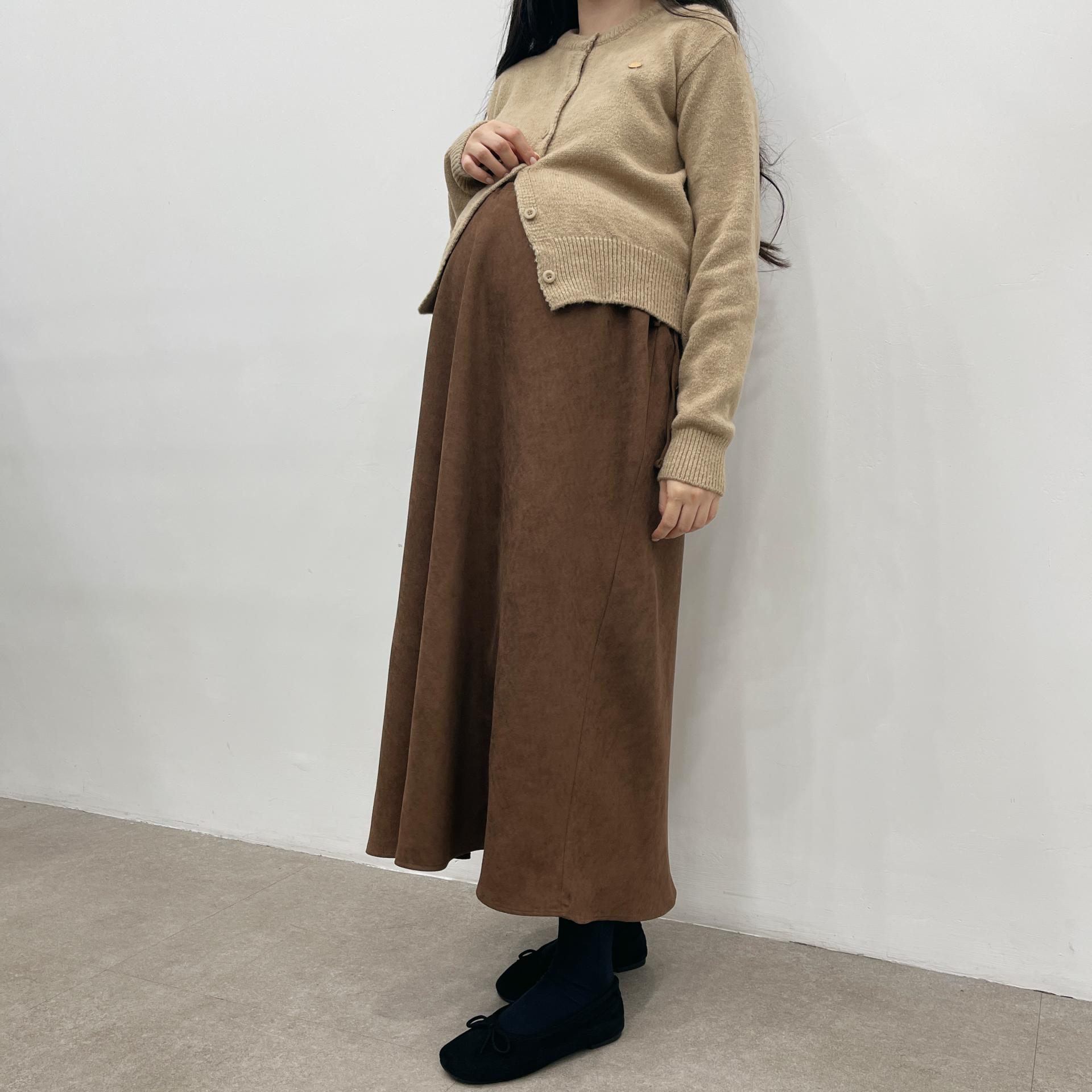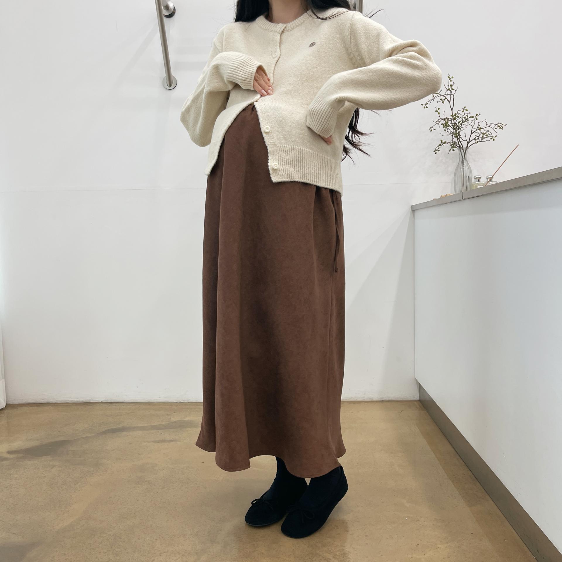 겨울버전으로 소개해드리는 , 허리스트링으로 사이즈구애없이 입는, 스웨이드소재의 스커트에요