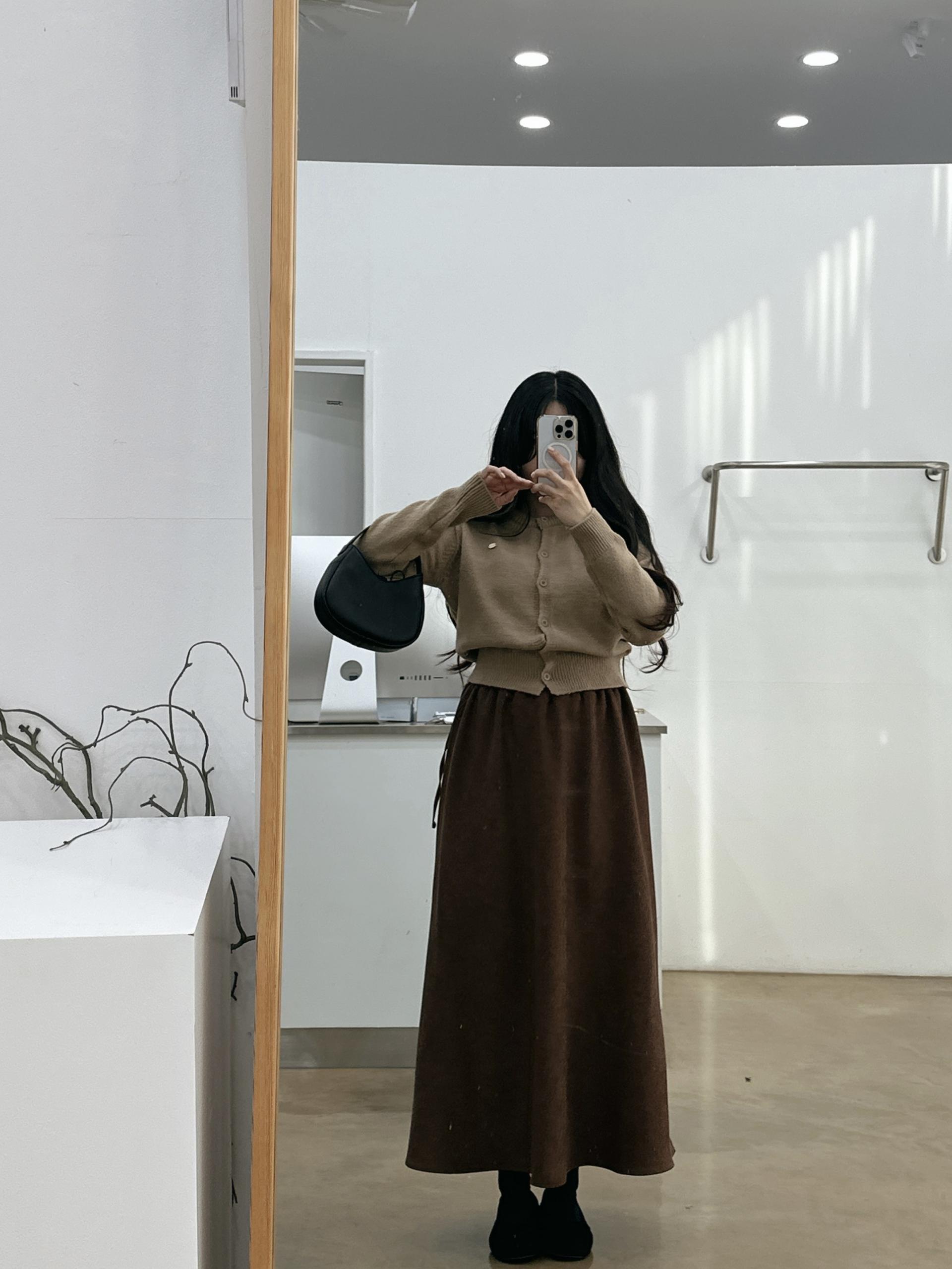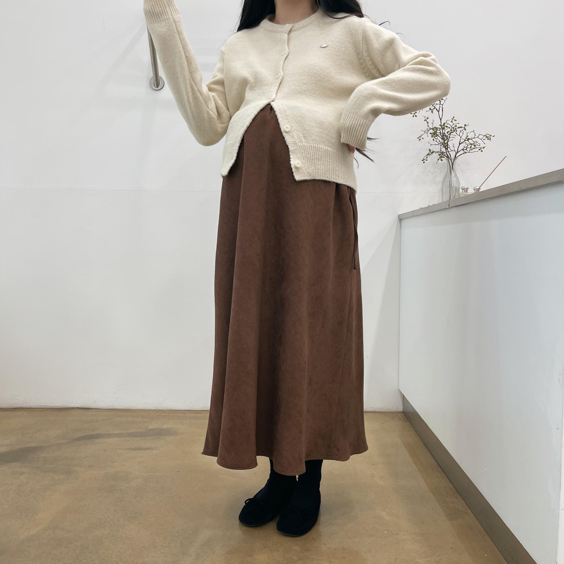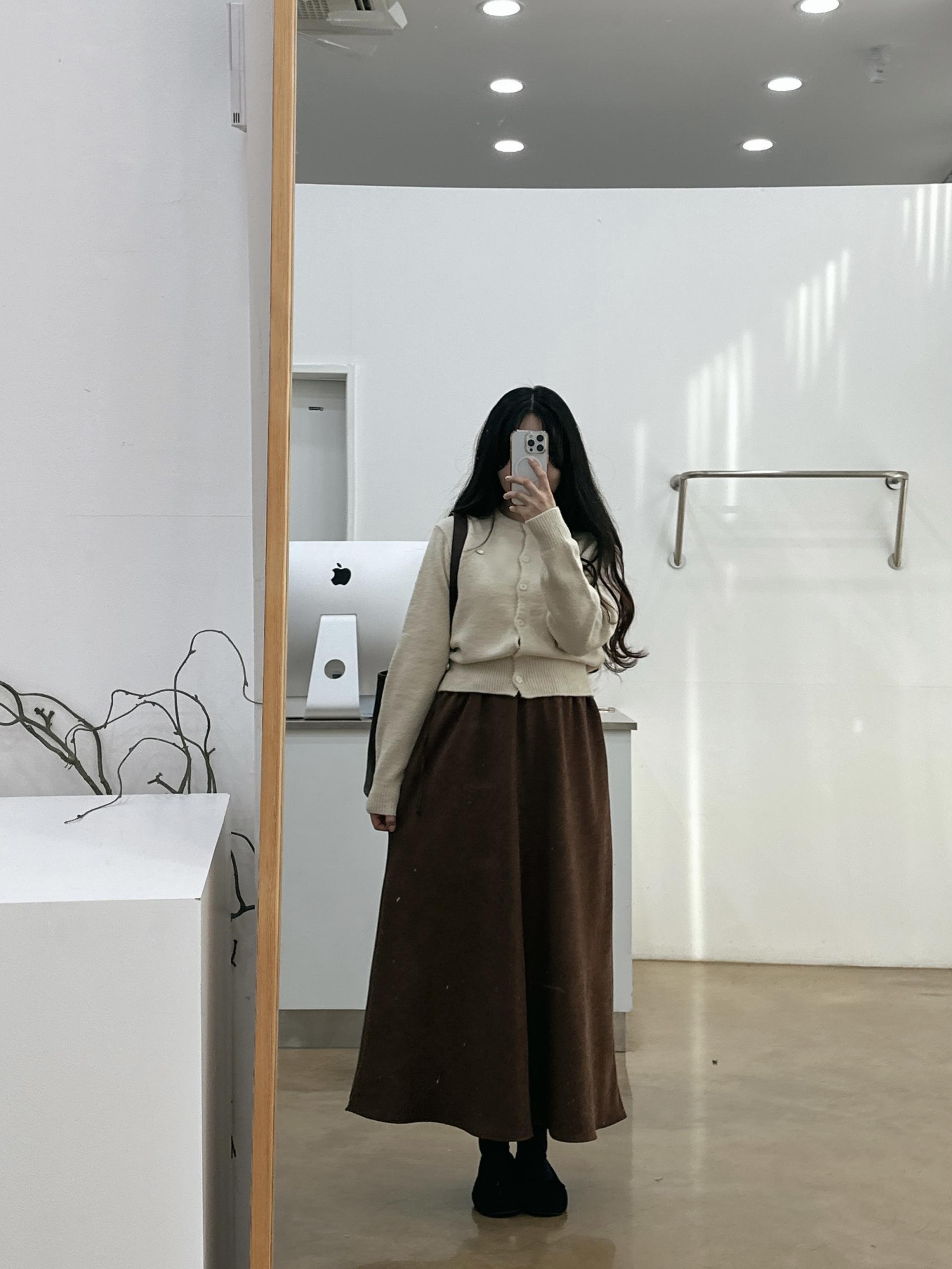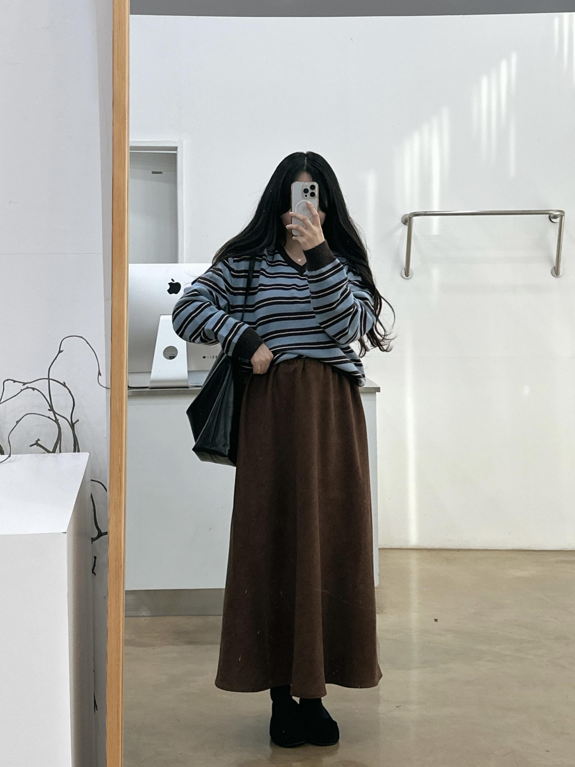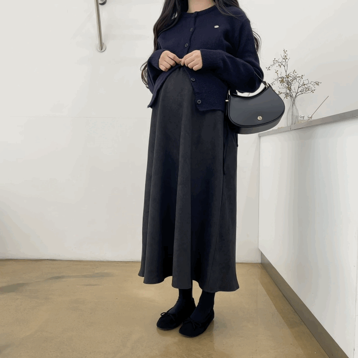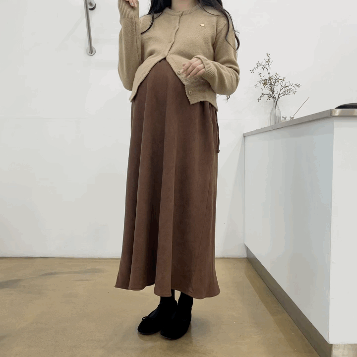 겨울버전으로 소개해드리는 , 허리스트링으로 사이즈구애없이 입는, 스웨이드소재의 스커트에요