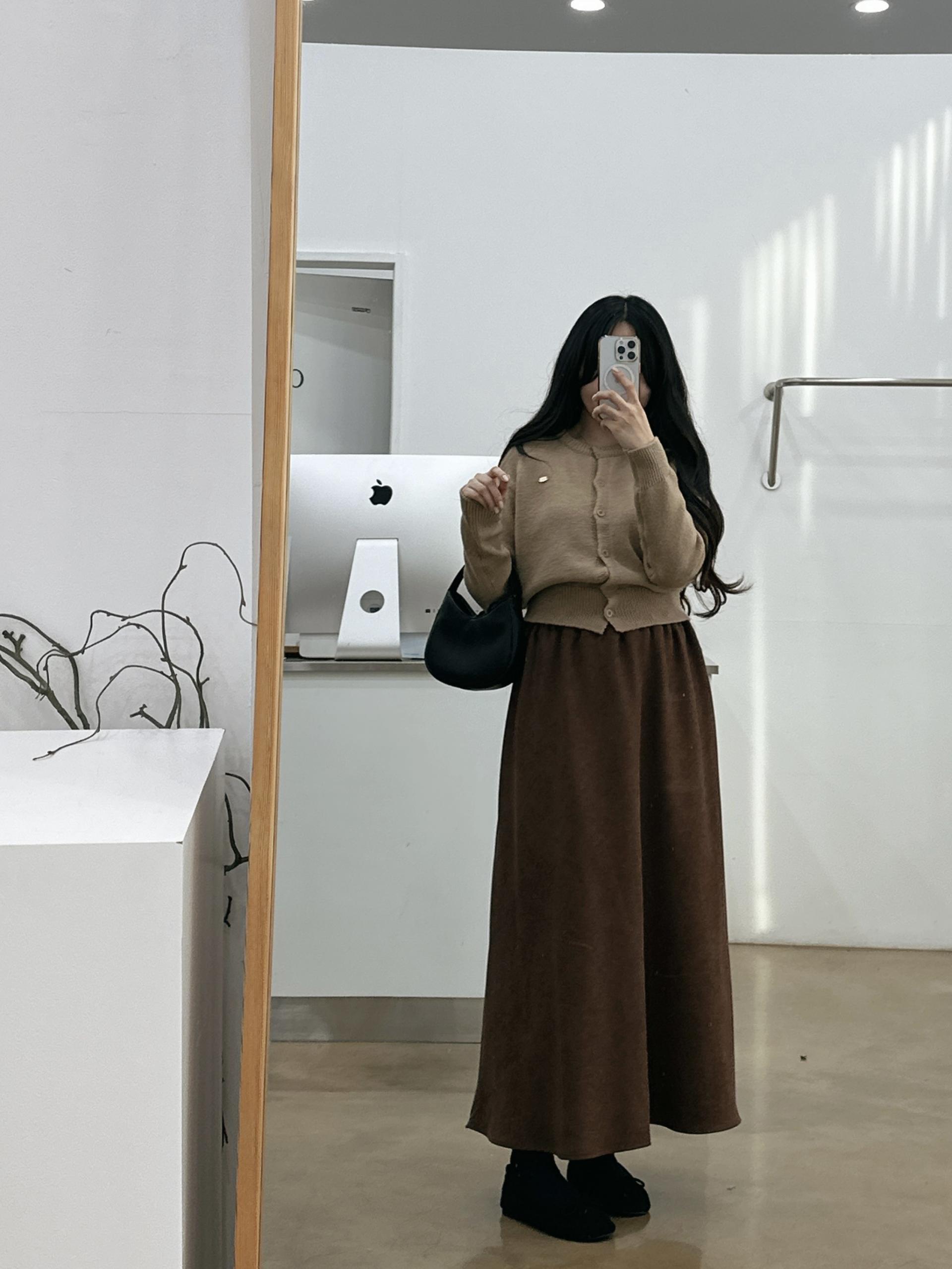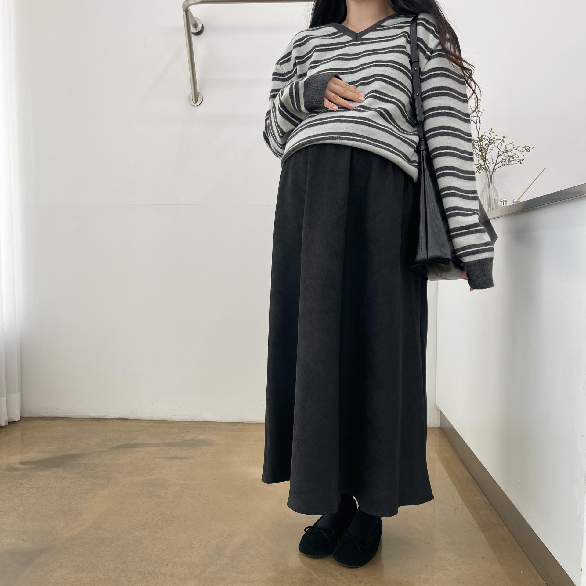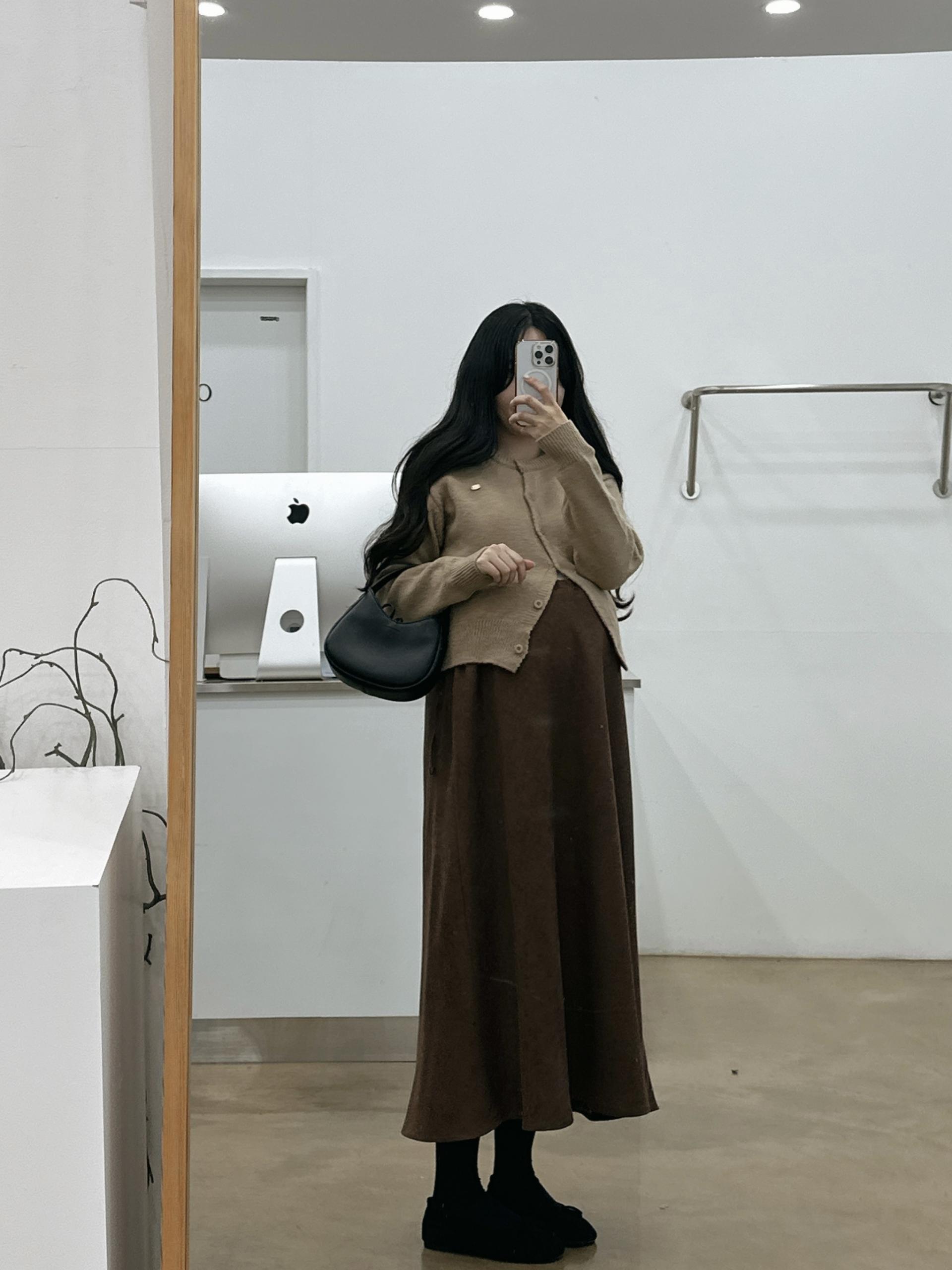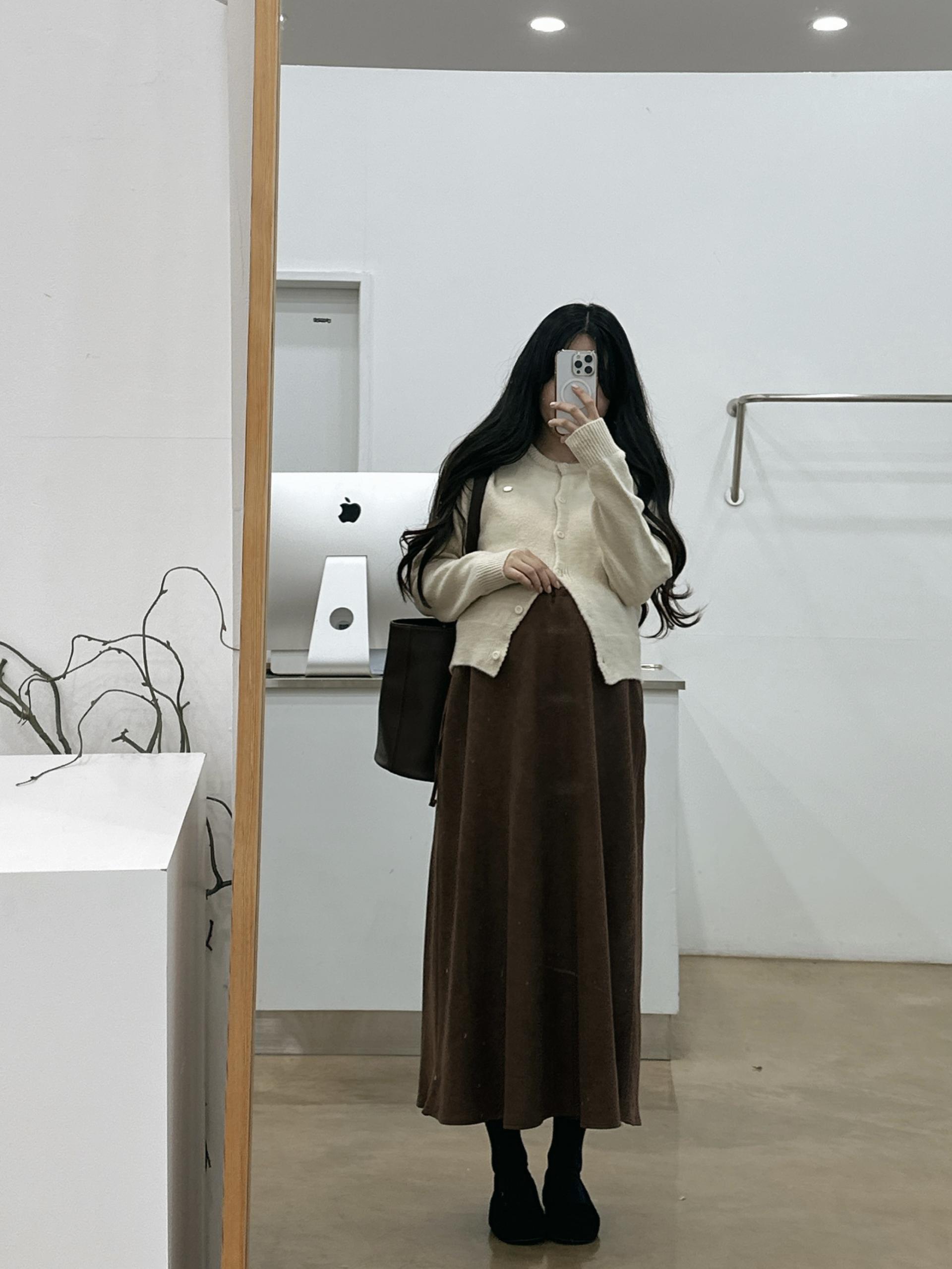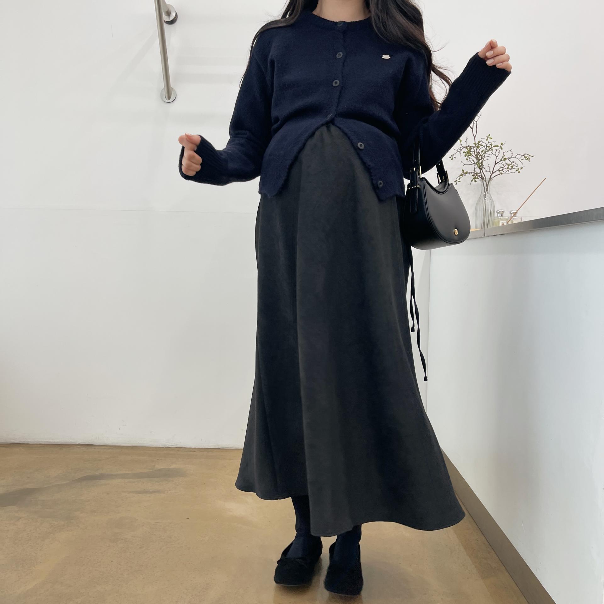 겨울버전으로 소개해드리는 , 허리스트링으로 사이즈구애없이 입는, 스웨이드소재의 스커트에요