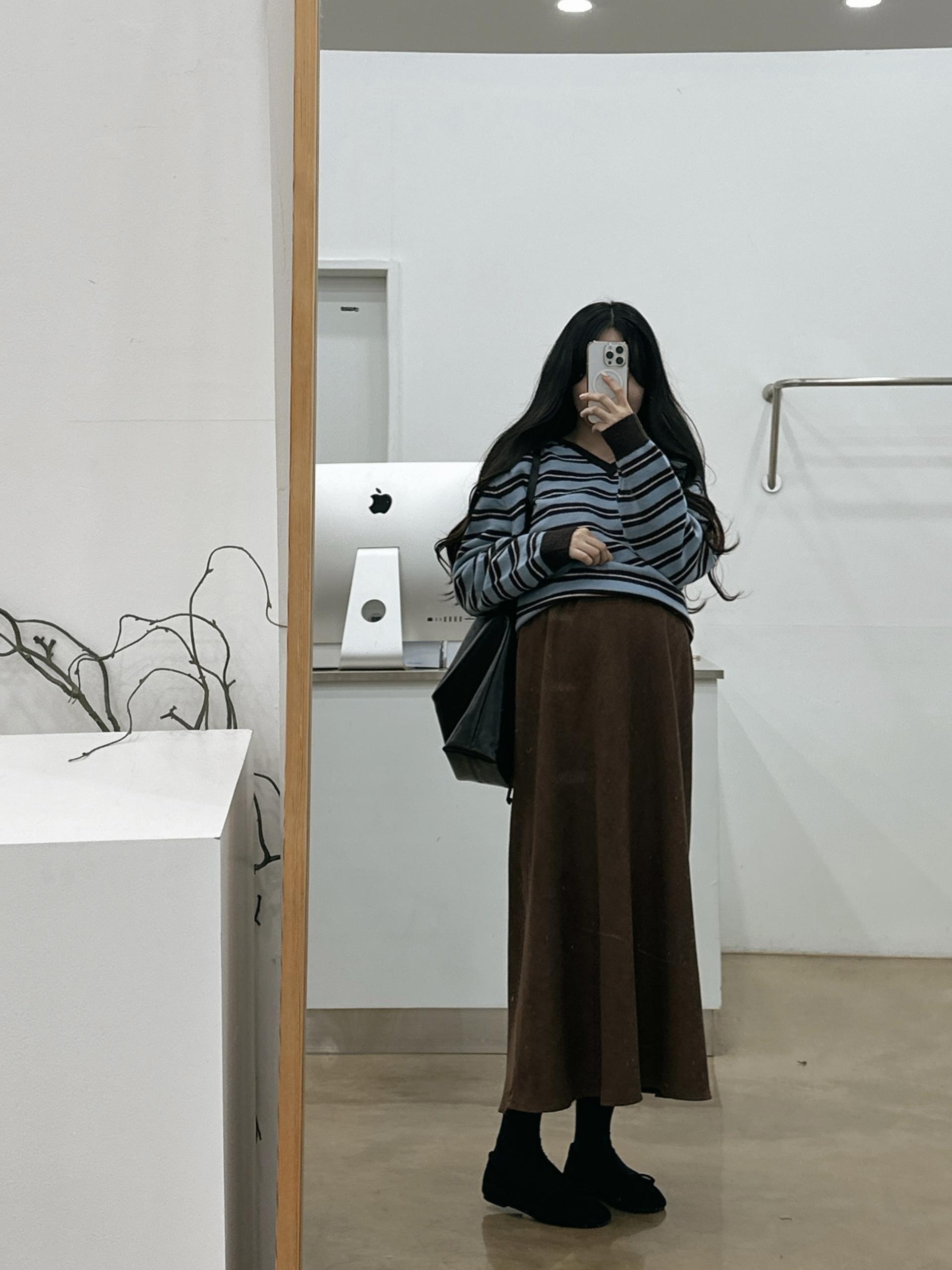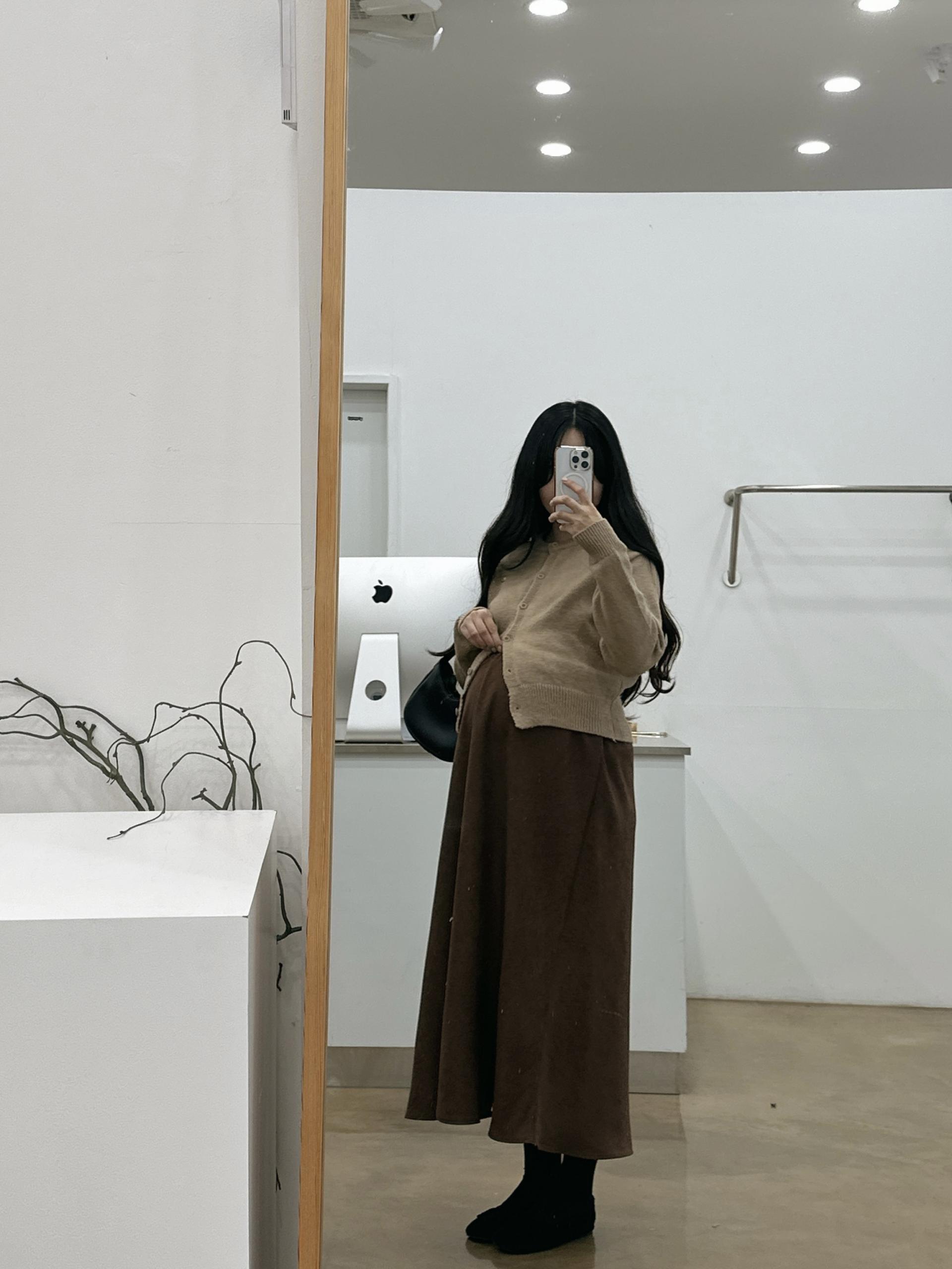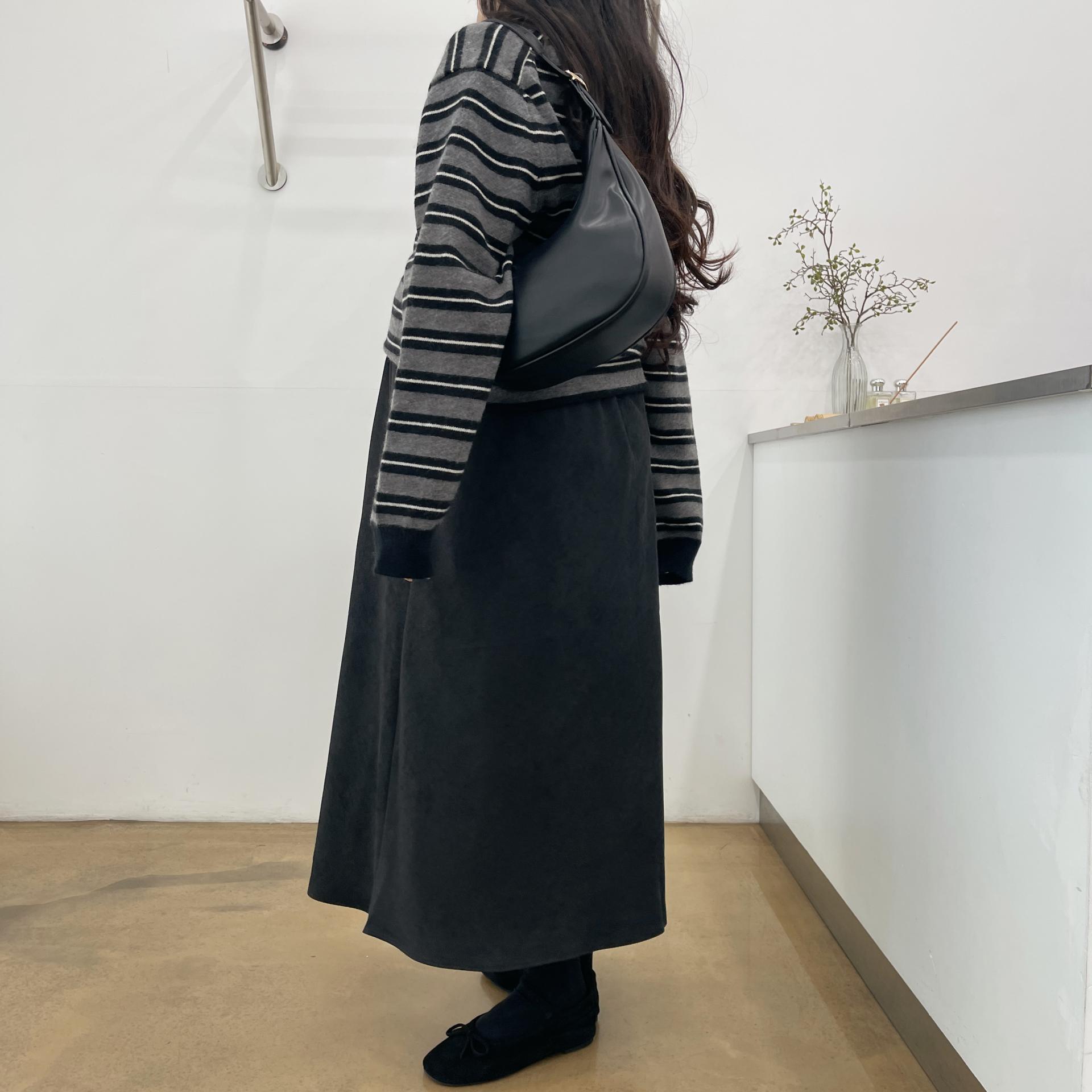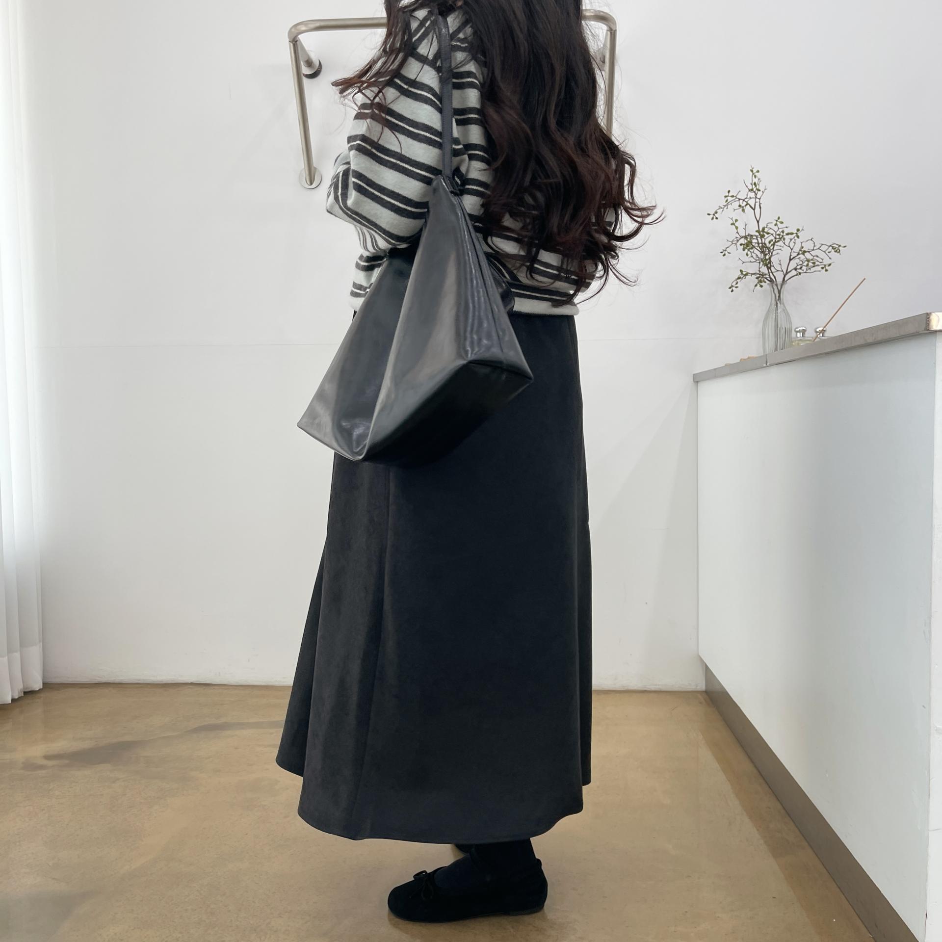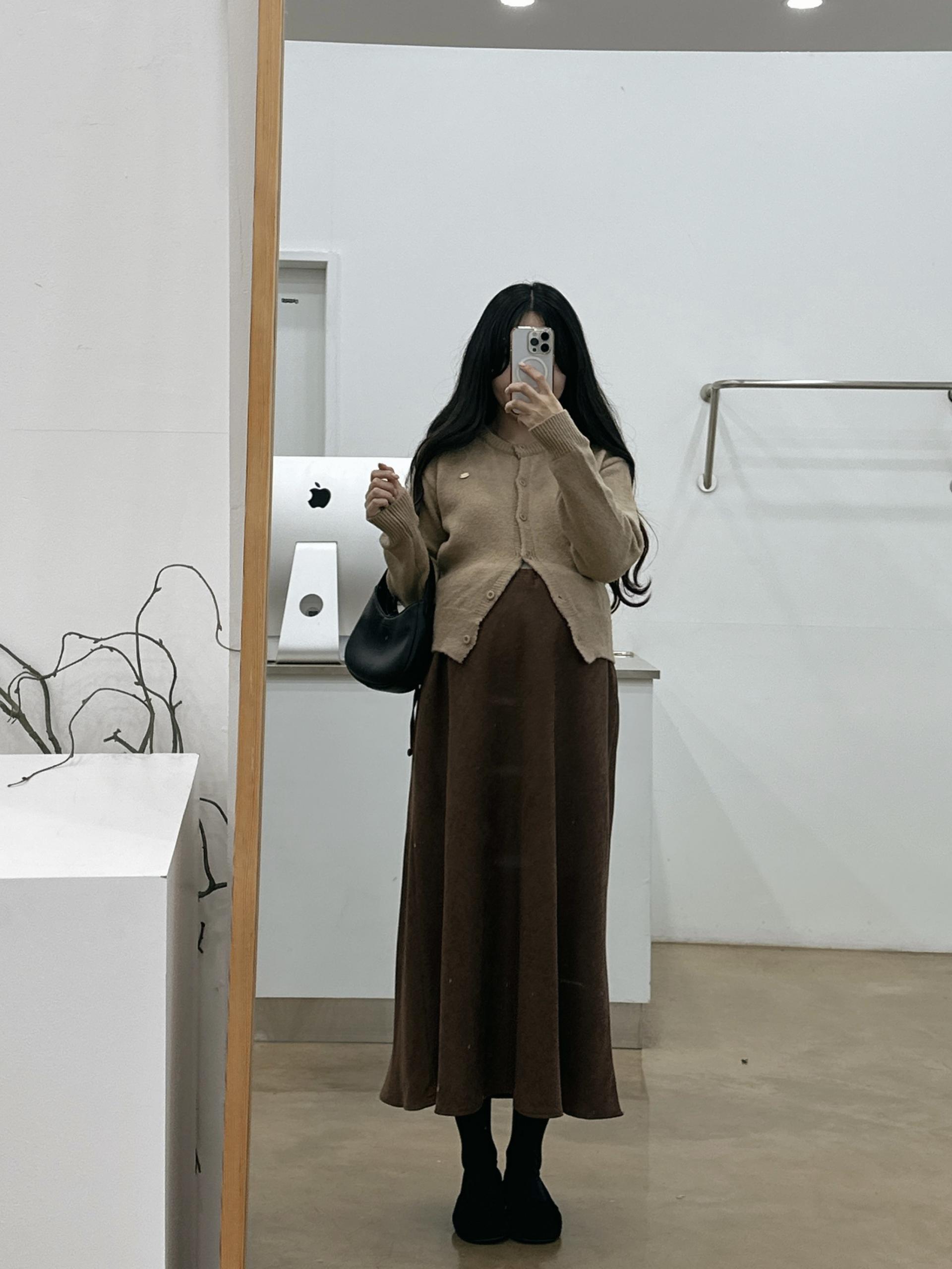 겨울버전으로 소개해드리는 , 허리스트링으로 사이즈구애없이 입는, 스웨이드소재의 스커트에요