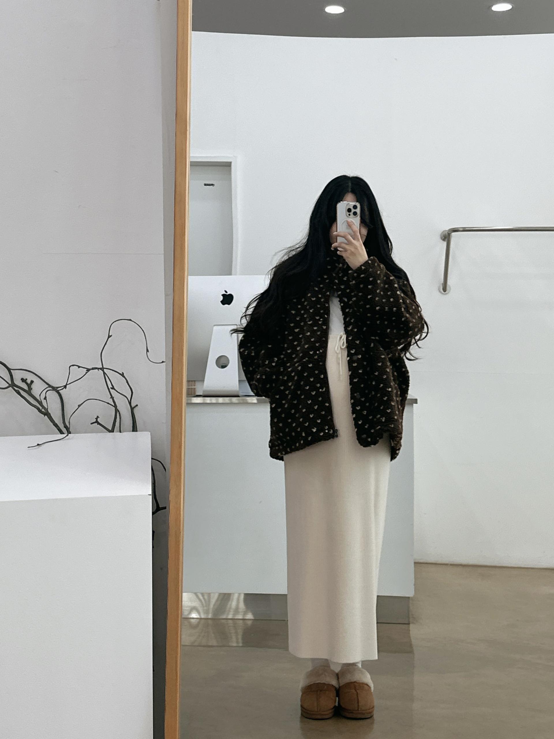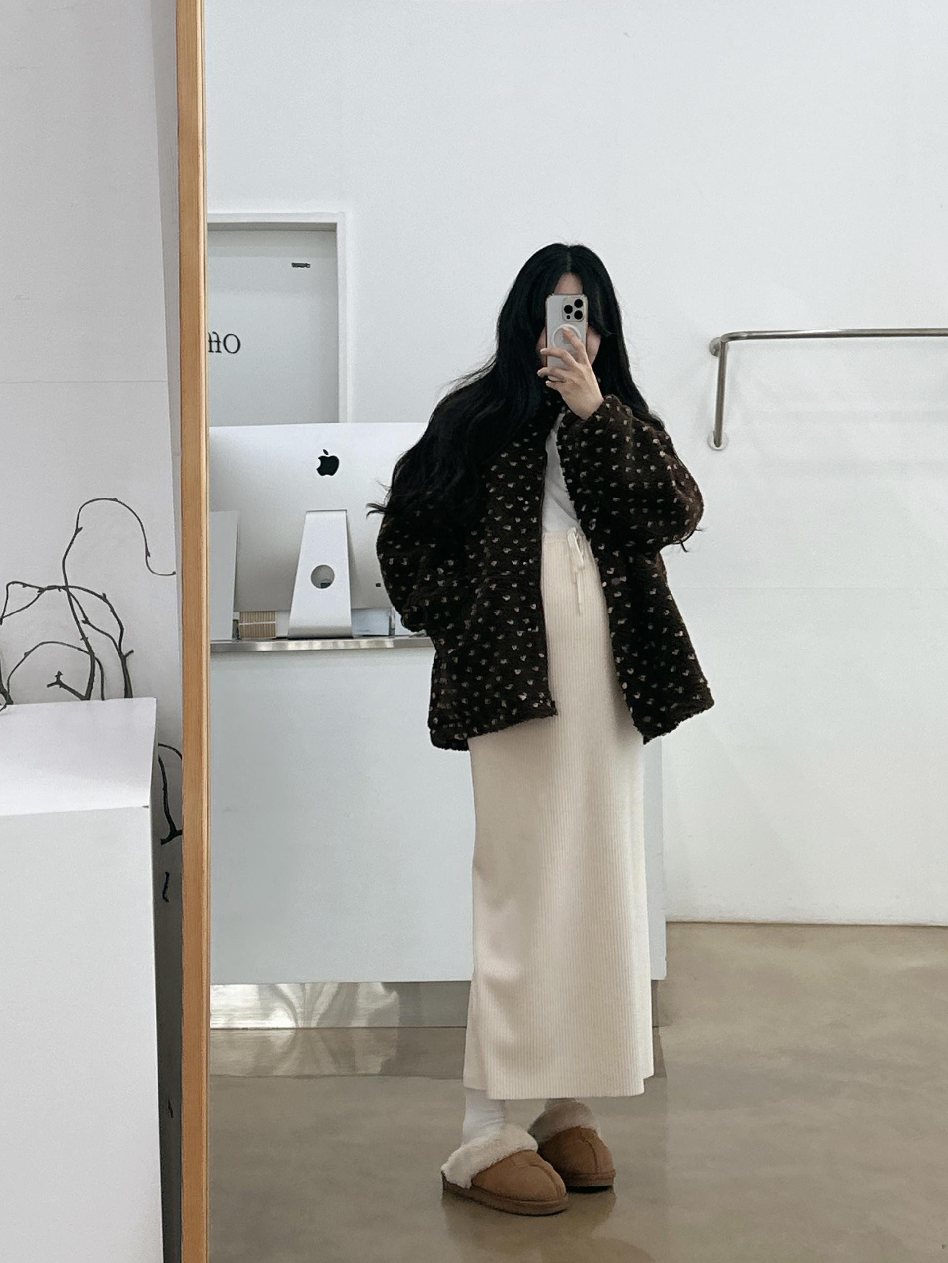 <같이코디한 스커트는 롱,기모골지밴딩스커트 입니다>