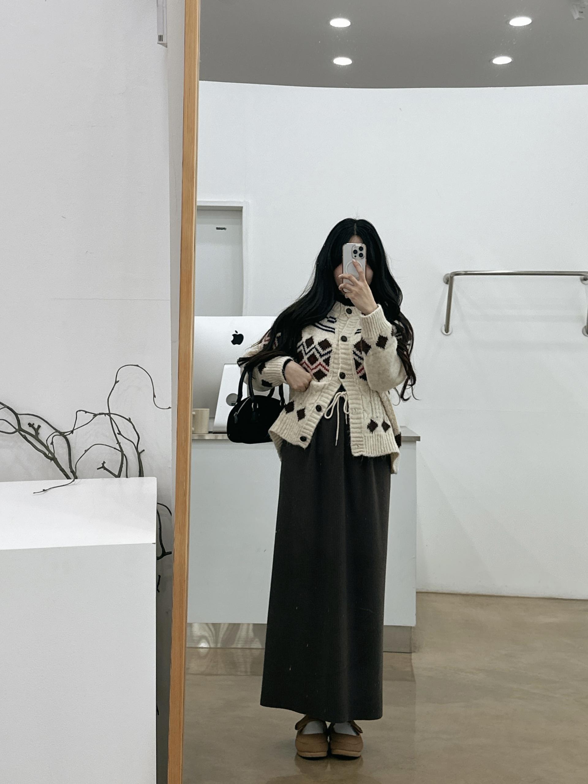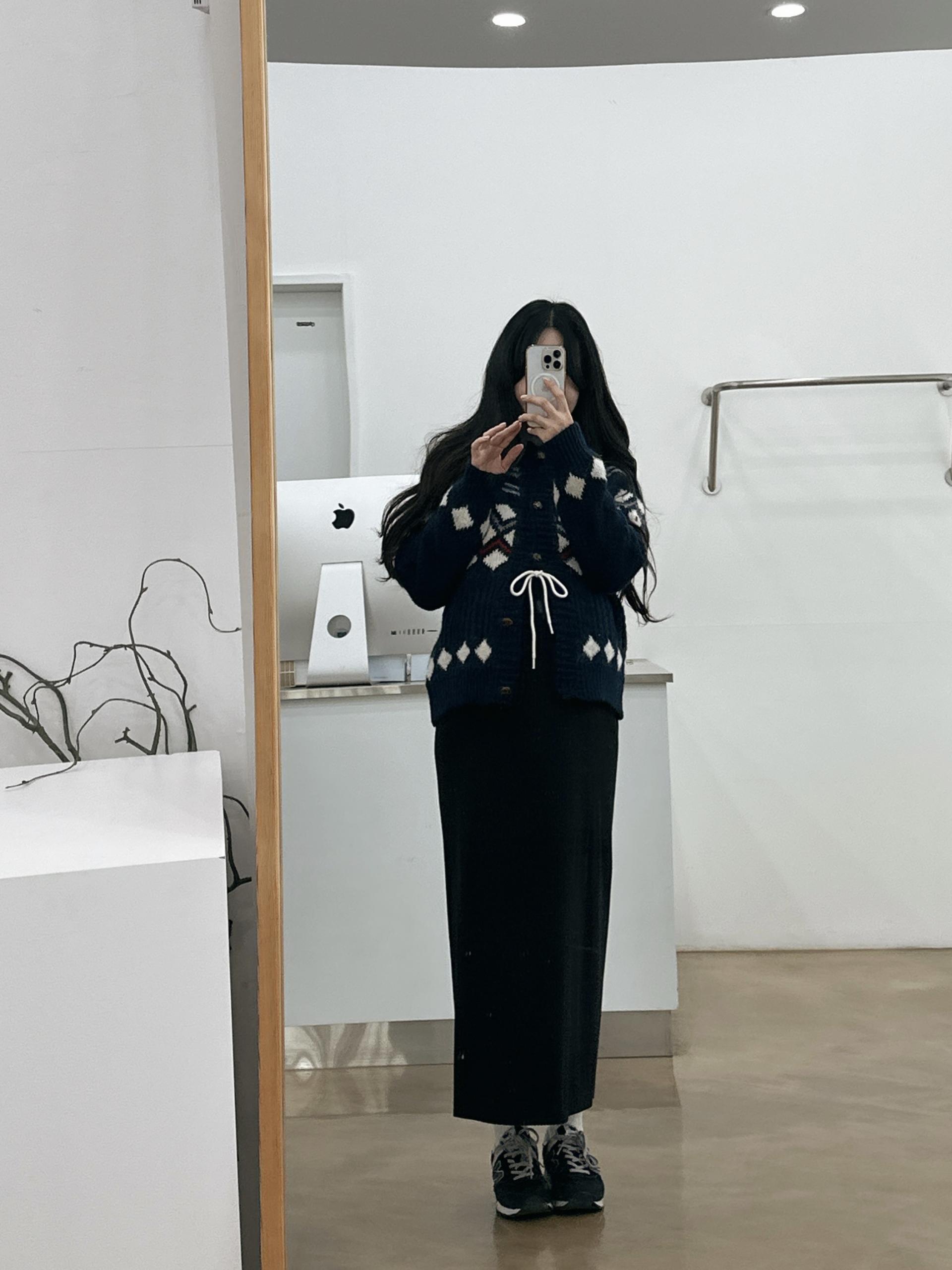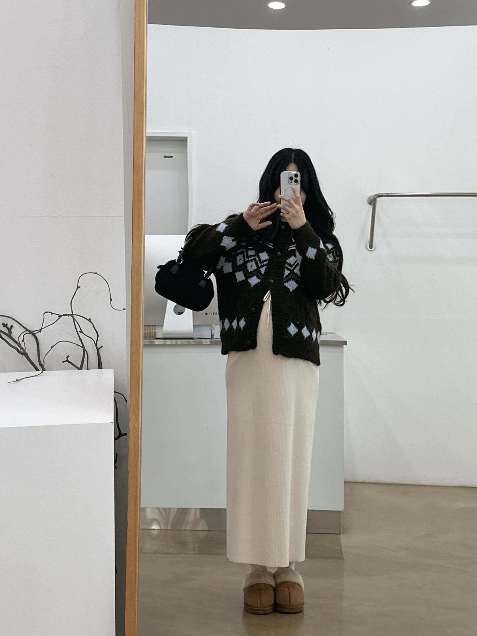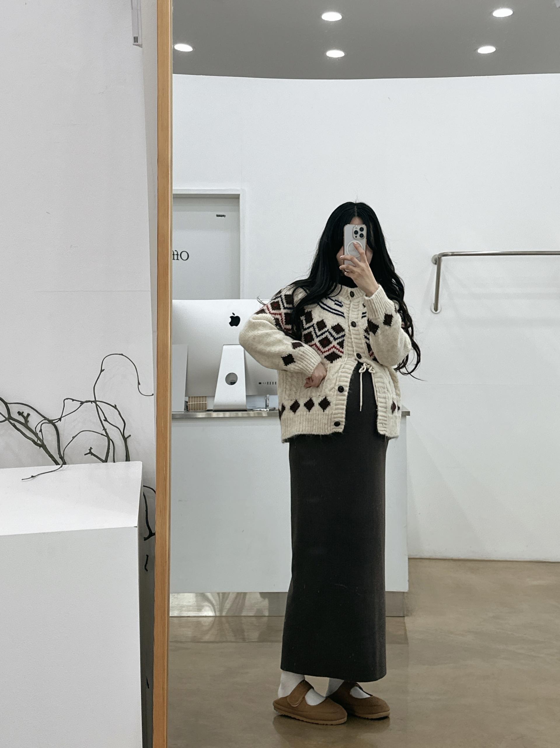 단추도 너무 귀엽고, 아가일패턴의 갬성낙낙한 데일리 겨울가디건입니다:)
