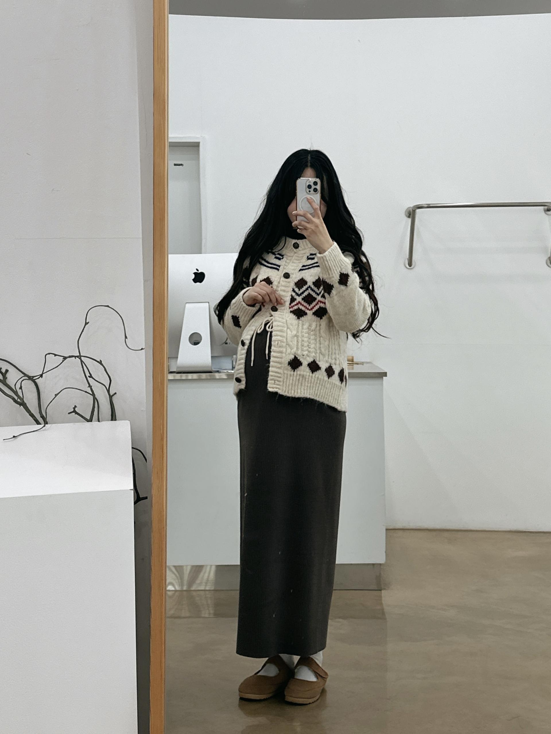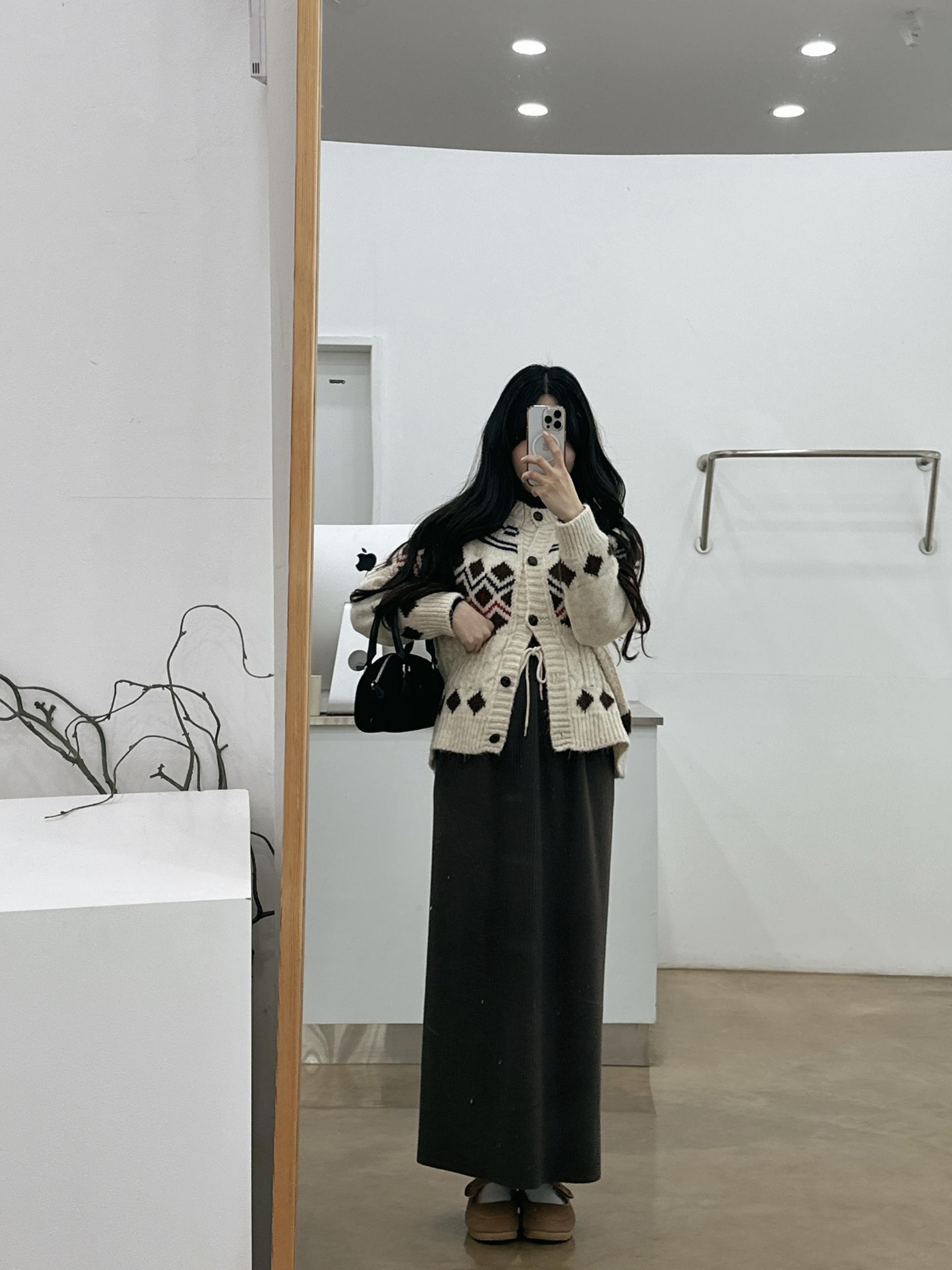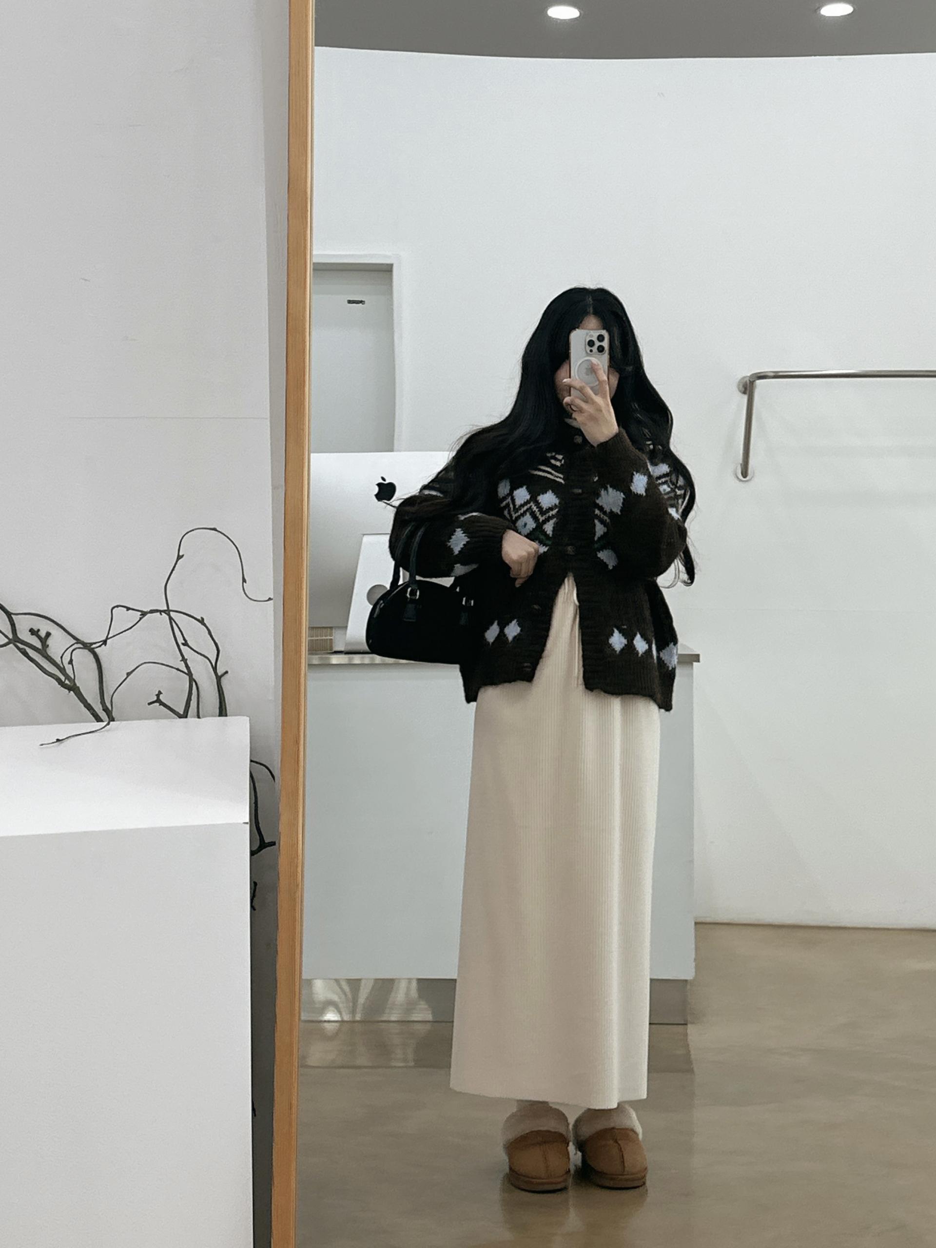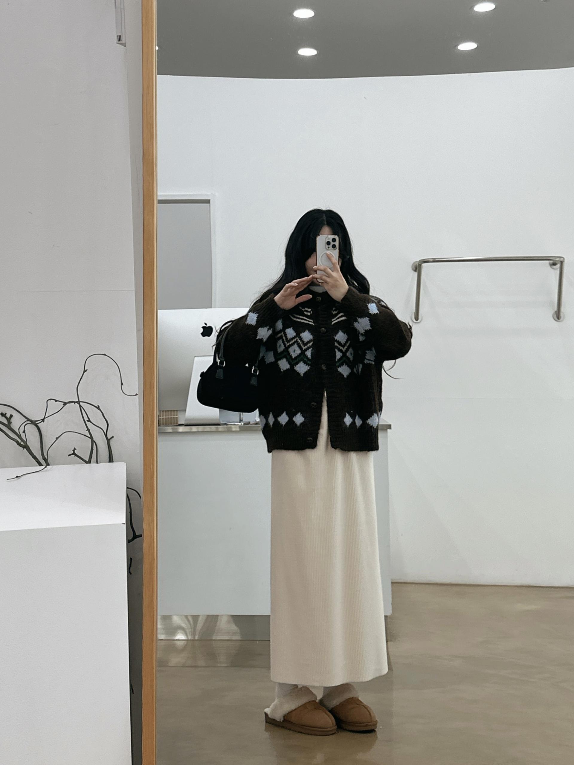 단추도 너무 귀엽고, 아가일패턴의 갬성낙낙한 데일리 겨울가디건입니다:)