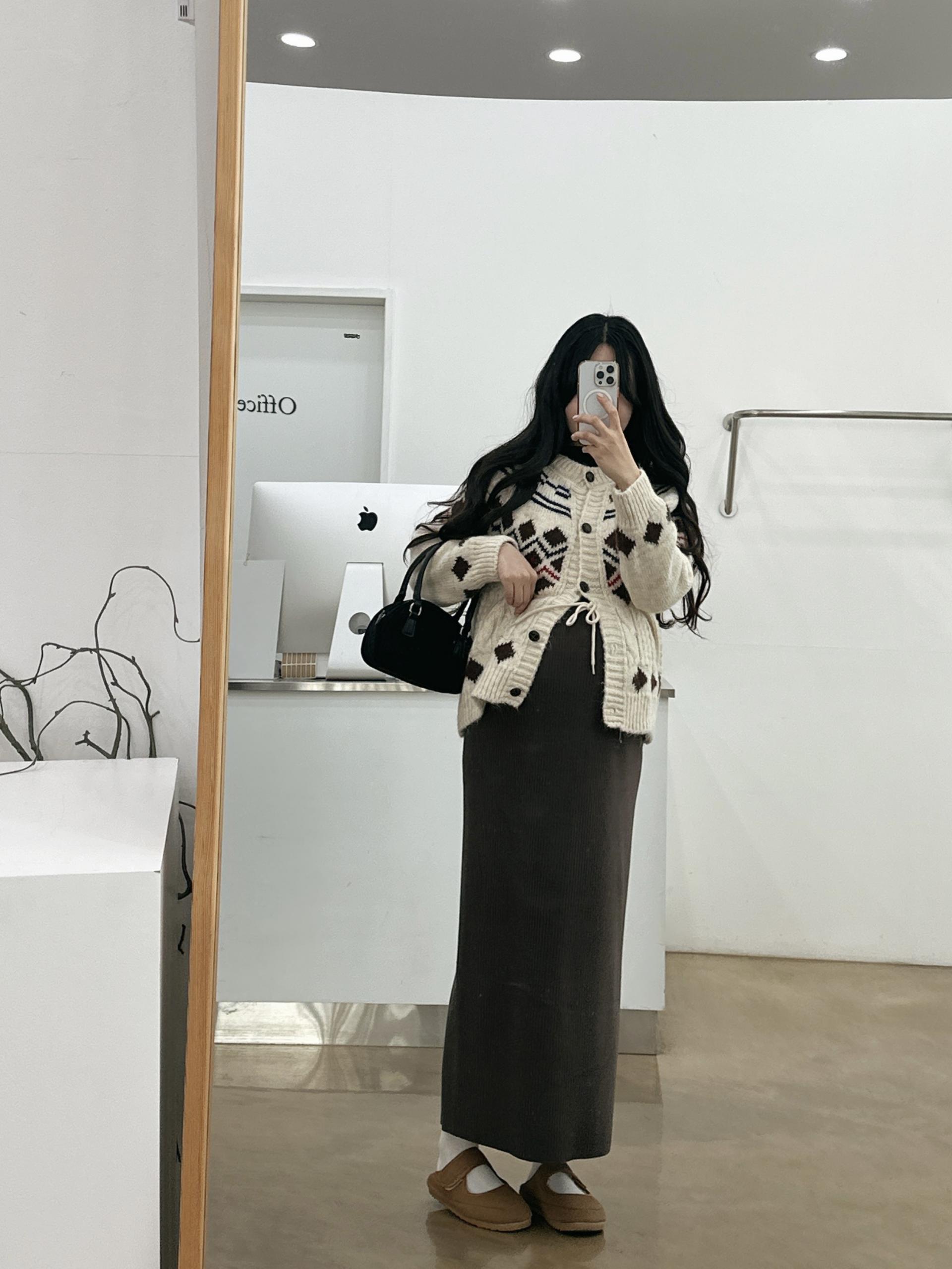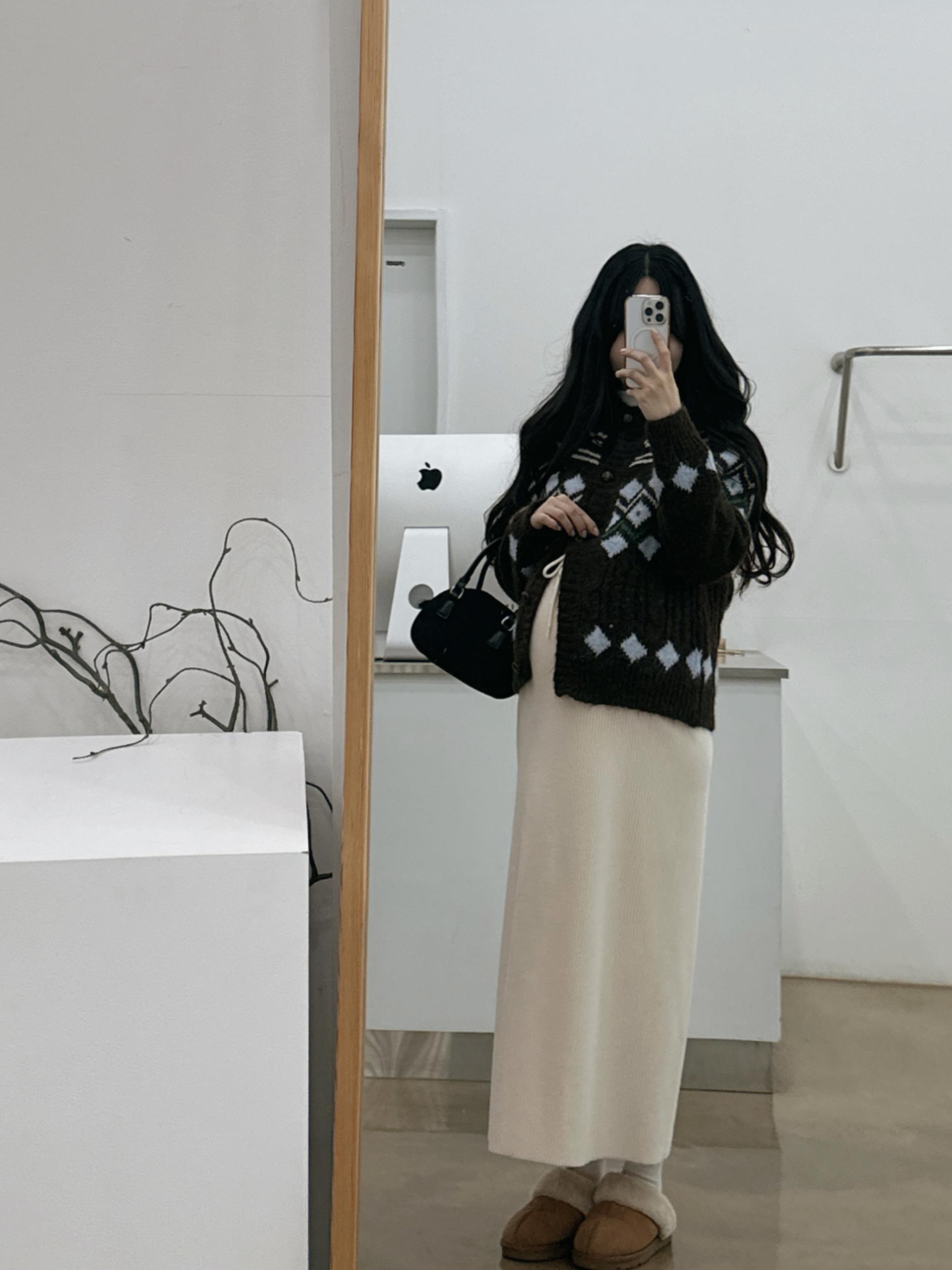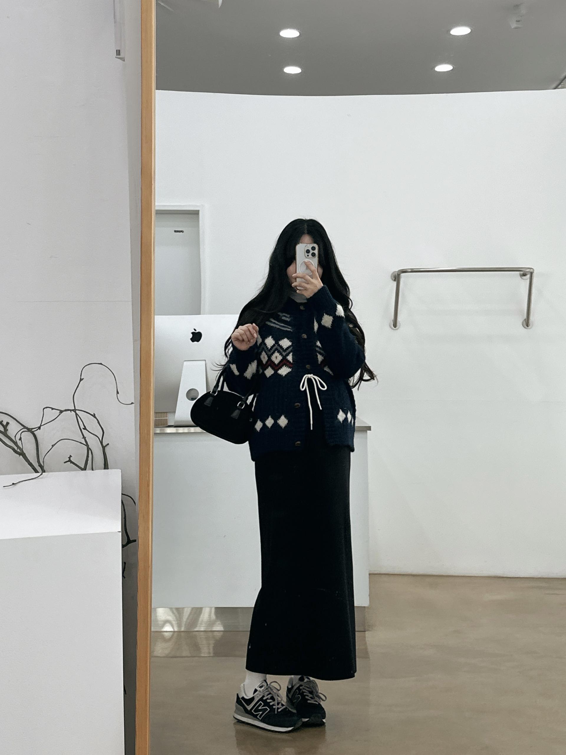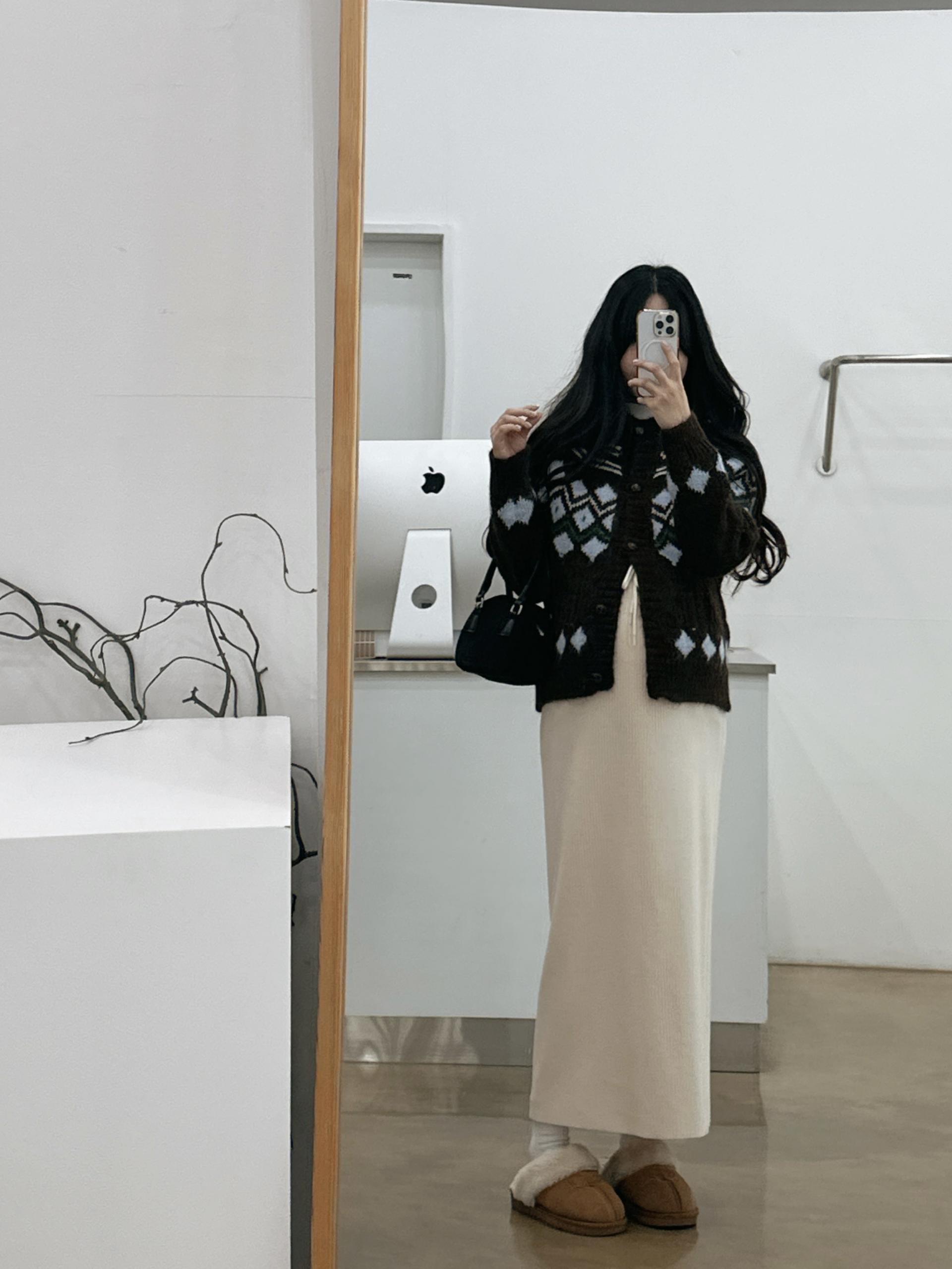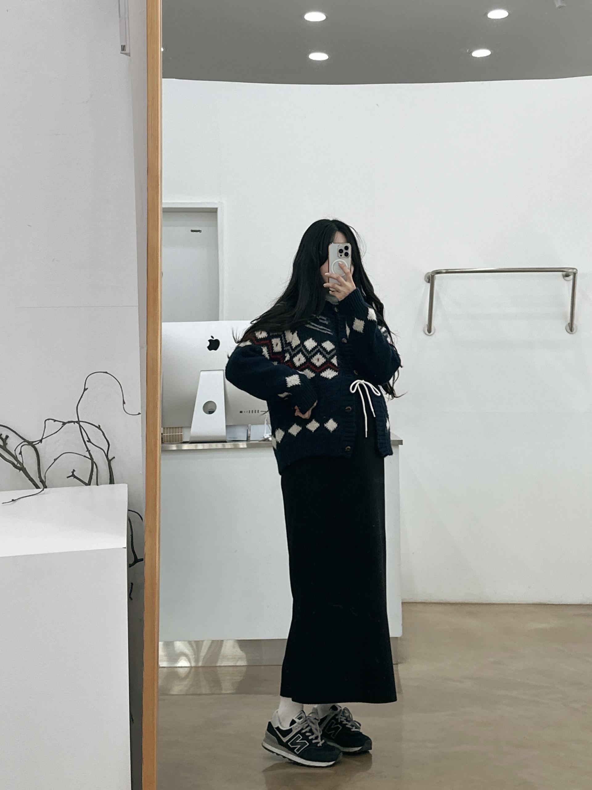 단추도 너무 귀엽고, 아가일패턴의 갬성낙낙한 데일리 겨울가디건입니다:)